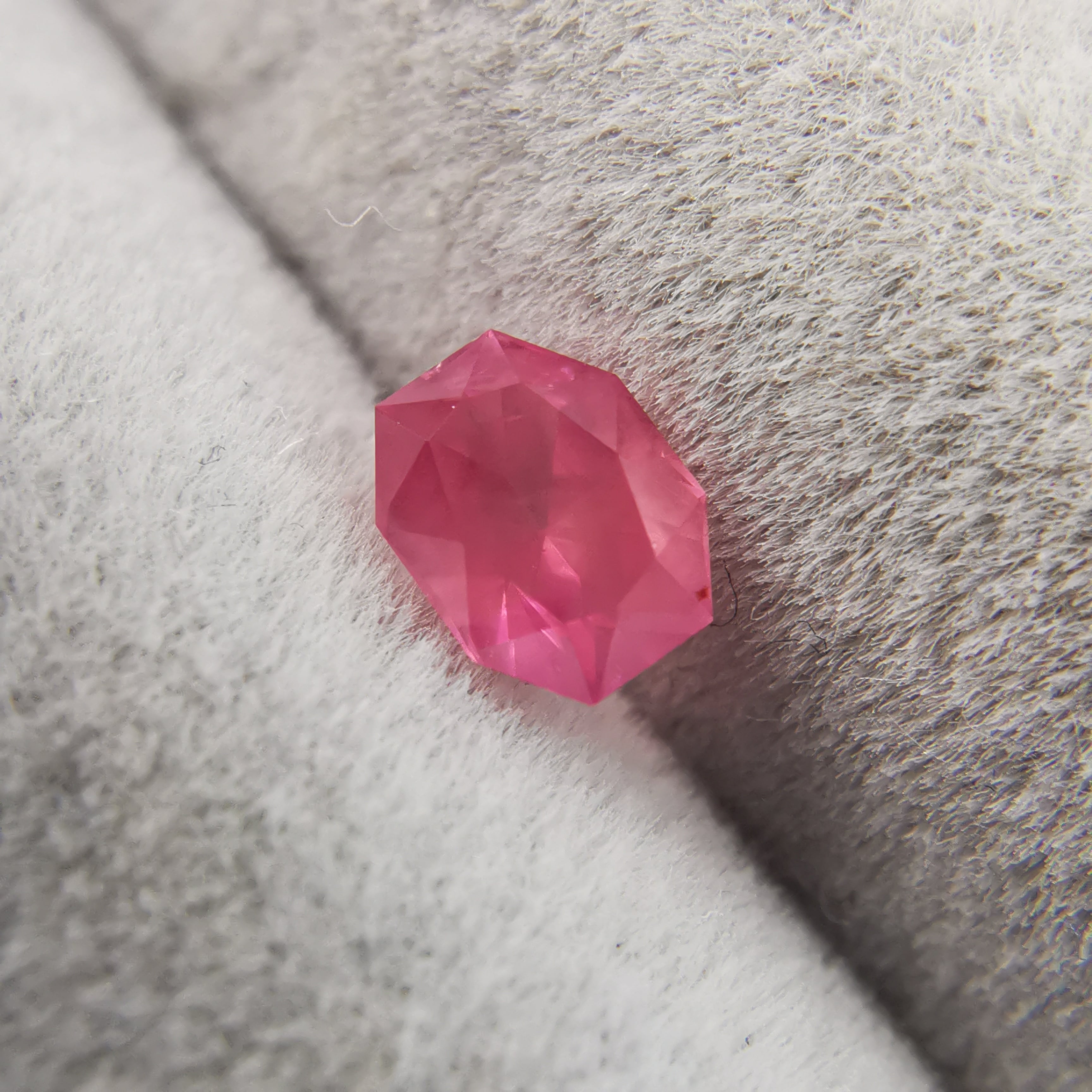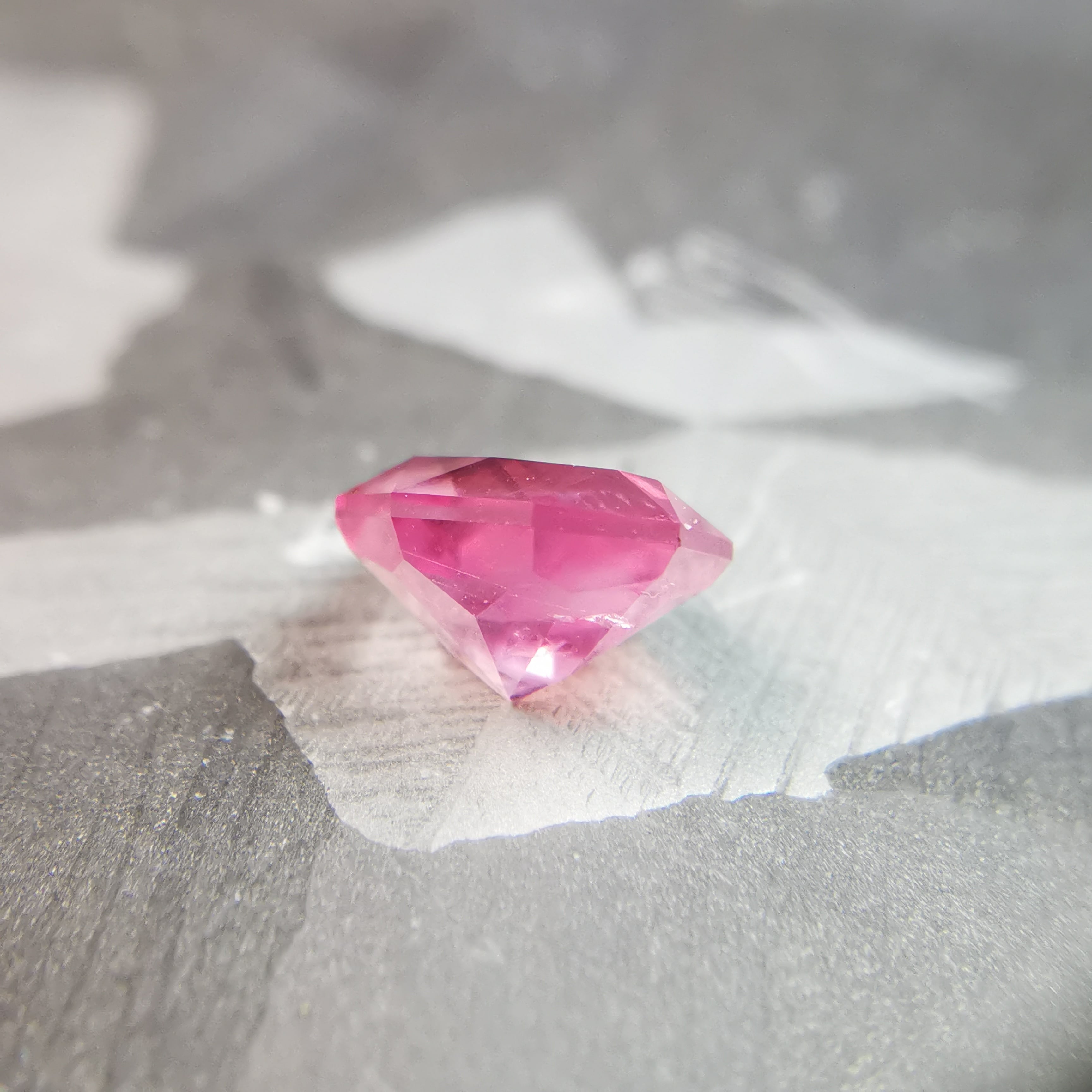 一見、全体がシルキーですが、よく見るとピンクのきらめきが鋭くなる箇所があり、どうやらシルクは均一ではありません。