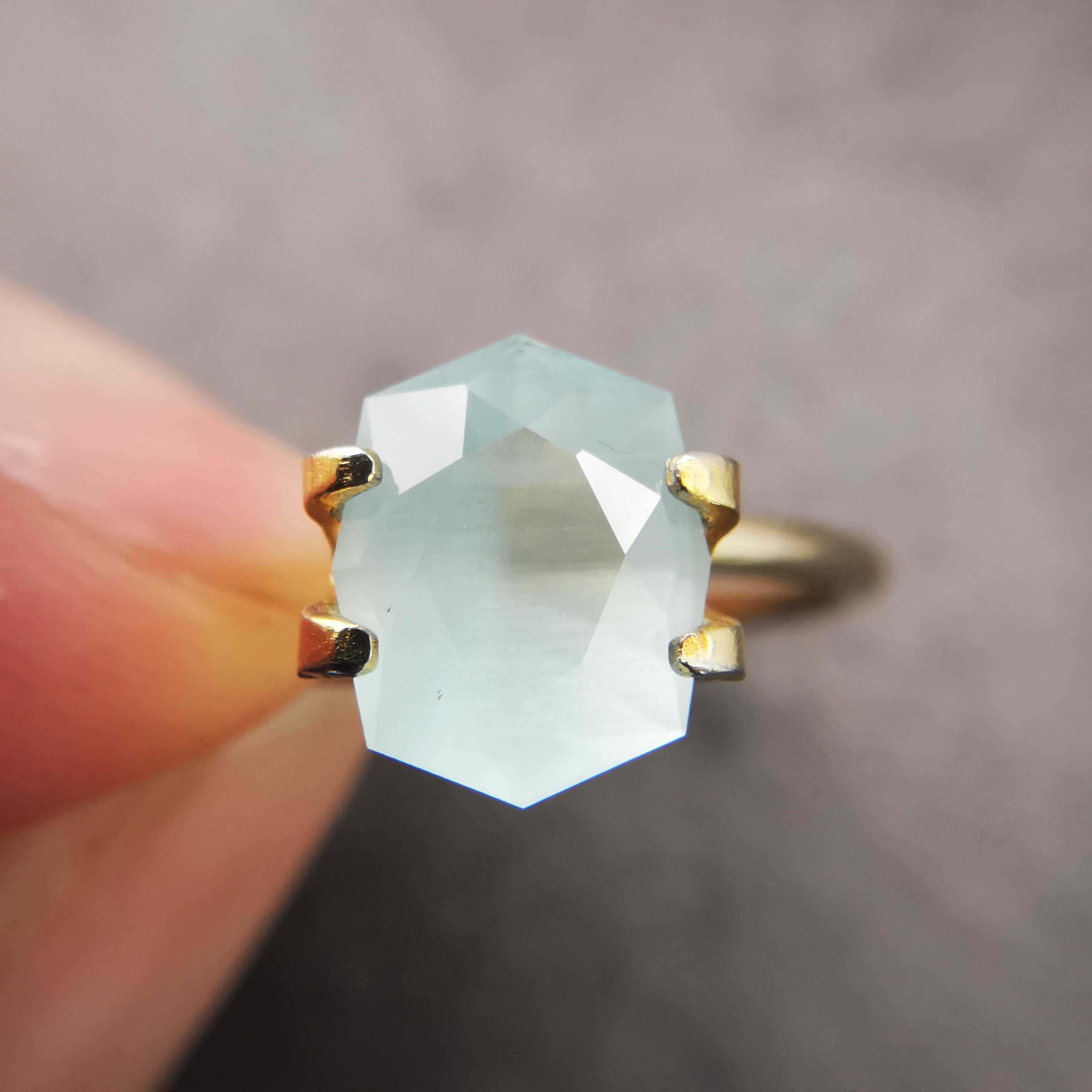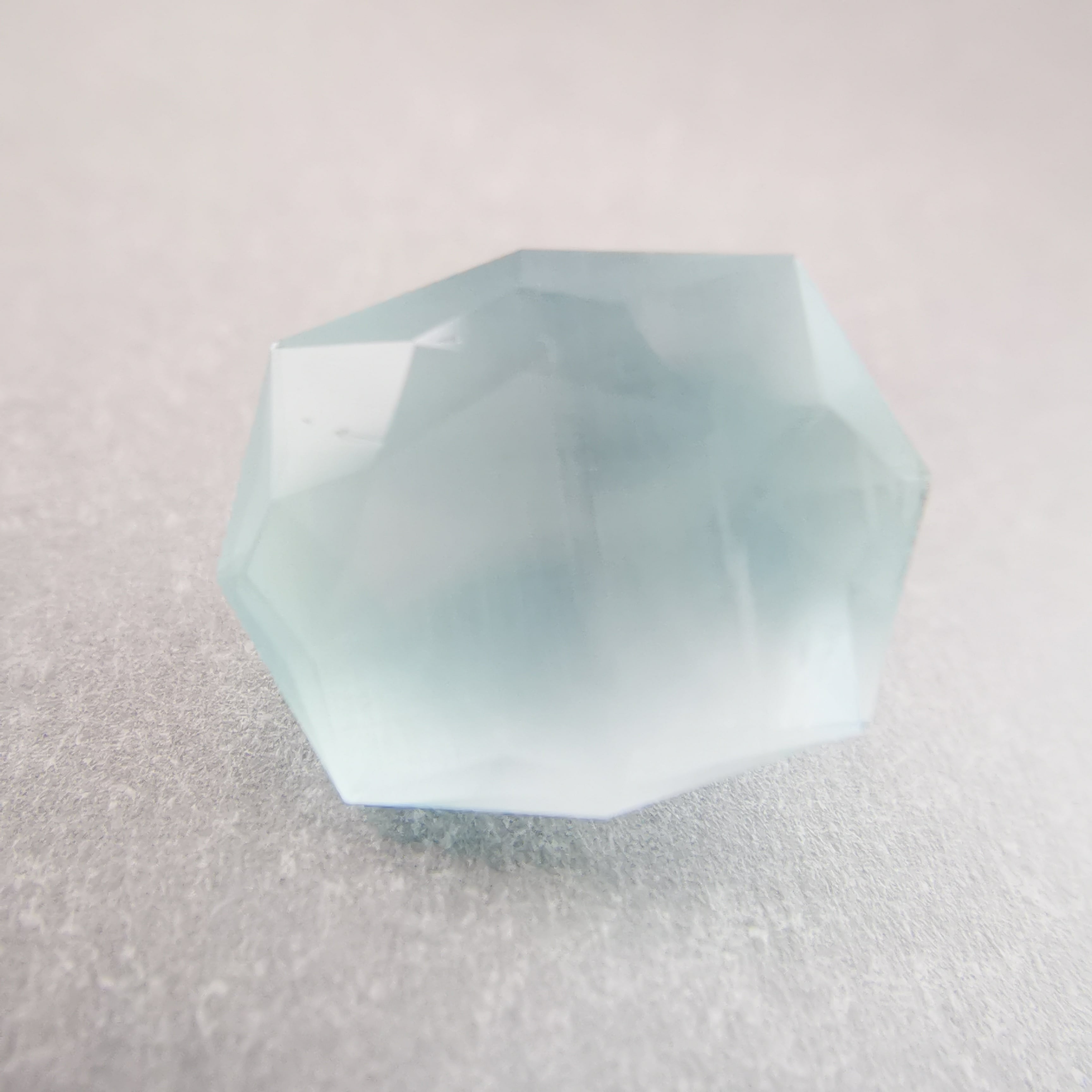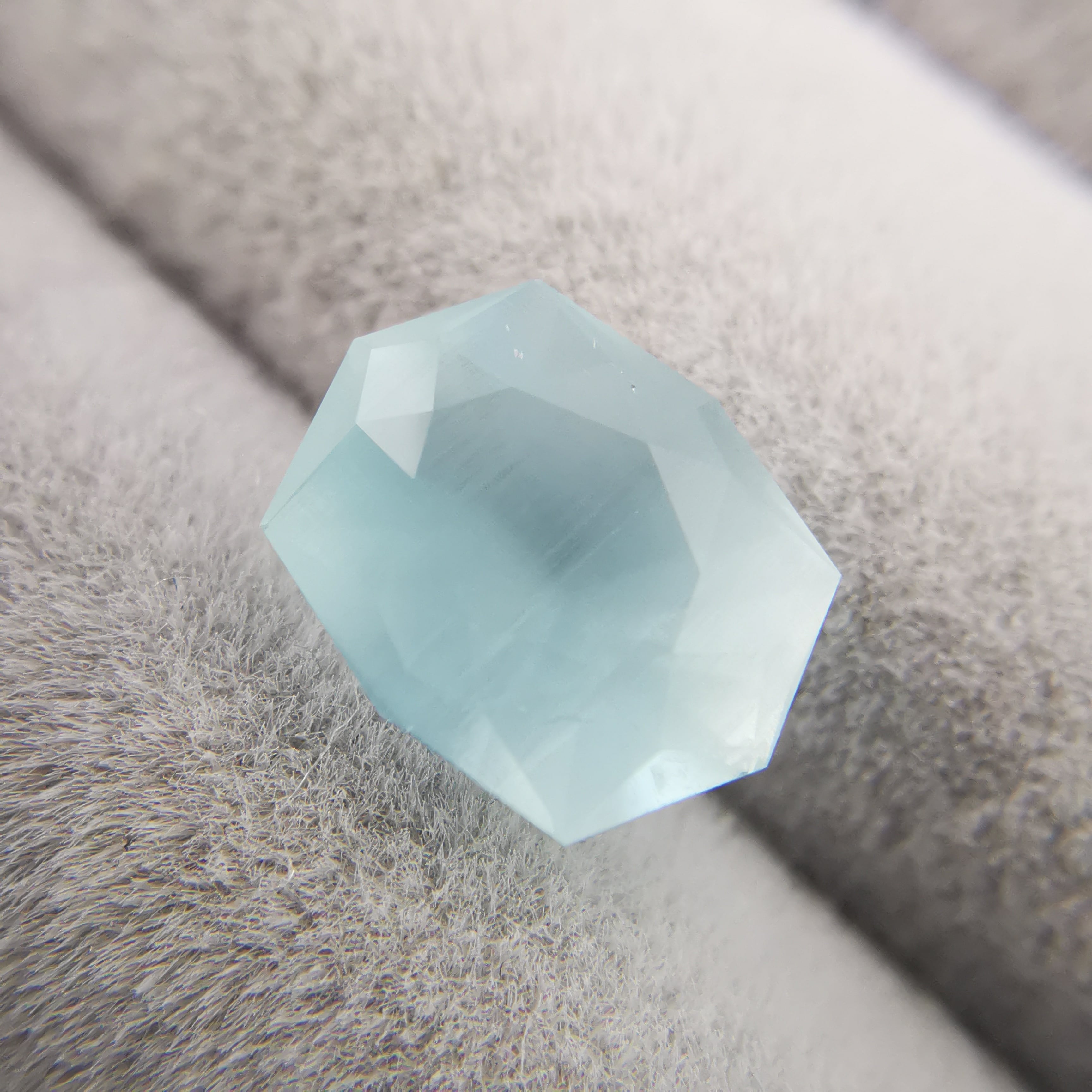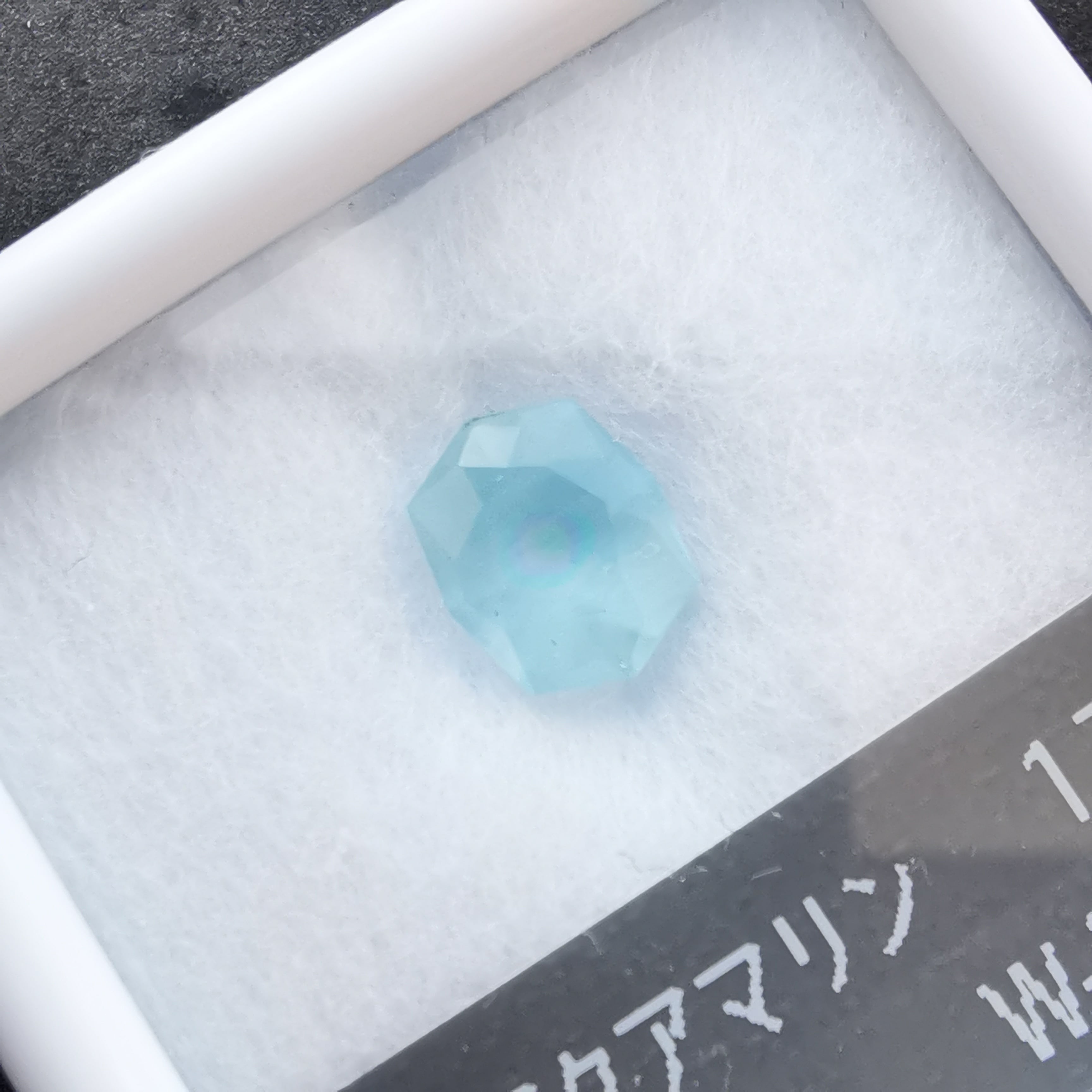 石全体に極小の白っぽいインクルージョンが入った、ふわりとミルキーなアクアマリンです。