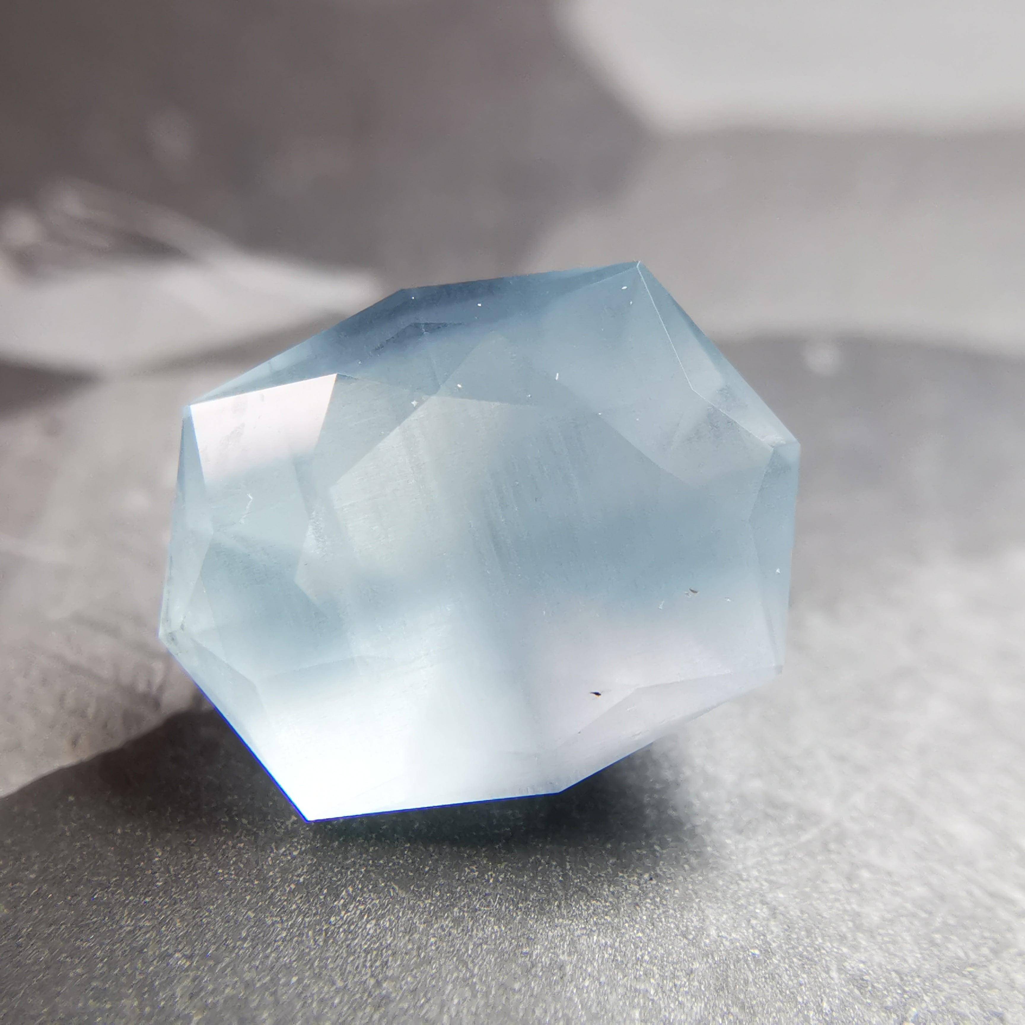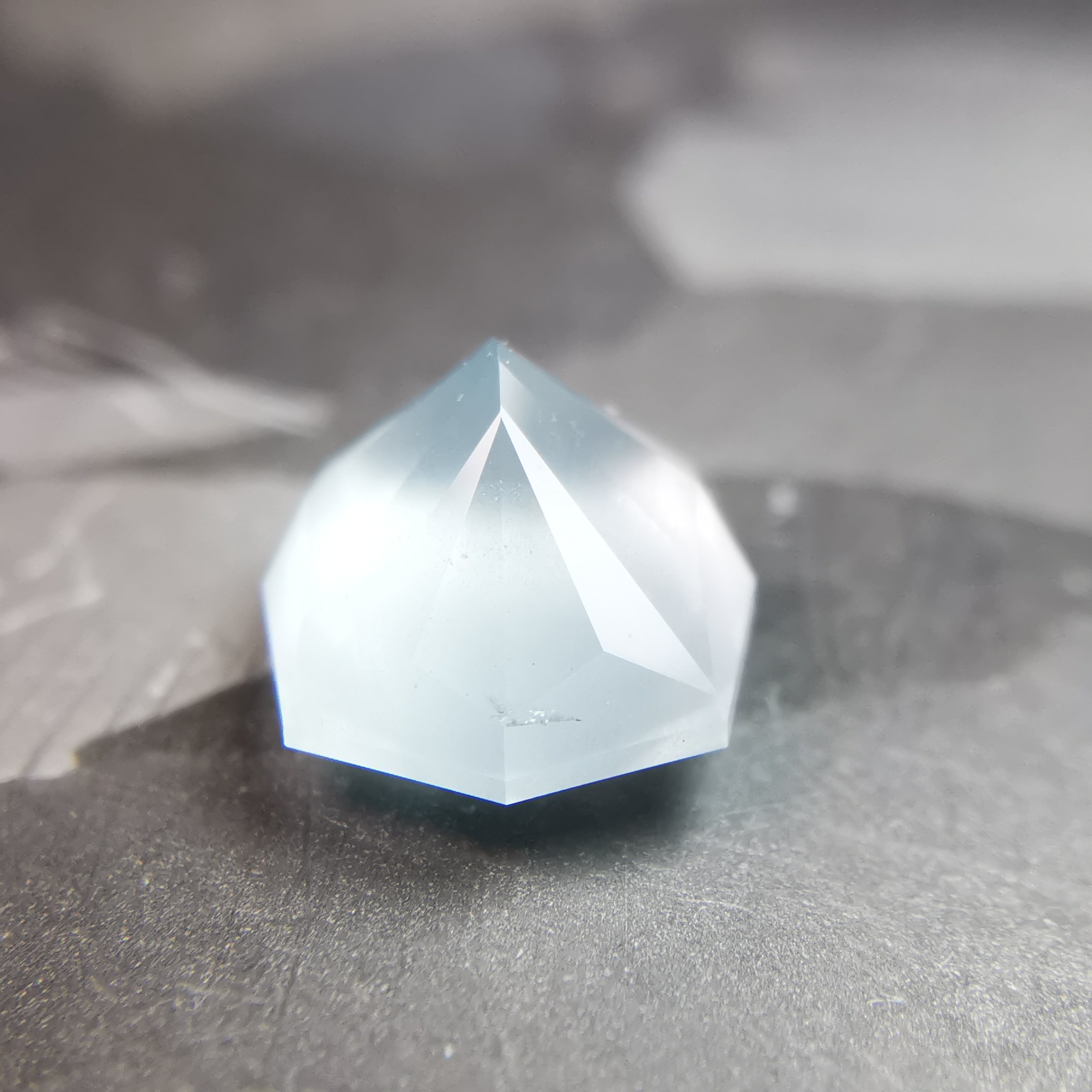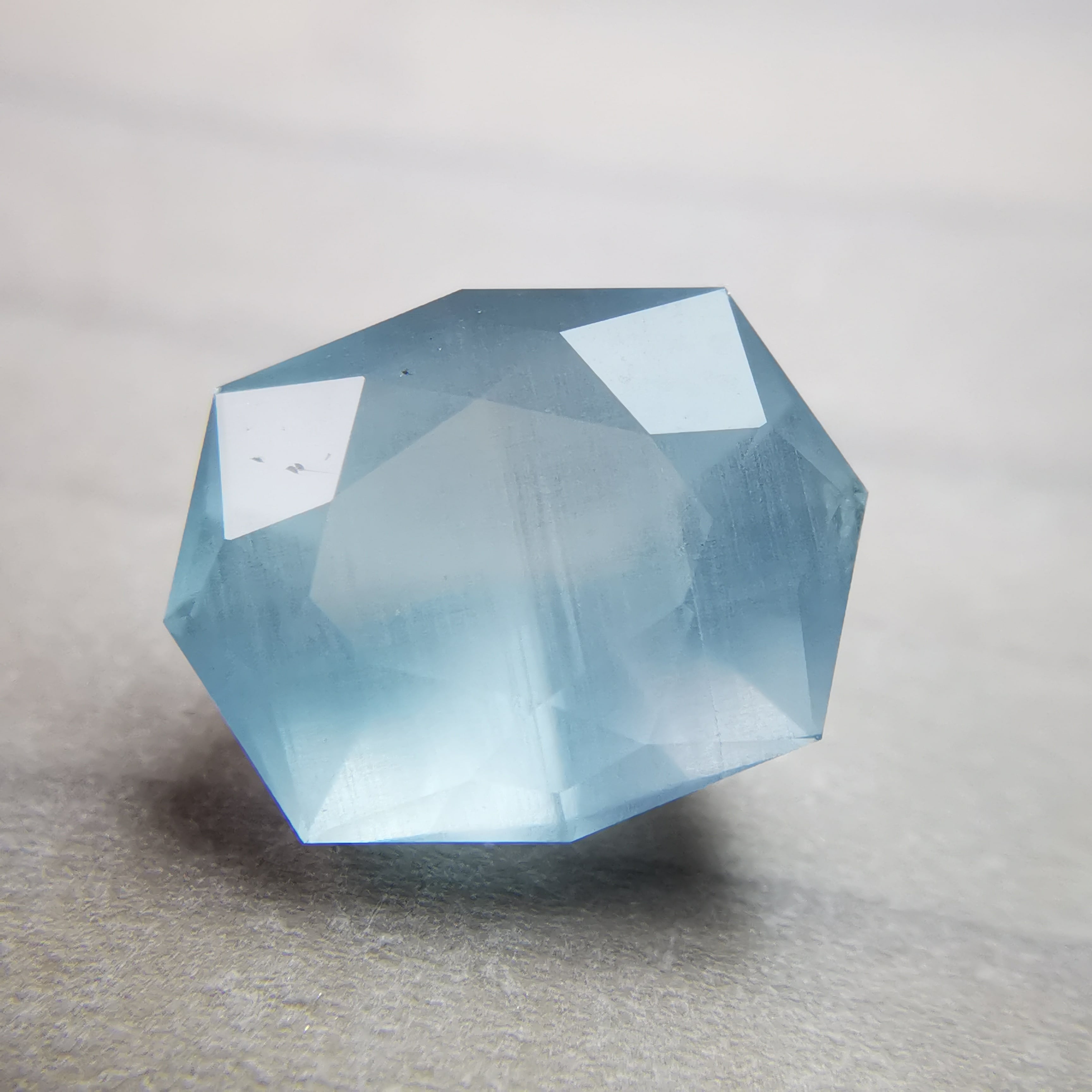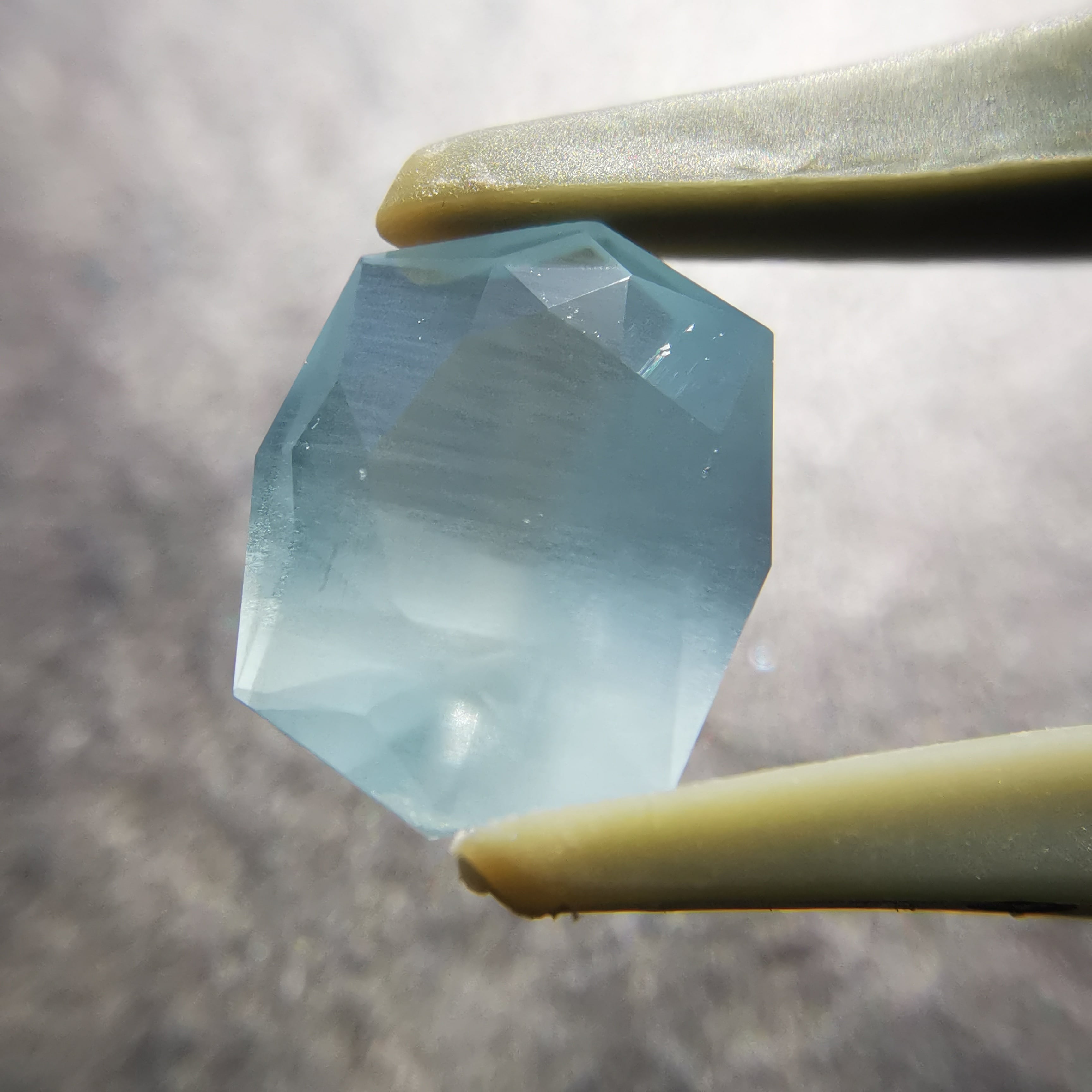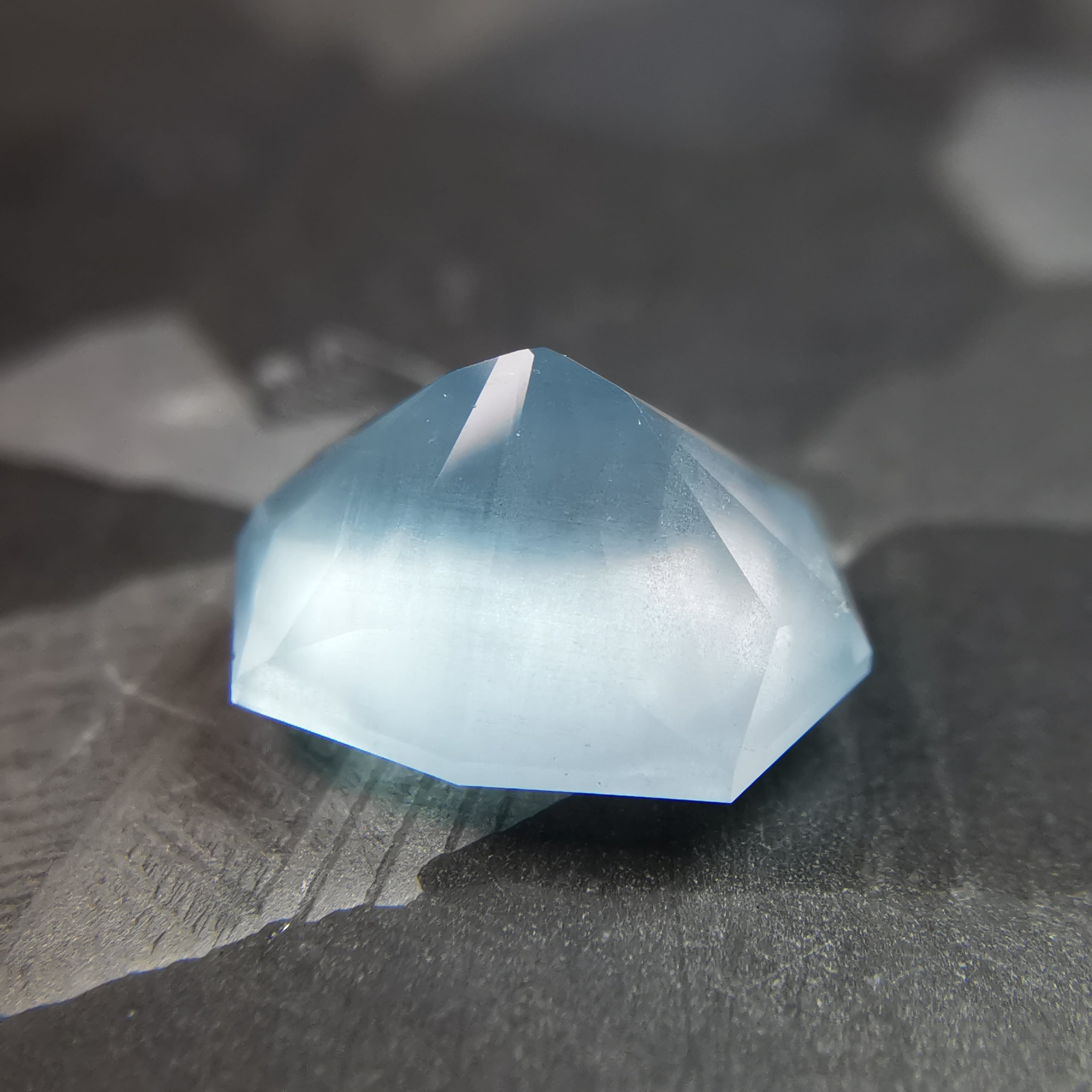 石全体に極小の白っぽいインクルージョンが入った、ふわりとミルキーなアクアマリンです。