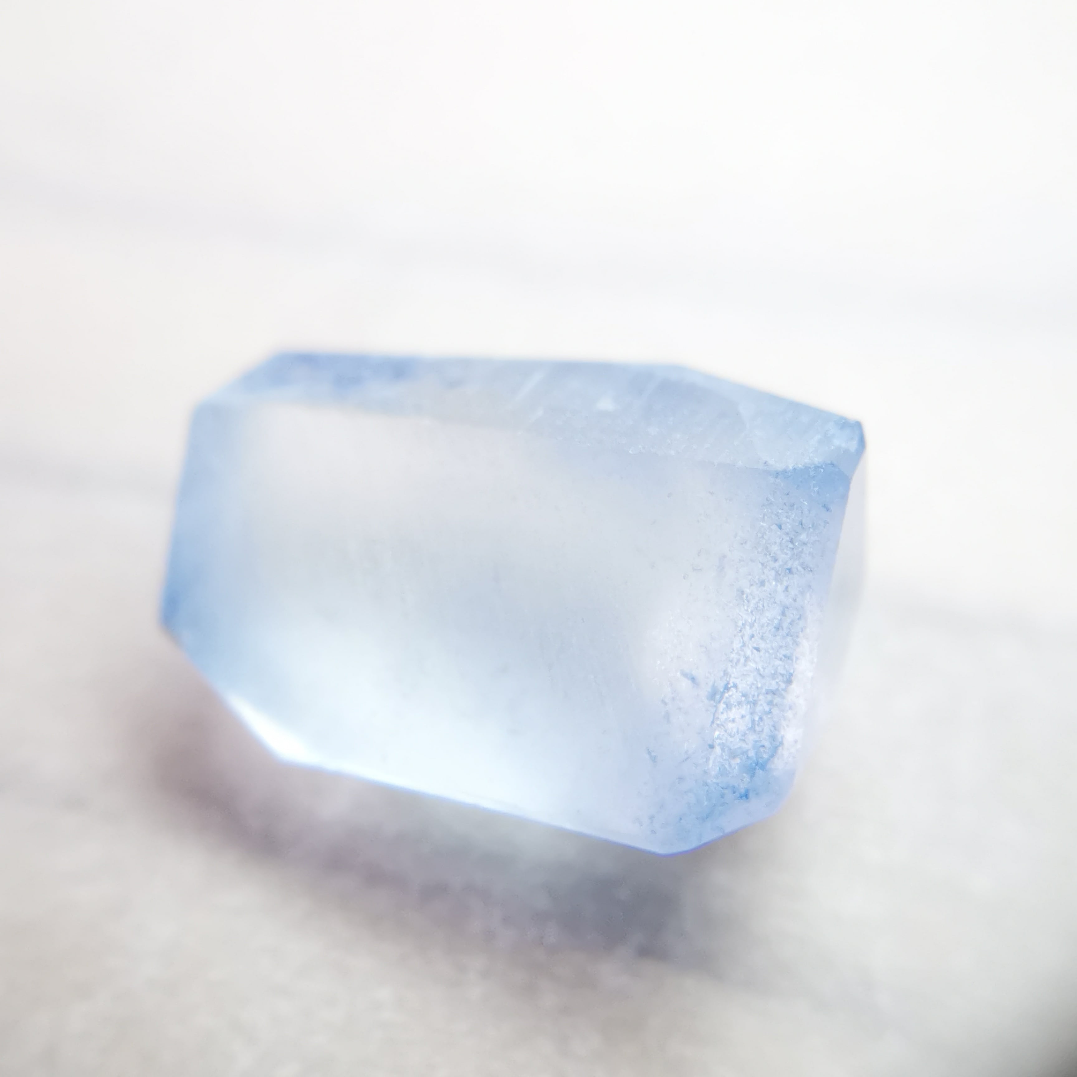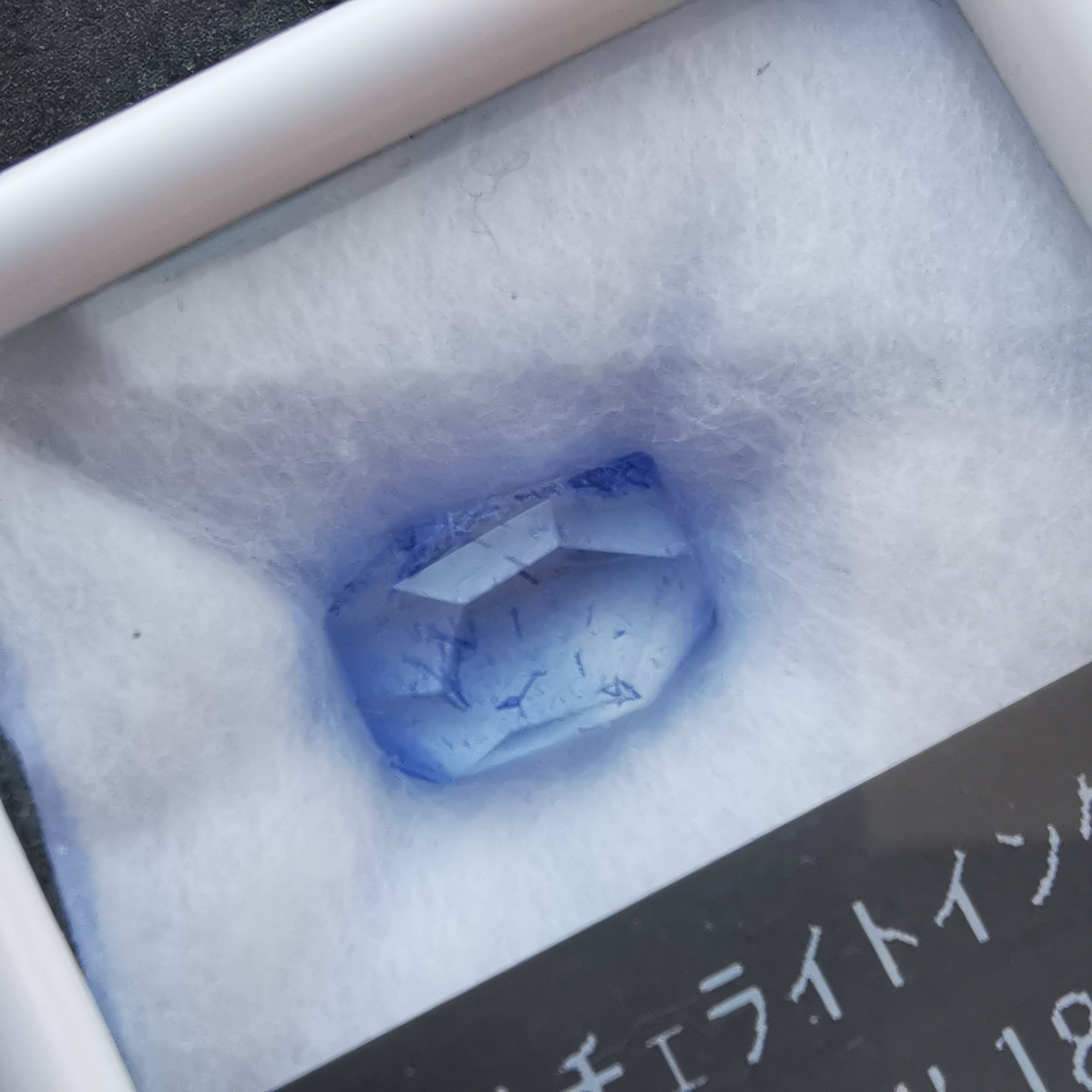 背景の白さに結晶の青さが映えるので、よりデュモルチェライトにフォーカスすることができます。