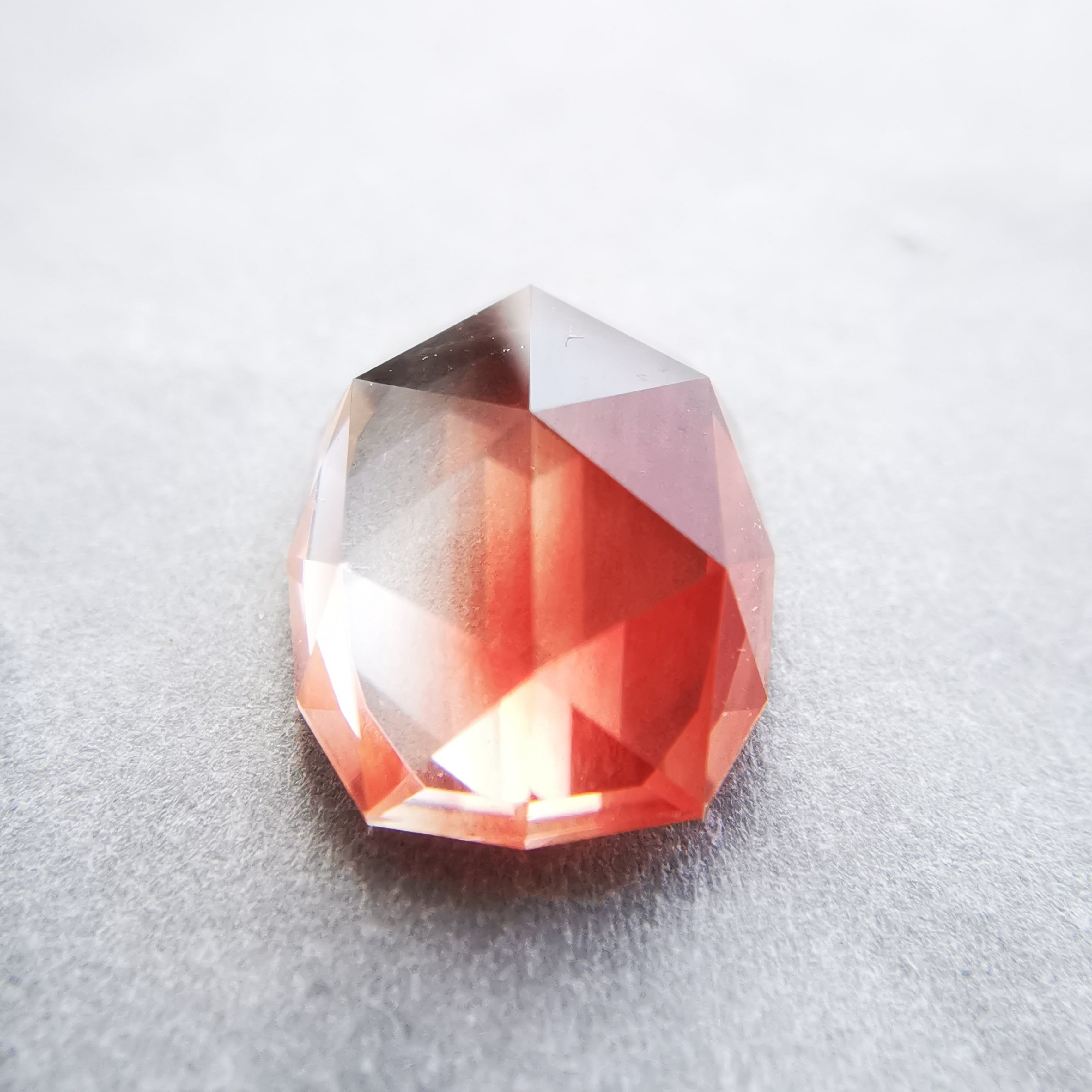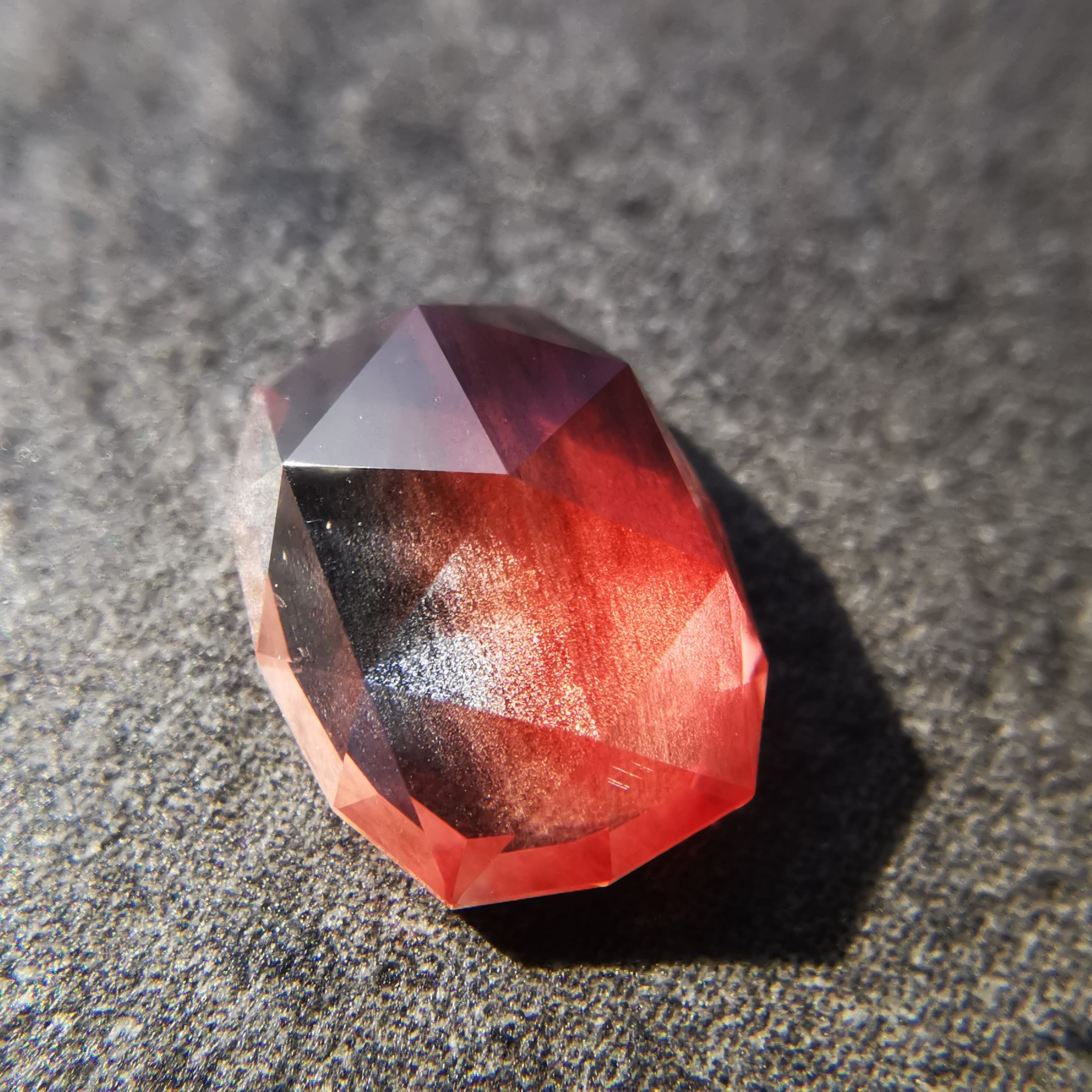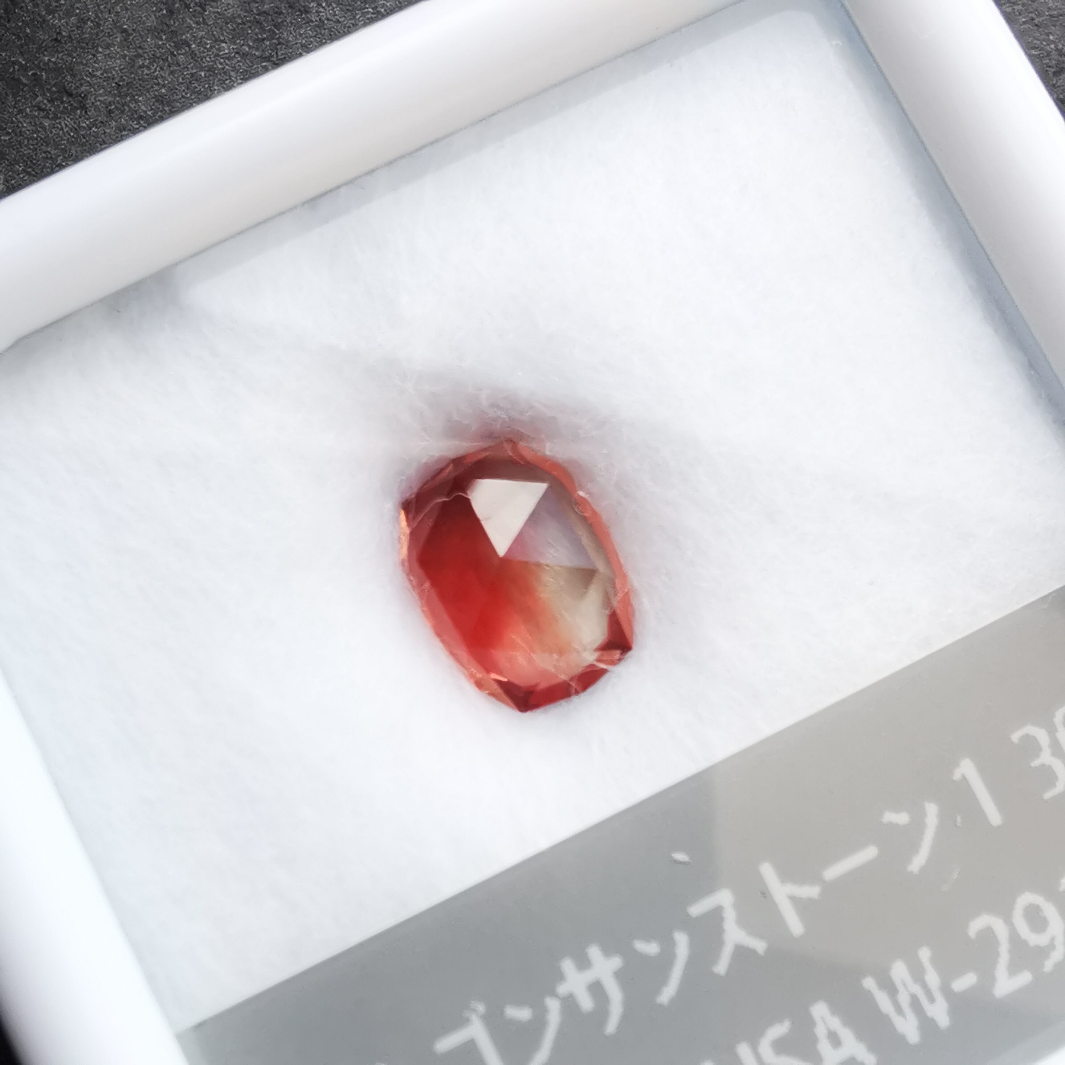 鮮やかな緋色とクリアのバイカラーのオレゴンサンストーンです。