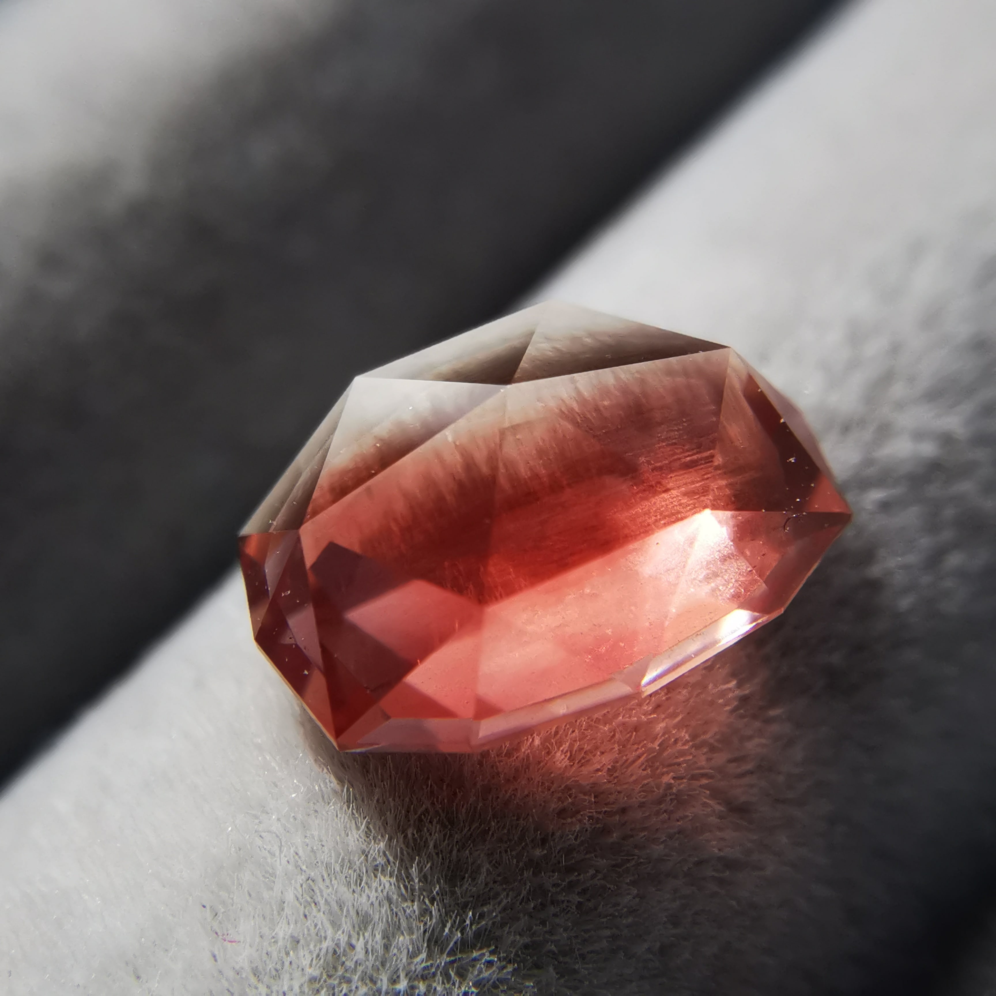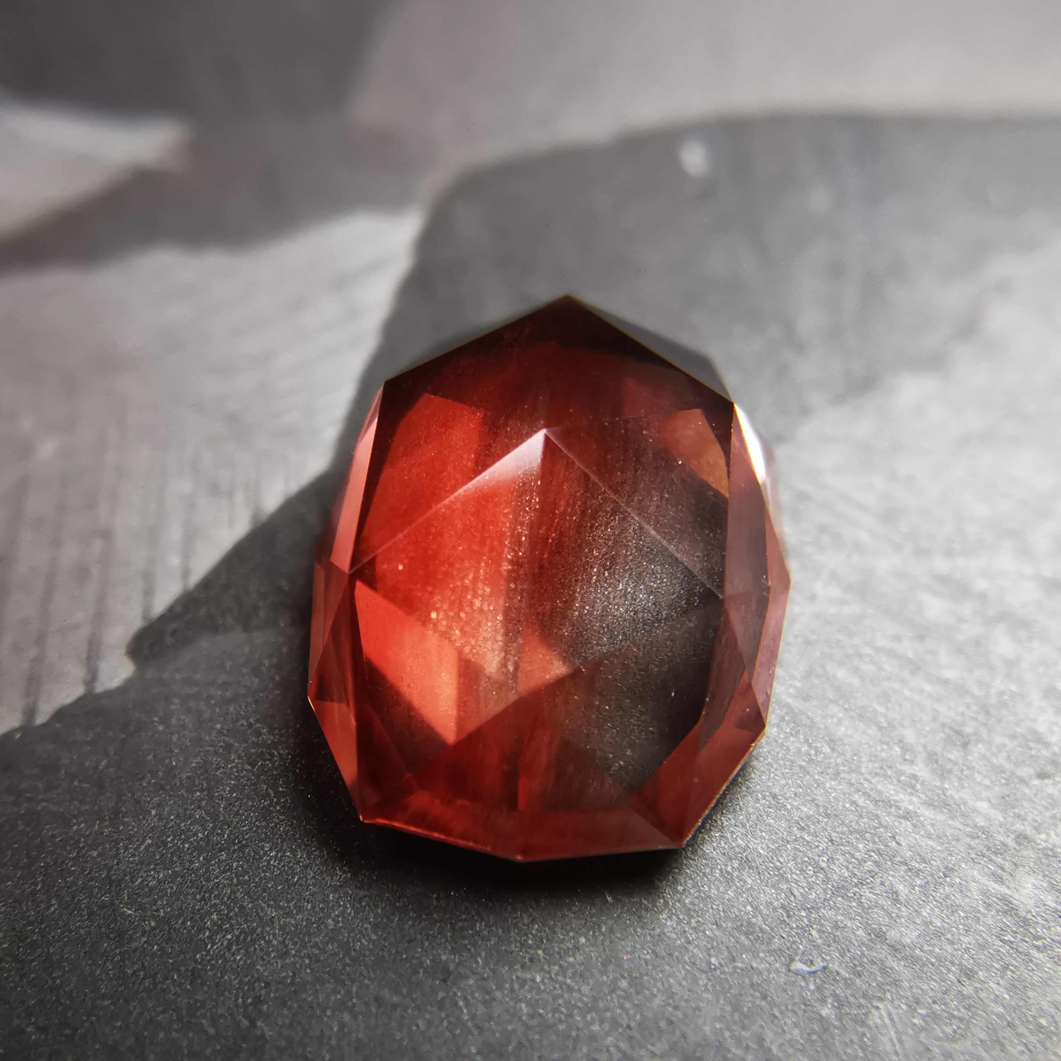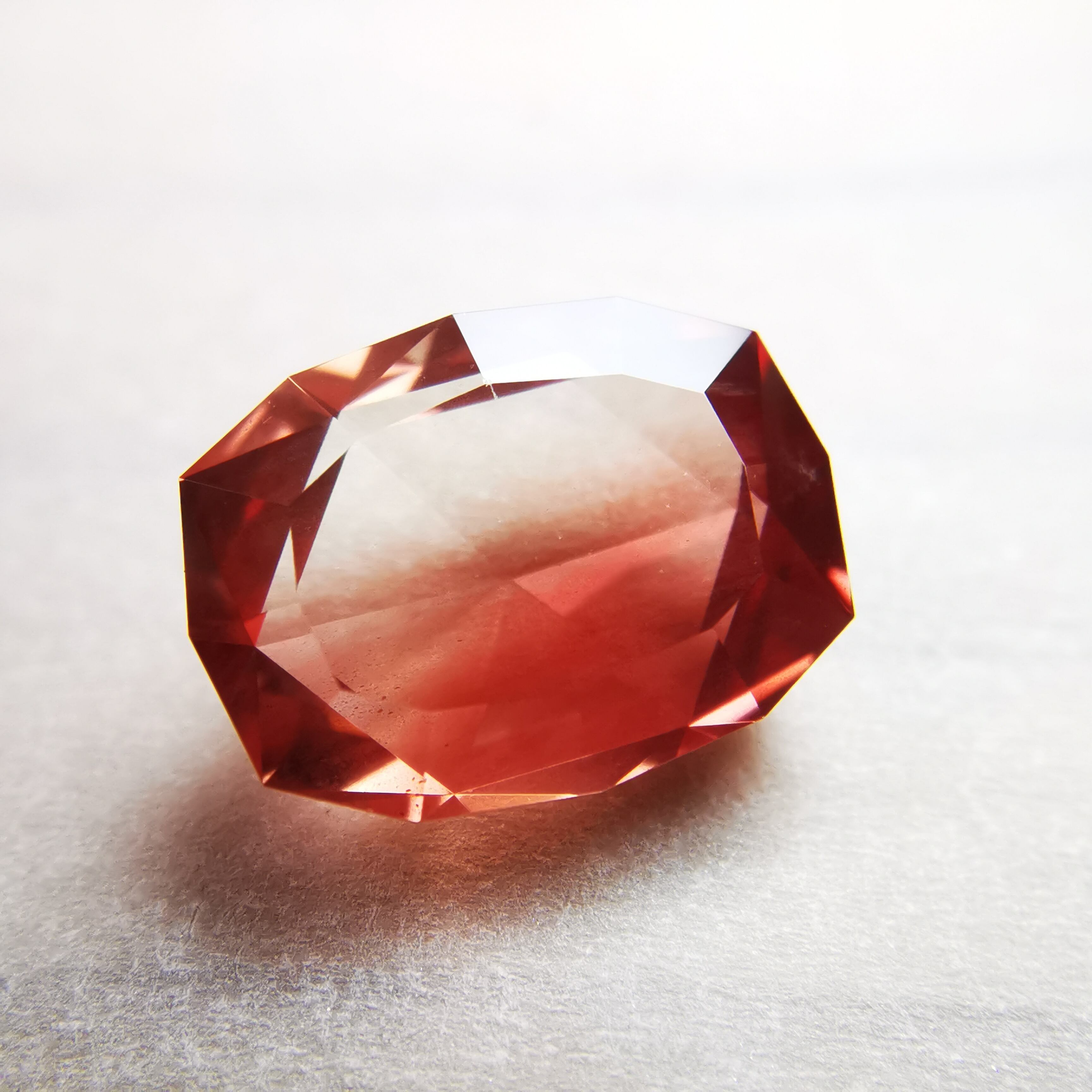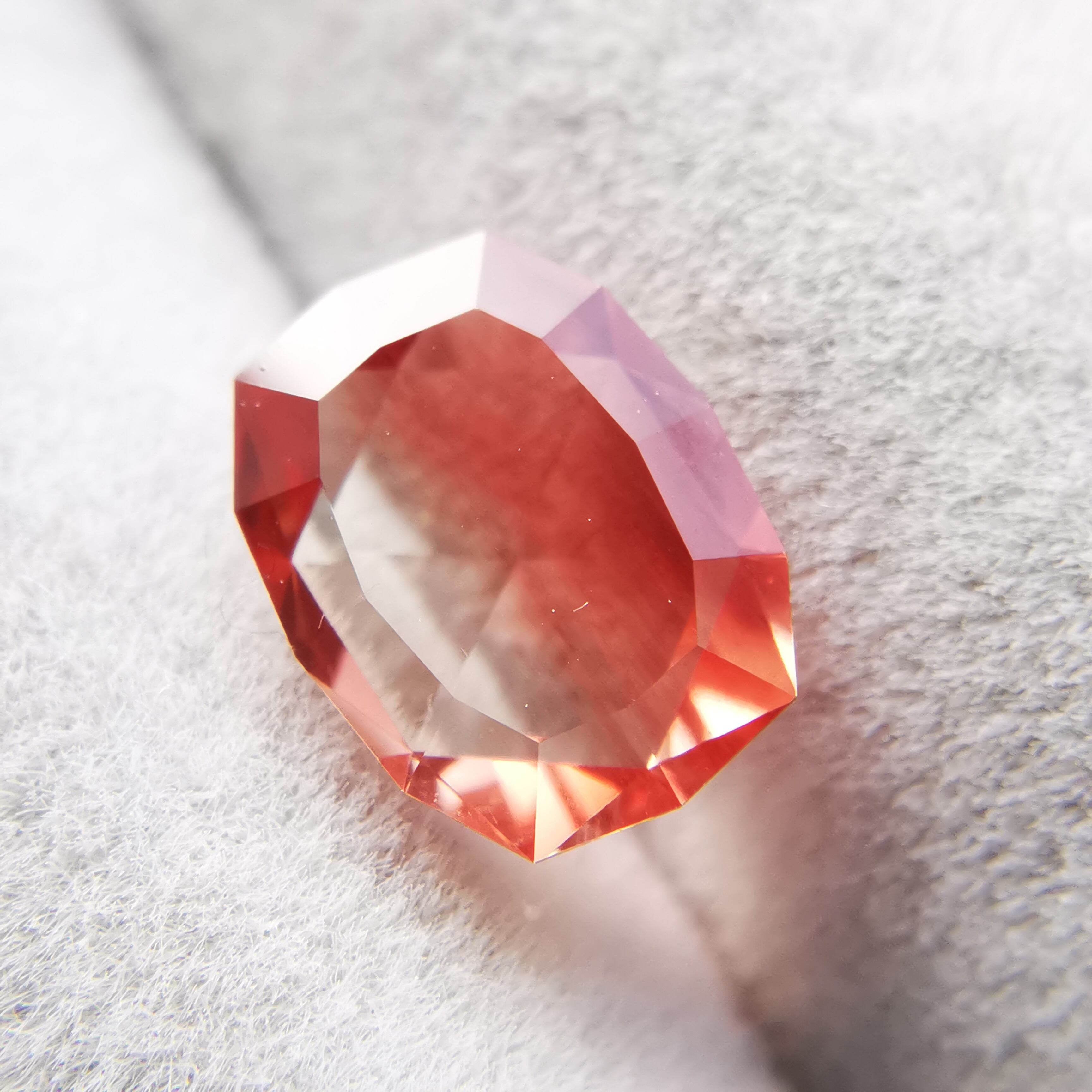 鮮やかな緋色とクリアのバイカラーのオレゴンサンストーンです。