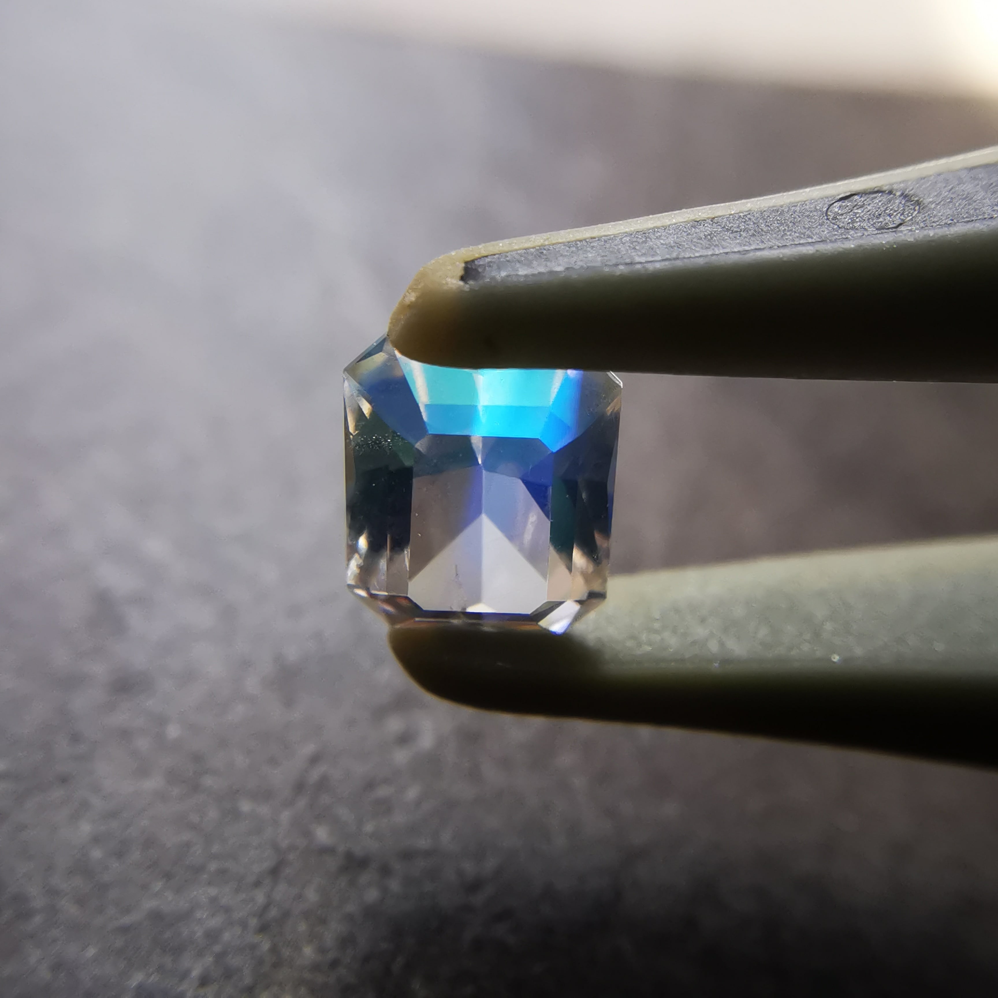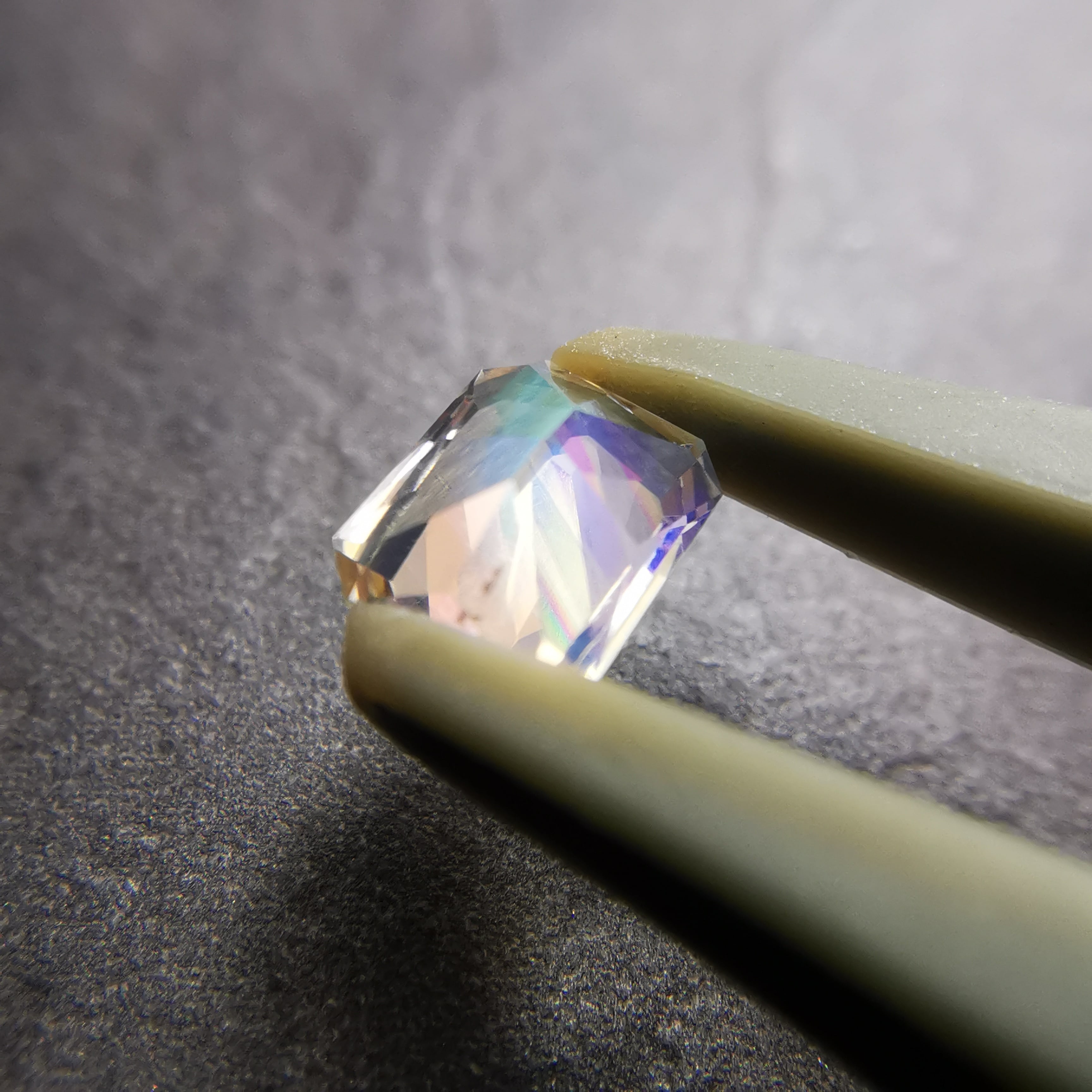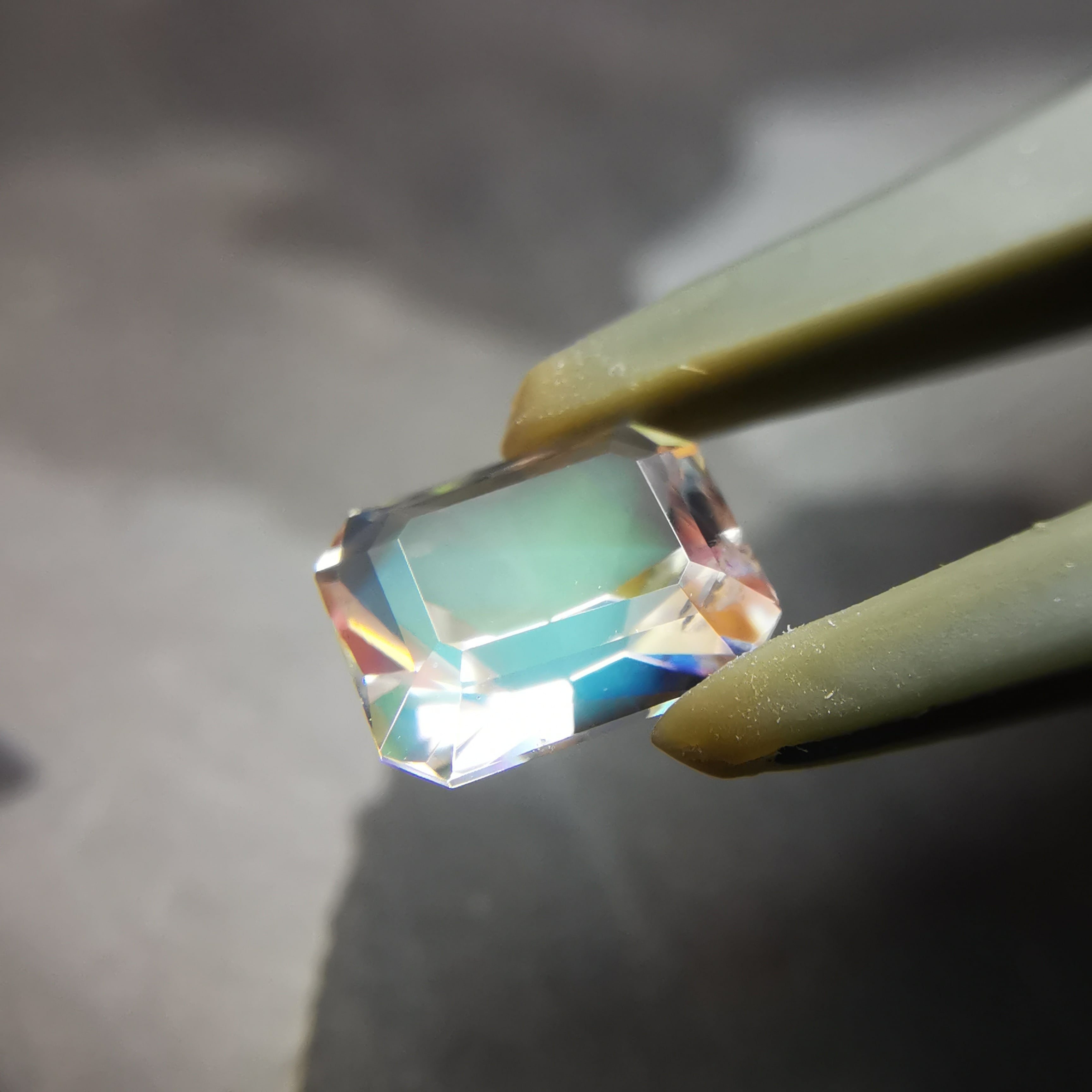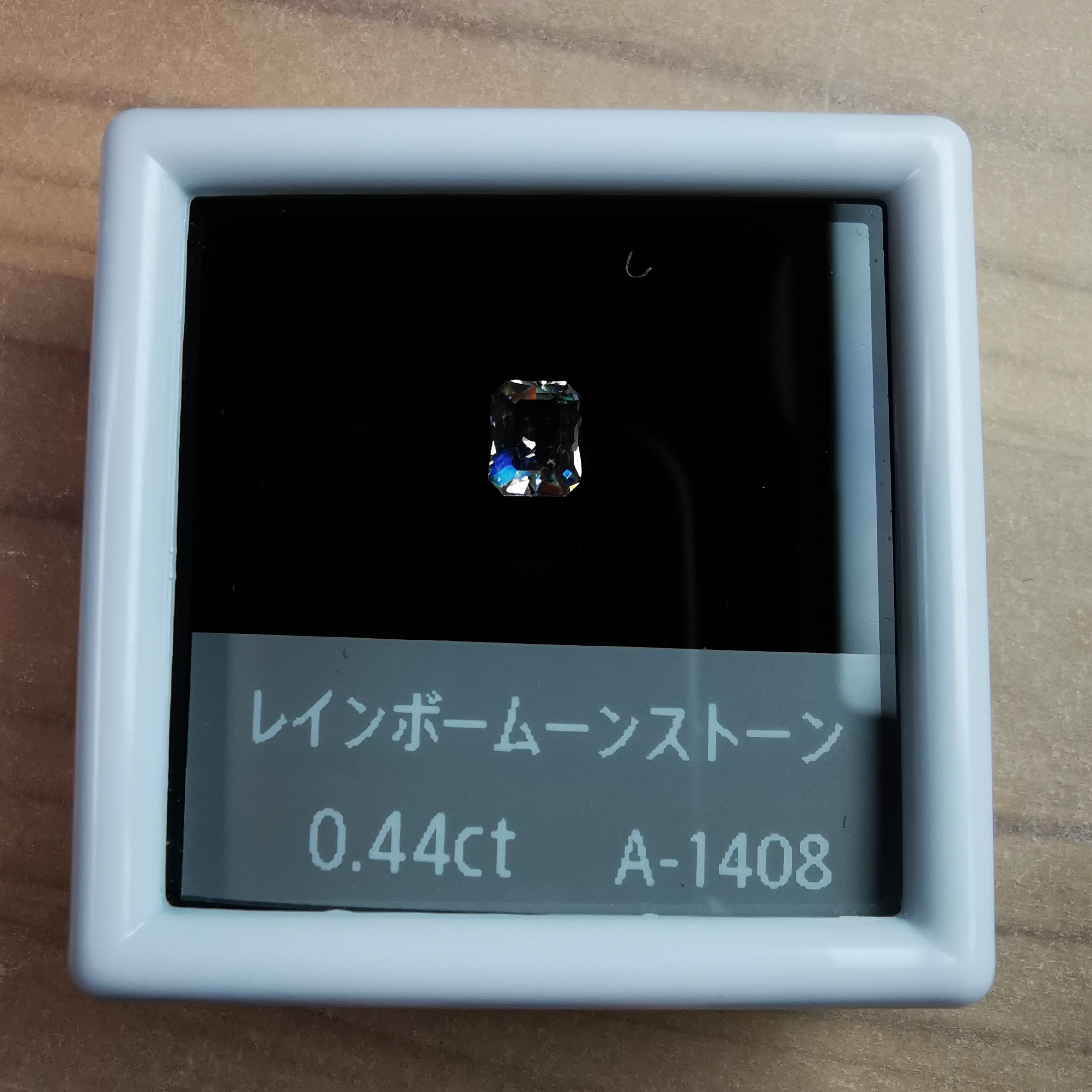 一見クリアな一石ですが、動かすと、ブルー、グリーン、イエロー、ピンク、本当に全ての虹の色が見えているのではないかと思うようなレインボームーンストーンです。
