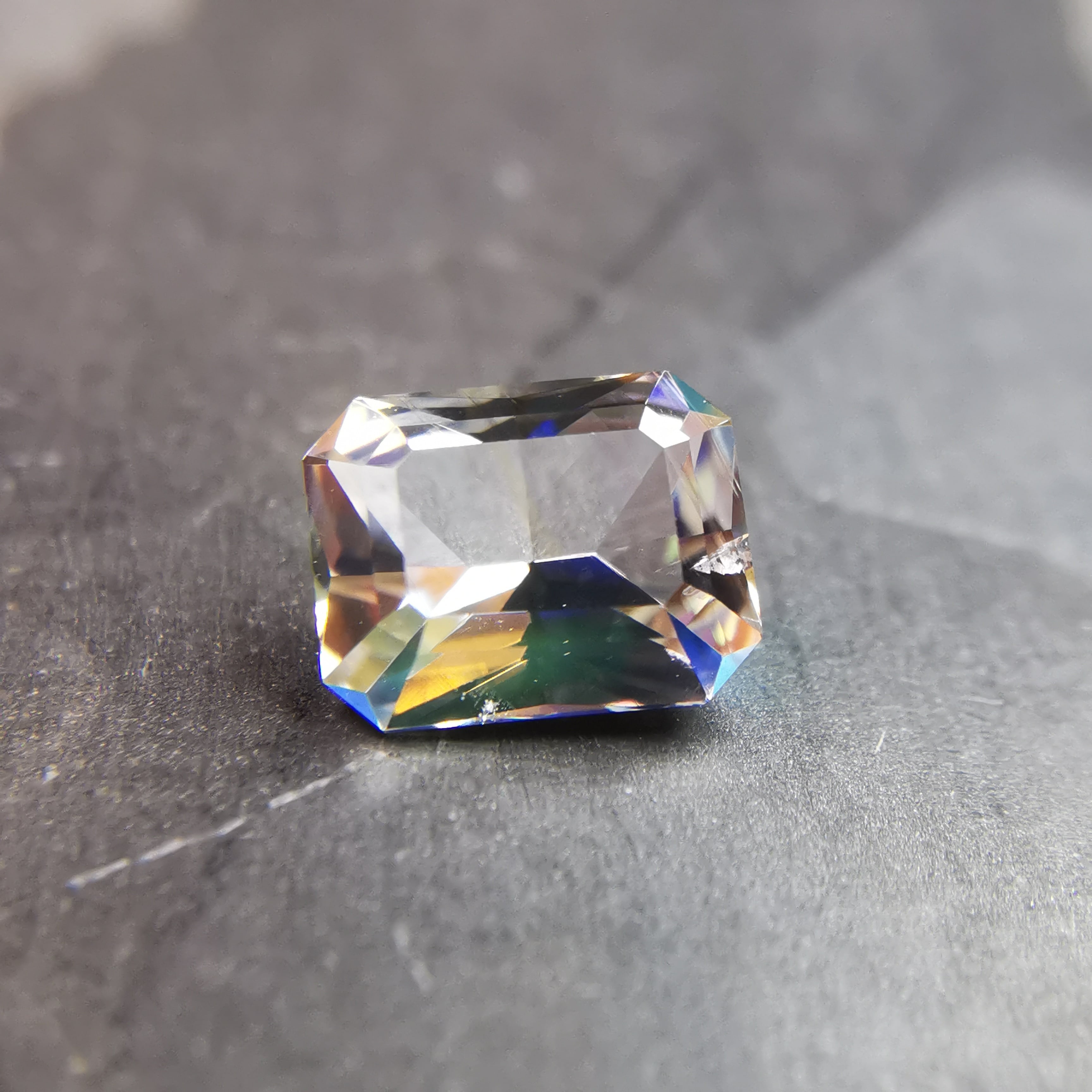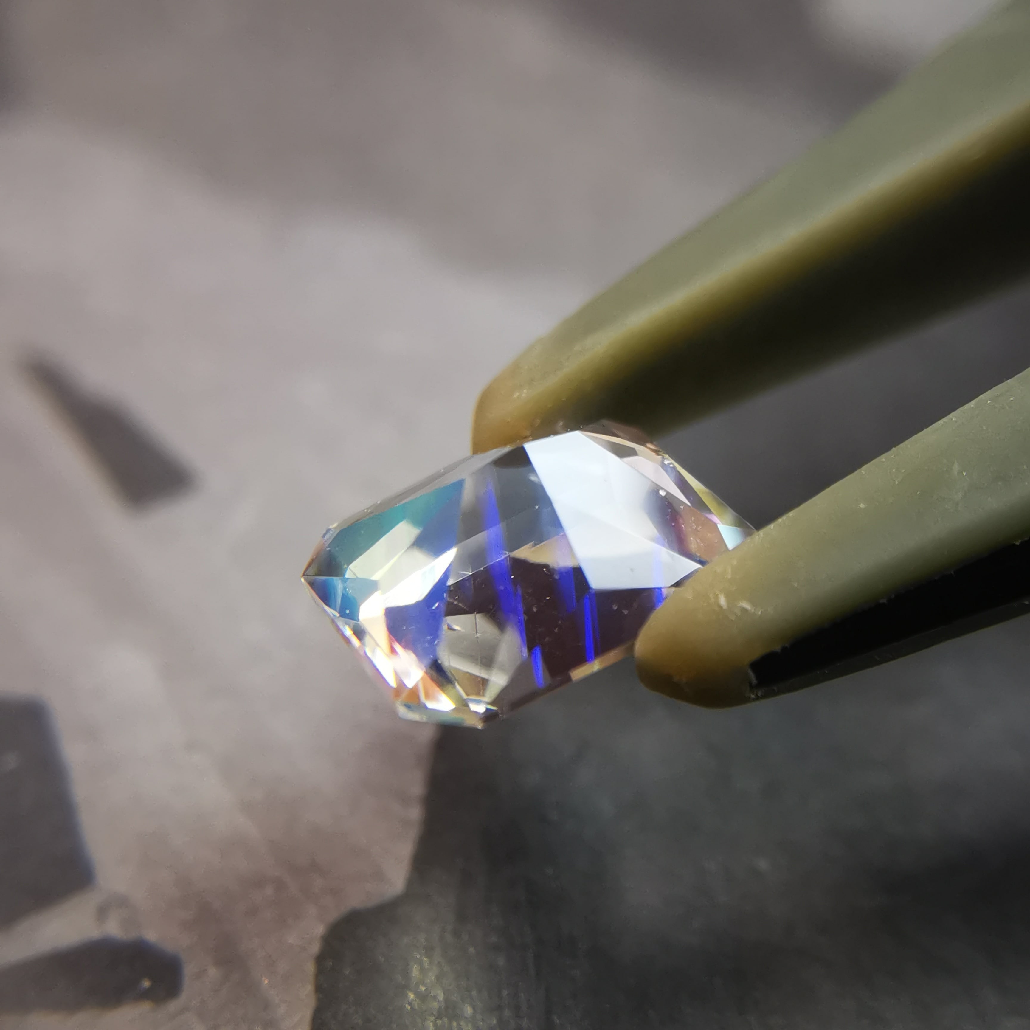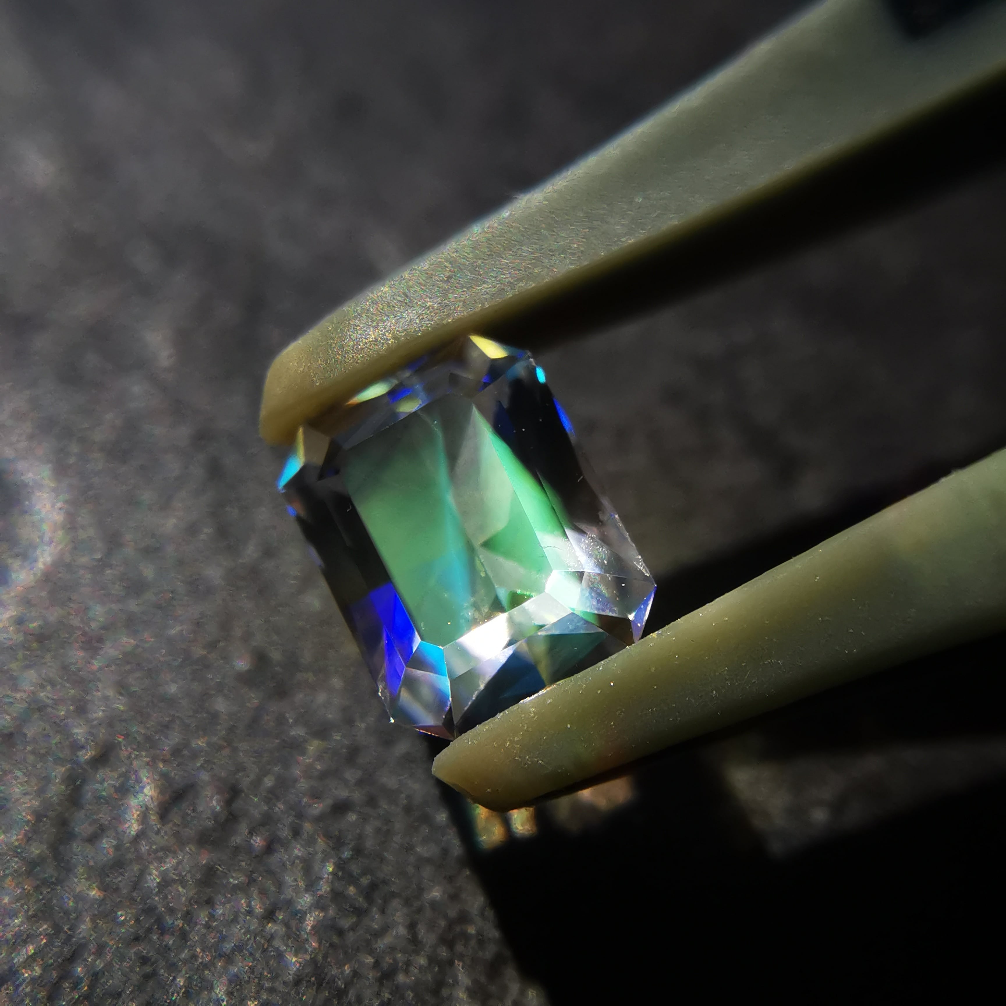 一見クリアな一石ですが、動かすと、ブルー、グリーン、イエロー、ピンク、本当に全ての虹の色が見えているのではないかと思うようなレインボームーンストーンです。