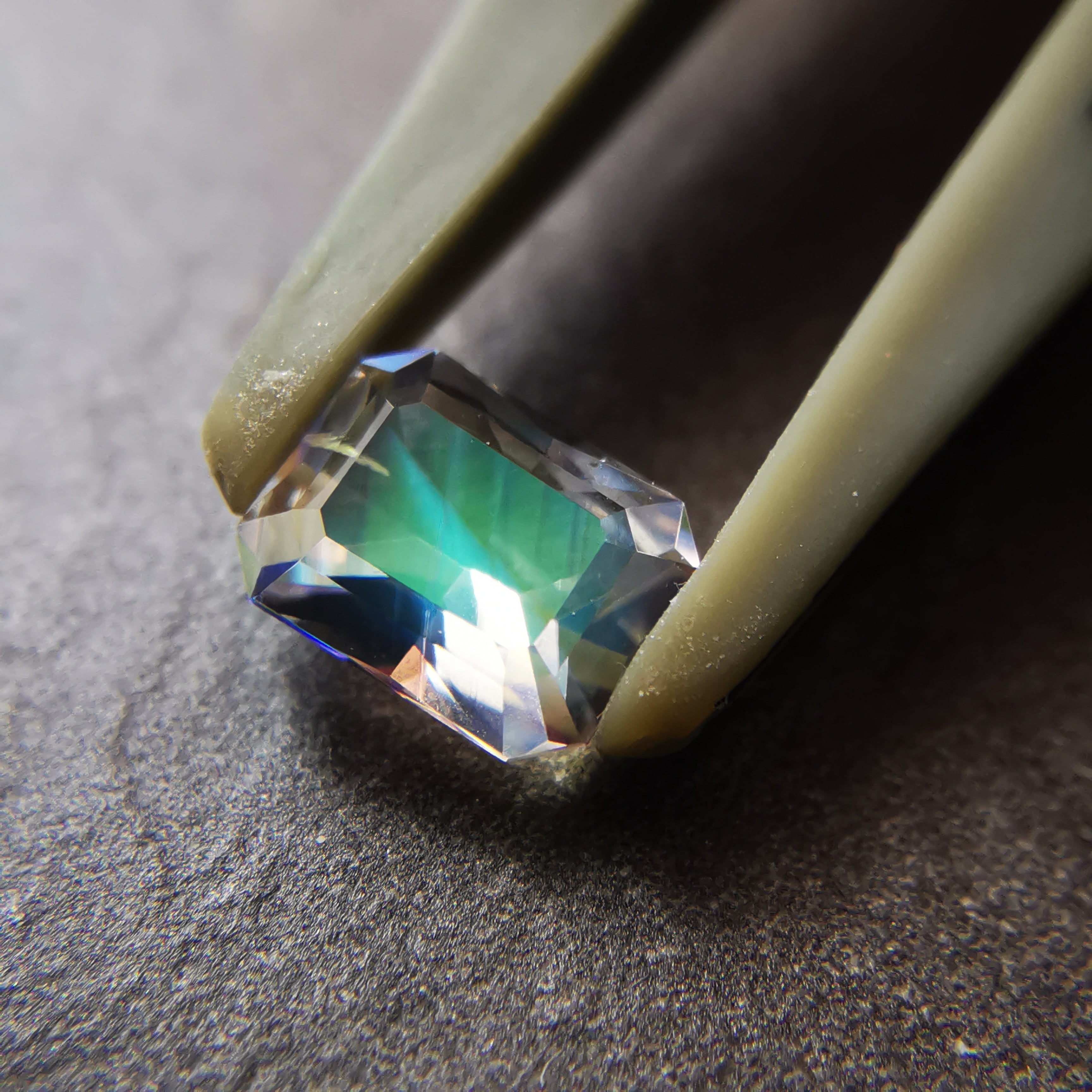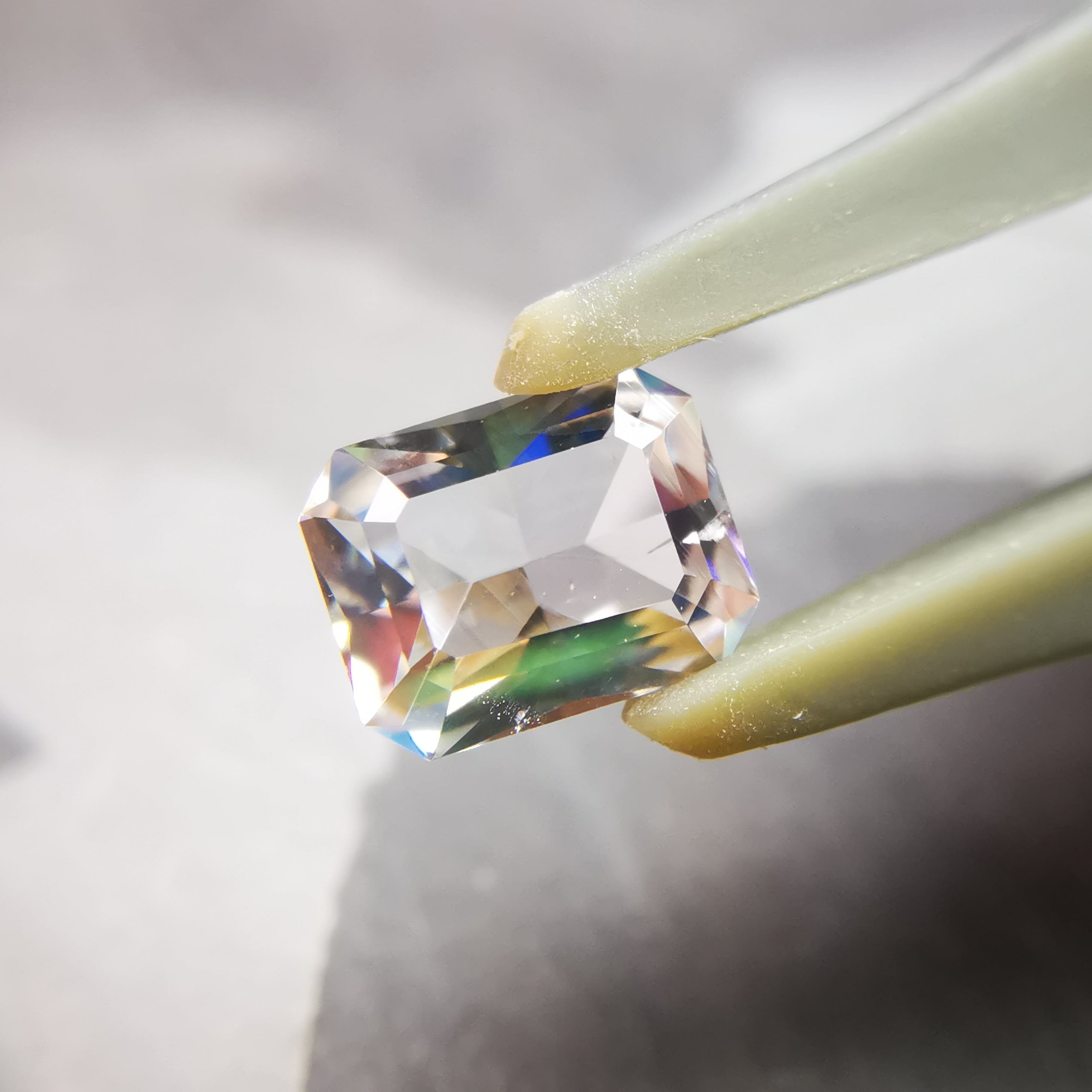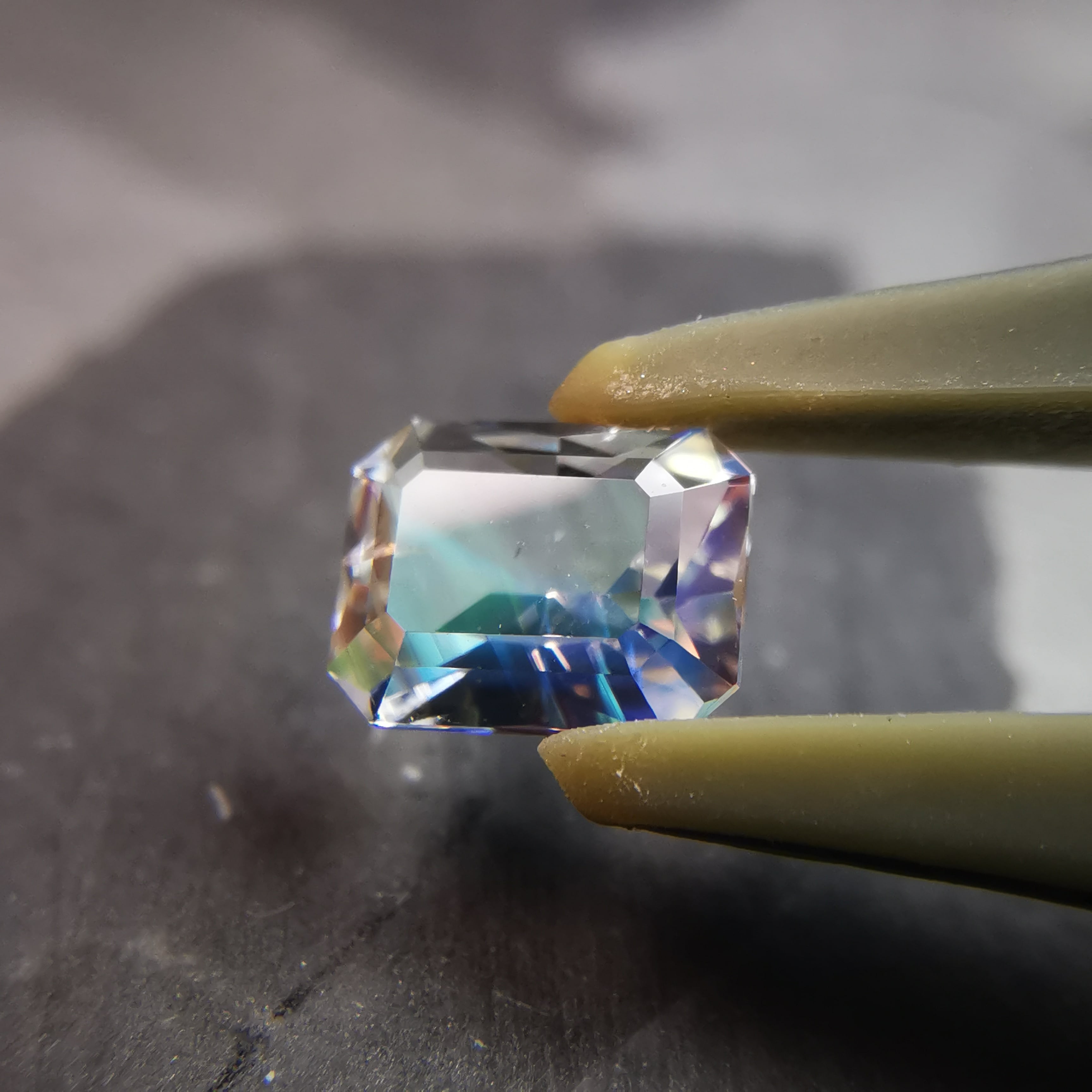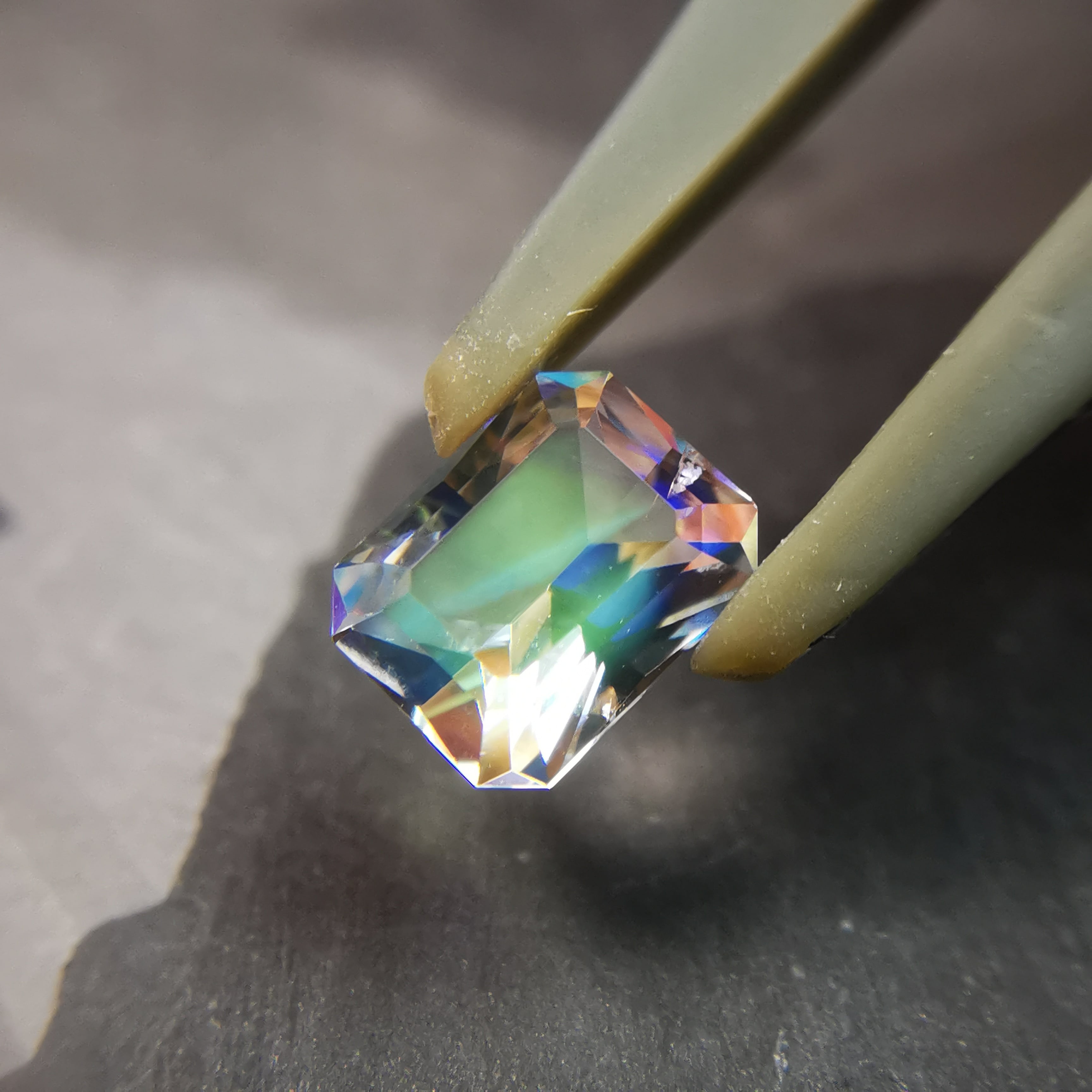 一見クリアな一石ですが、動かすと、ブルー、グリーン、イエロー、ピンク、本当に全ての虹の色が見えているのではないかと思うようなレインボームーンストーンです。