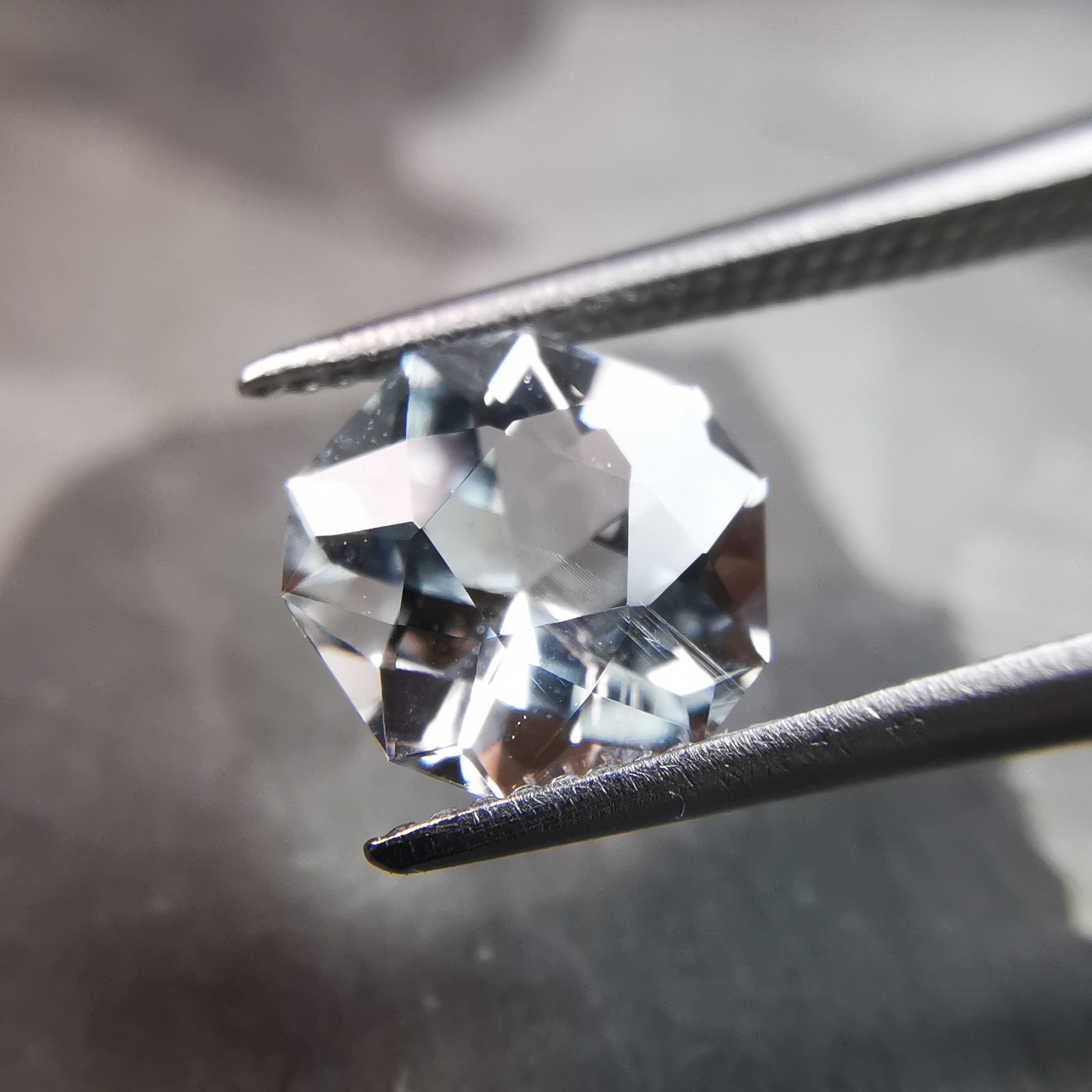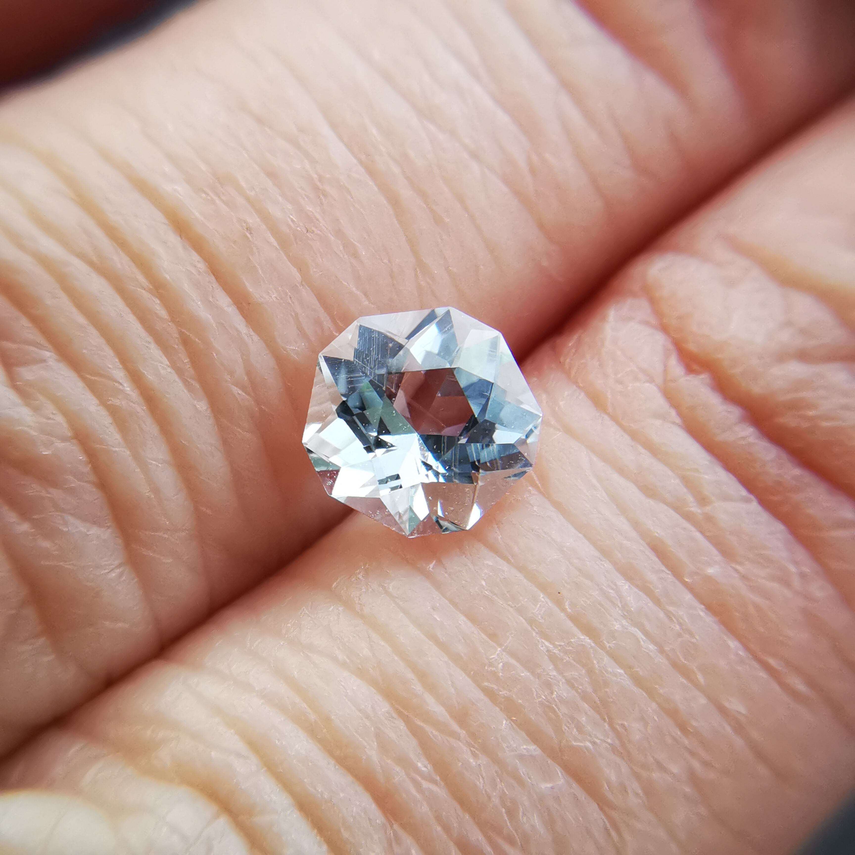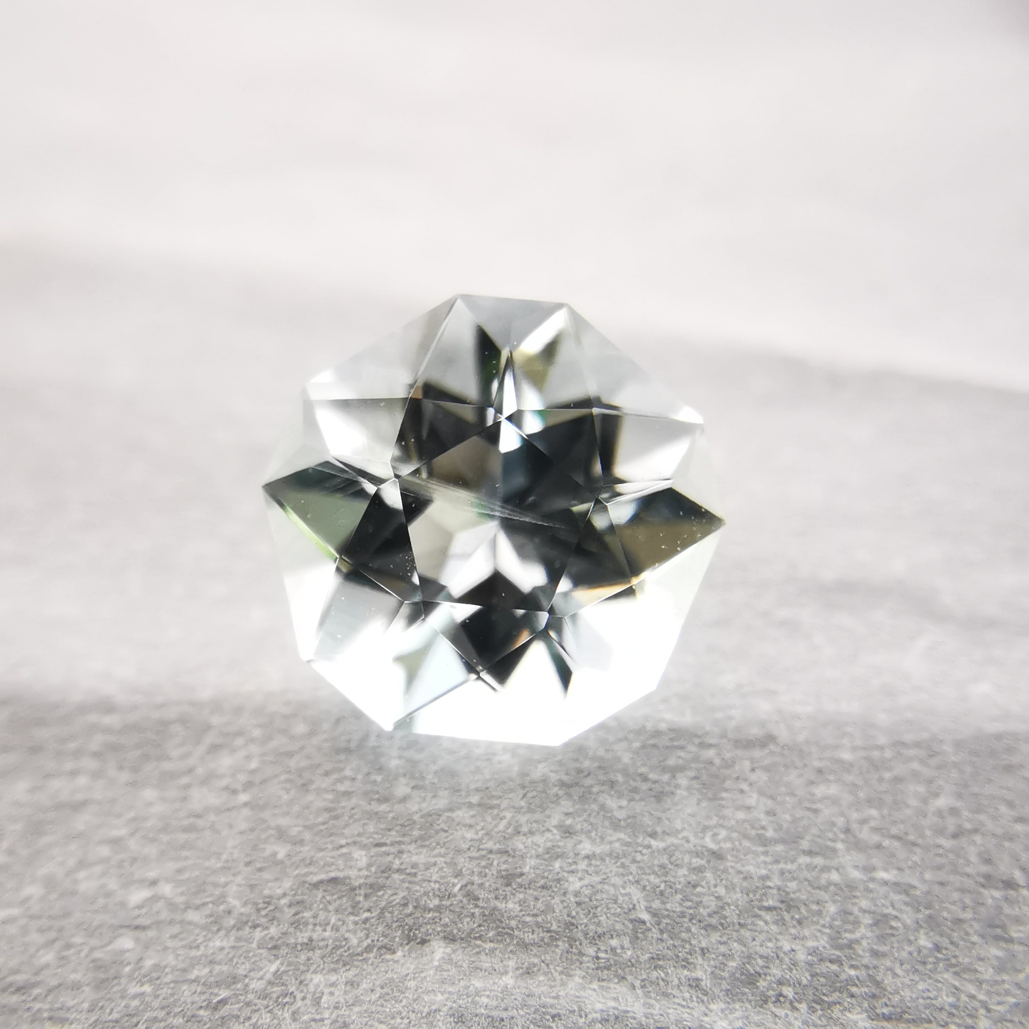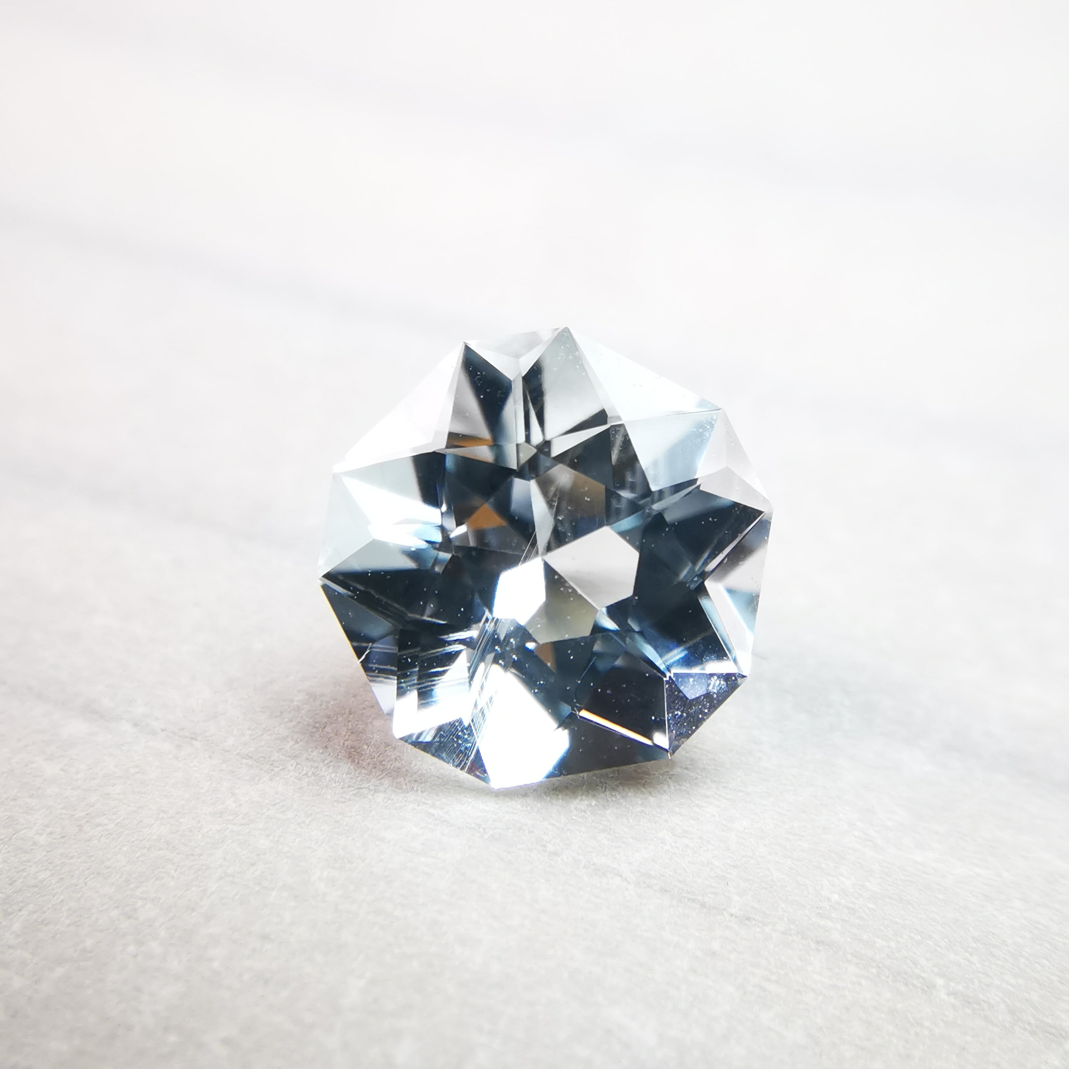 薄い緑みの青/水色のアクアマリンをフラワーカットにしました。