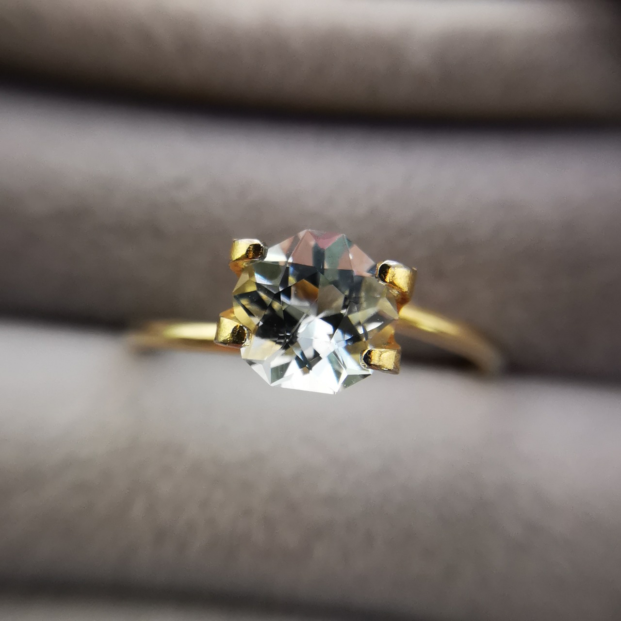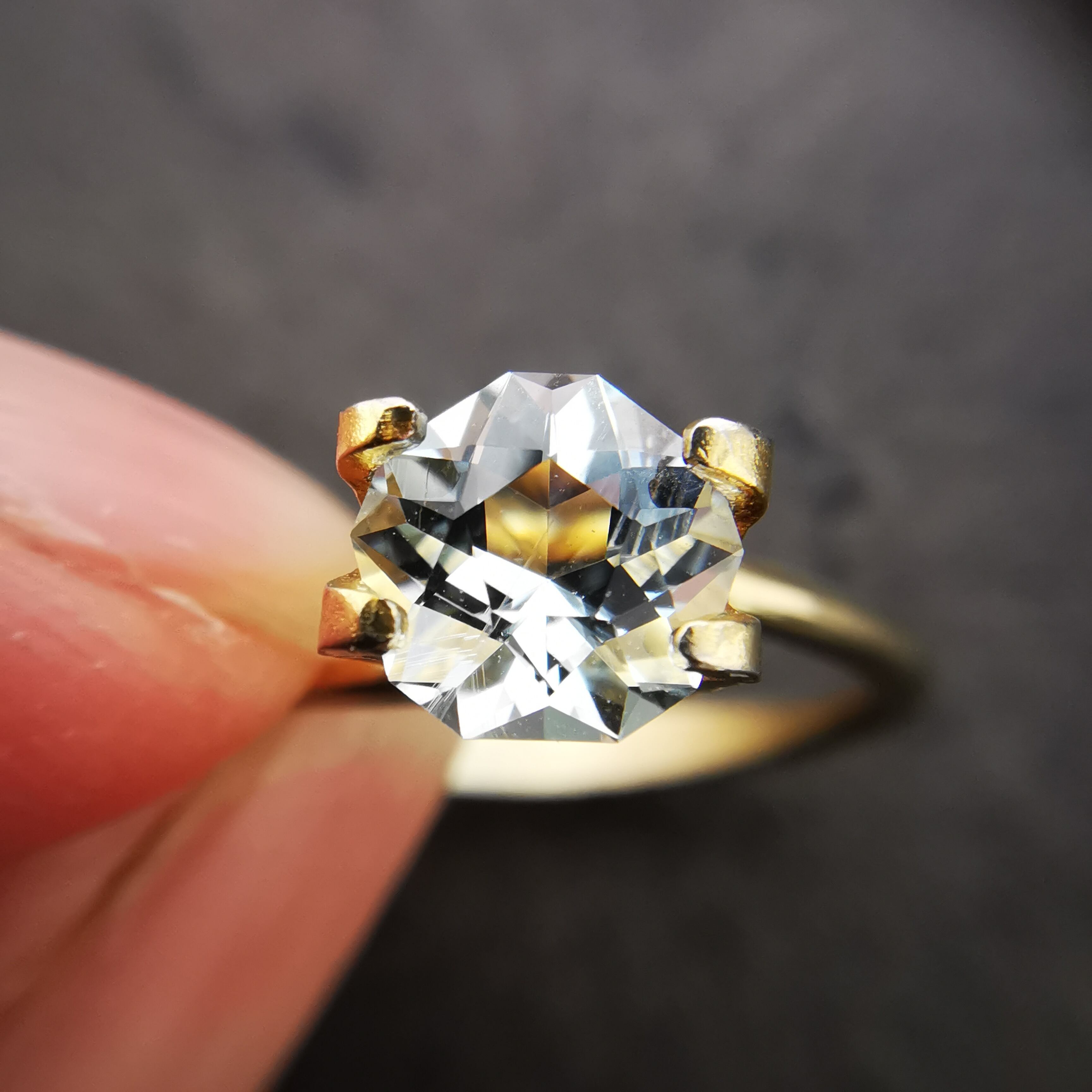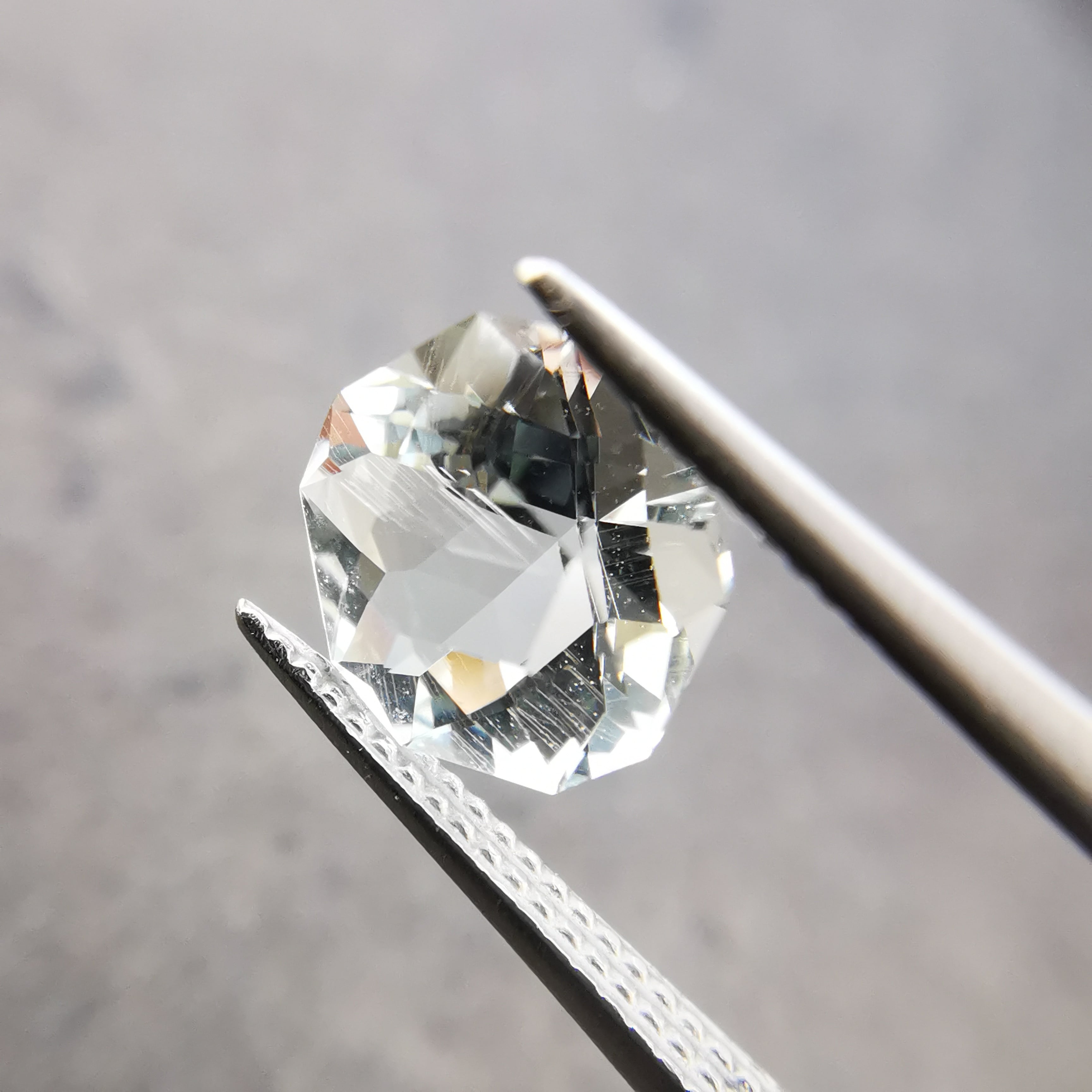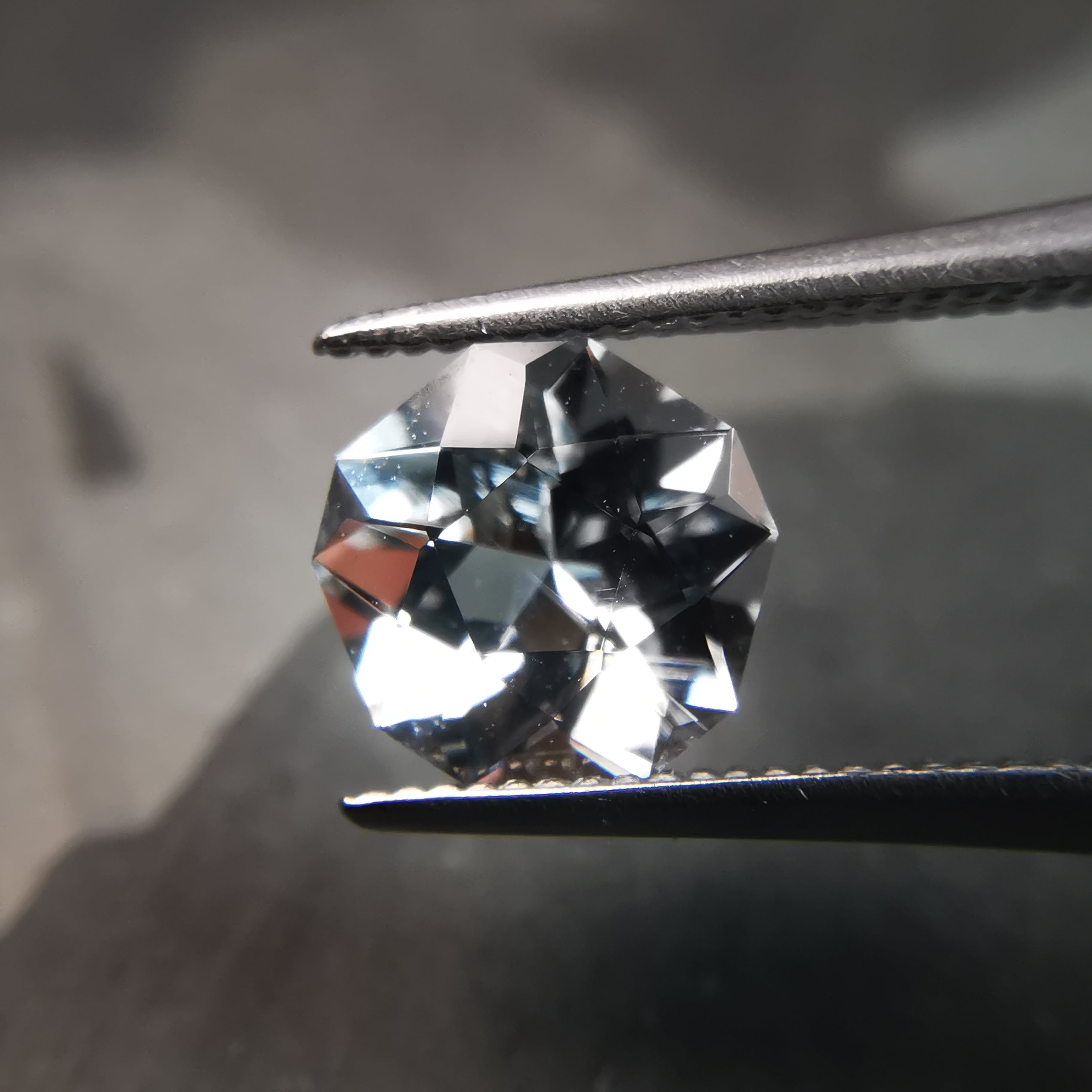 薄い緑みの青/水色のアクアマリンをフラワーカットにしました。