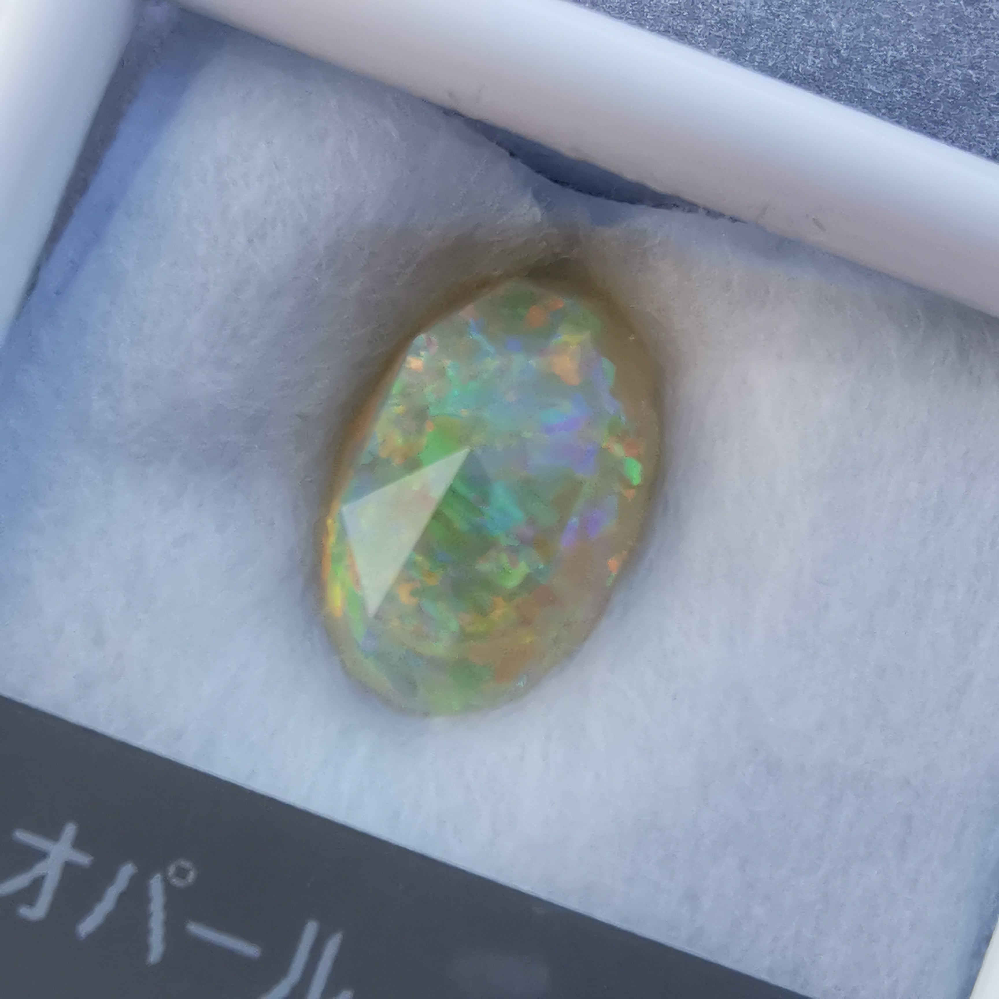 象牙色の石に、パステルカラーの遊色をこれでもかと詰め込んだようなオパールです。