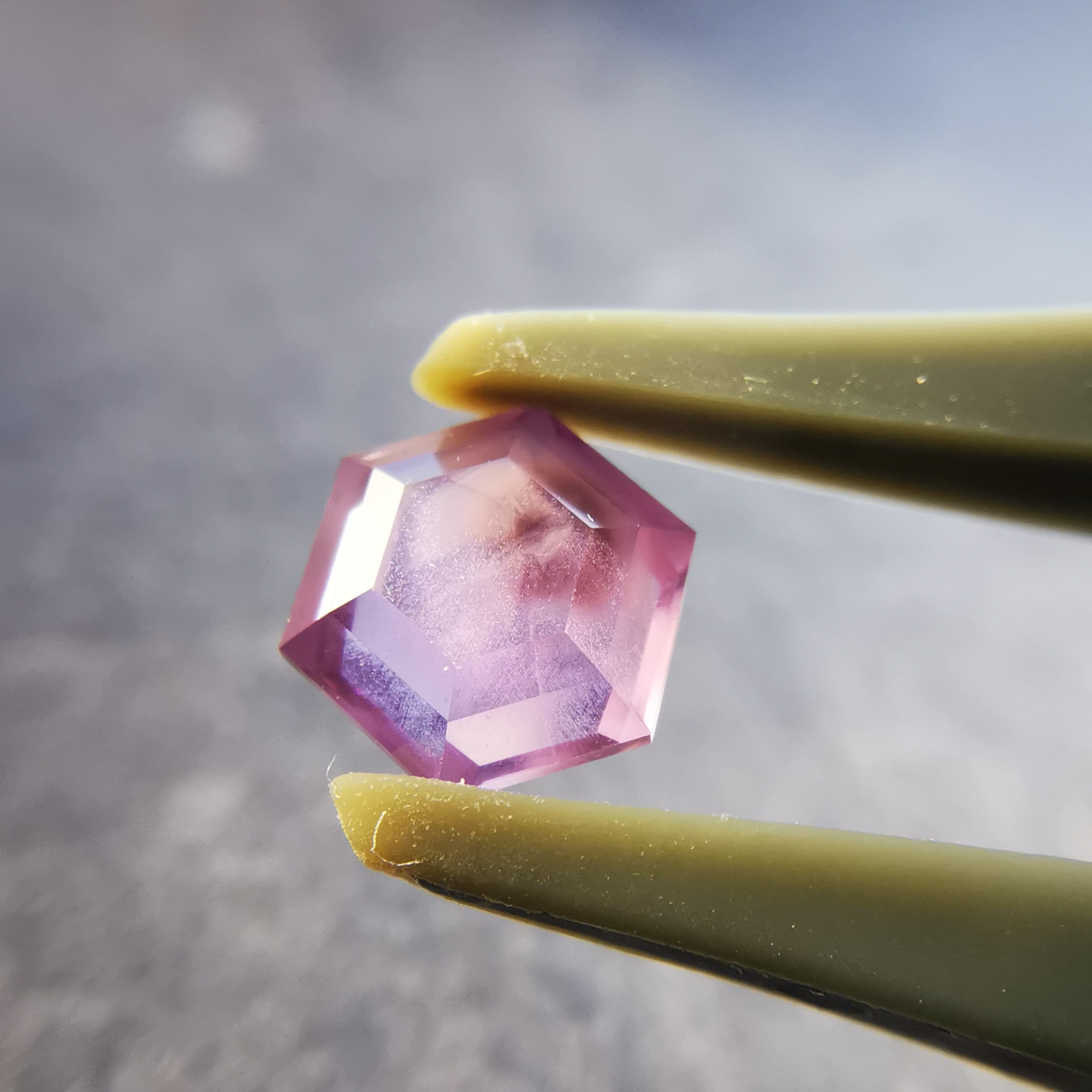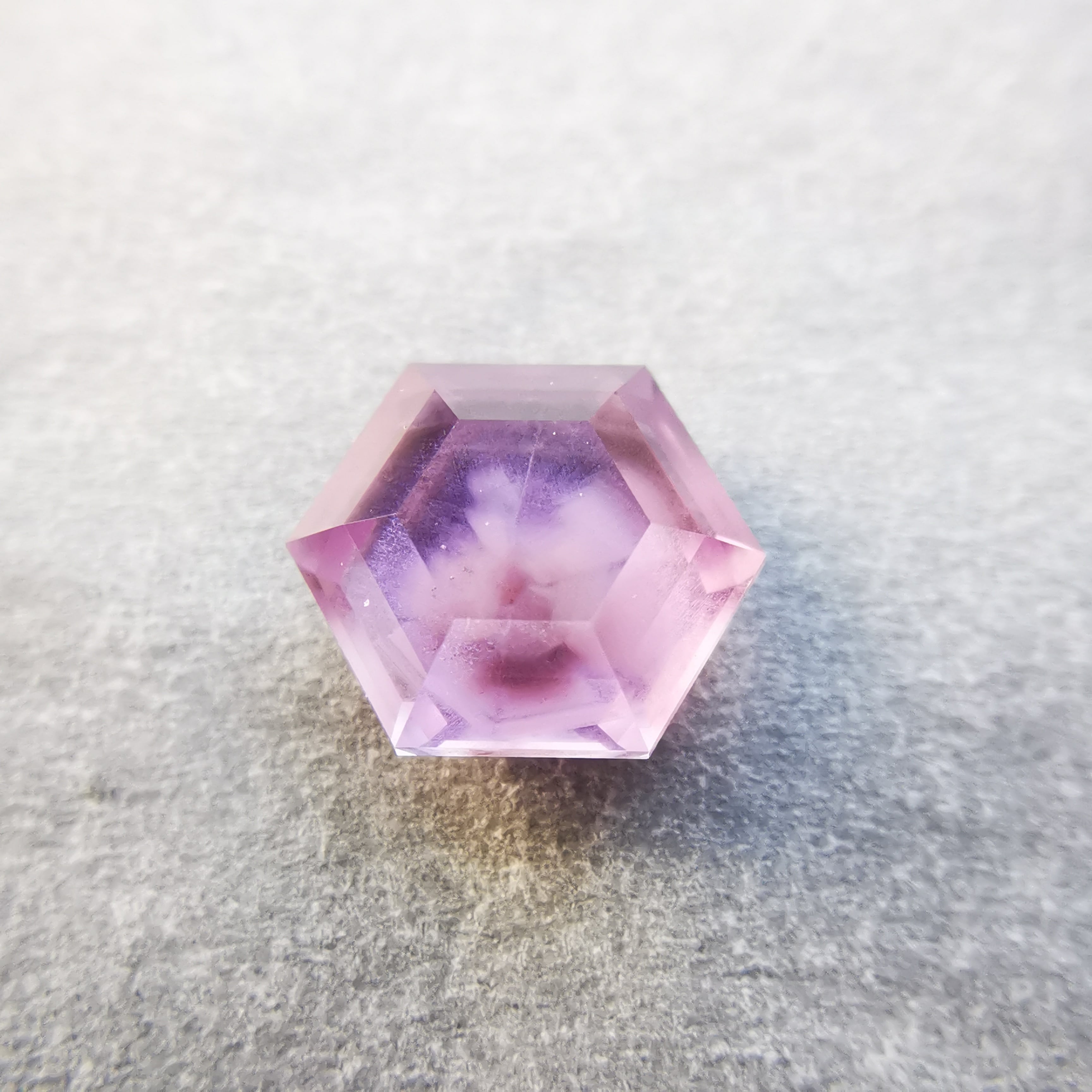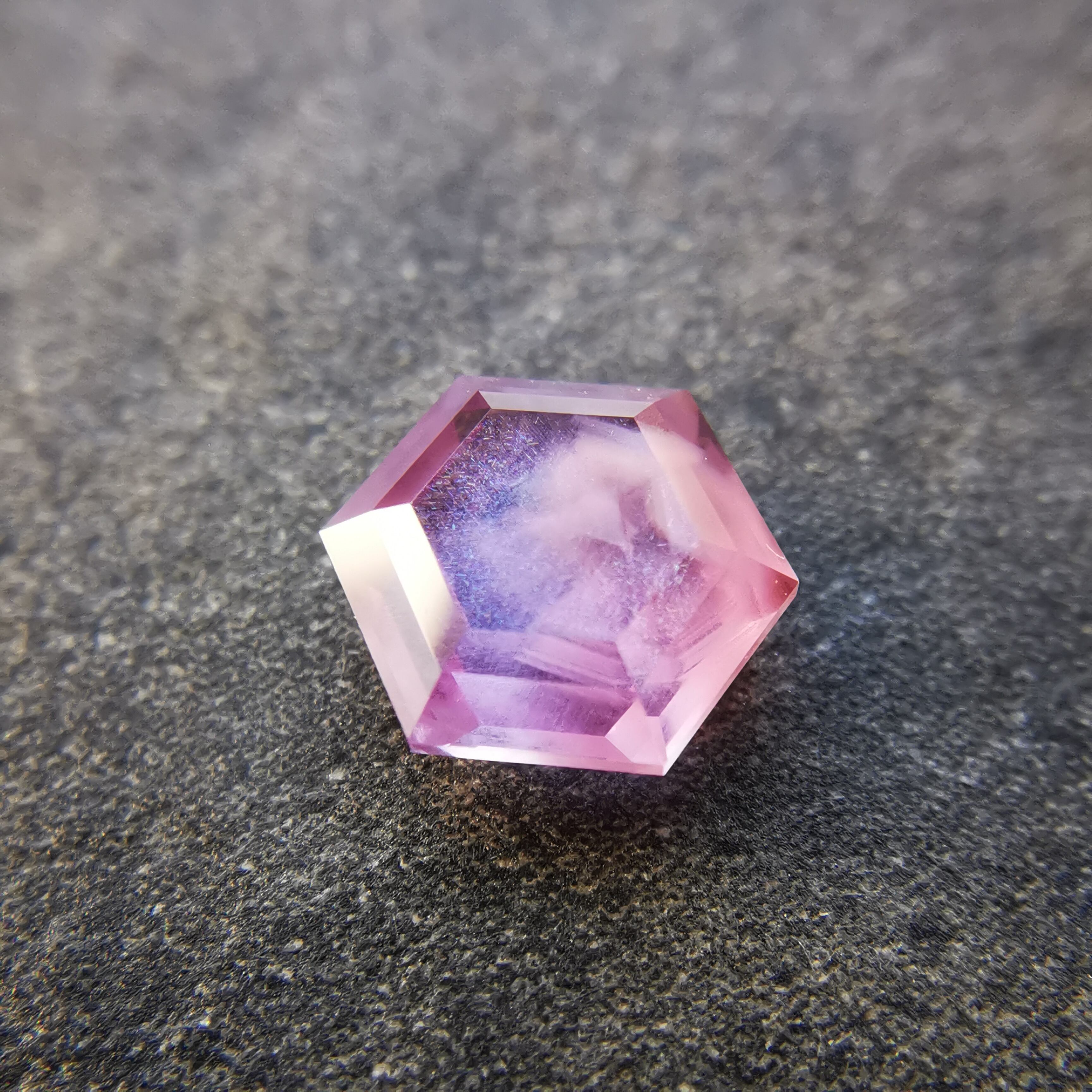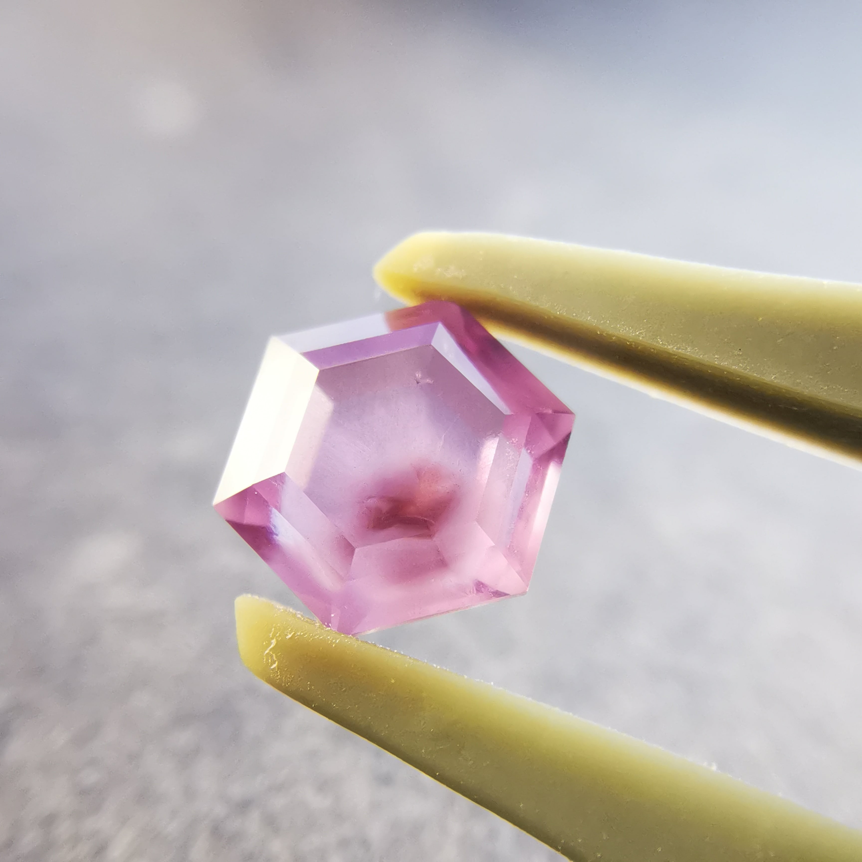 シルクインクルージョンの中心には、三角の模様がわずかに見えます。