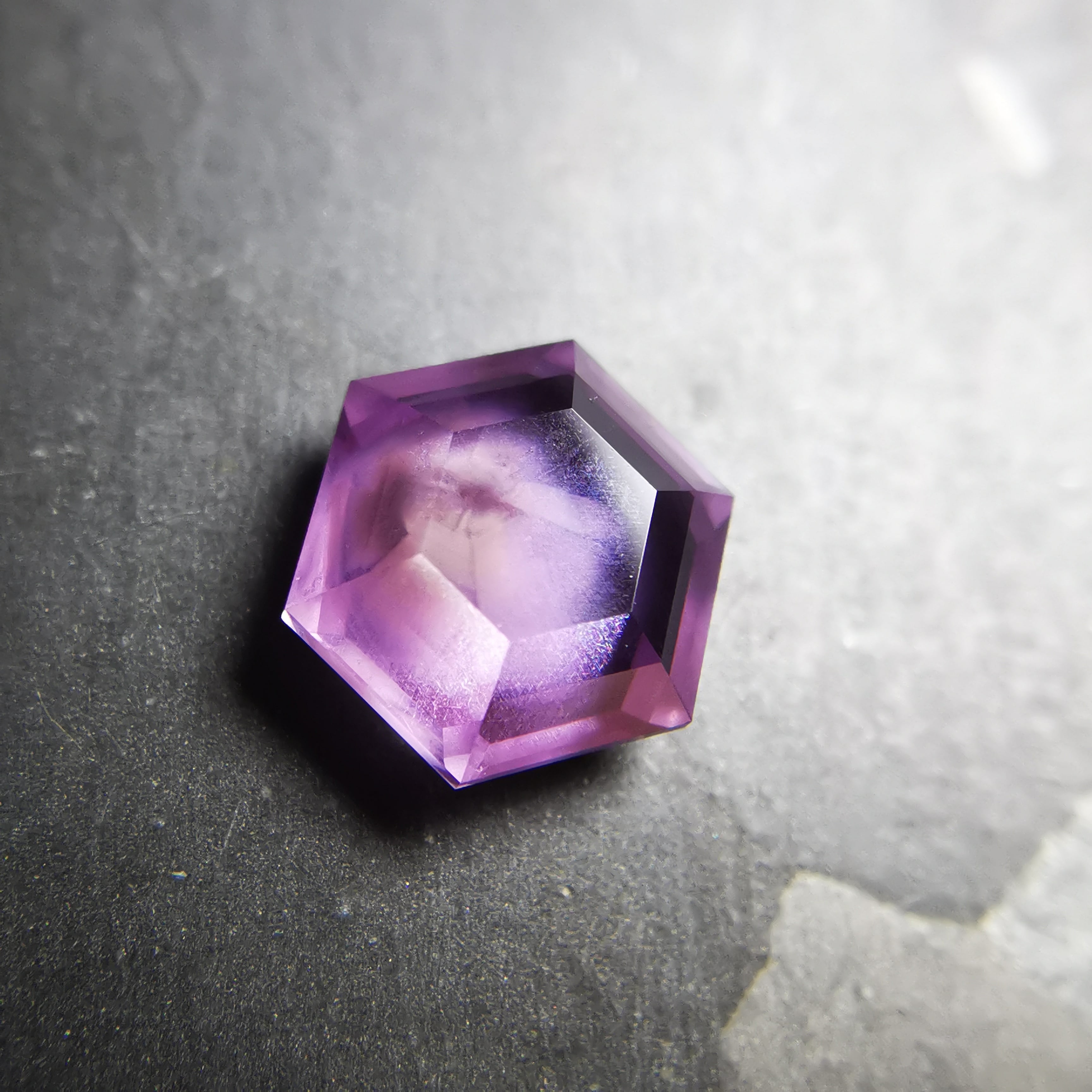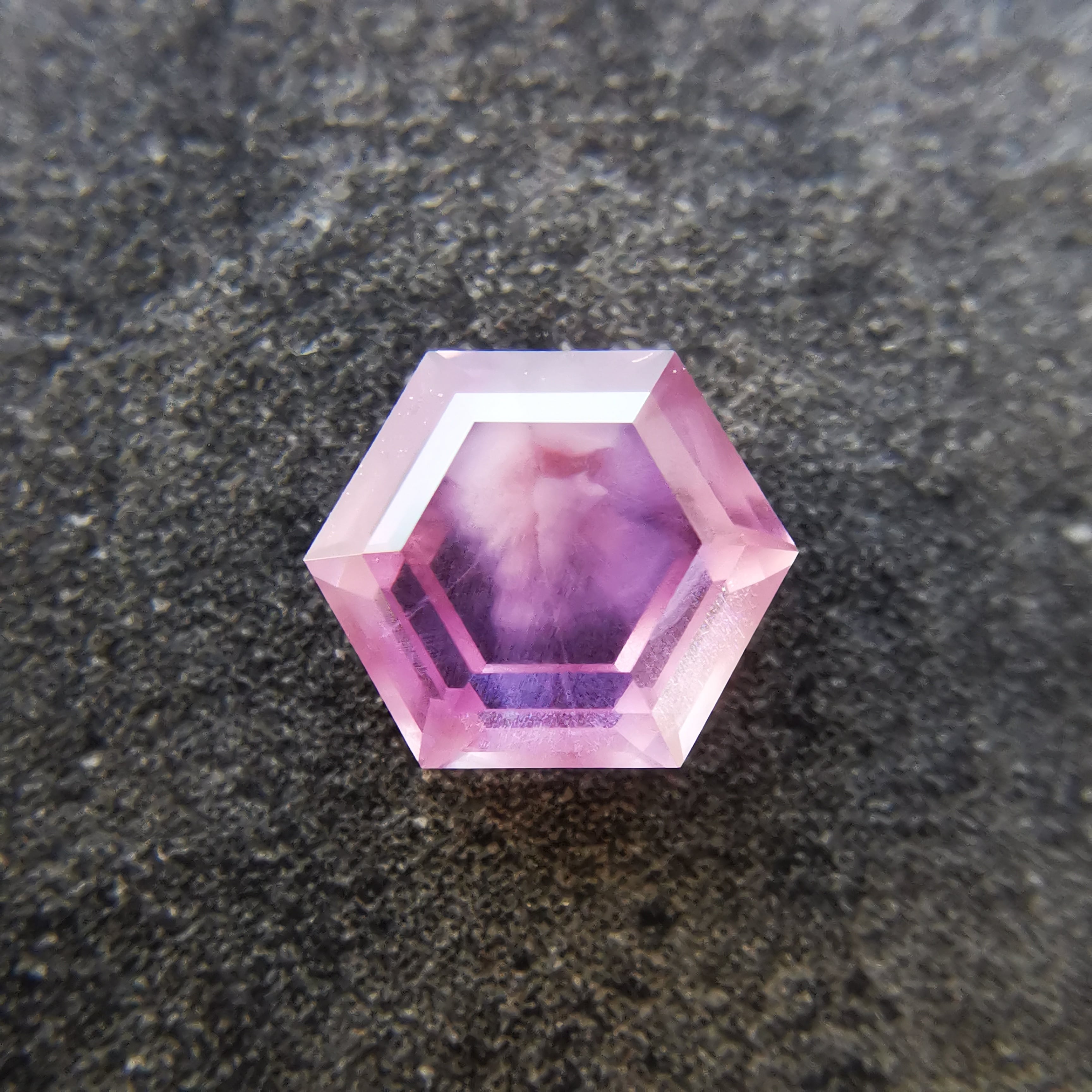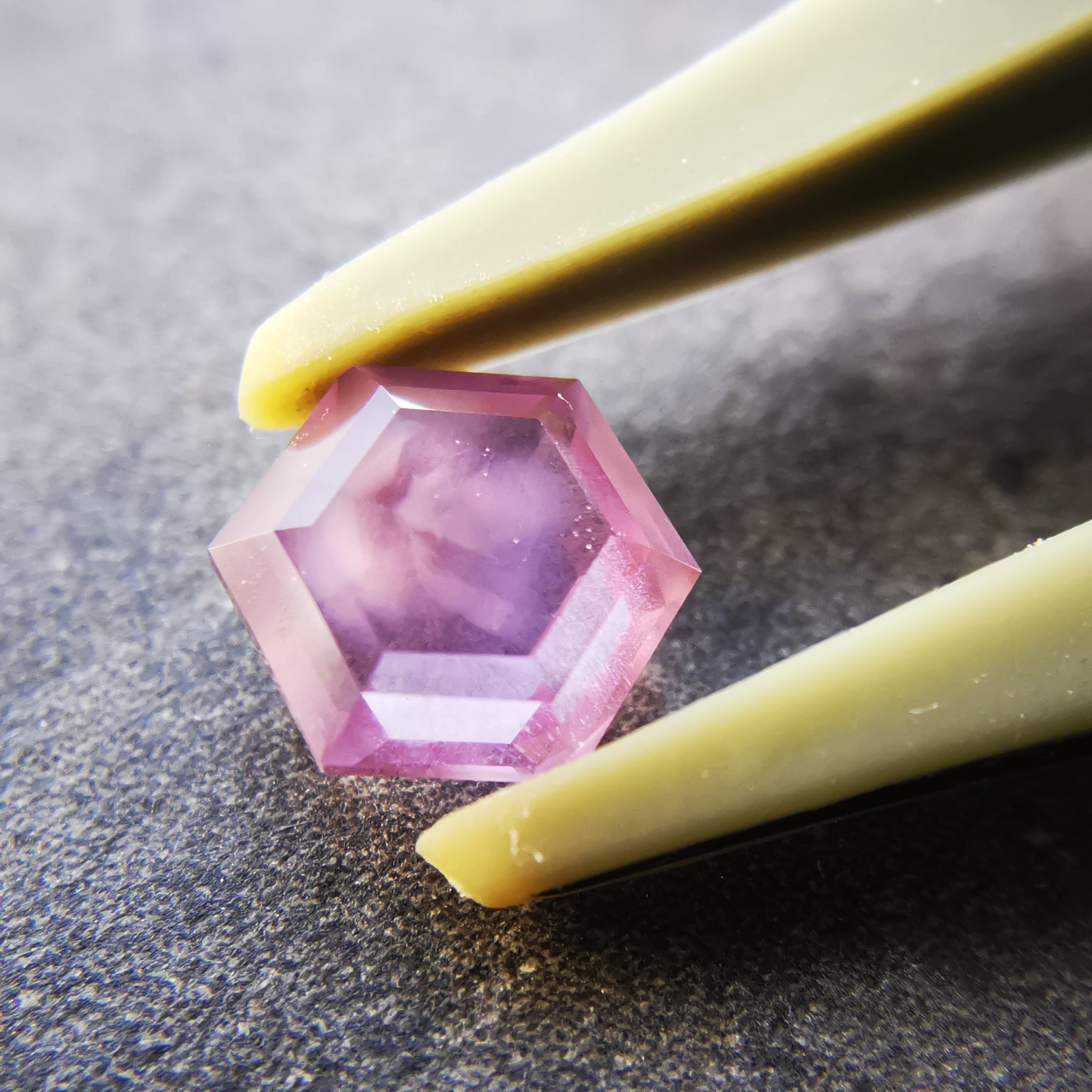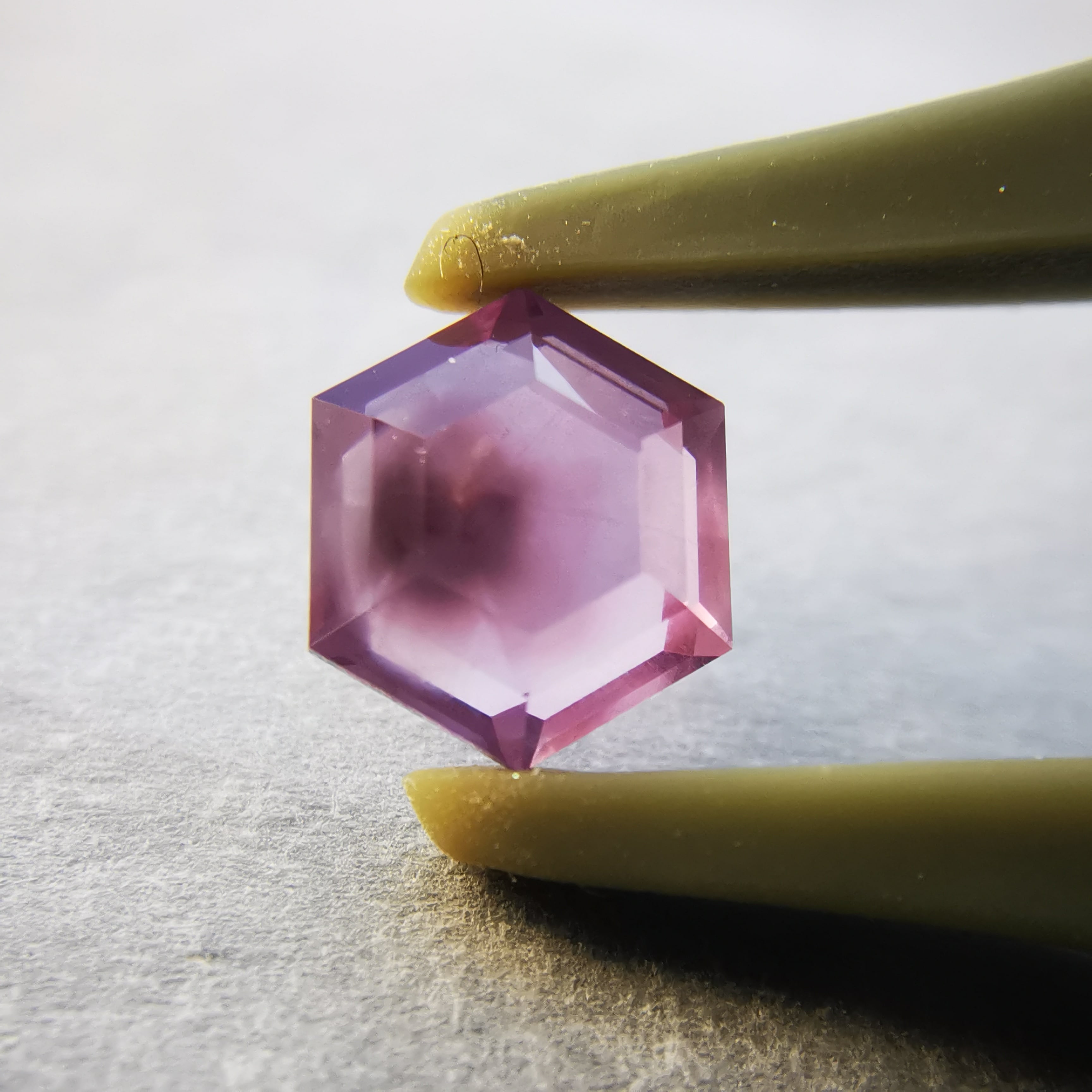 シルクインクルージョンの中心には、三角の模様がわずかに見えます。