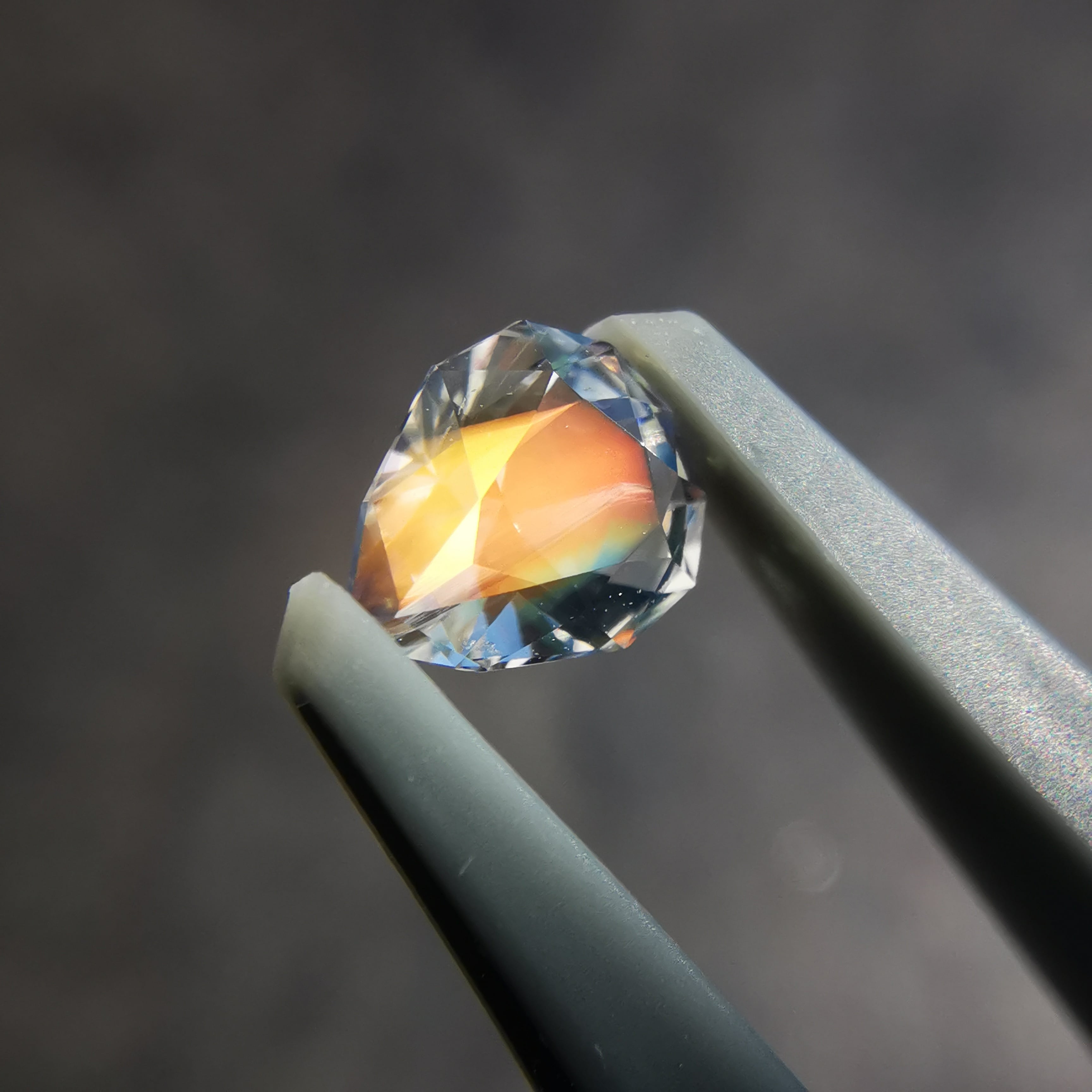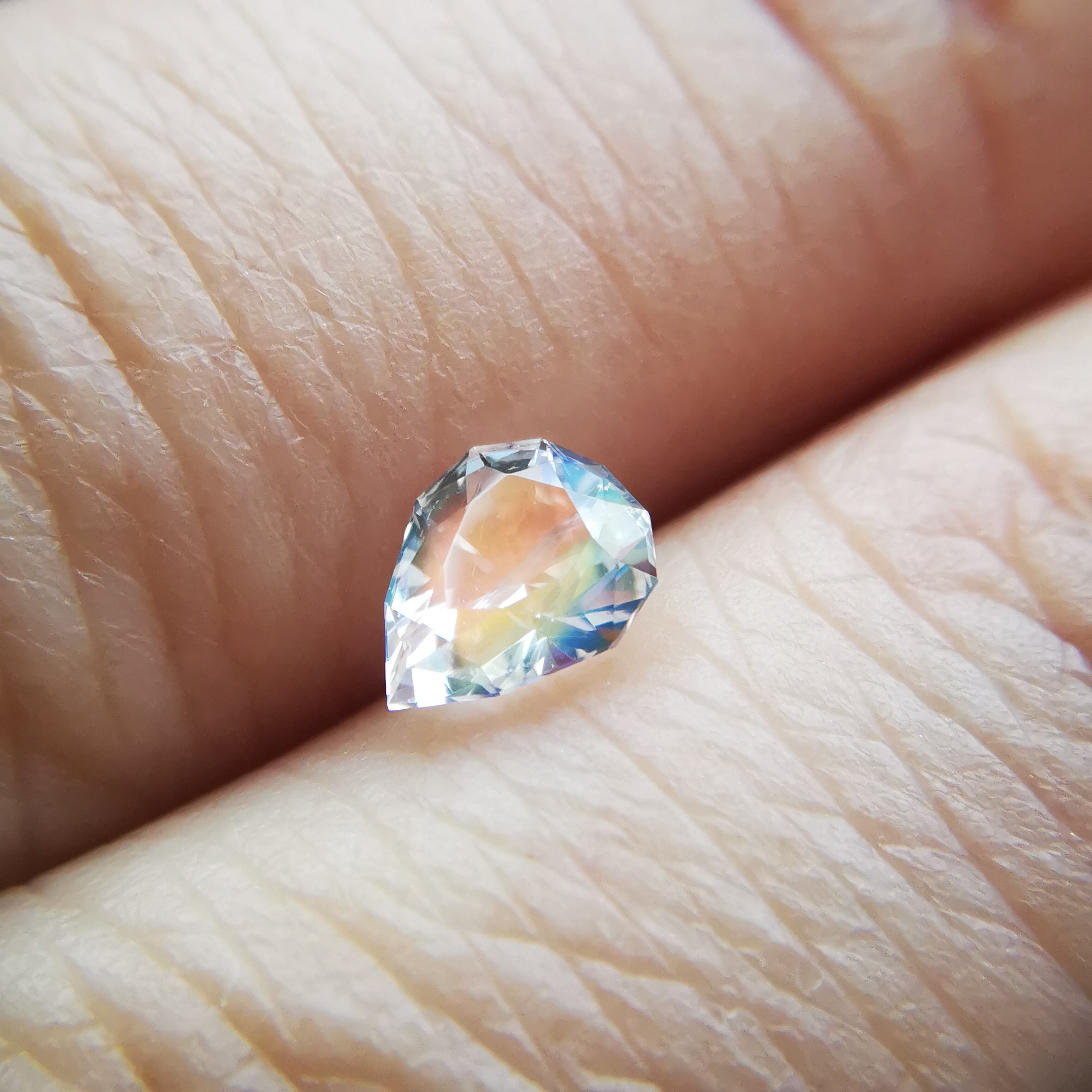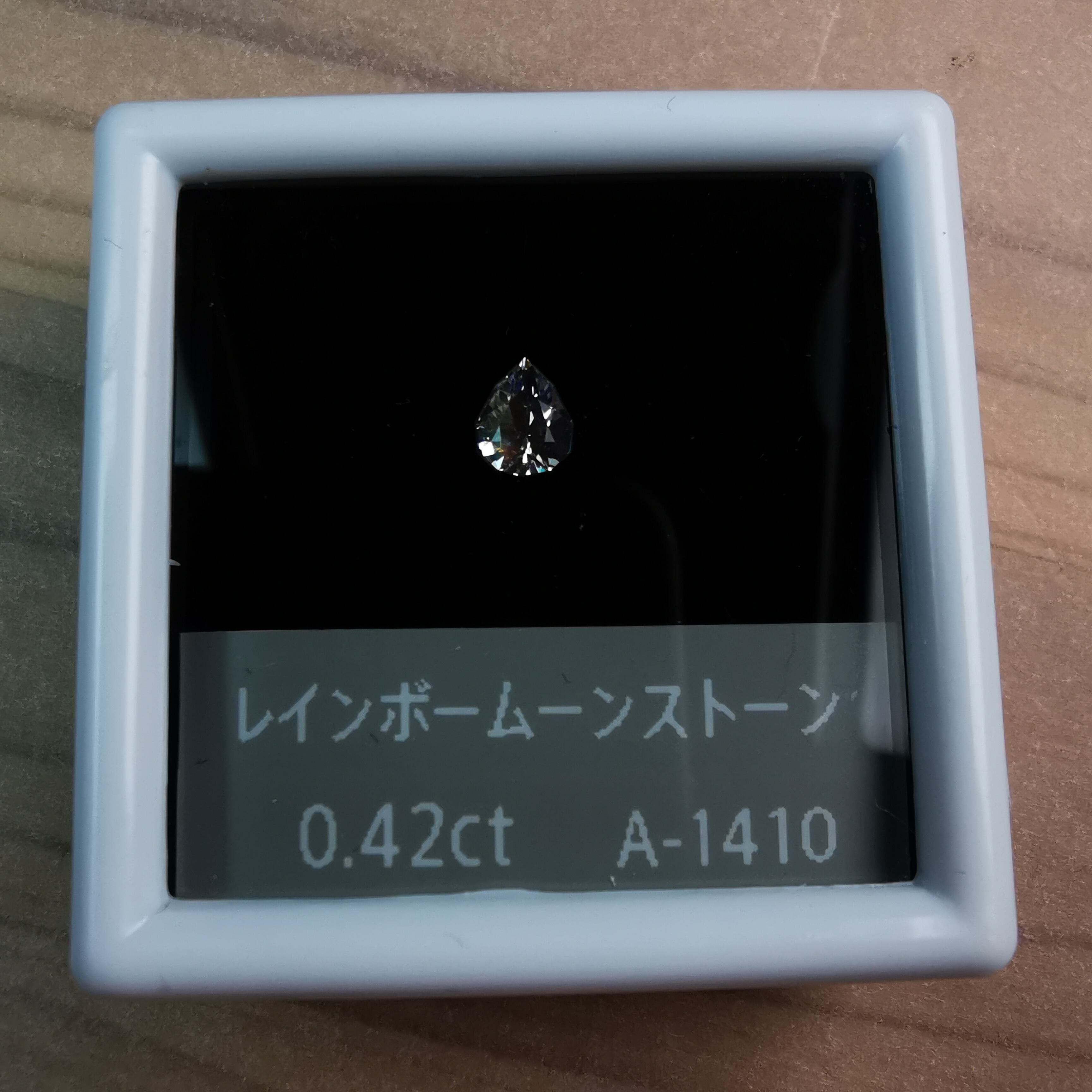 透明な石から閃くオレンジ色が印象的なレインボームーンストーンです。