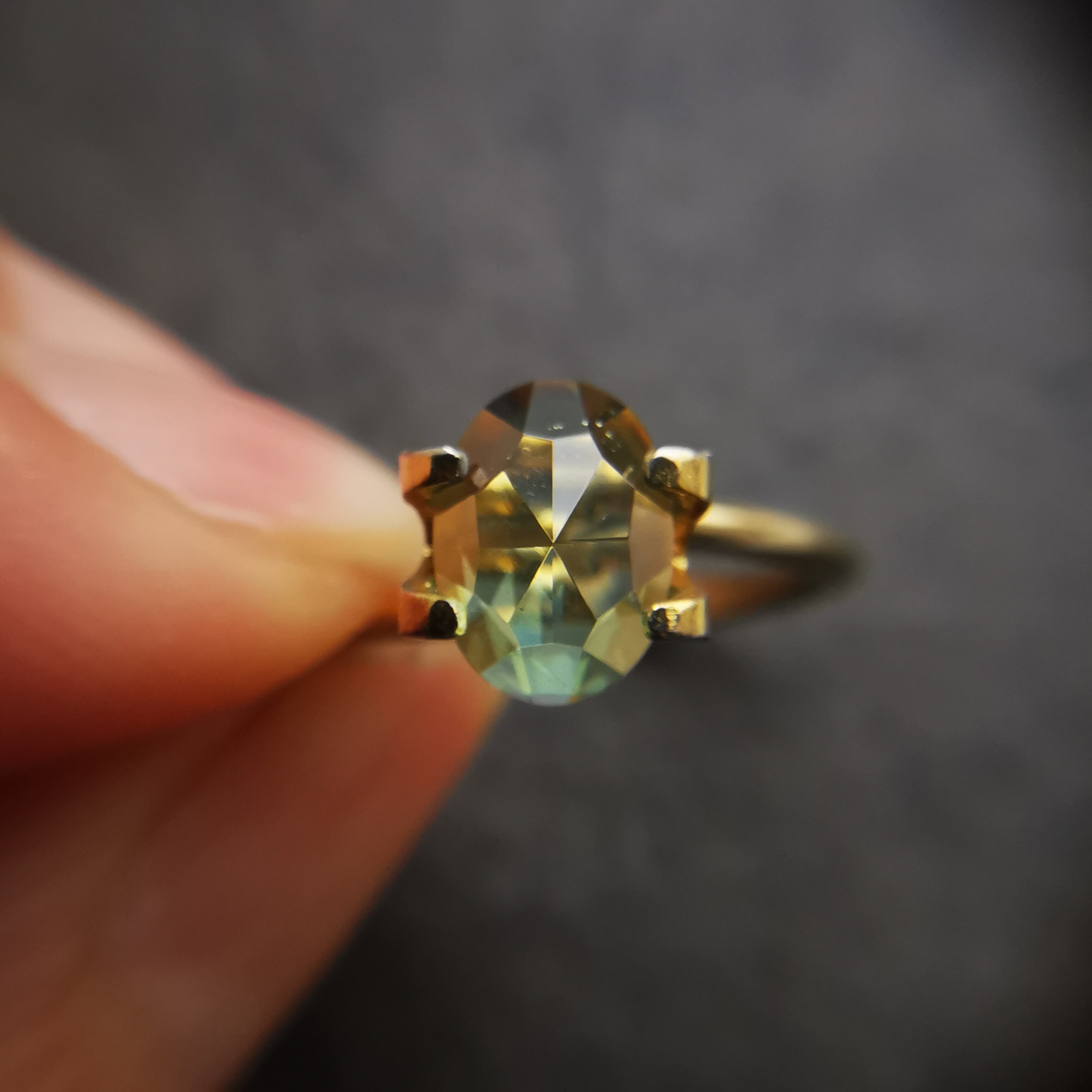 ローズカットだと、ジルコンのギラギラが和らいで爽やかな印象になり、ジルコンにもこんな一面があったのかと新鮮な驚きがあります。