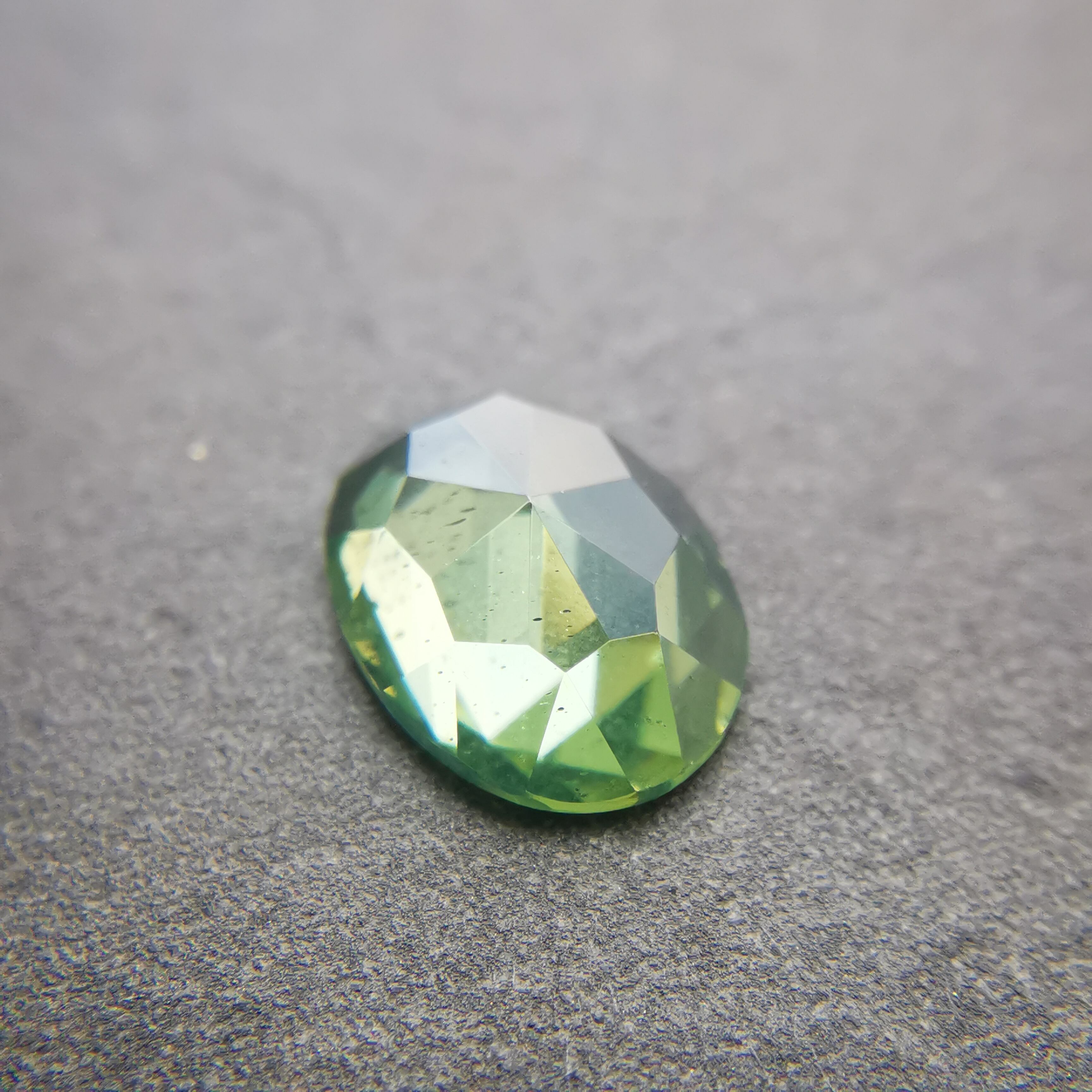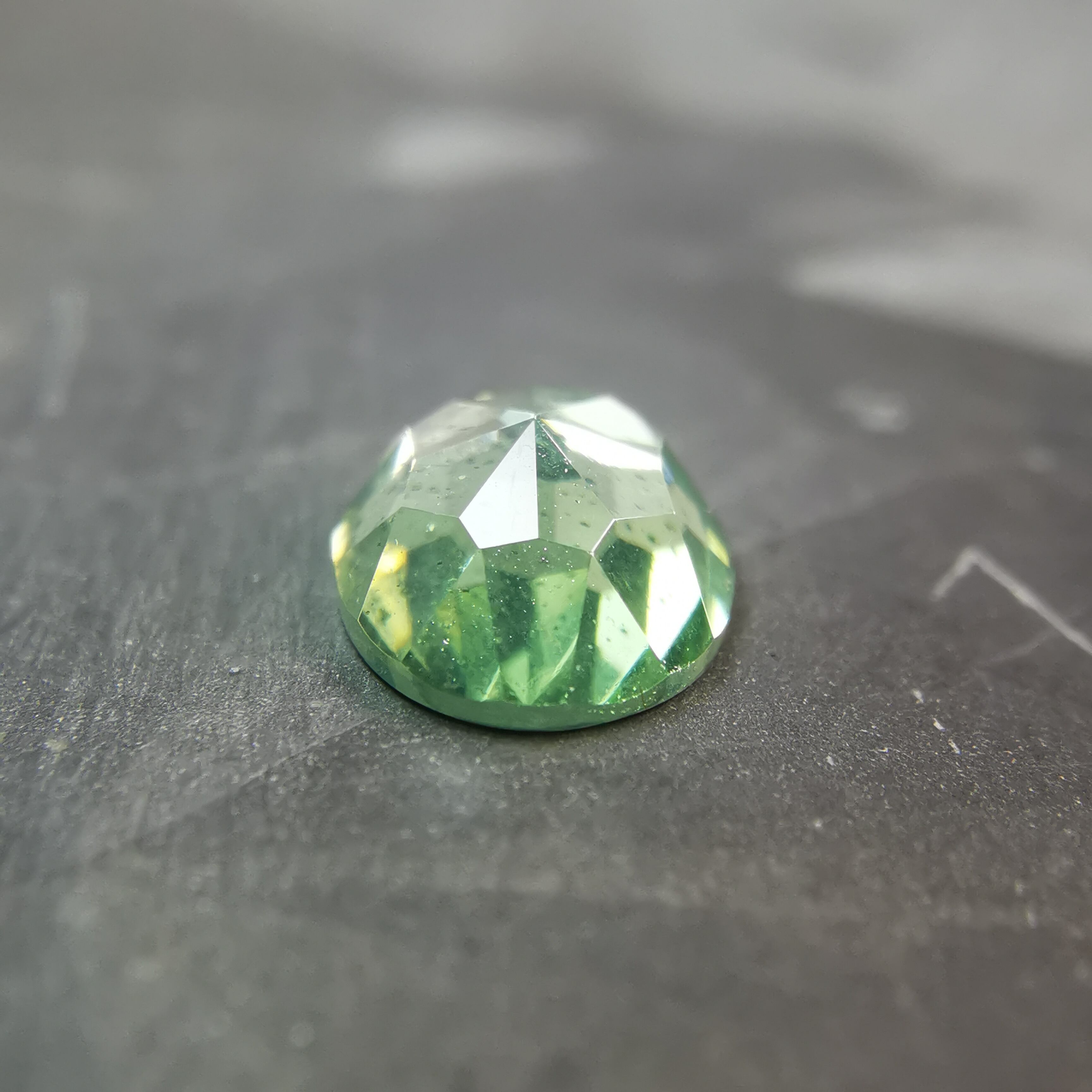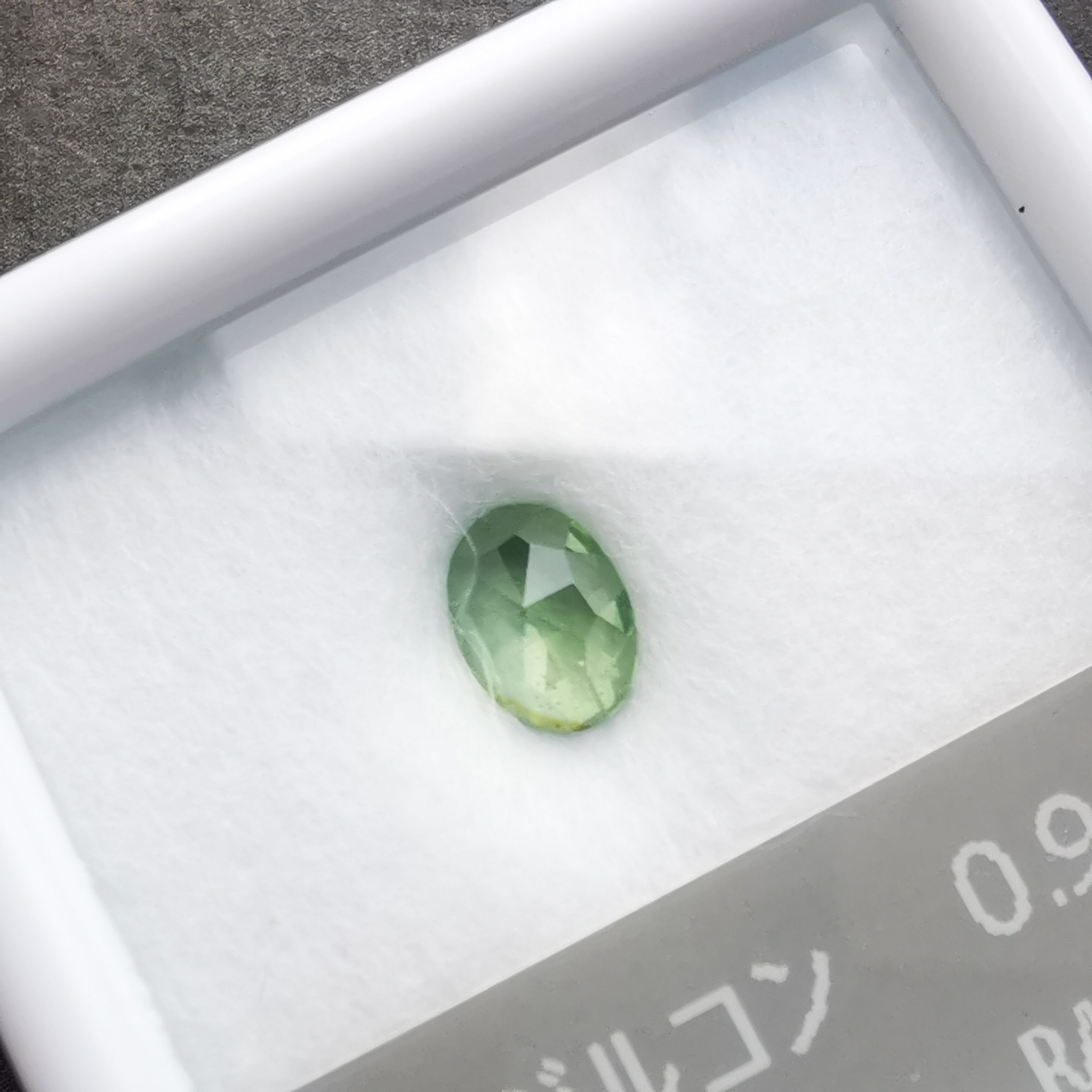 柔らかな黄緑/苗色の、ローズカットのジルコンです。