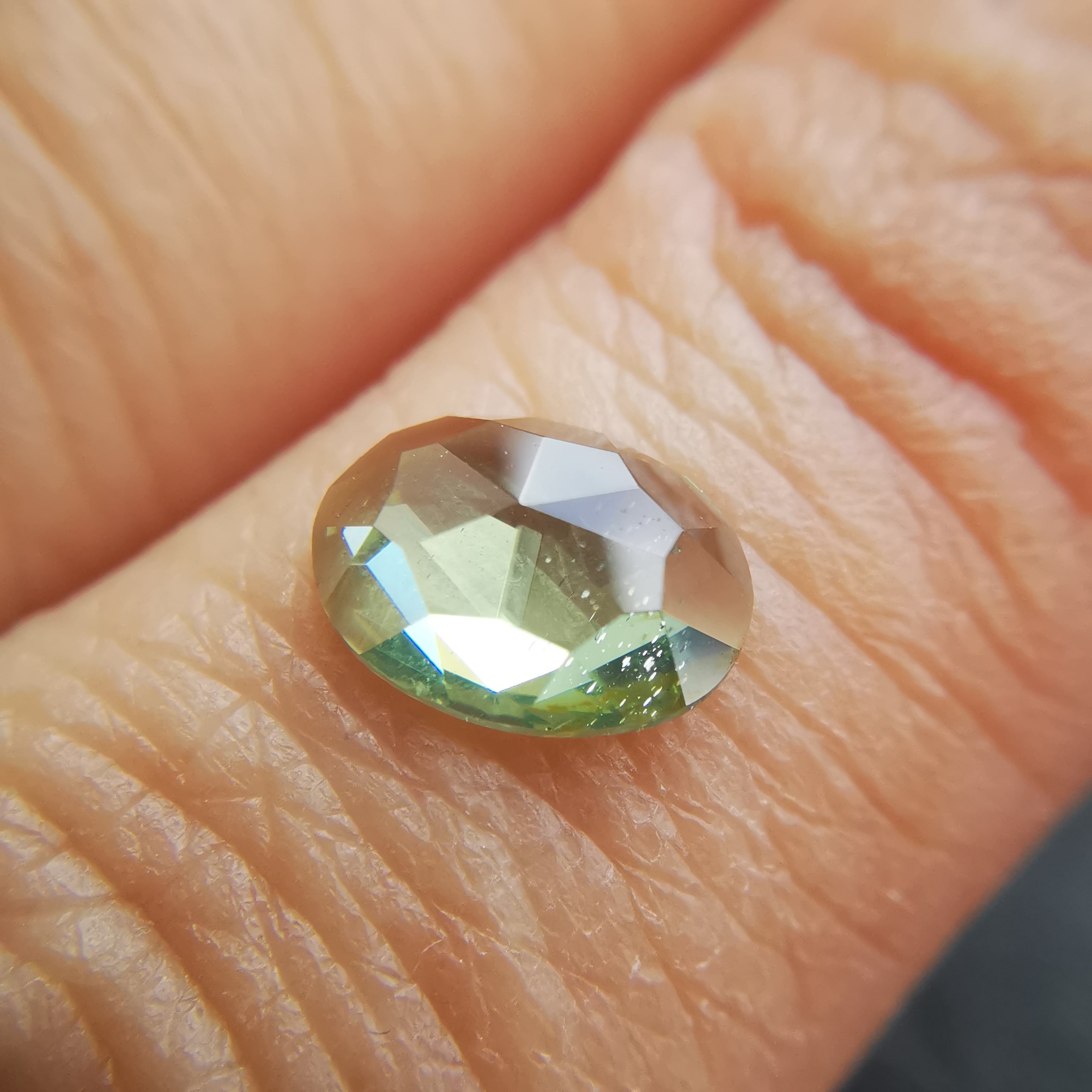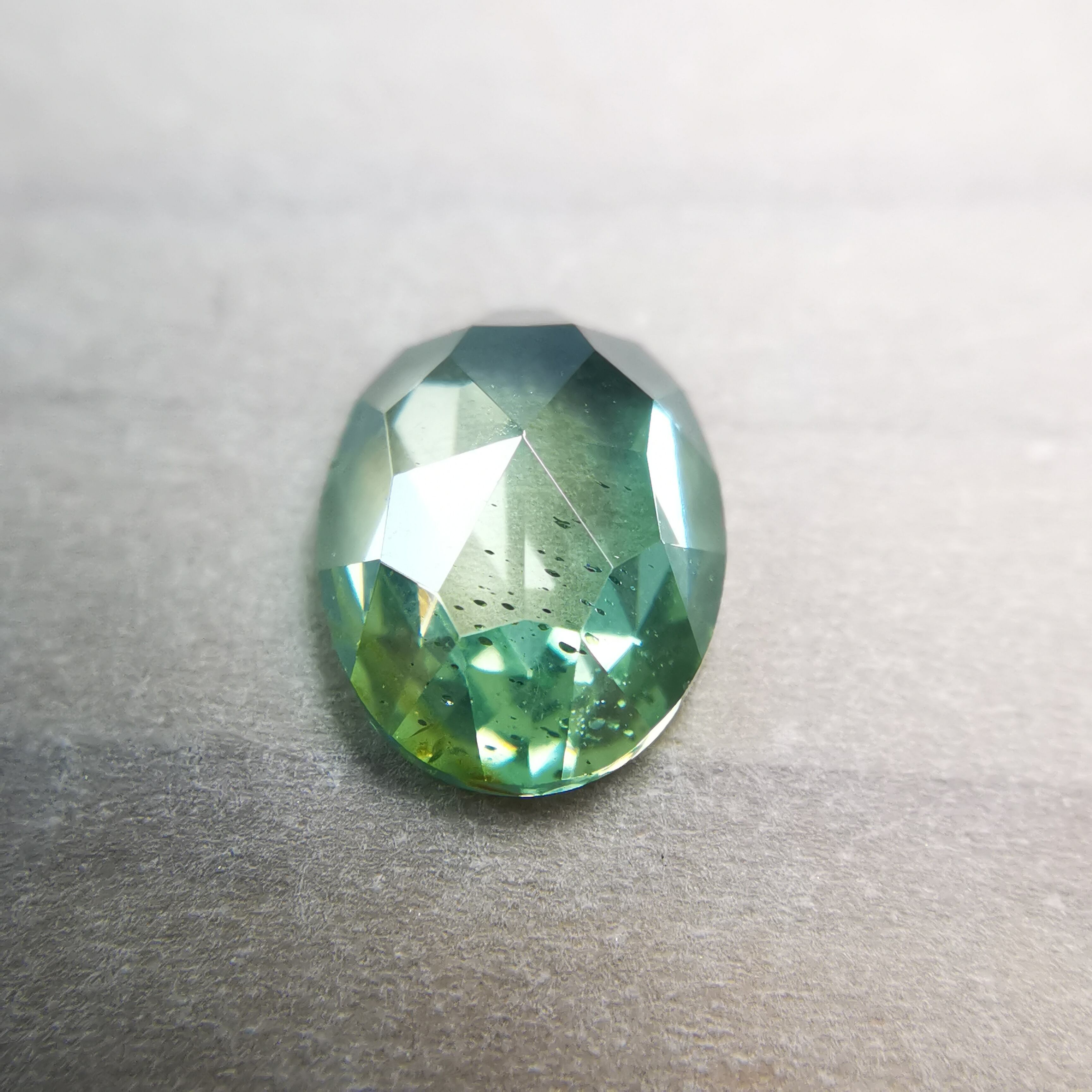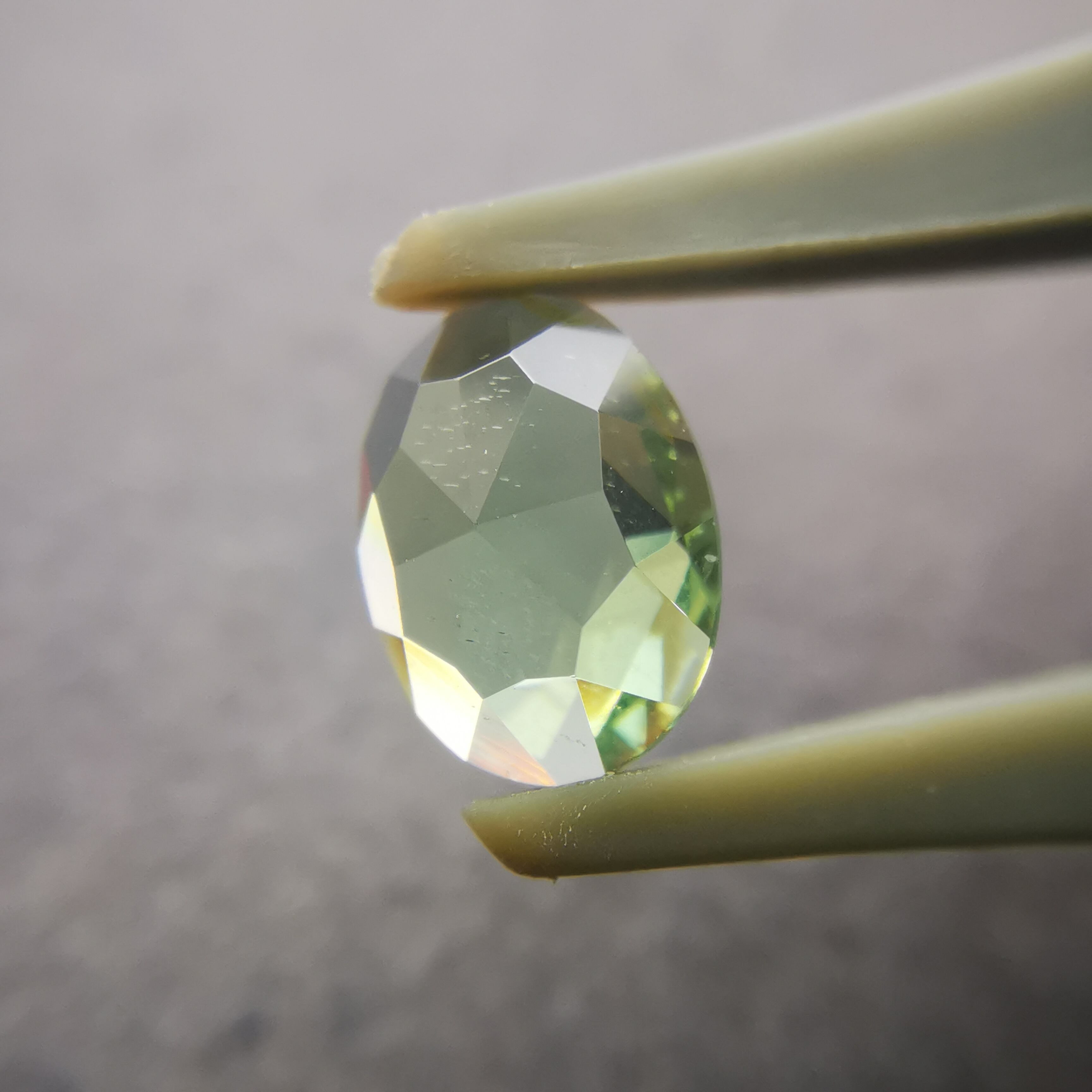 柔らかな黄緑/苗色の、ローズカットのジルコンです。