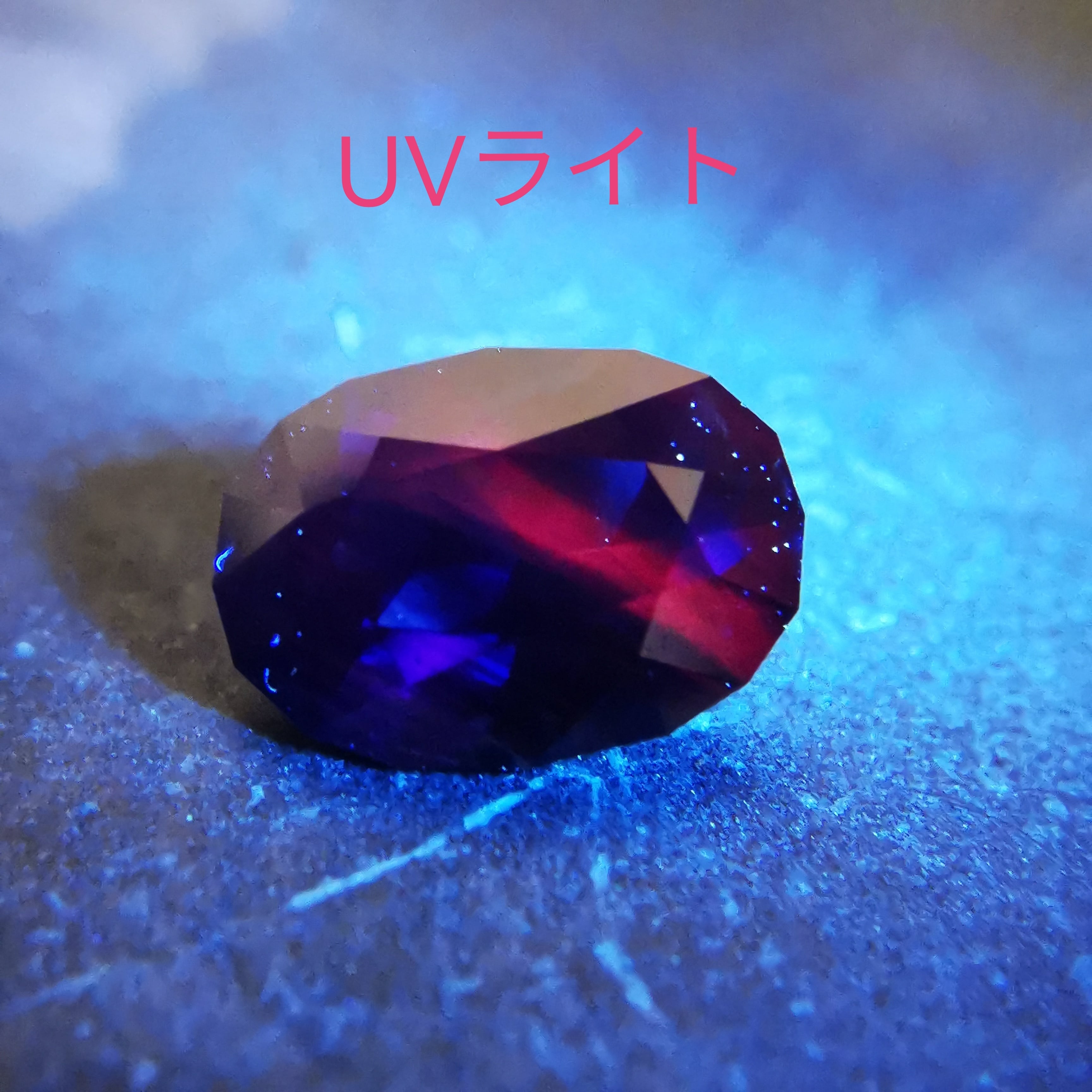 UVライトで蛍光させると、クリアな部分がピンク色に蛍光して、また別の面白さを見せてくれます。