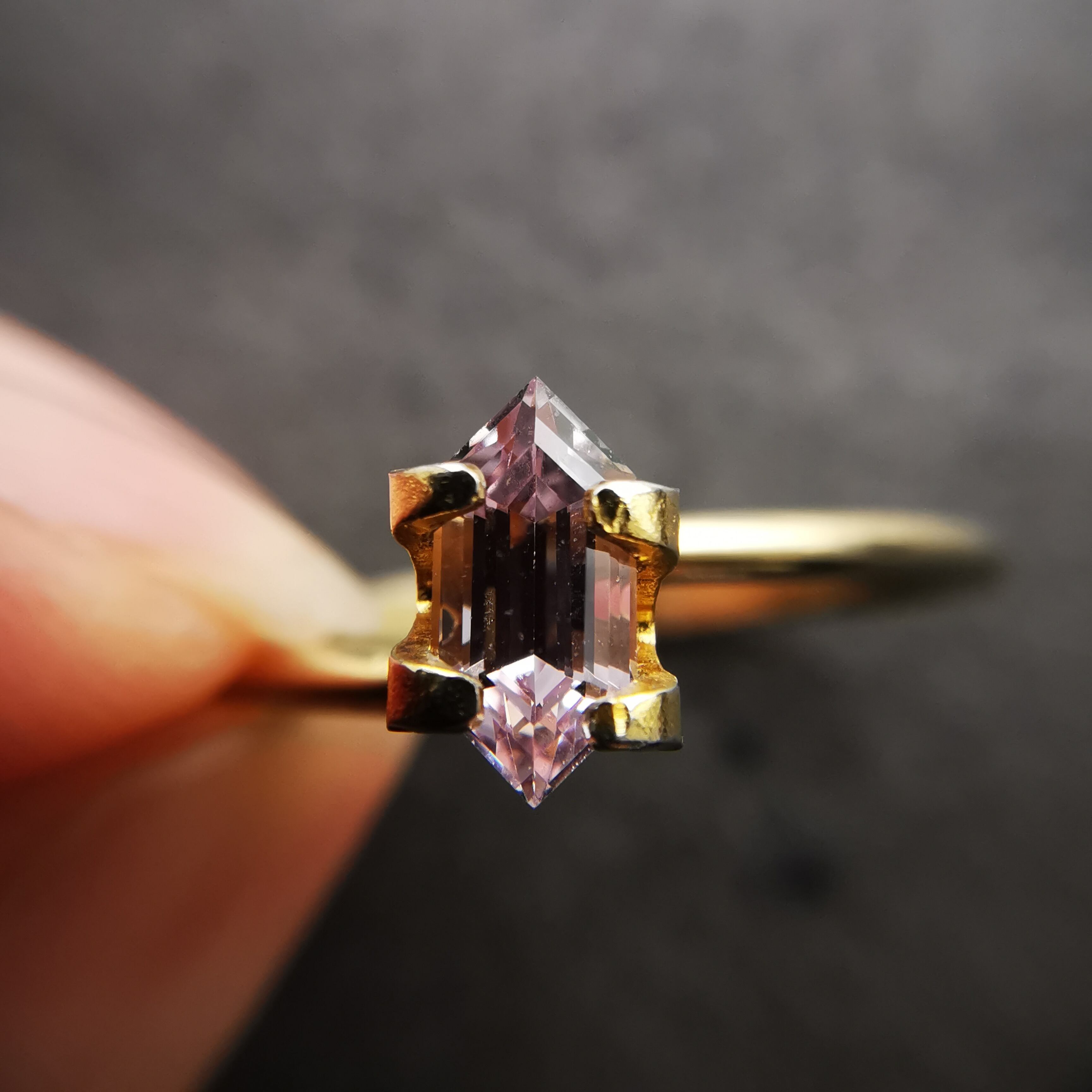 尖った両端は色溜りとなりわずかに色濃く、中心部の淡く真っ直ぐなきらめきとの違いもまた楽しいです。