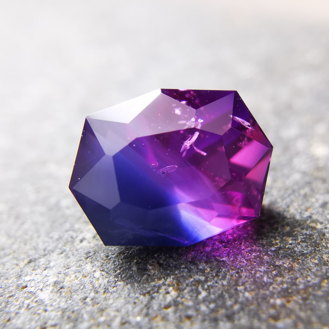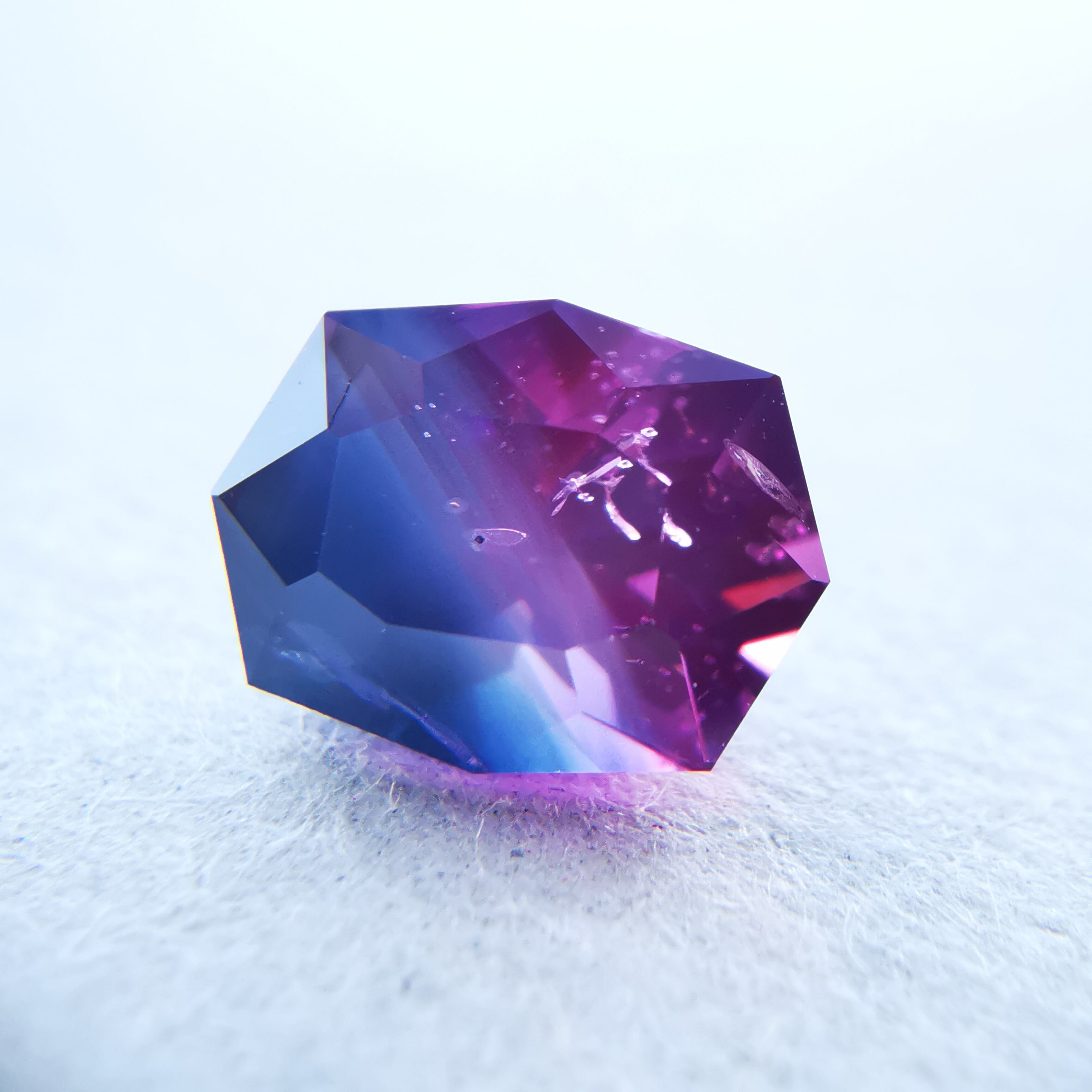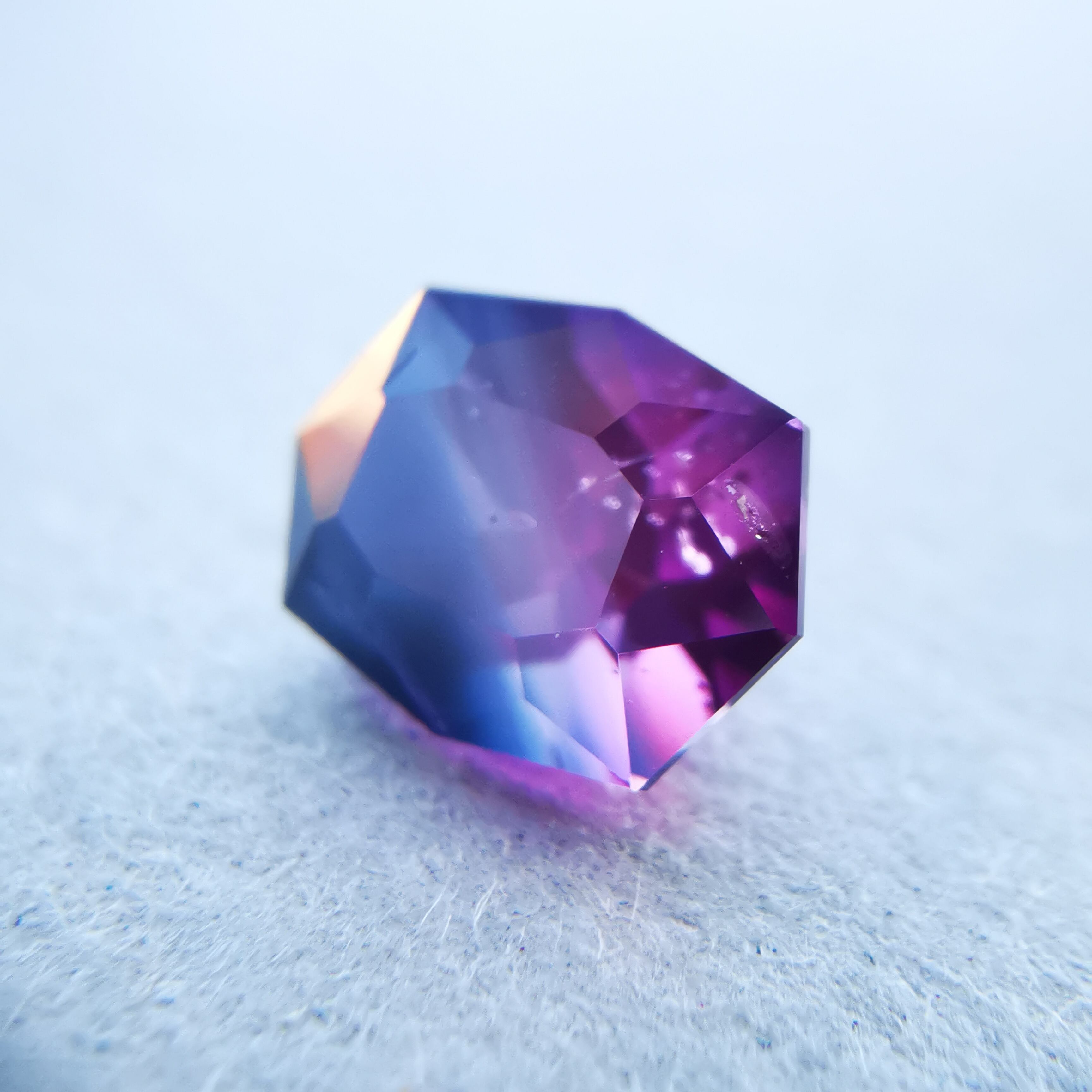 ピンク、パープル、シルキーブルーのグラデーションが美しい、バイカラーサファイアです。