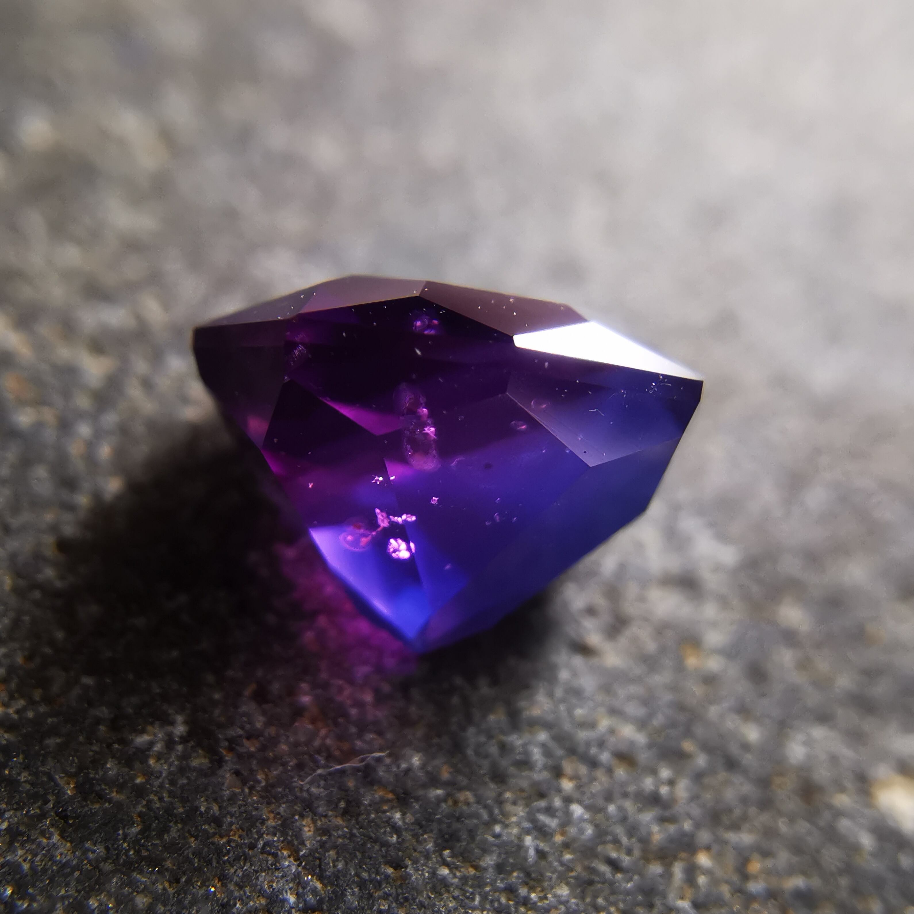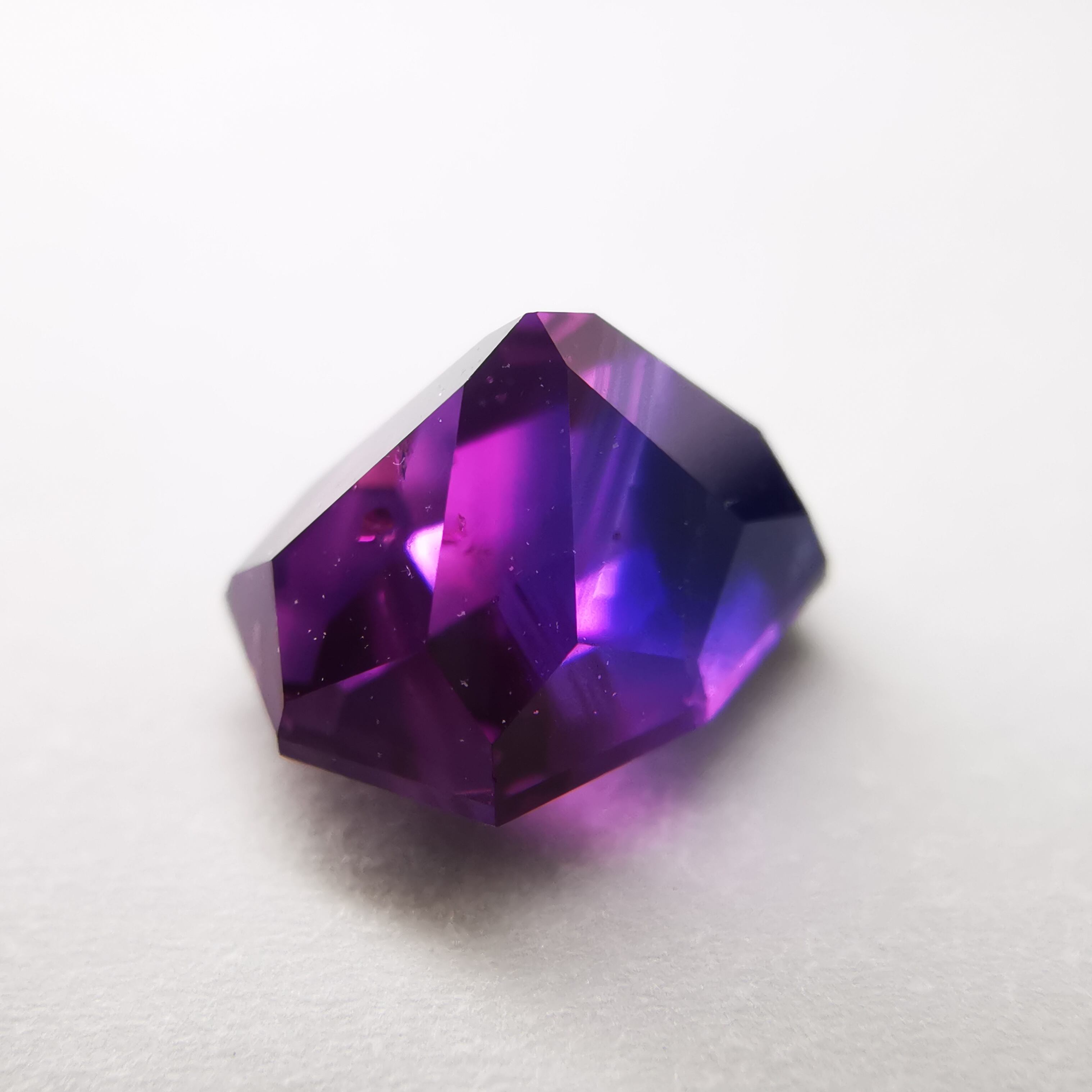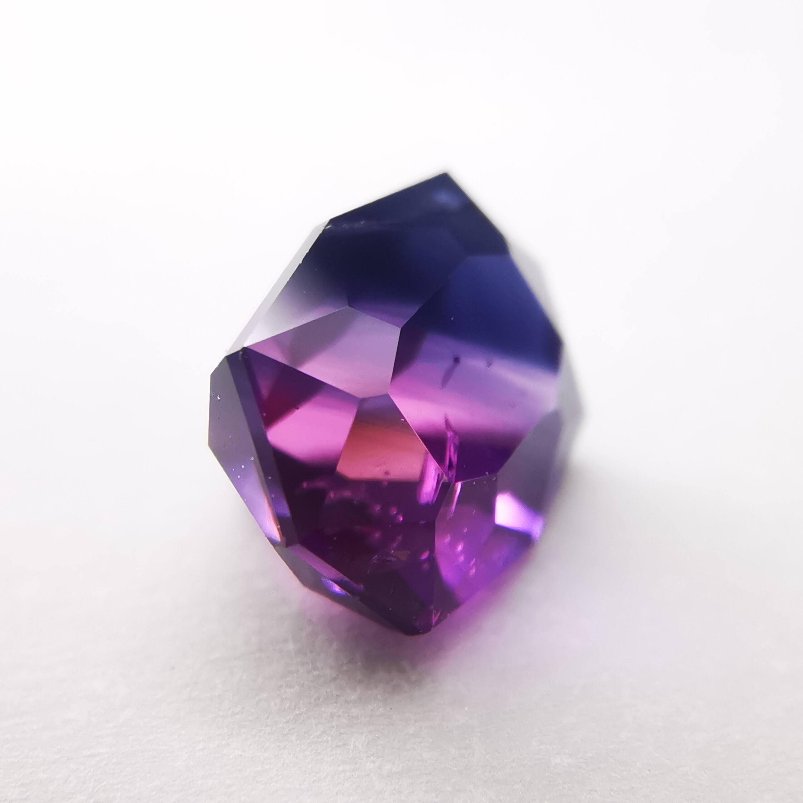 ピンク、パープル、シルキーブルーのグラデーションが美しい、バイカラーサファイアです。