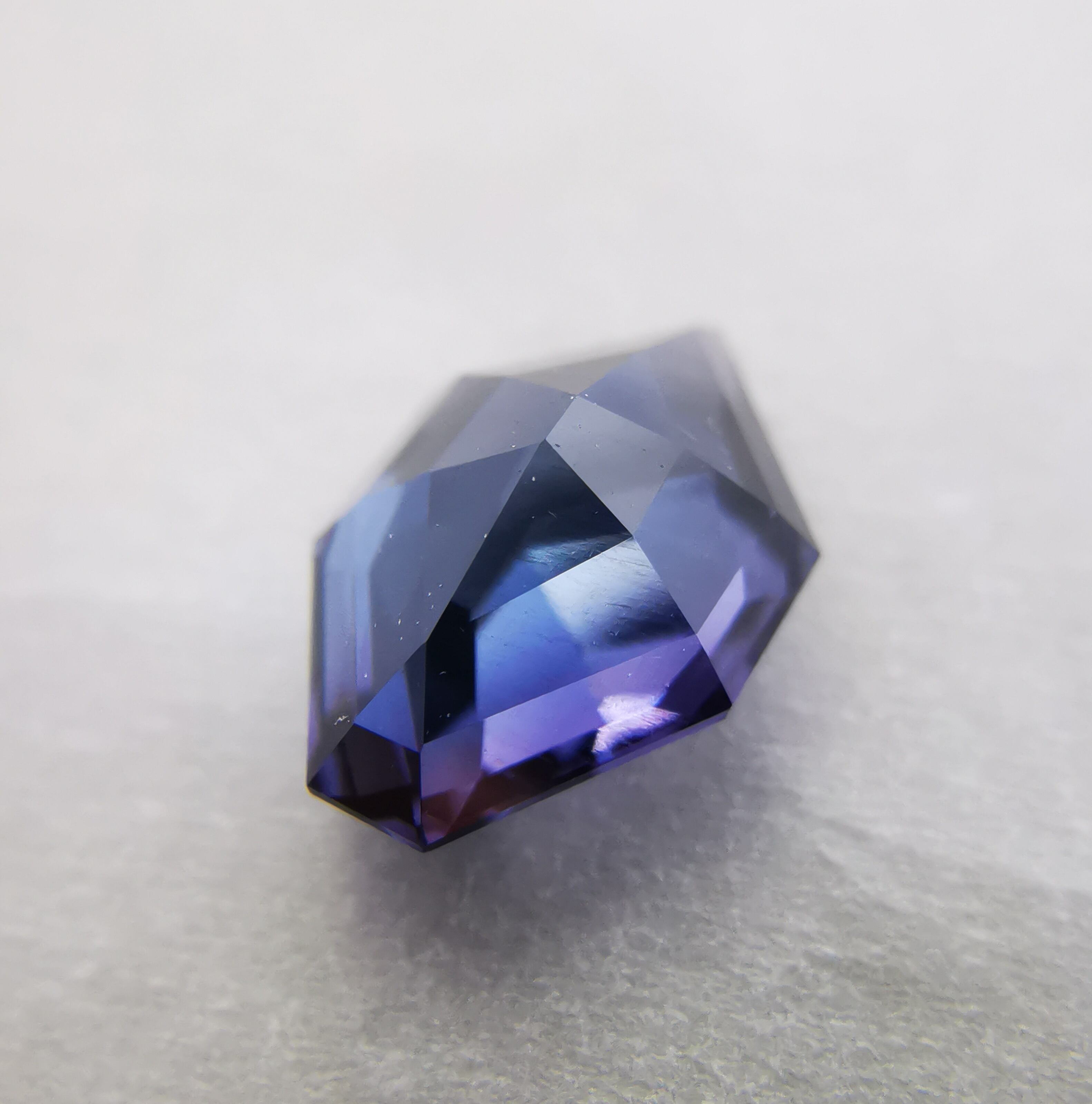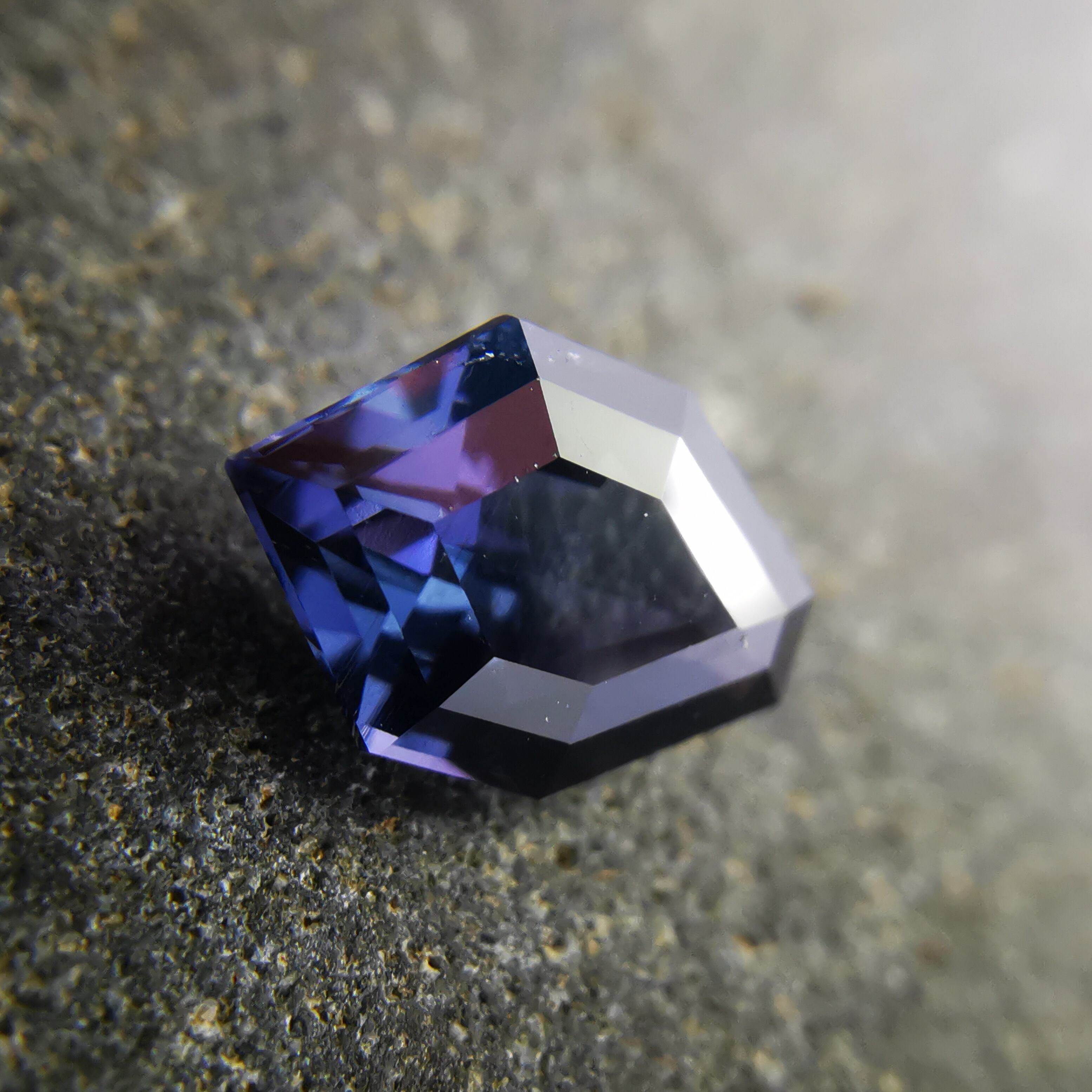 とても珍しいバイカラーのスピネルで、ブルーグレーベースにわずかにパープルが差します。