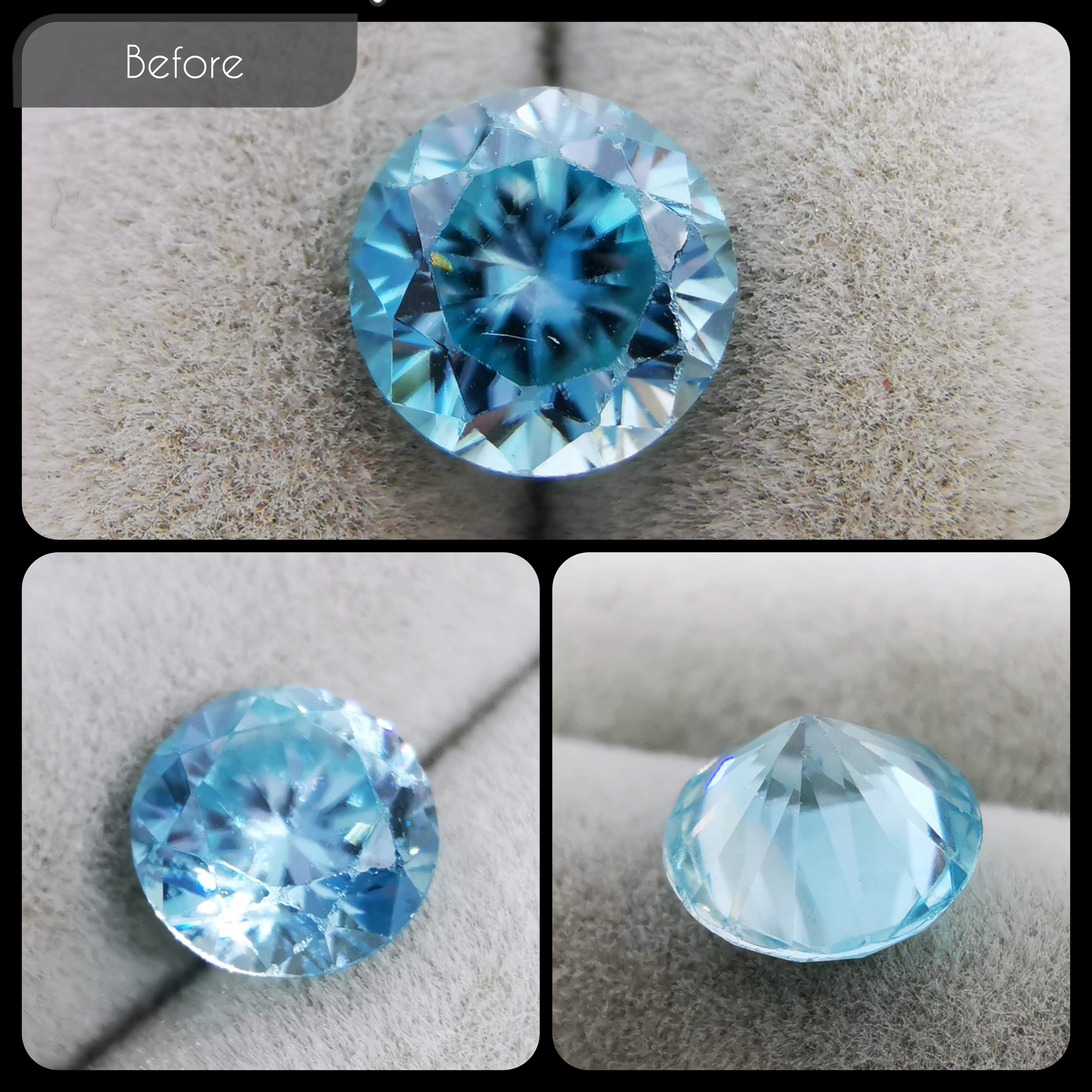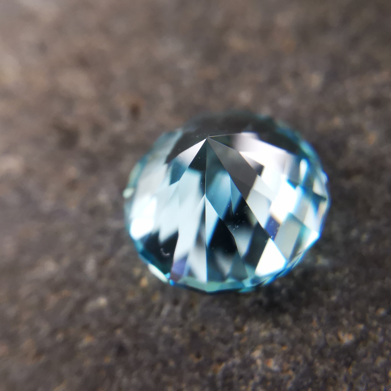 クリーンなブルージルコンを見つめるうちに吸い込まれてしまいそうです。