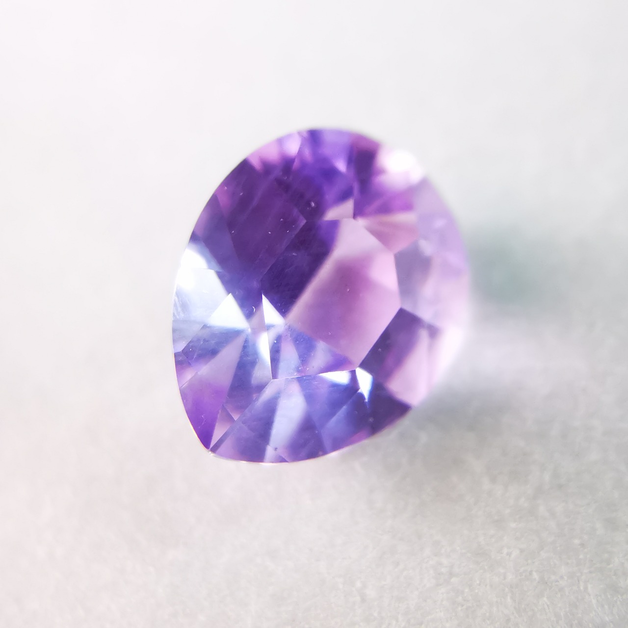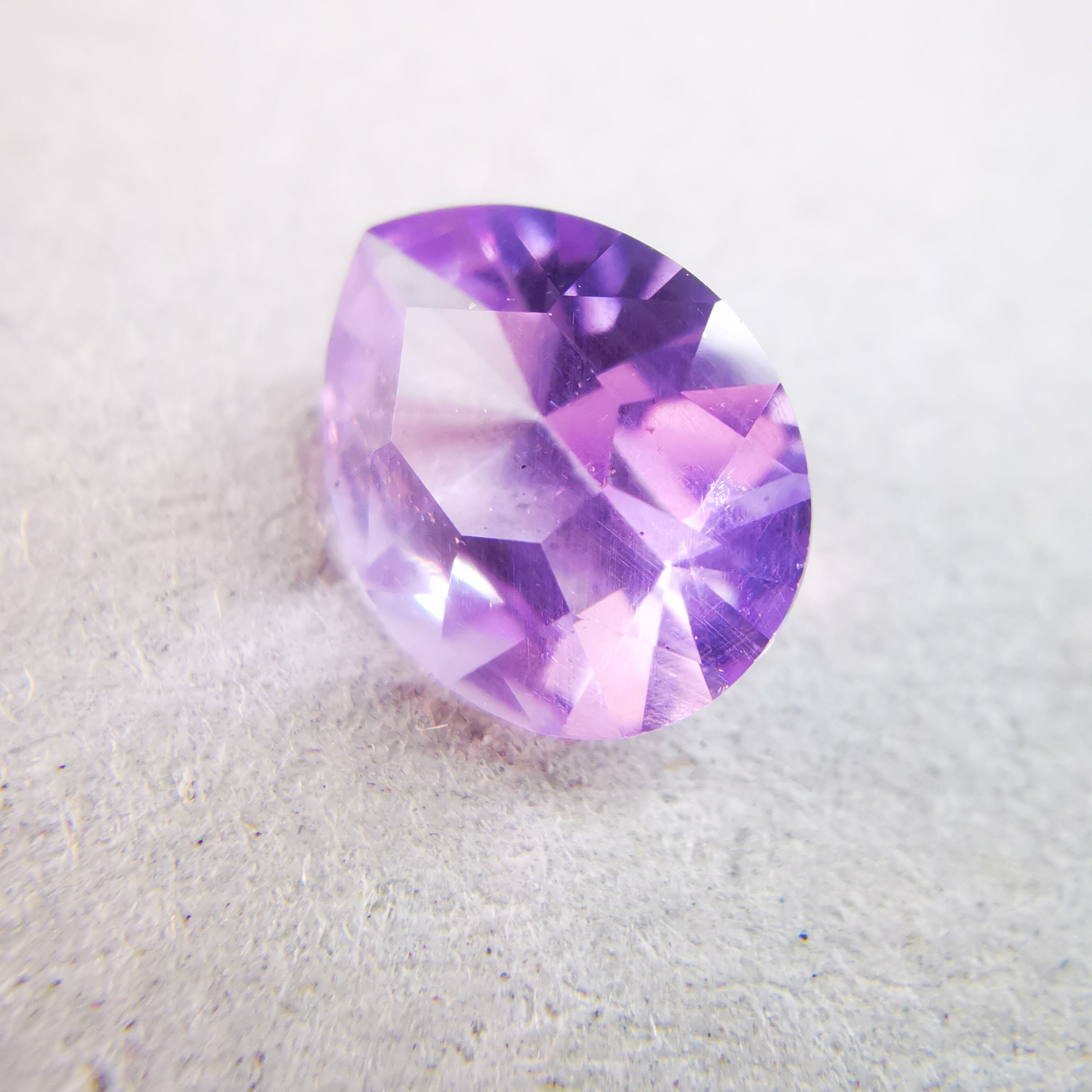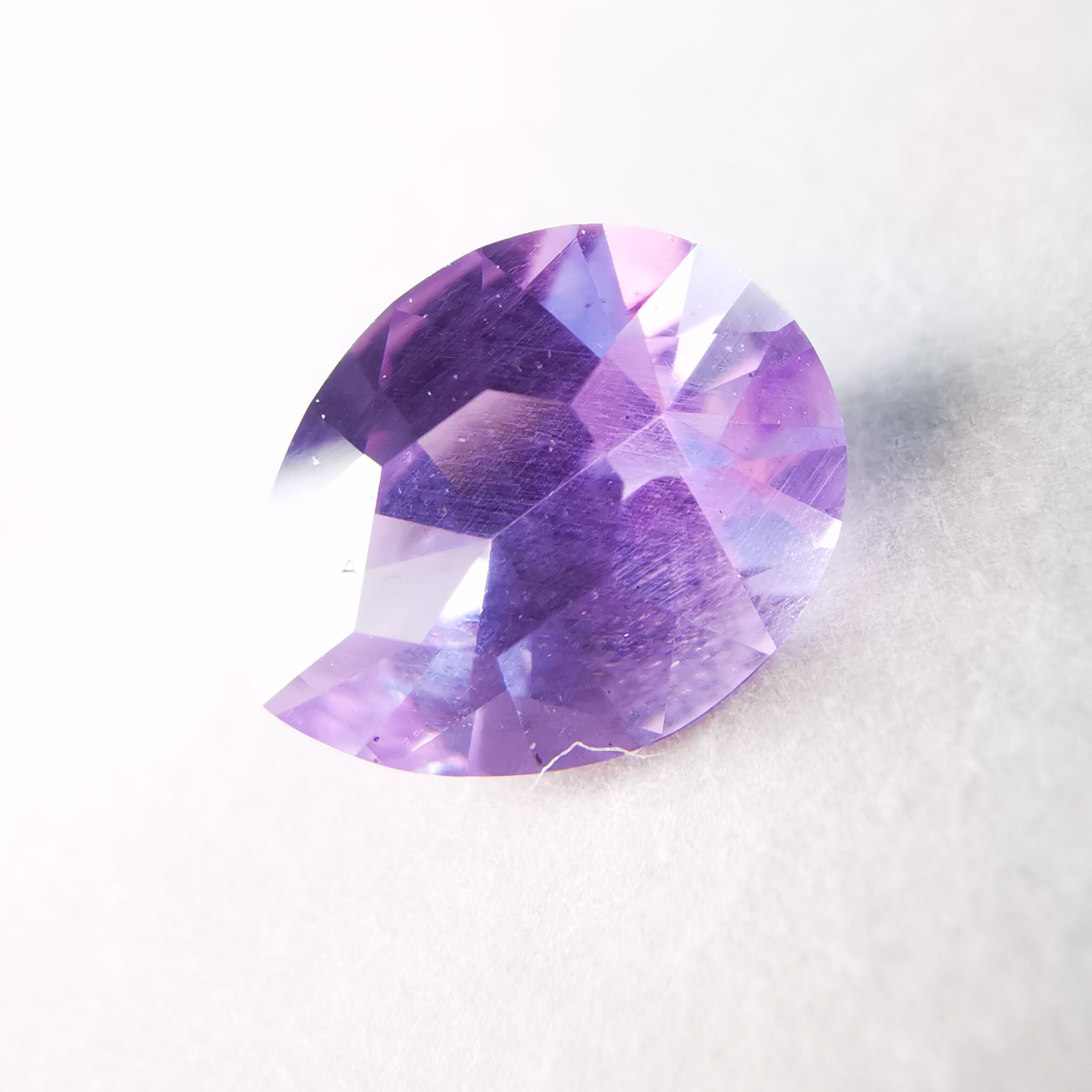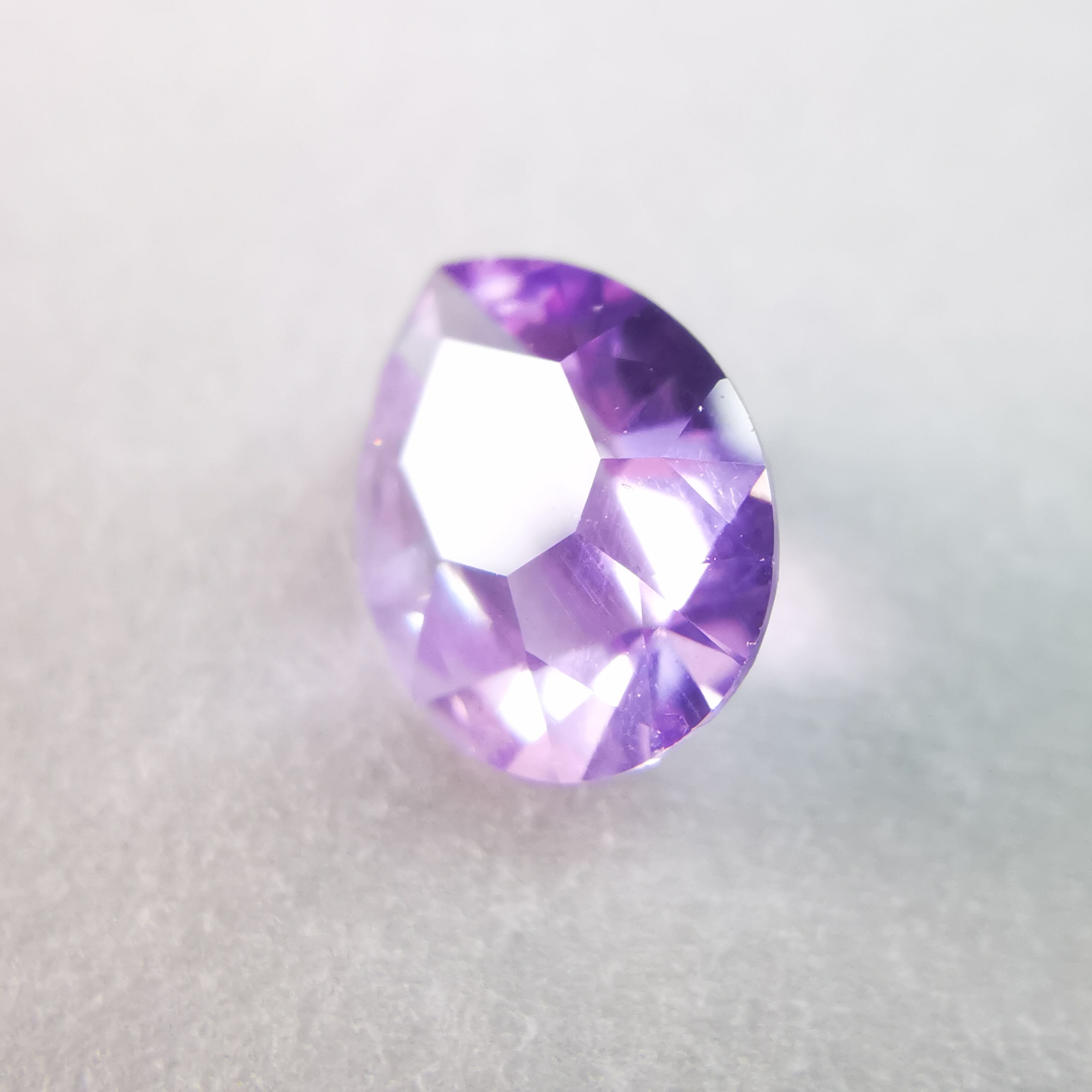 シルキーで淡いラベンダーカラー、丸みを帯びたかわいらしい形のペアシェイプです。