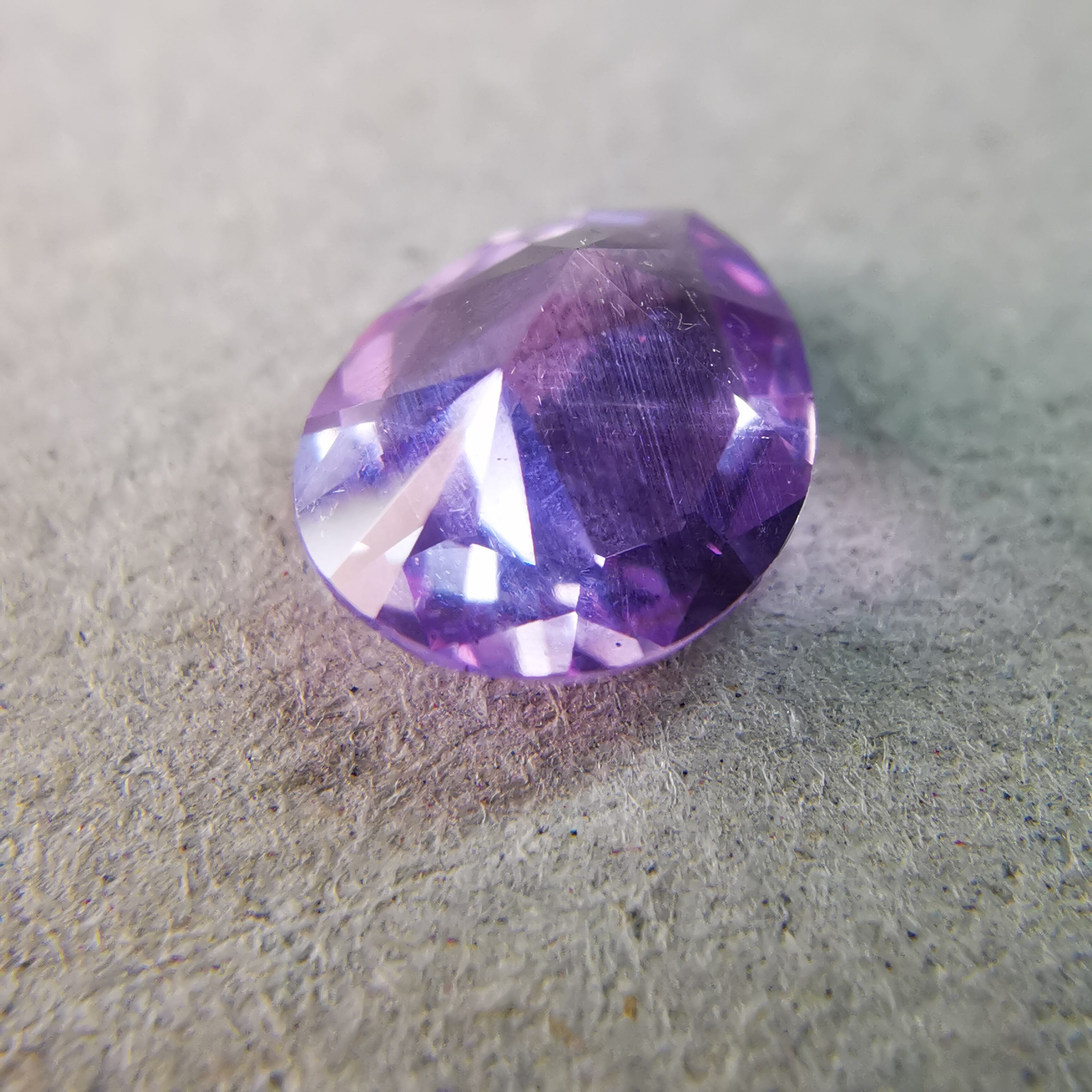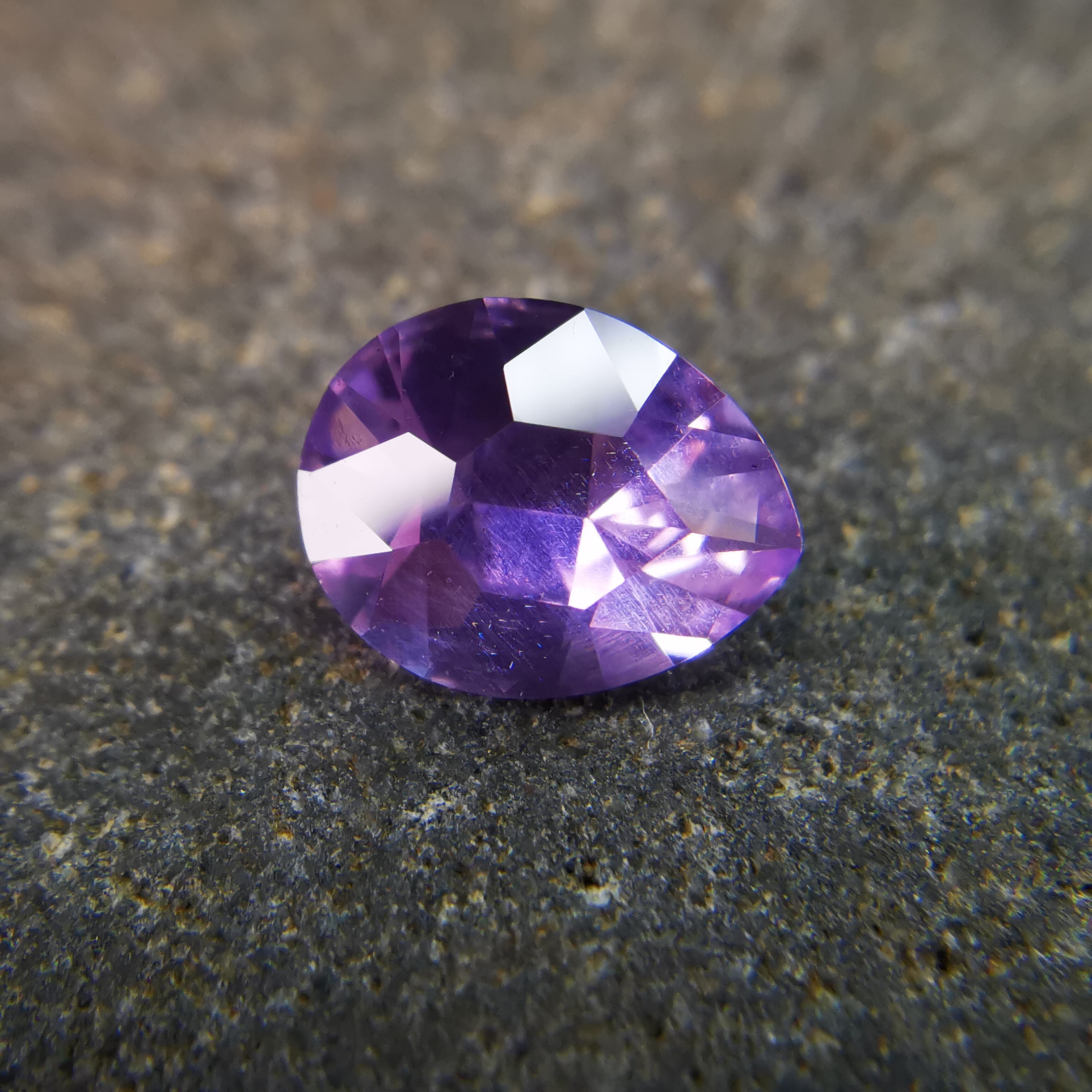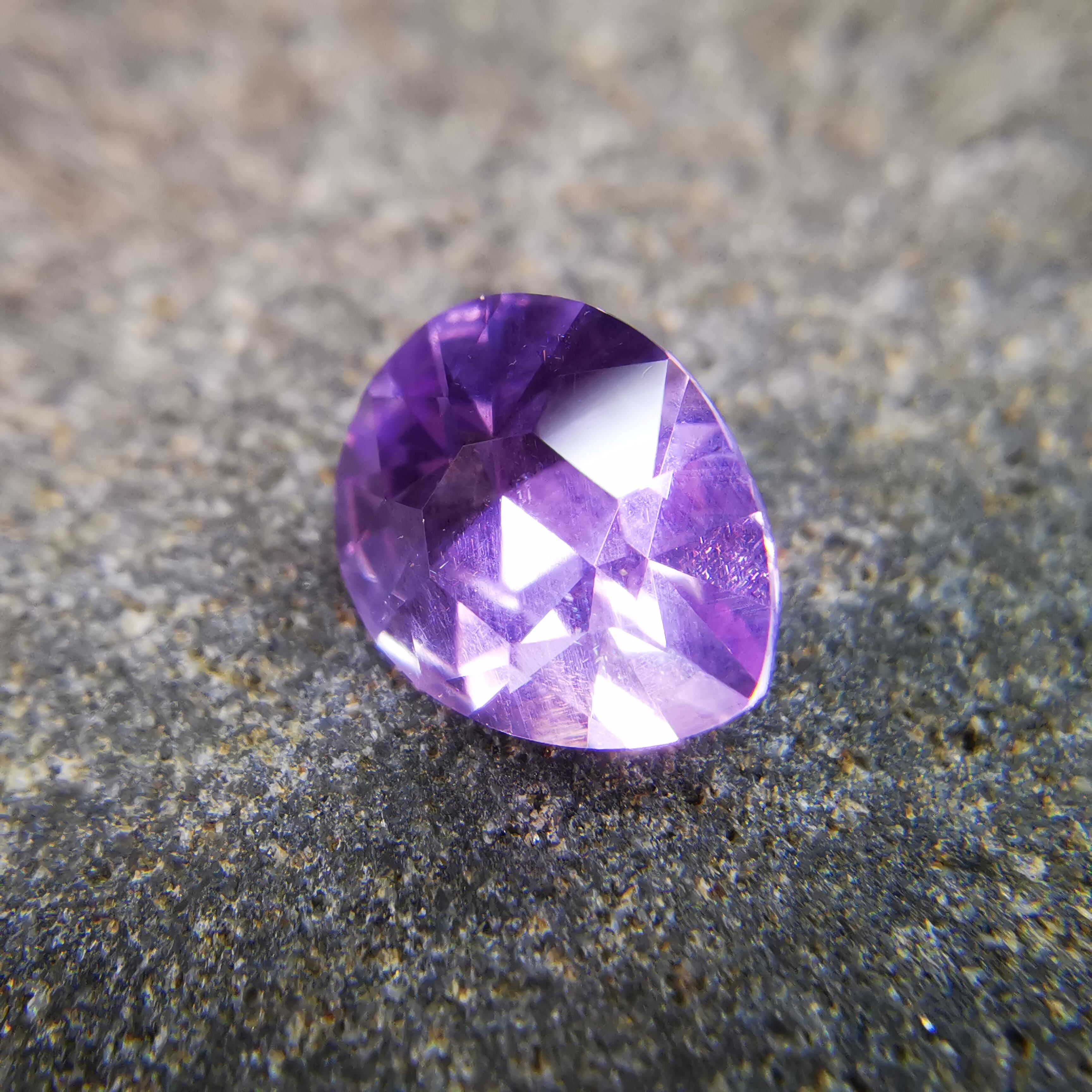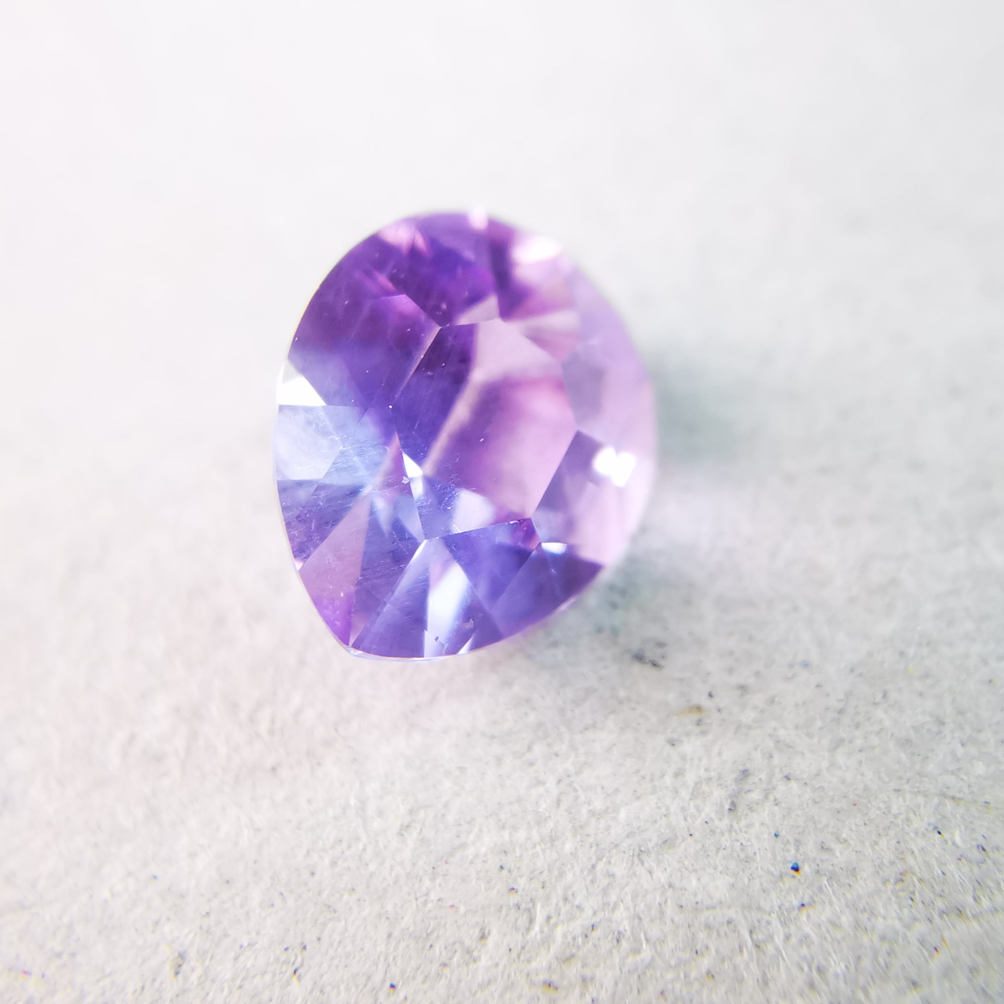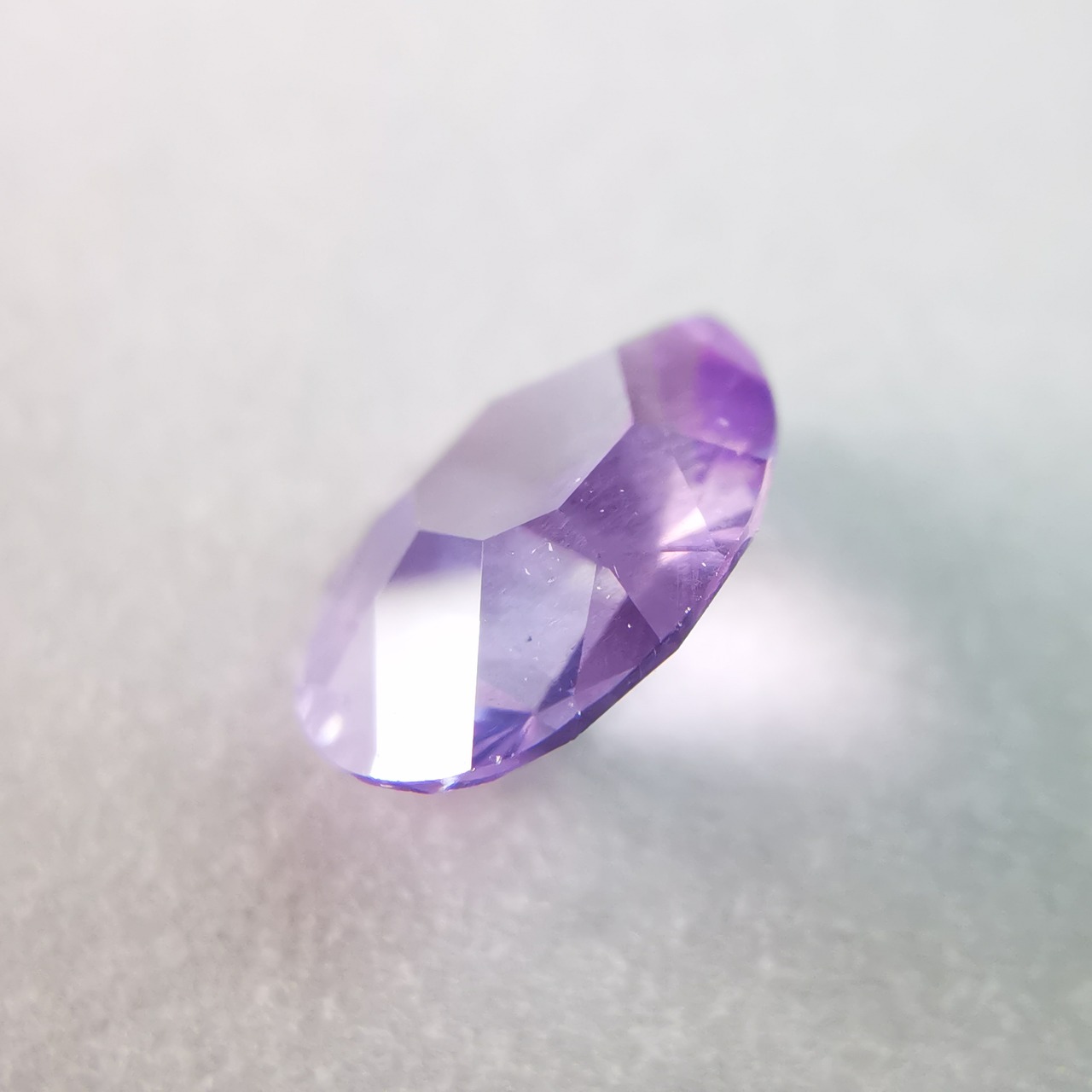 シルキーで淡いラベンダーカラー、丸みを帯びたかわいらしい形のペアシェイプです。