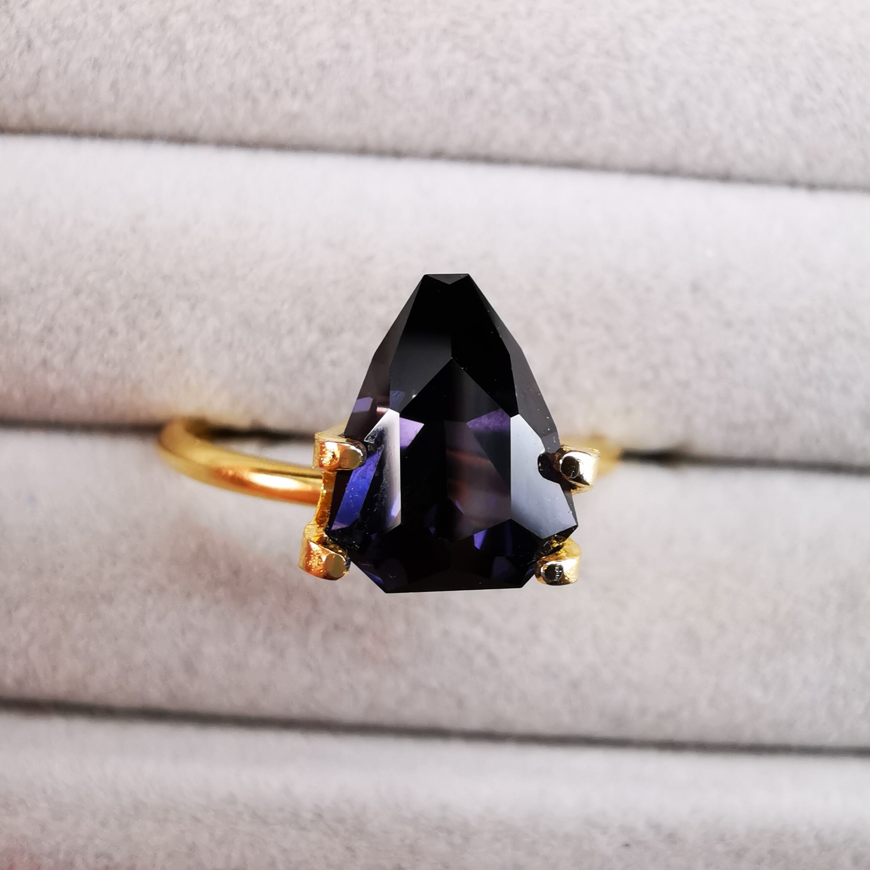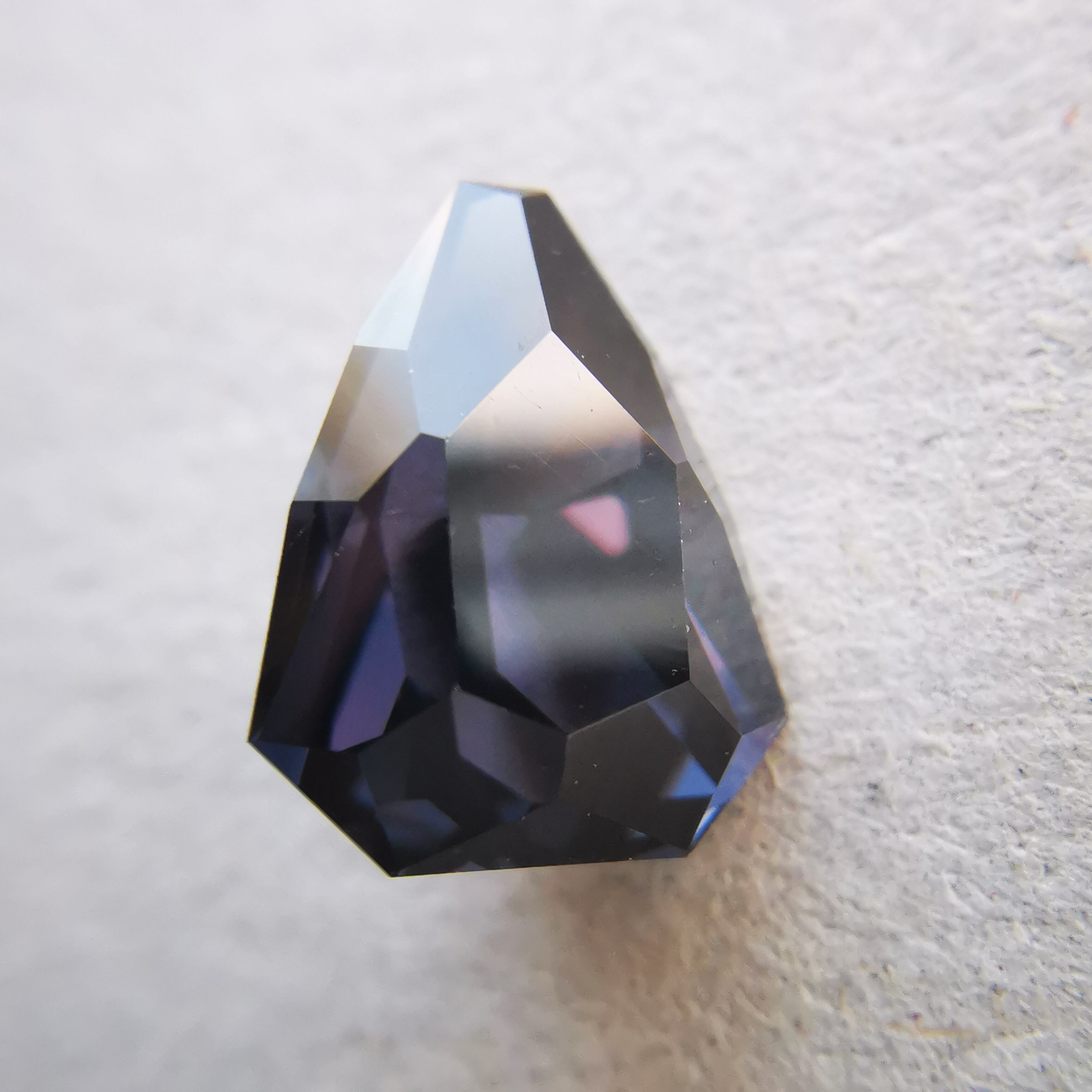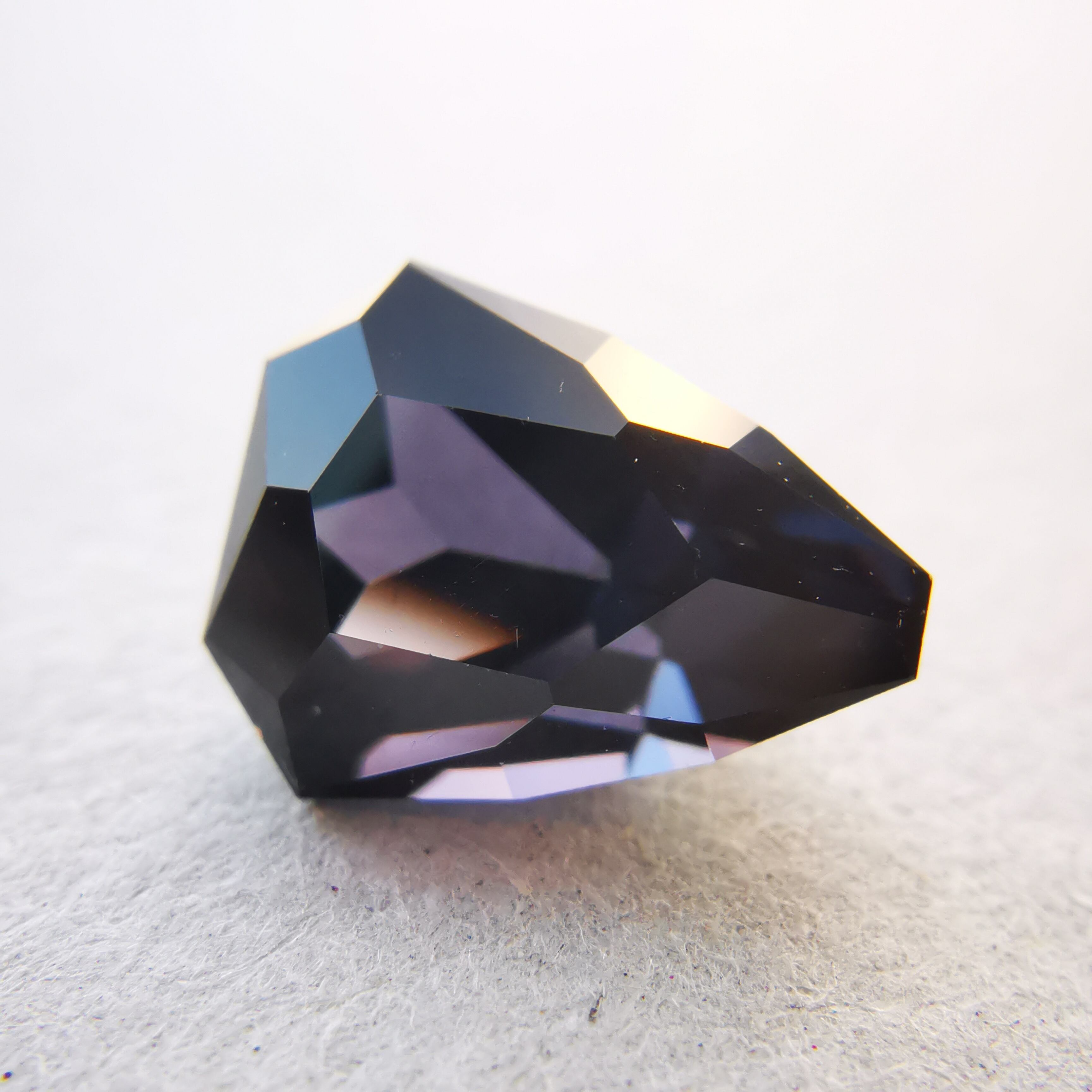 ダークなカラーの中から、傾けるたびにチラチラと反射する、優しいモーブカラーがスピネルらしい色です。
