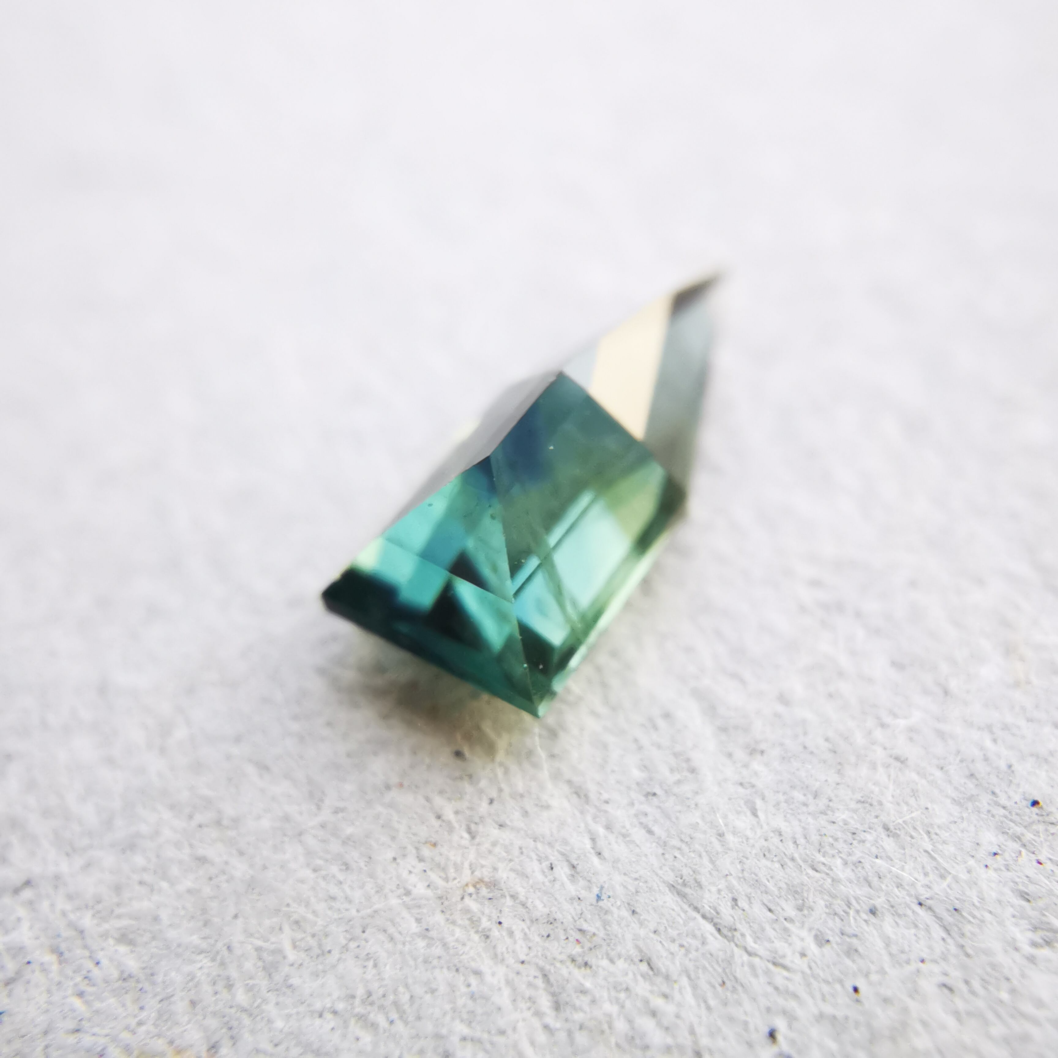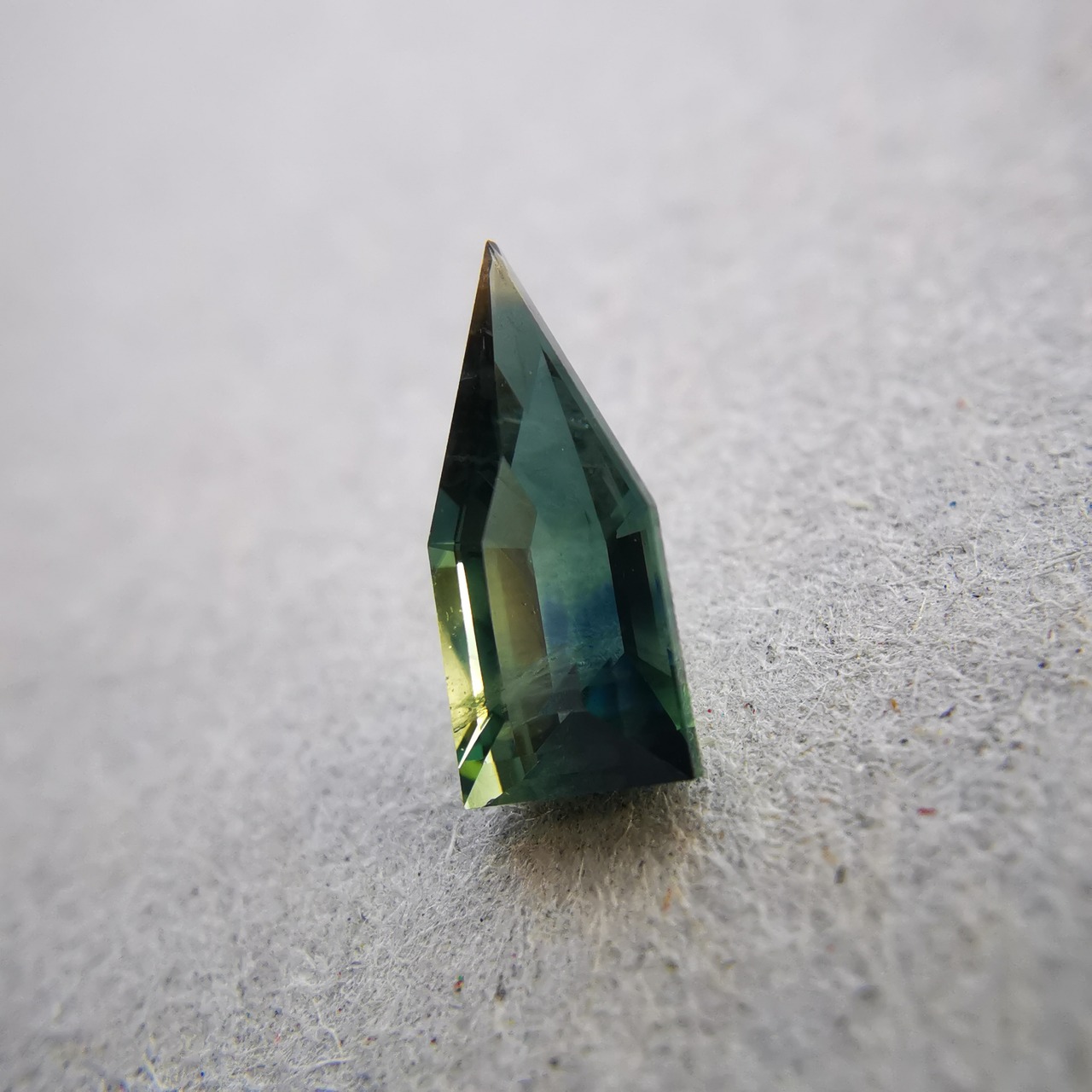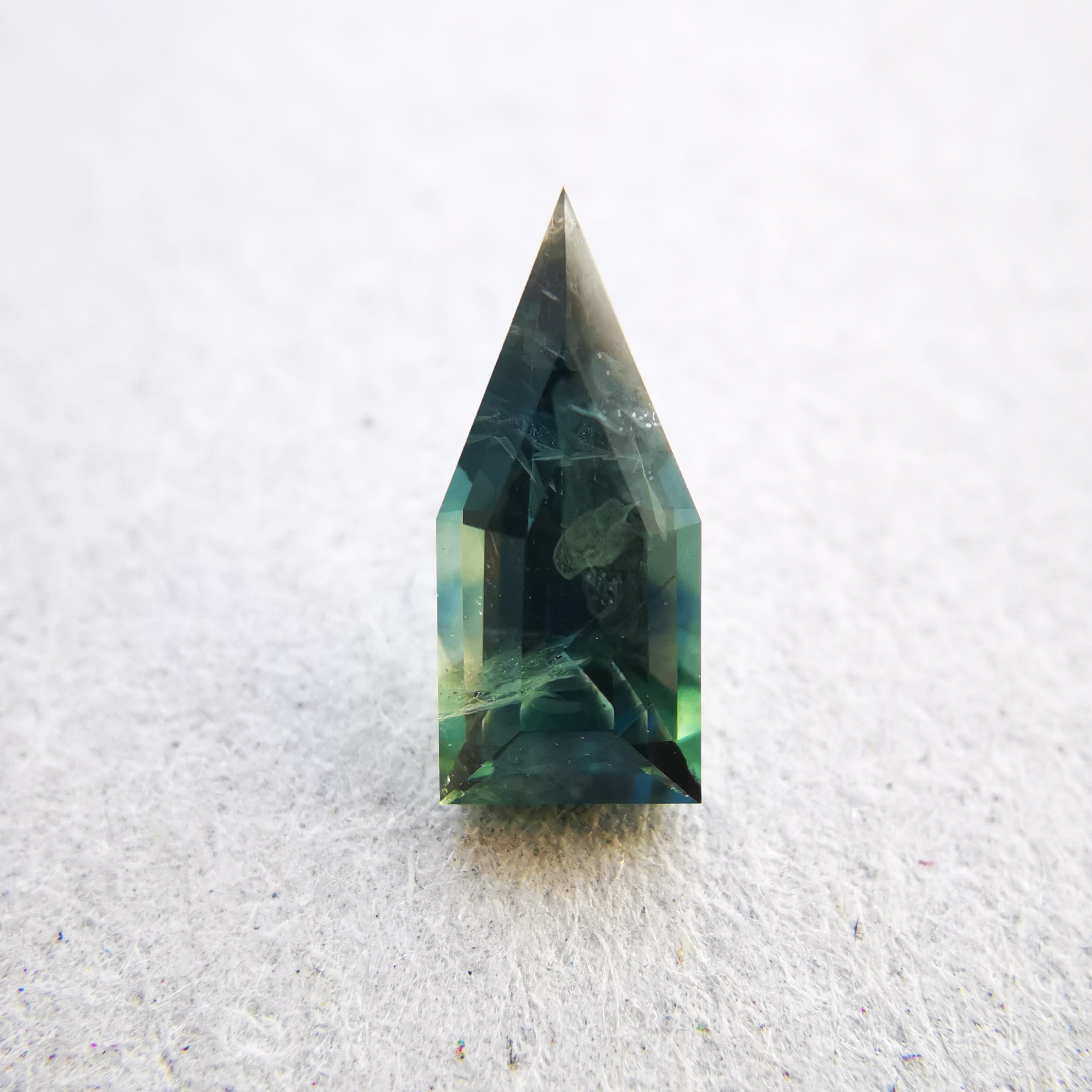 大聖堂のとがった屋根のようなカット、ブルーとイエローが混じり合ったカラーです。