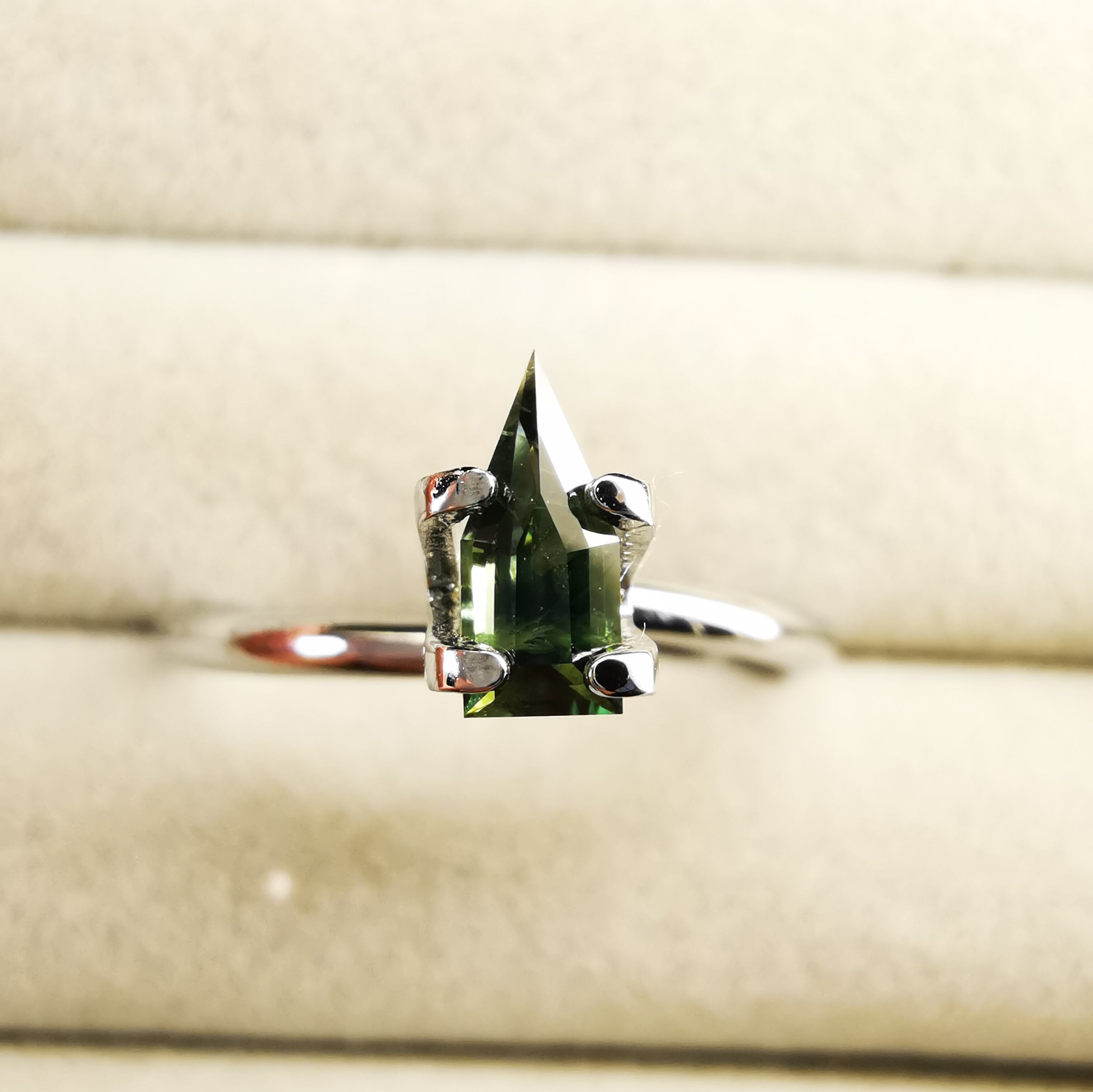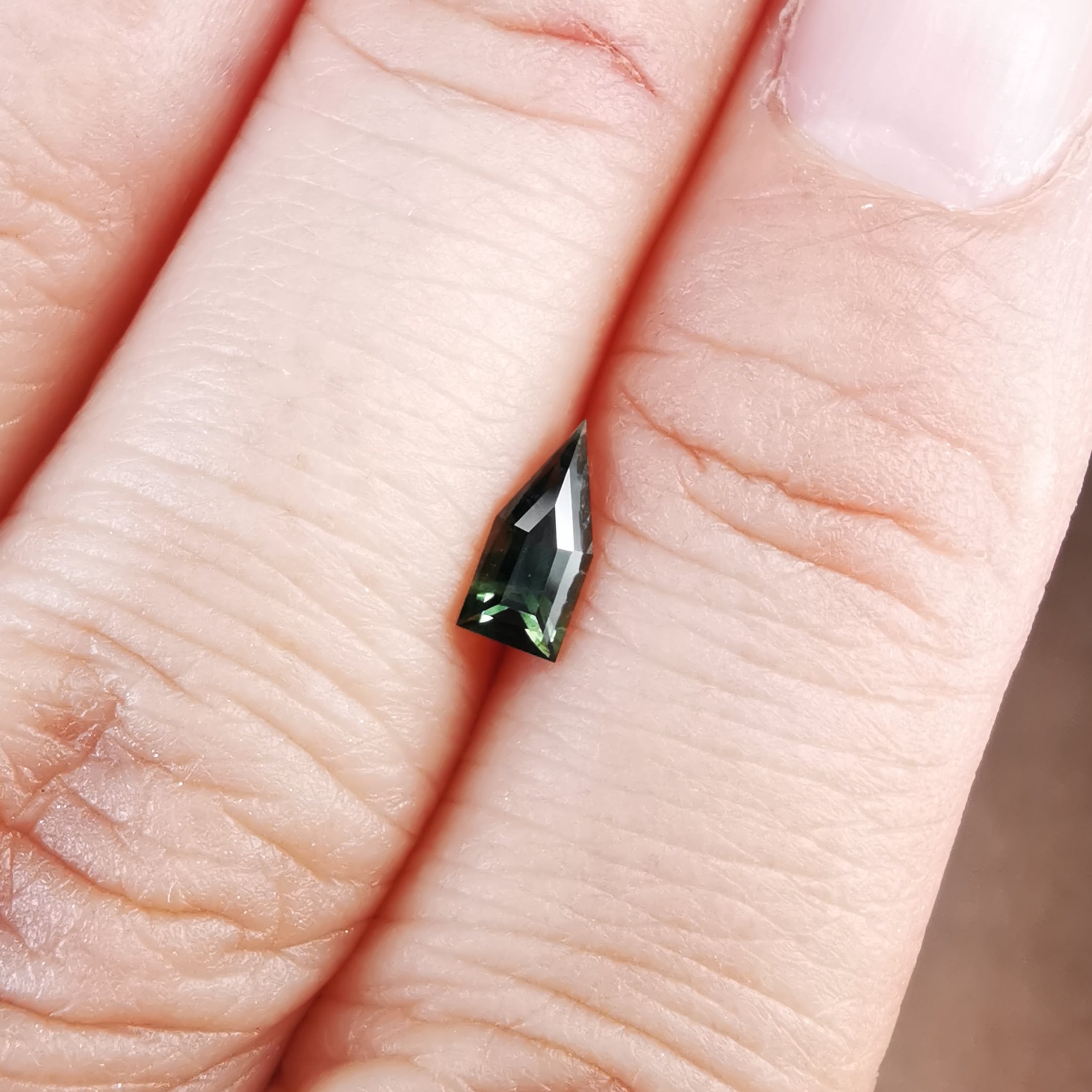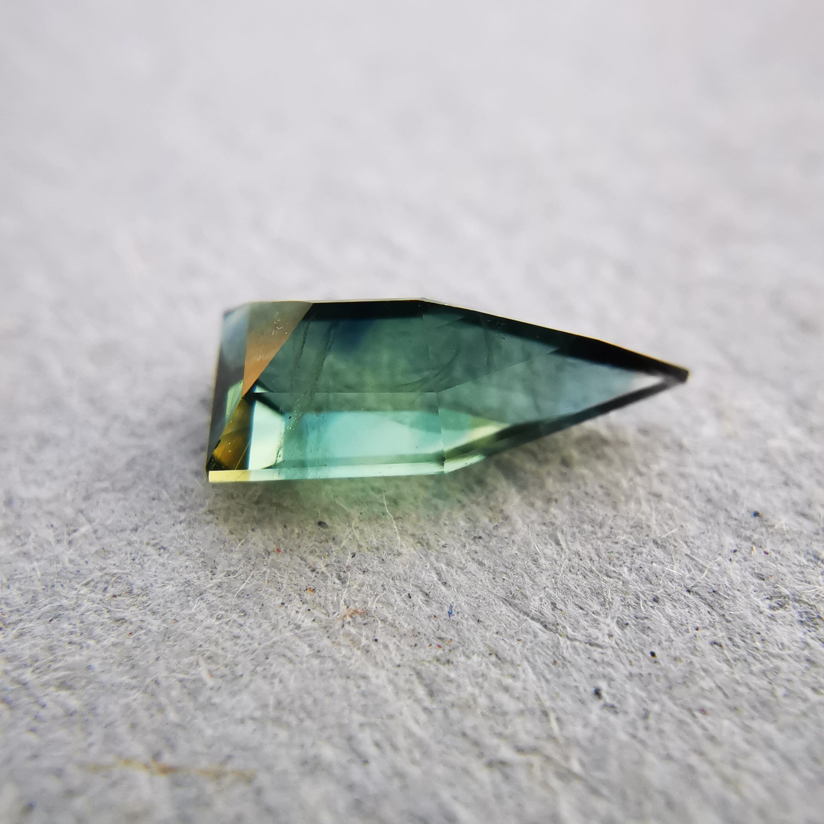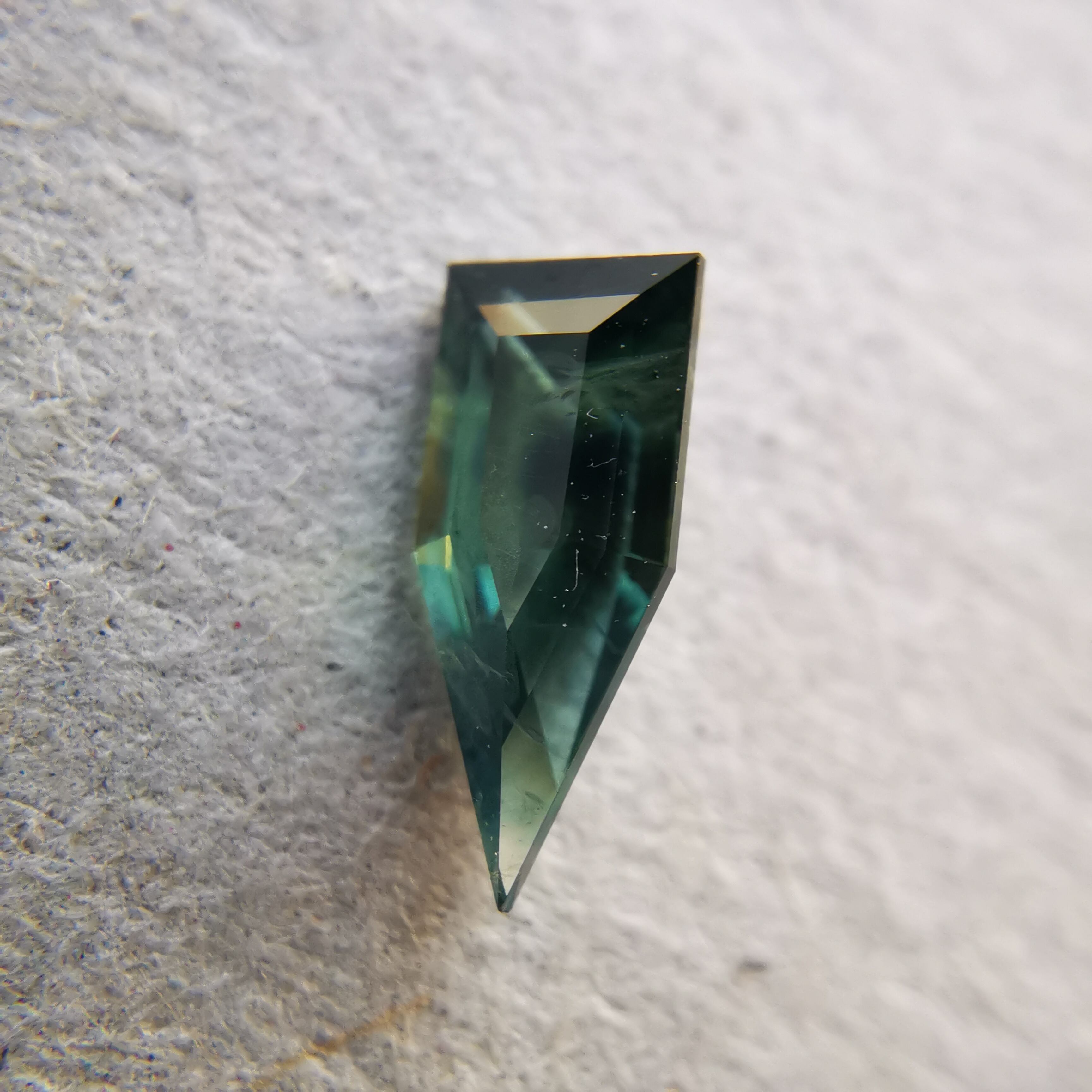大聖堂のとがった屋根のようなカット、ブルーとイエローが混じり合ったカラーです。