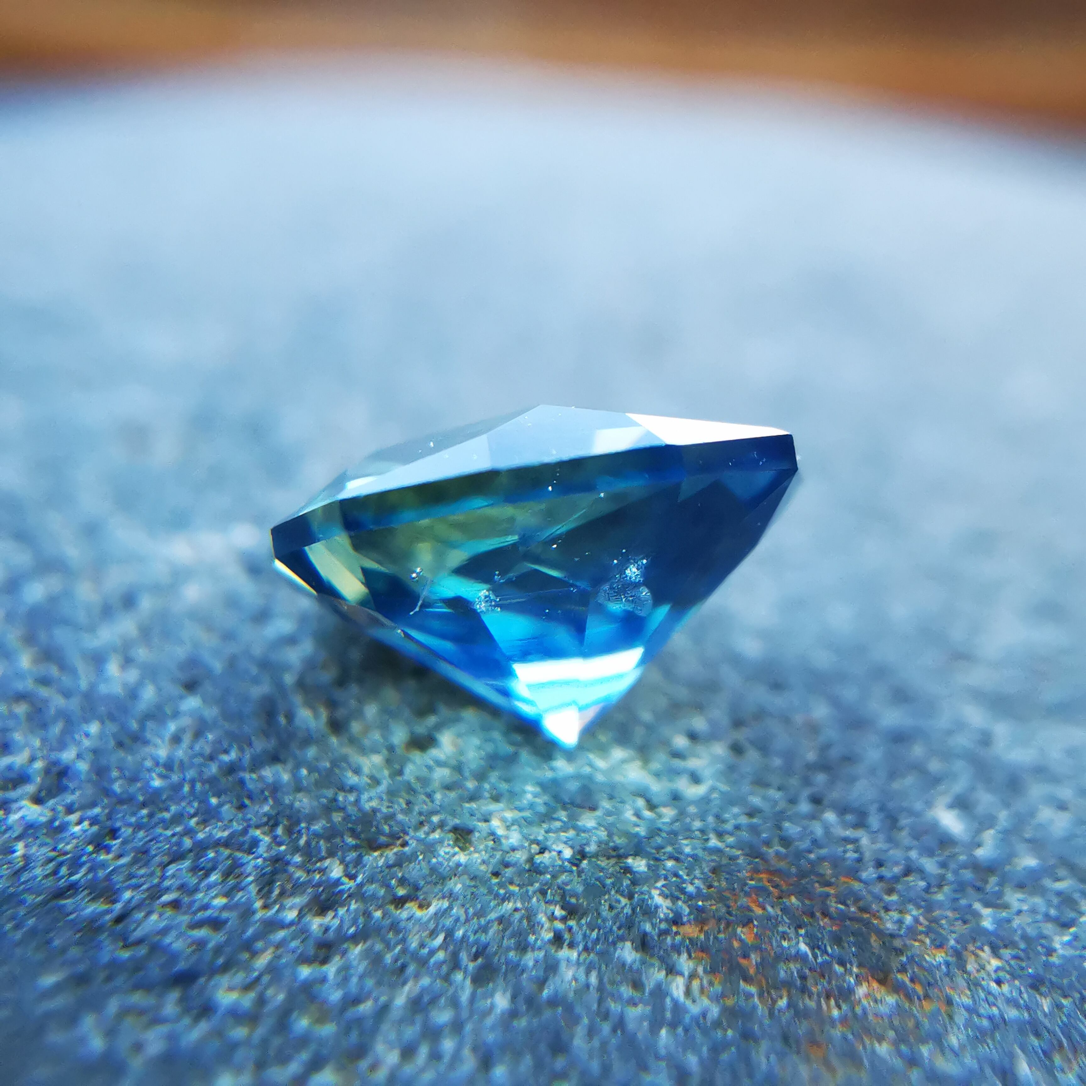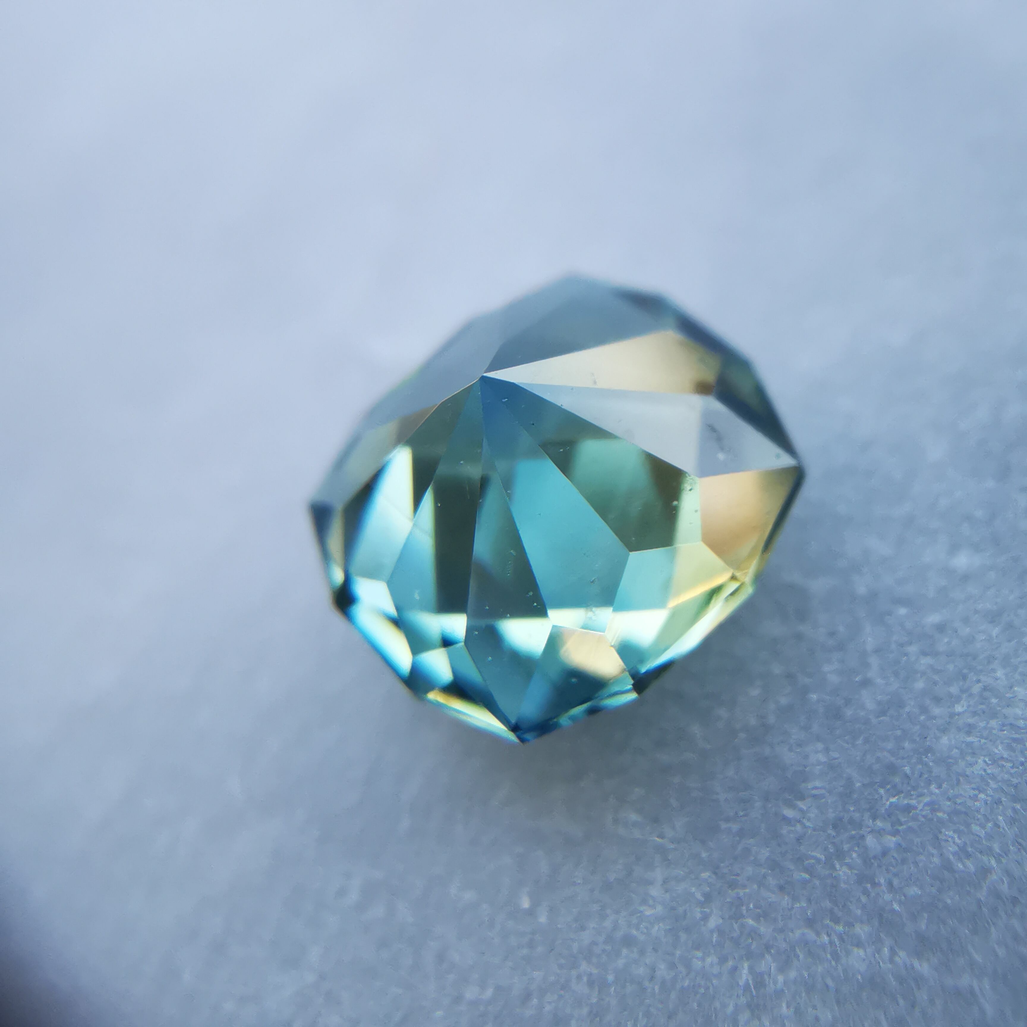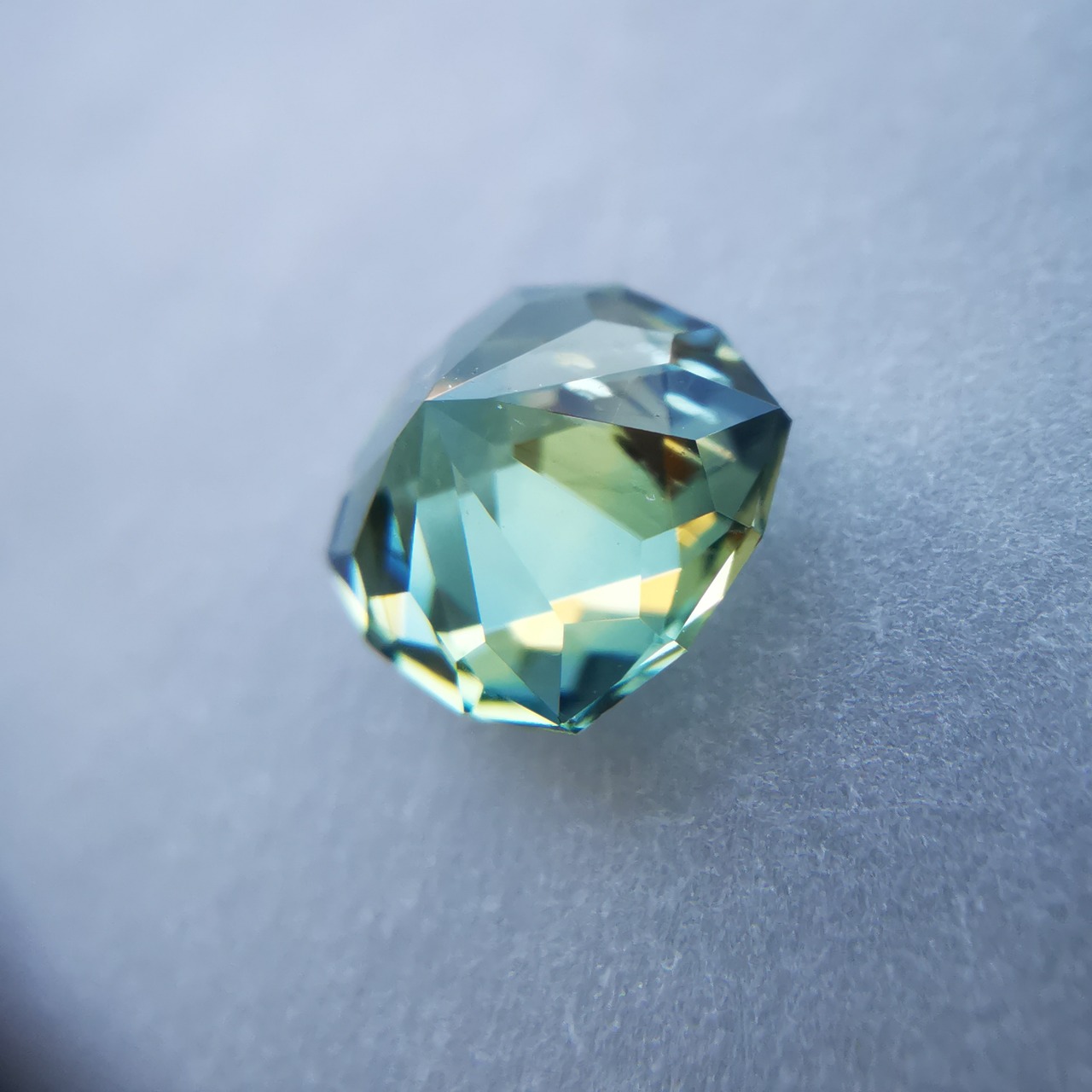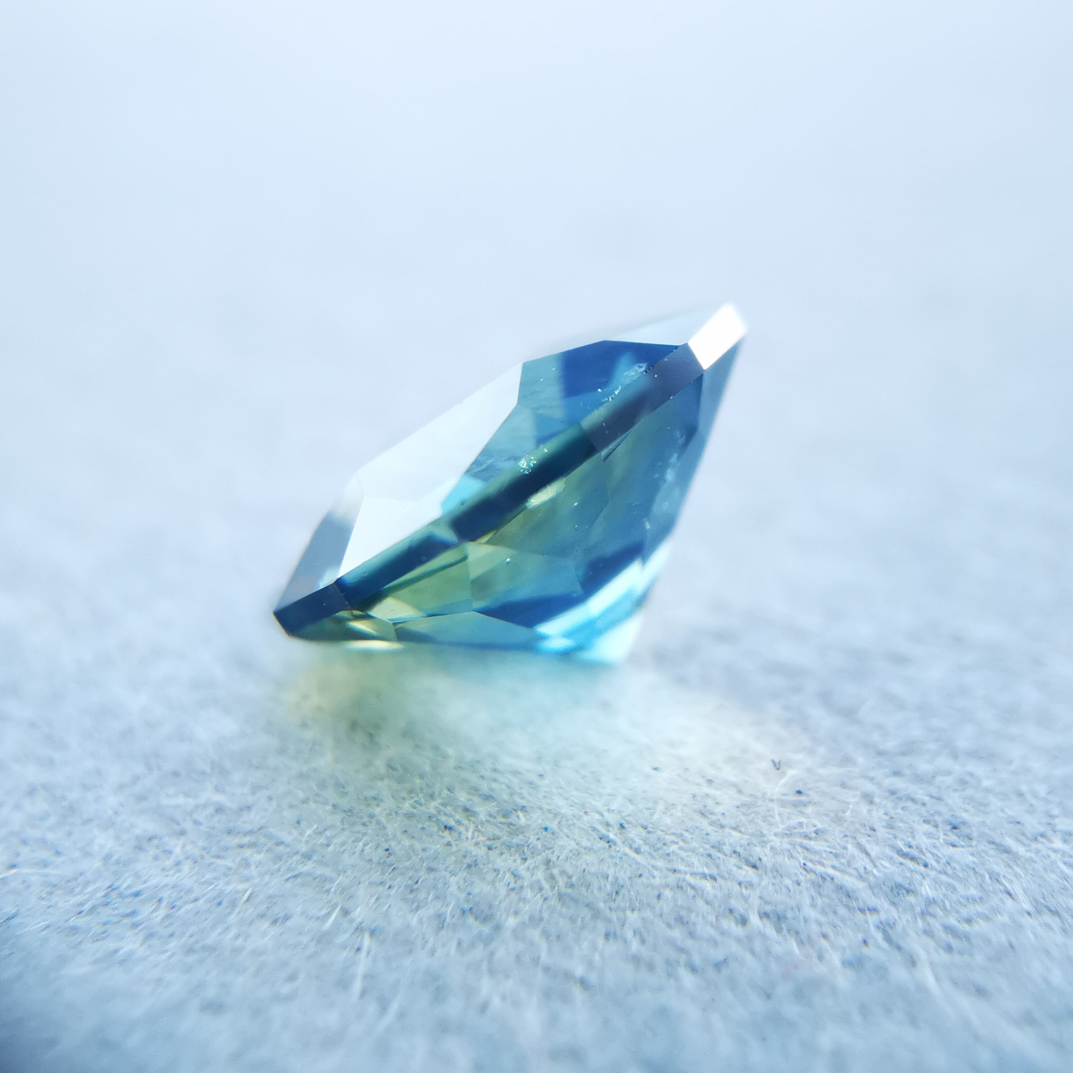 イエローとブルーが混じり合う、透明感の高いサファイアです。