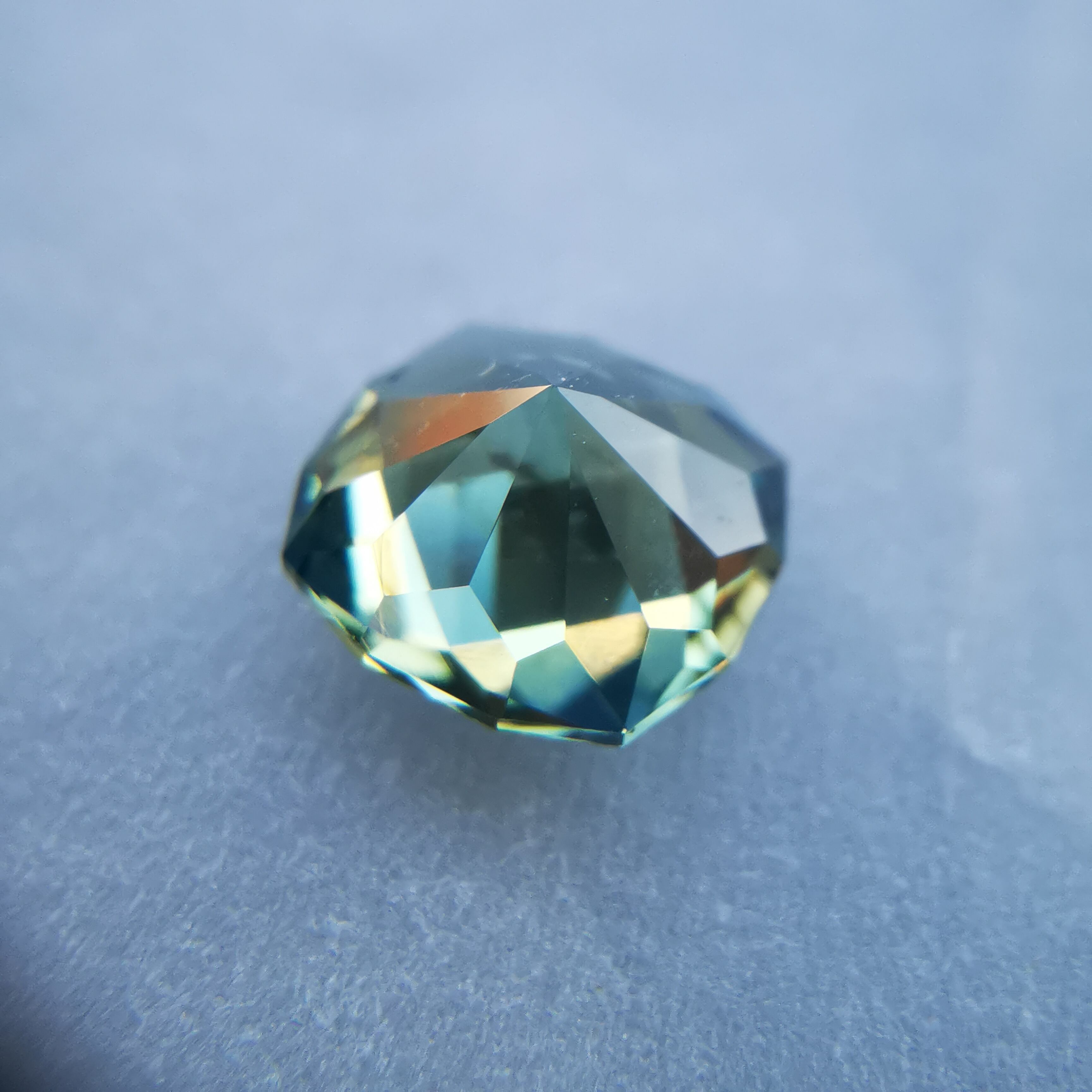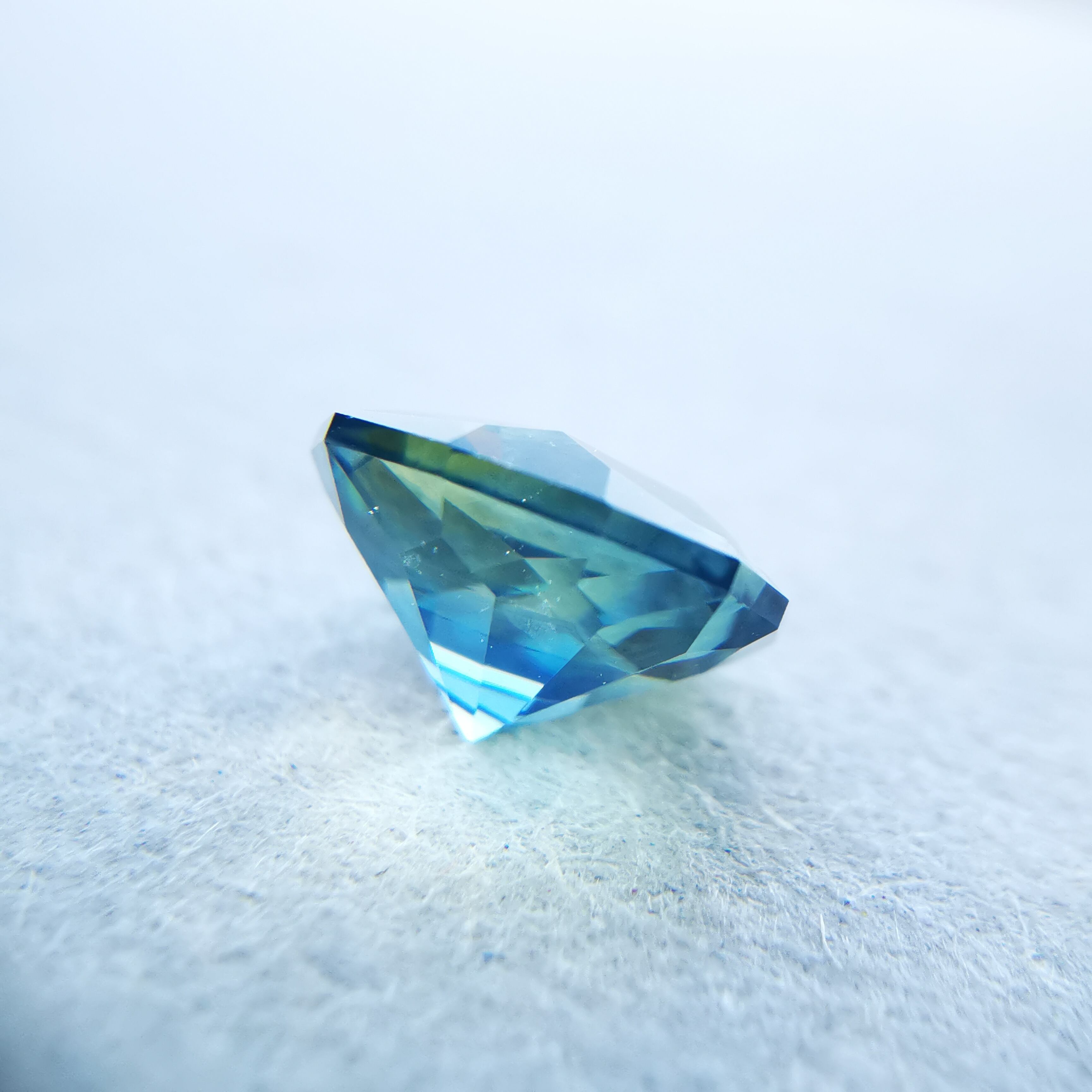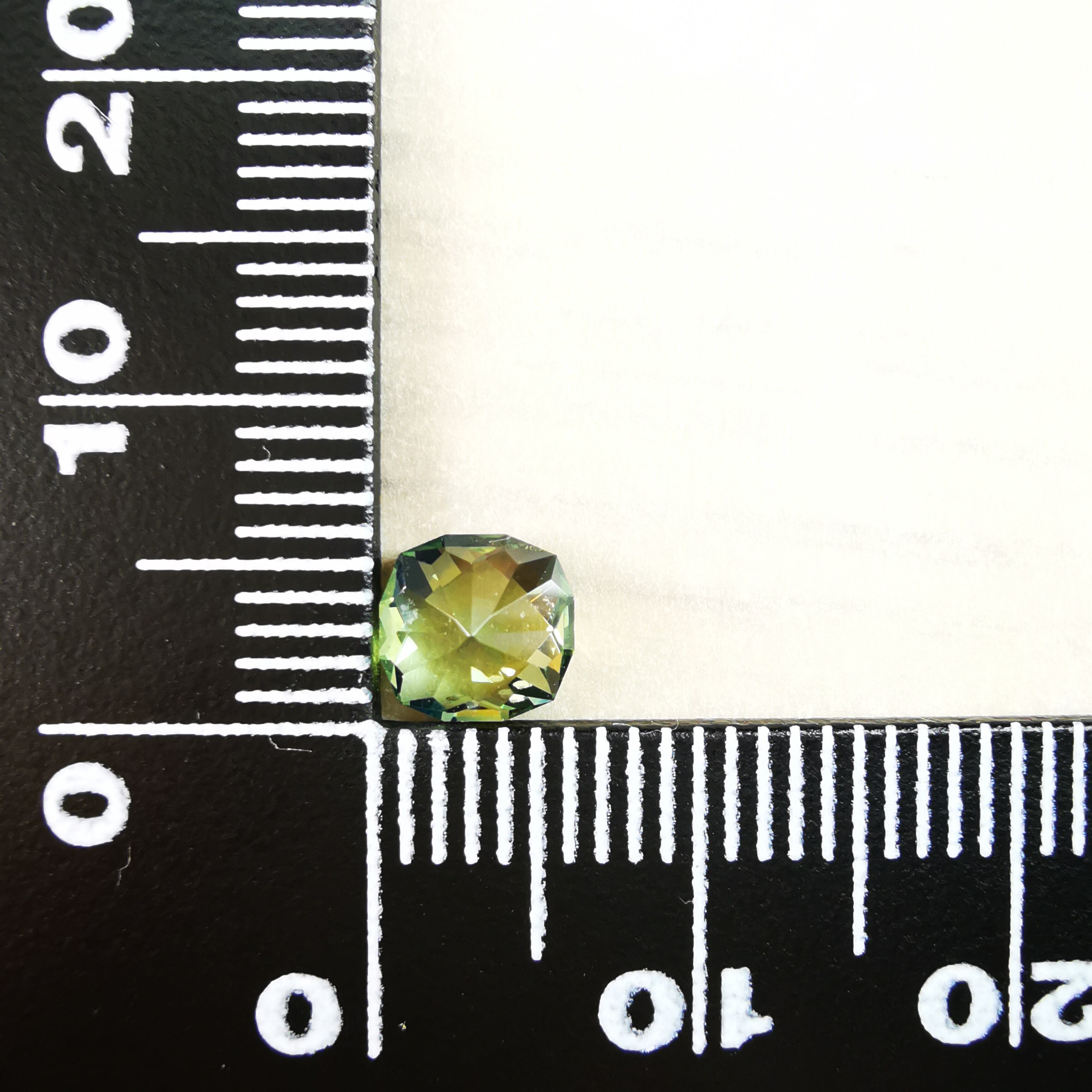 イエローとブルーが混じり合う、透明感の高いサファイアです。
