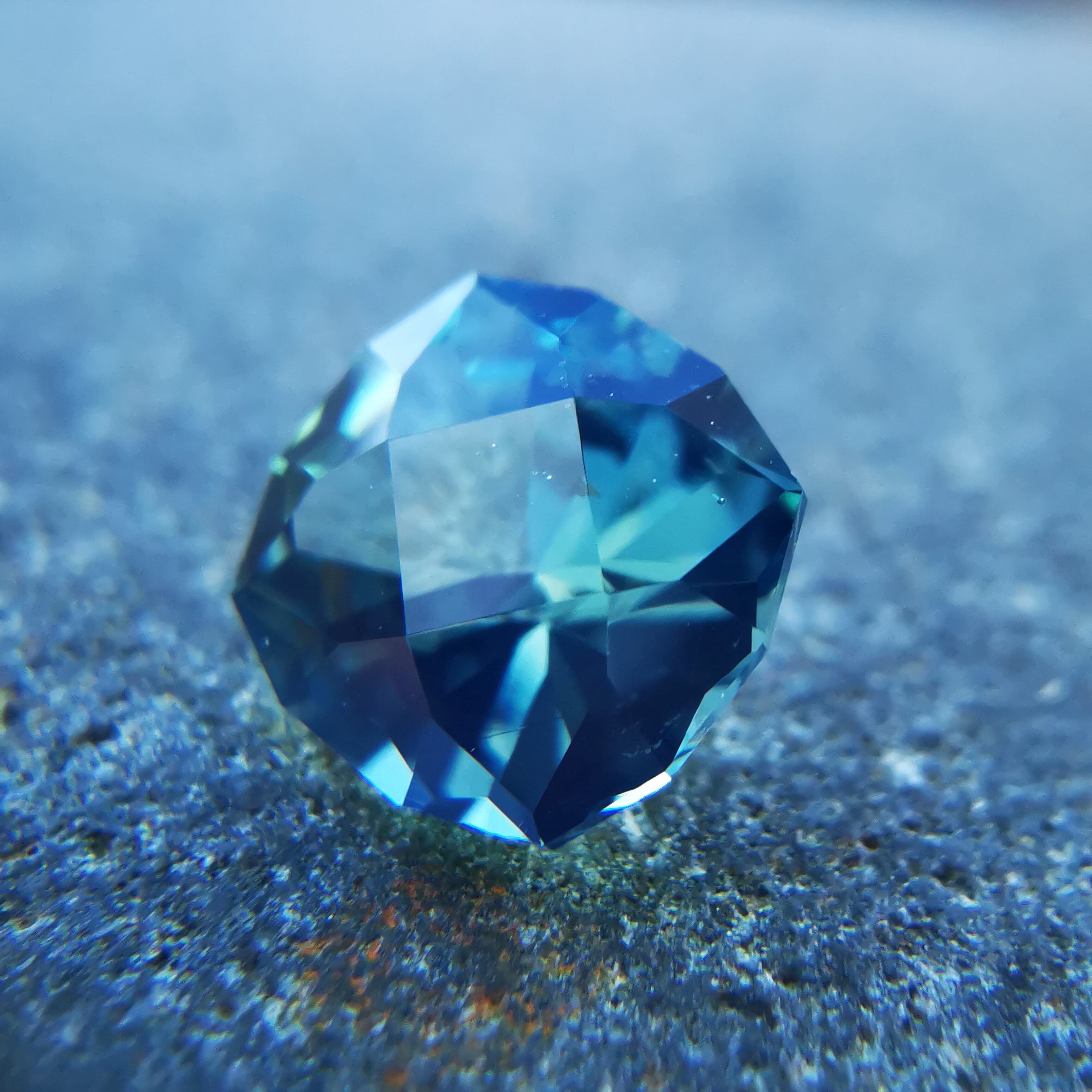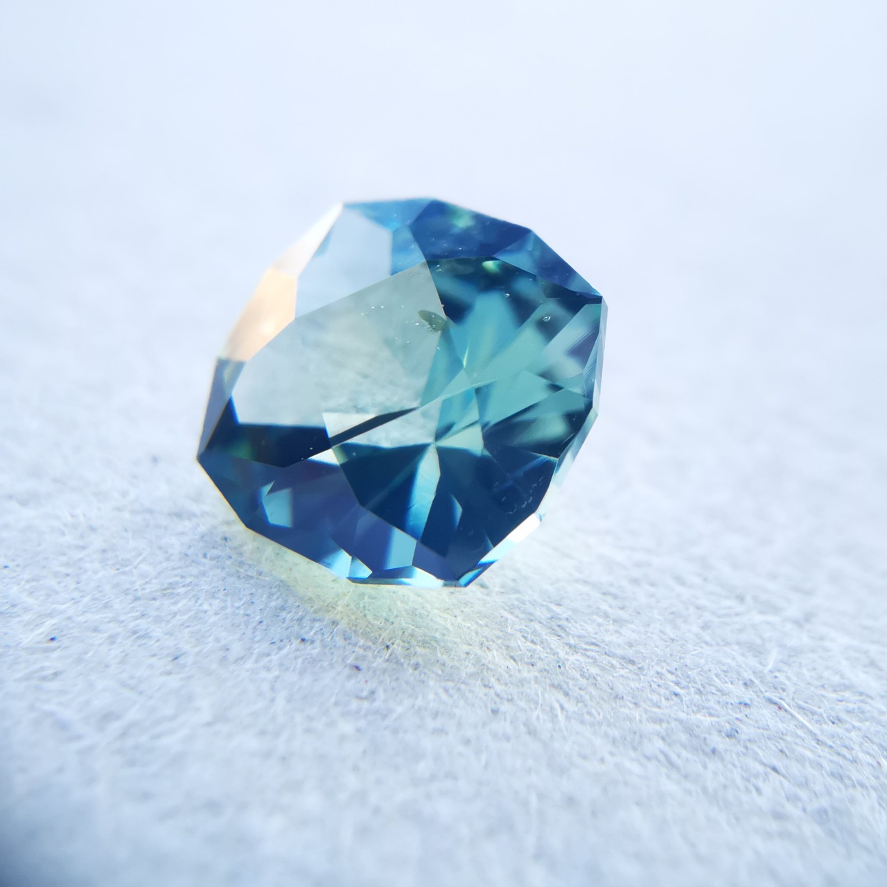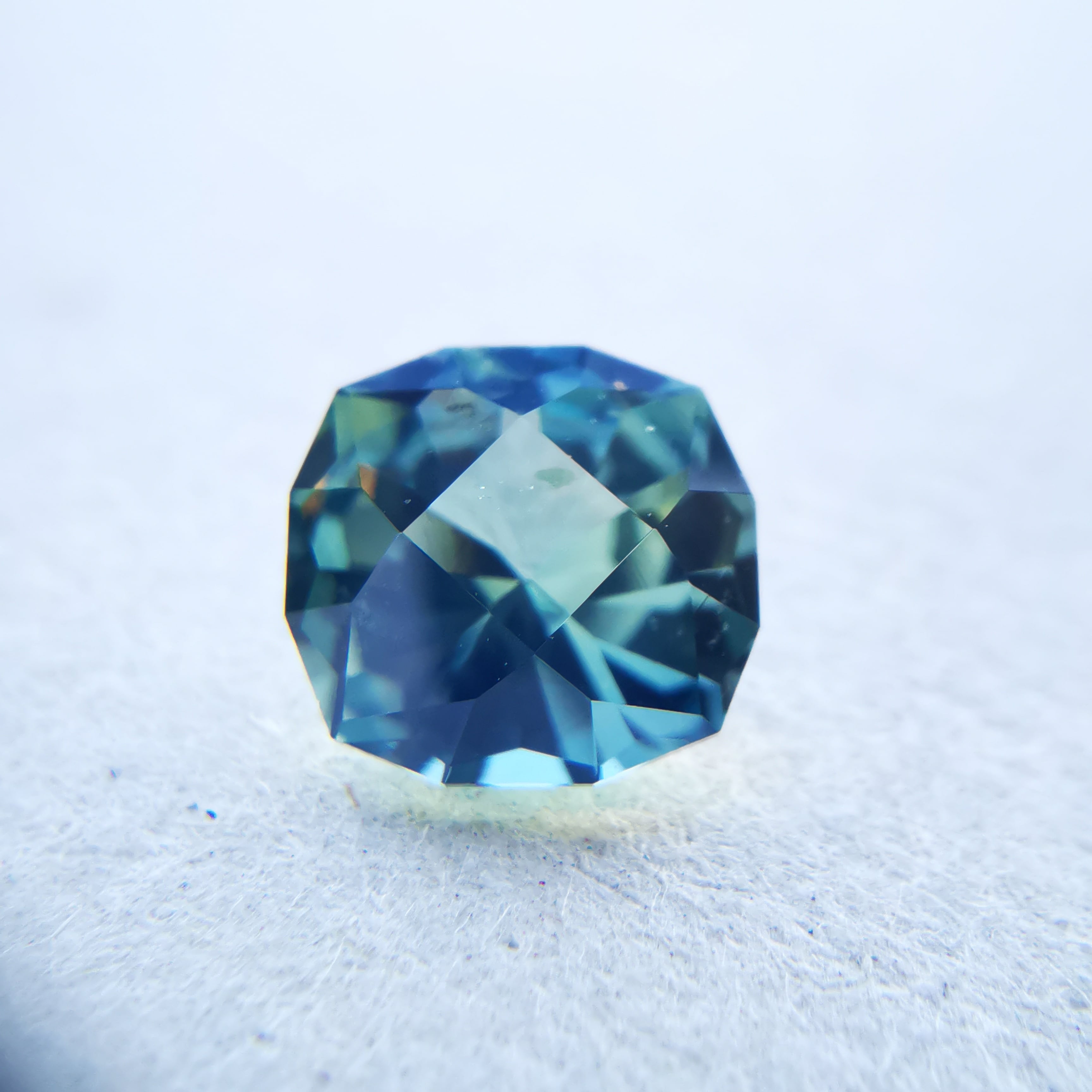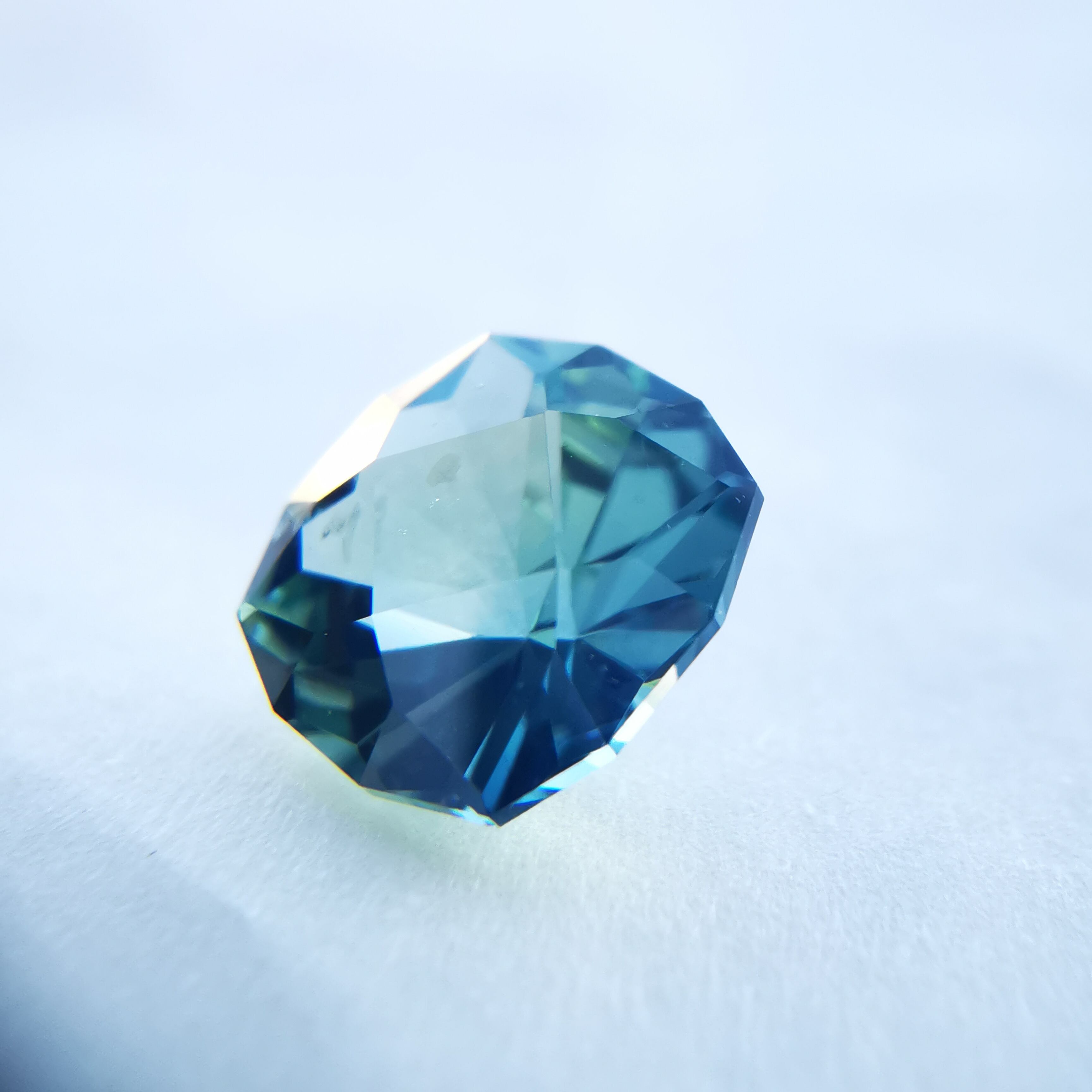 イエローとブルーが混じり合う、透明感の高いサファイアです。