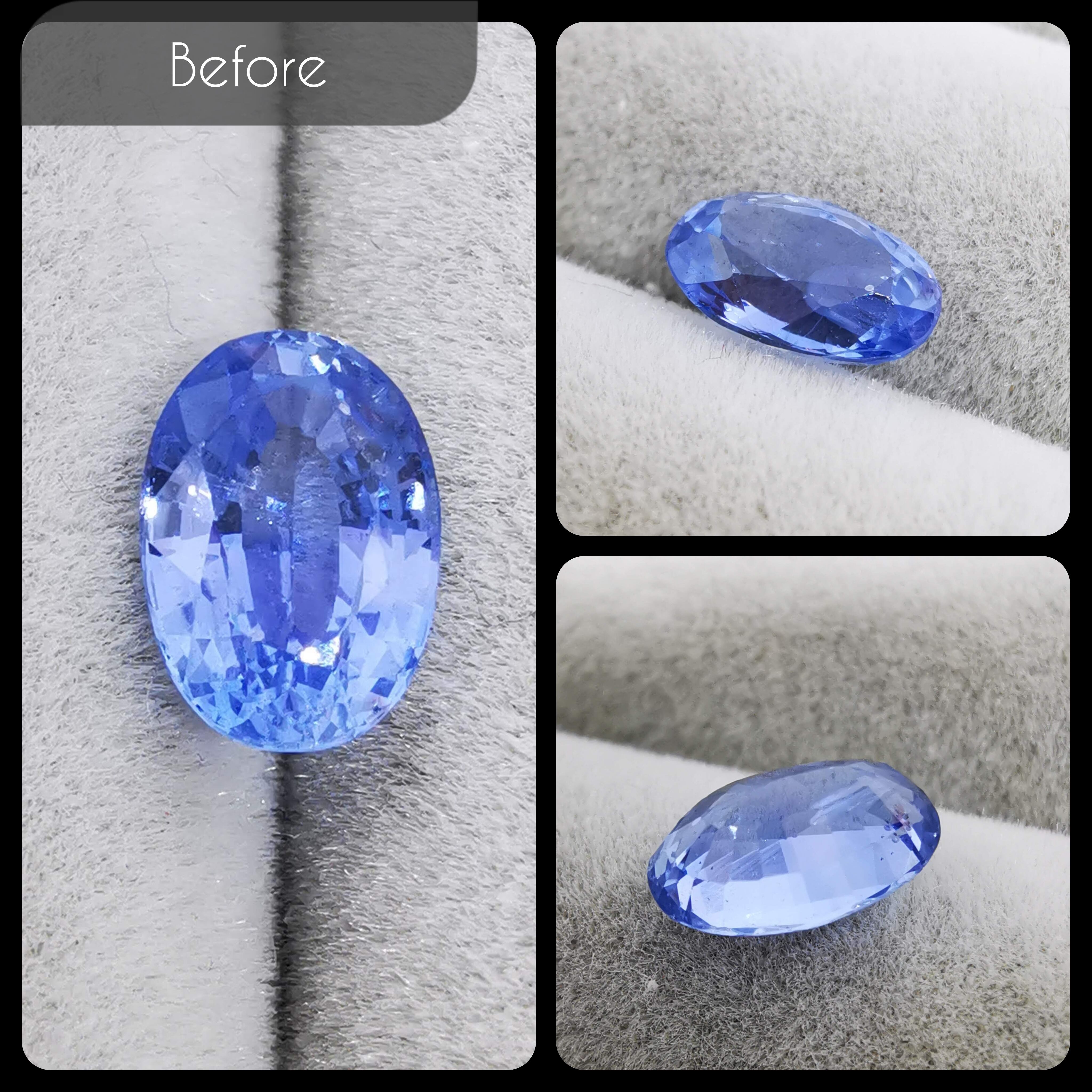 小さいキラキラを石の中にこれでもかと詰め込んだようなサファイアになりました。