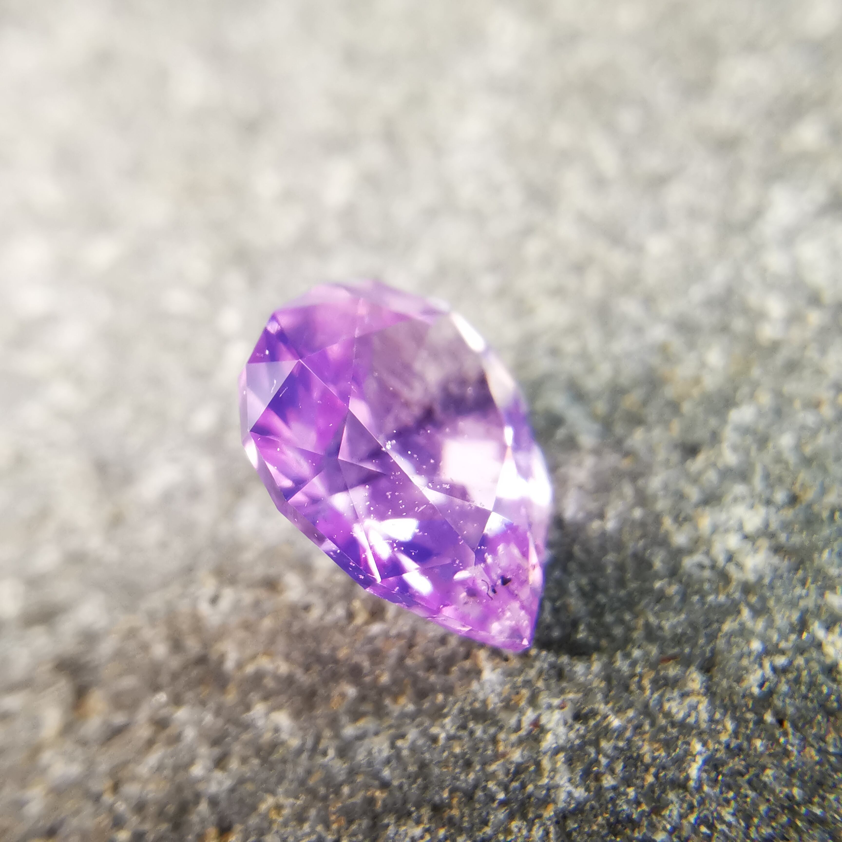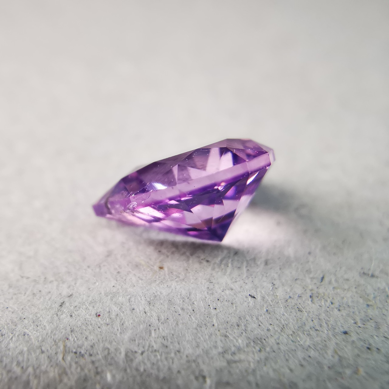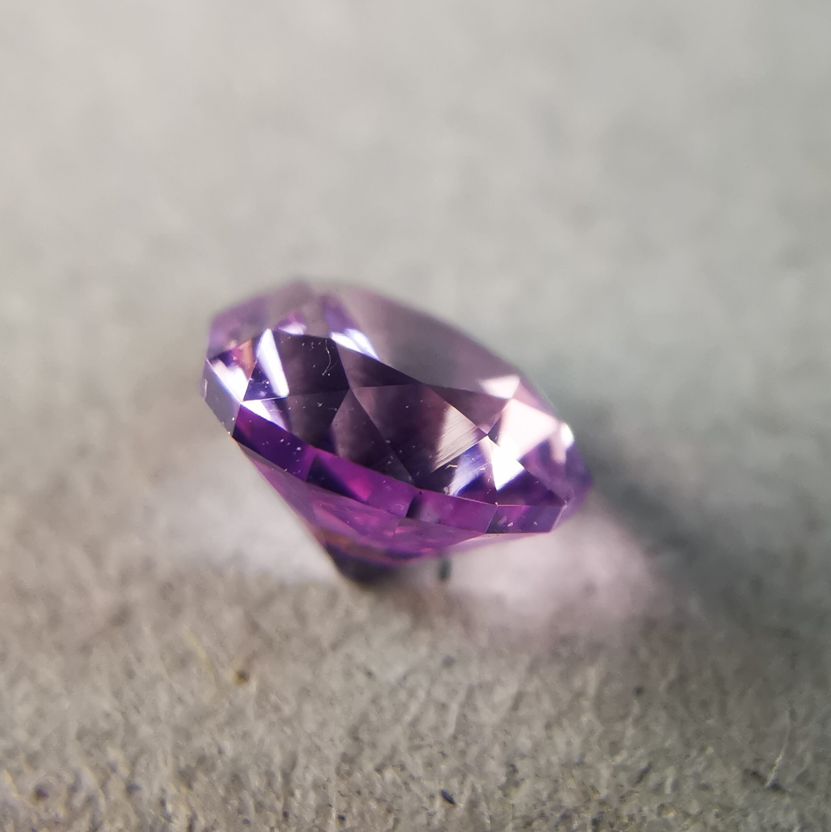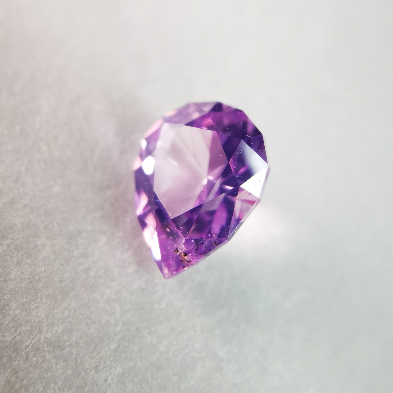 写真では暗く映る部分がありますが、暗さを感じない、明るいライラックカラーのサファイアです。