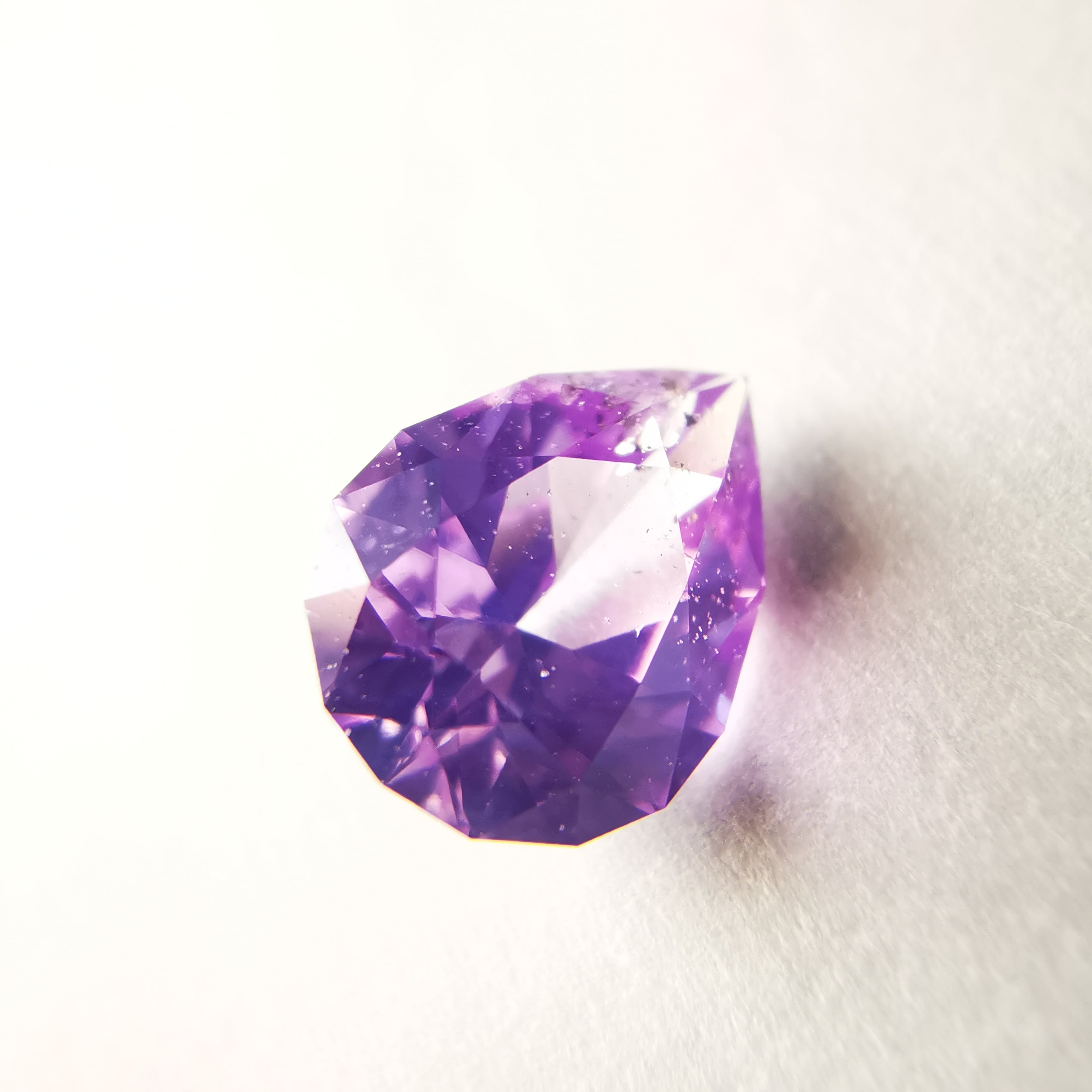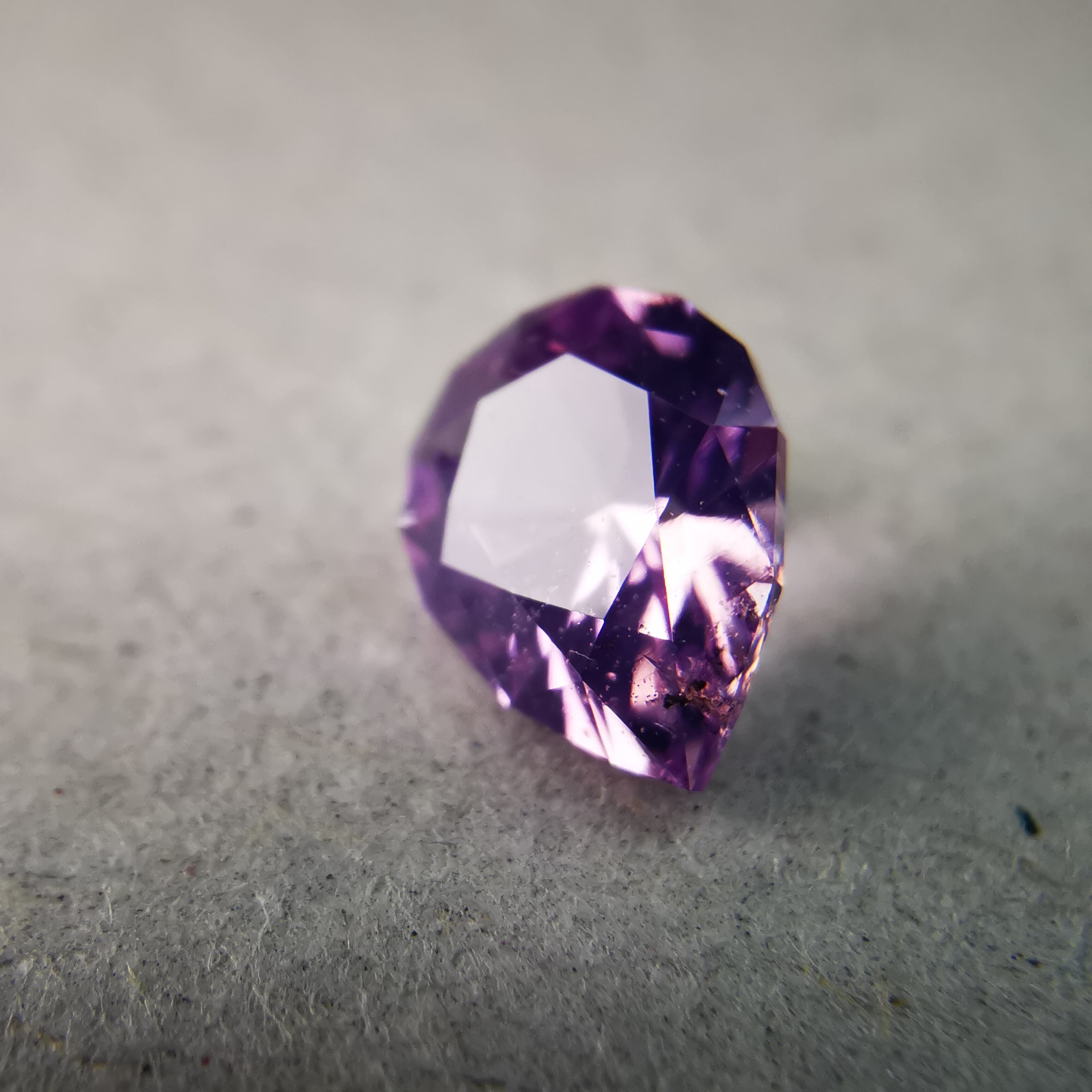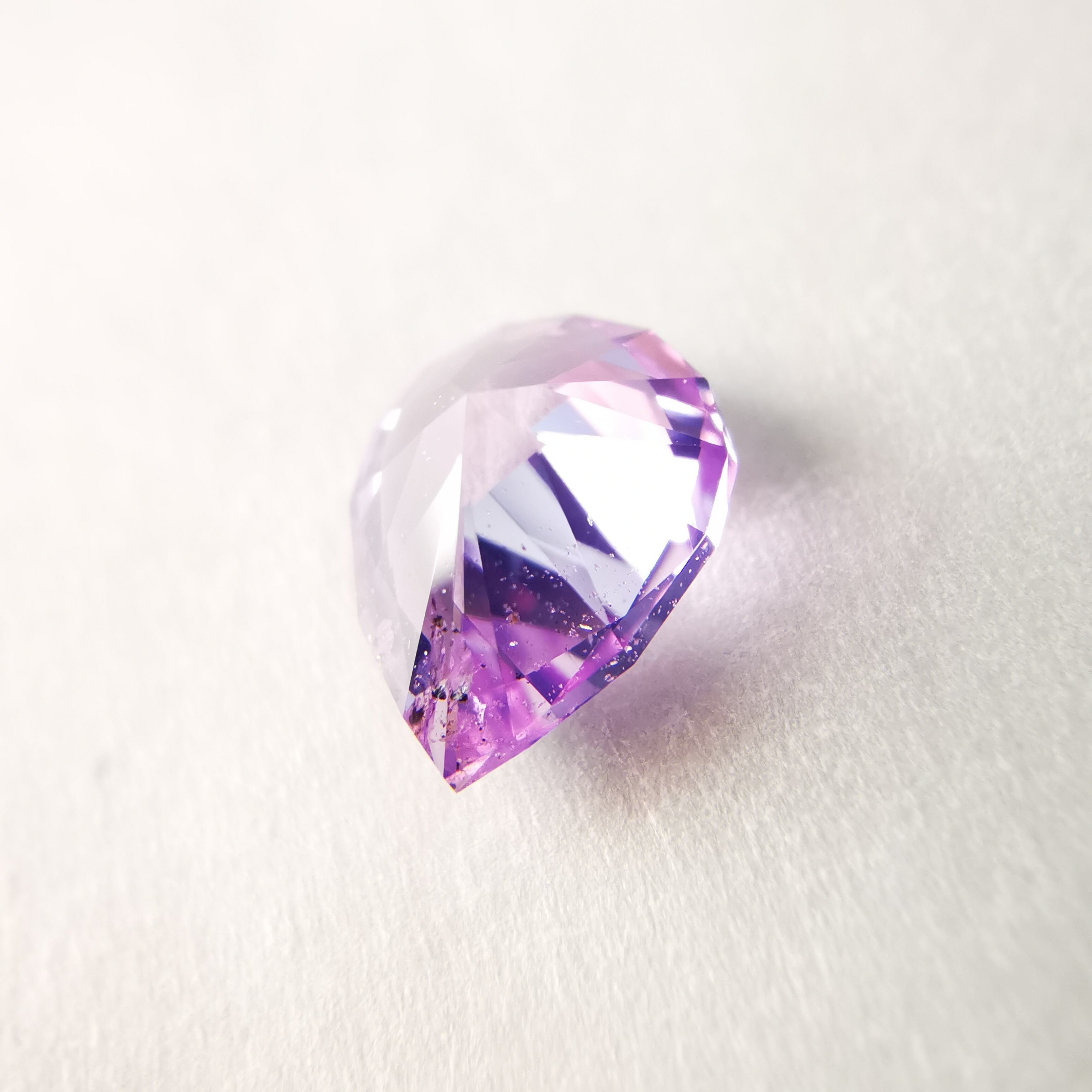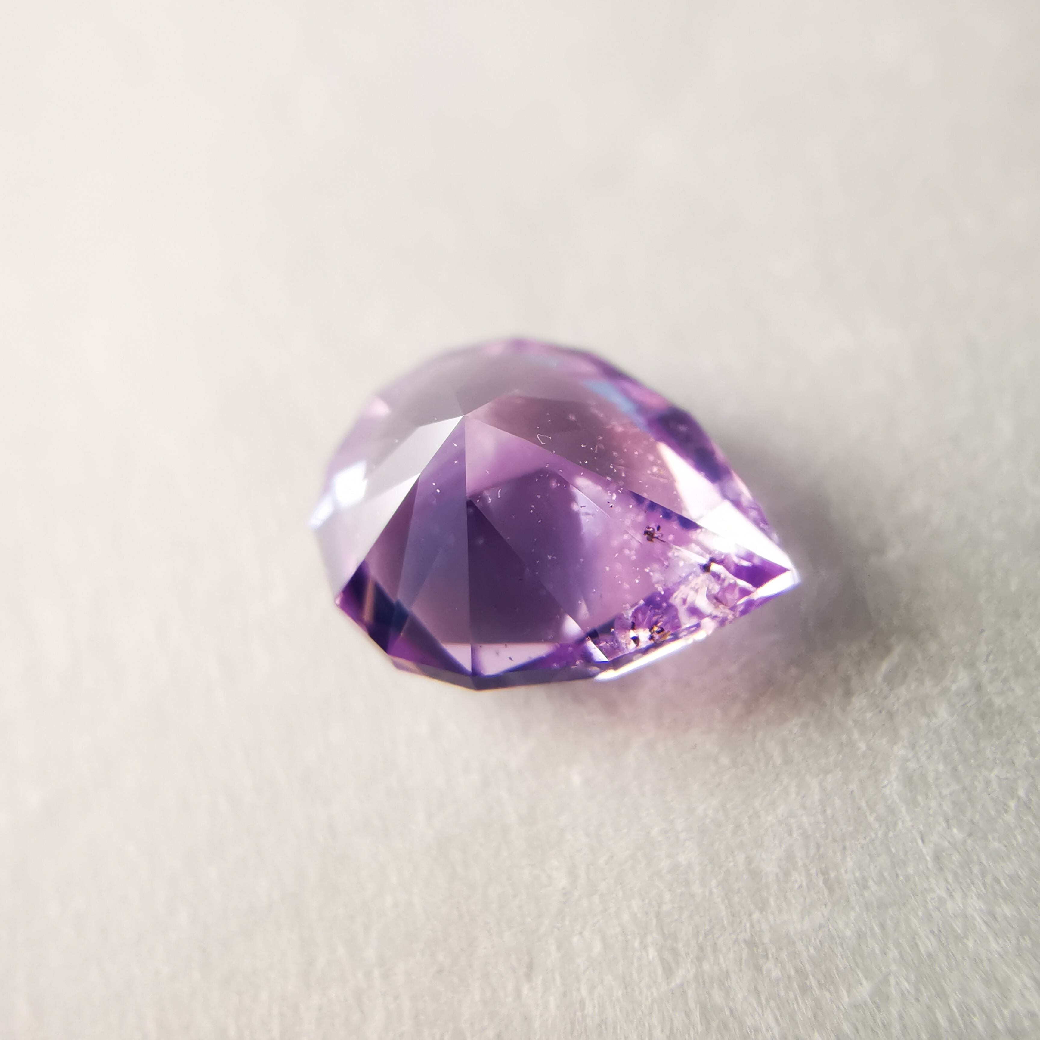 写真では暗く映る部分がありますが、暗さを感じない、明るいライラックカラーのサファイアです。
