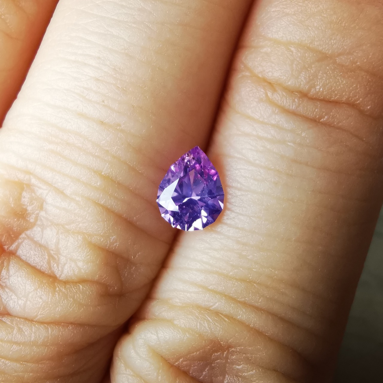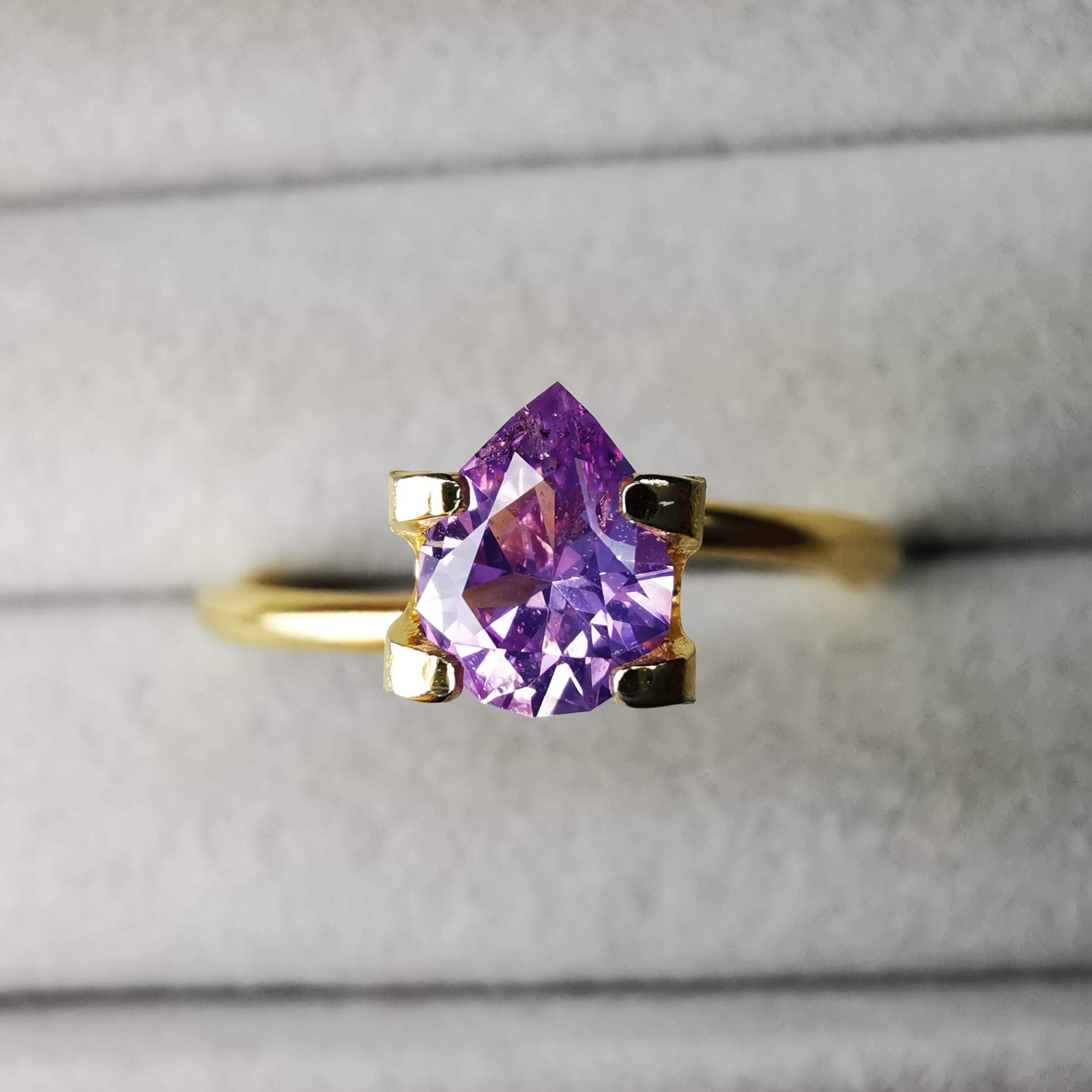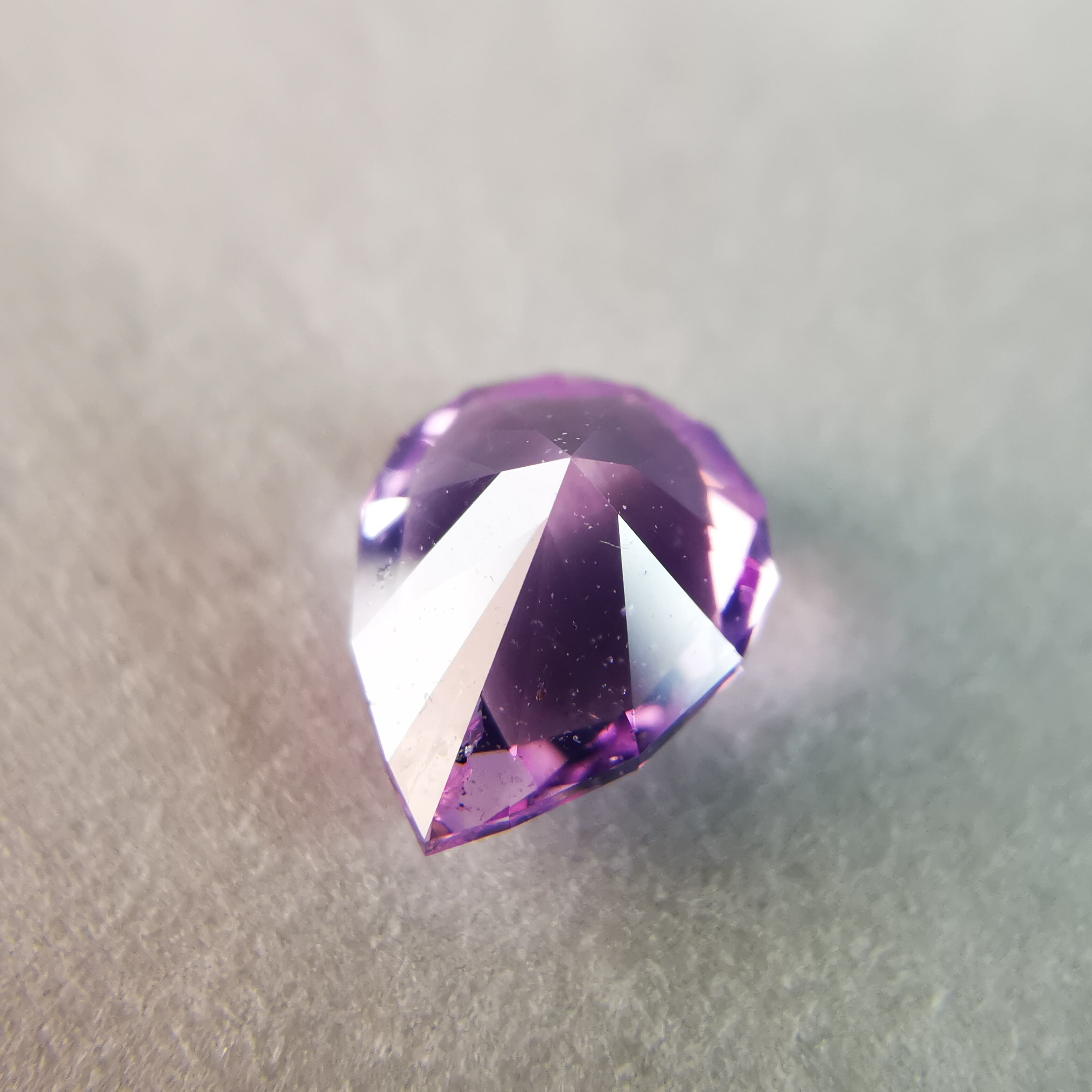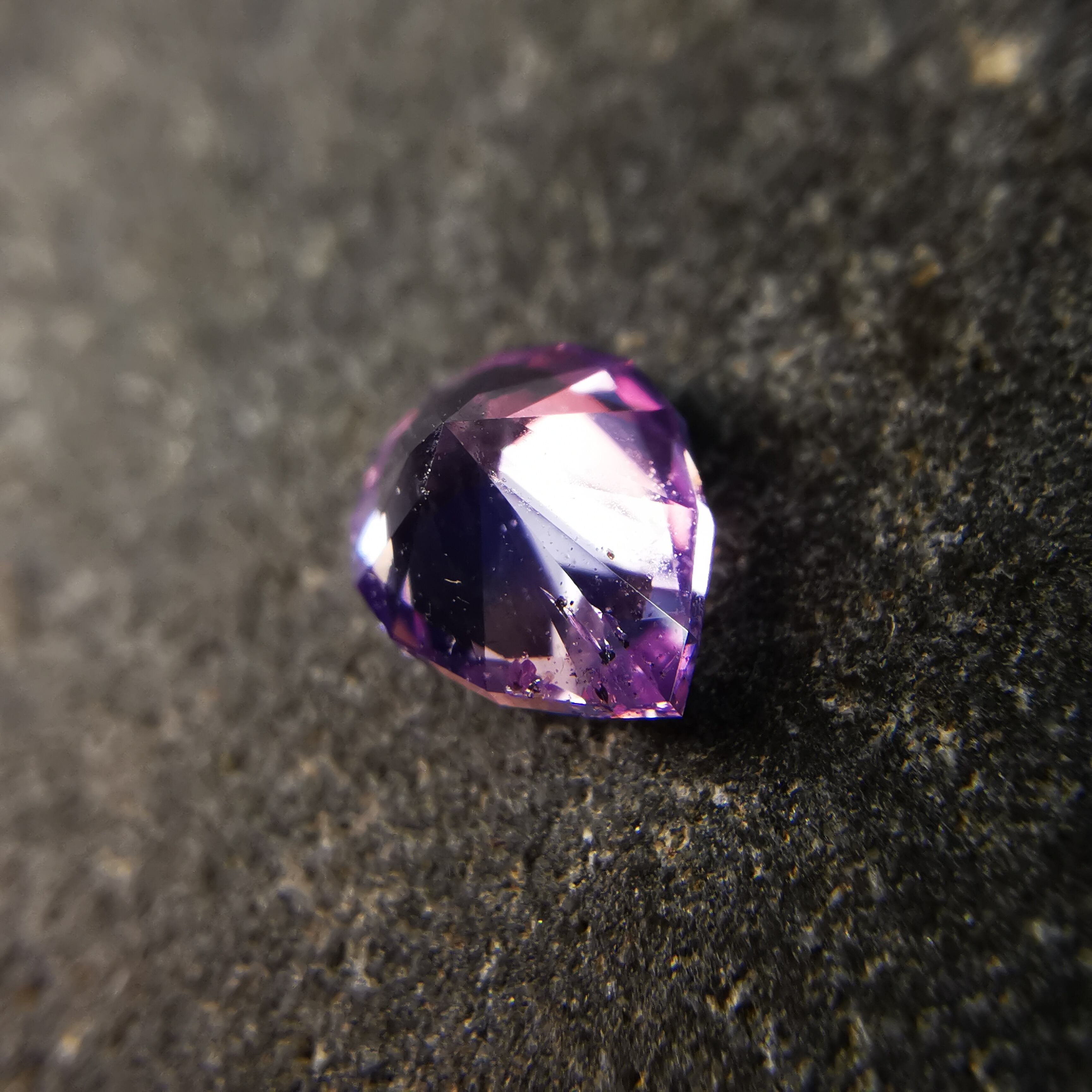 写真では暗く映る部分がありますが、暗さを感じない、明るいライラックカラーのサファイアです。