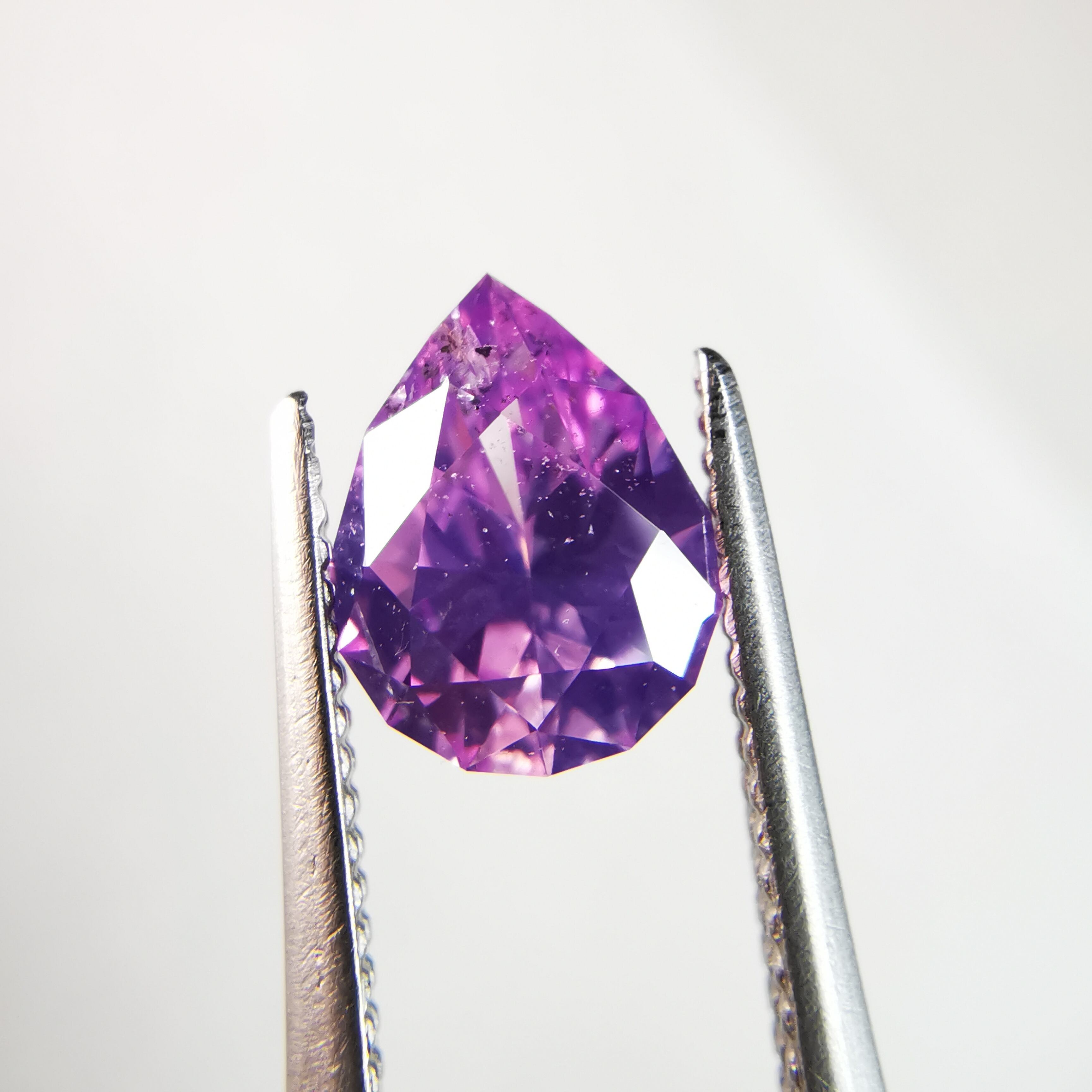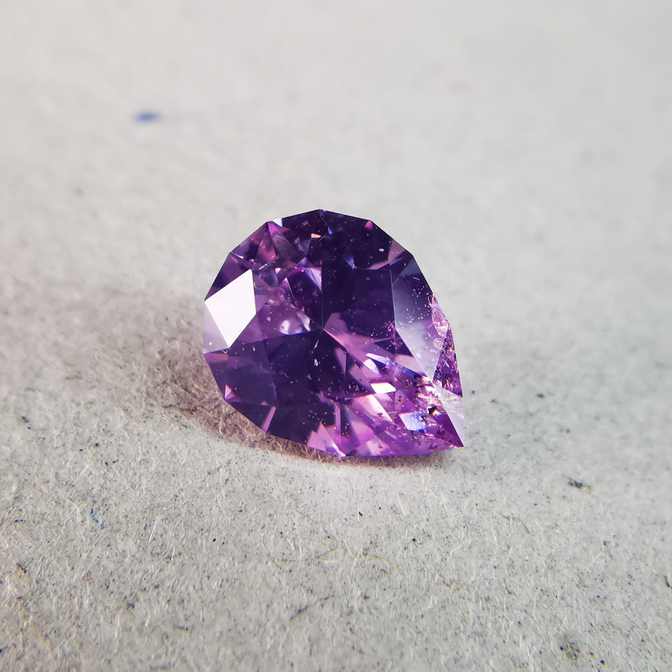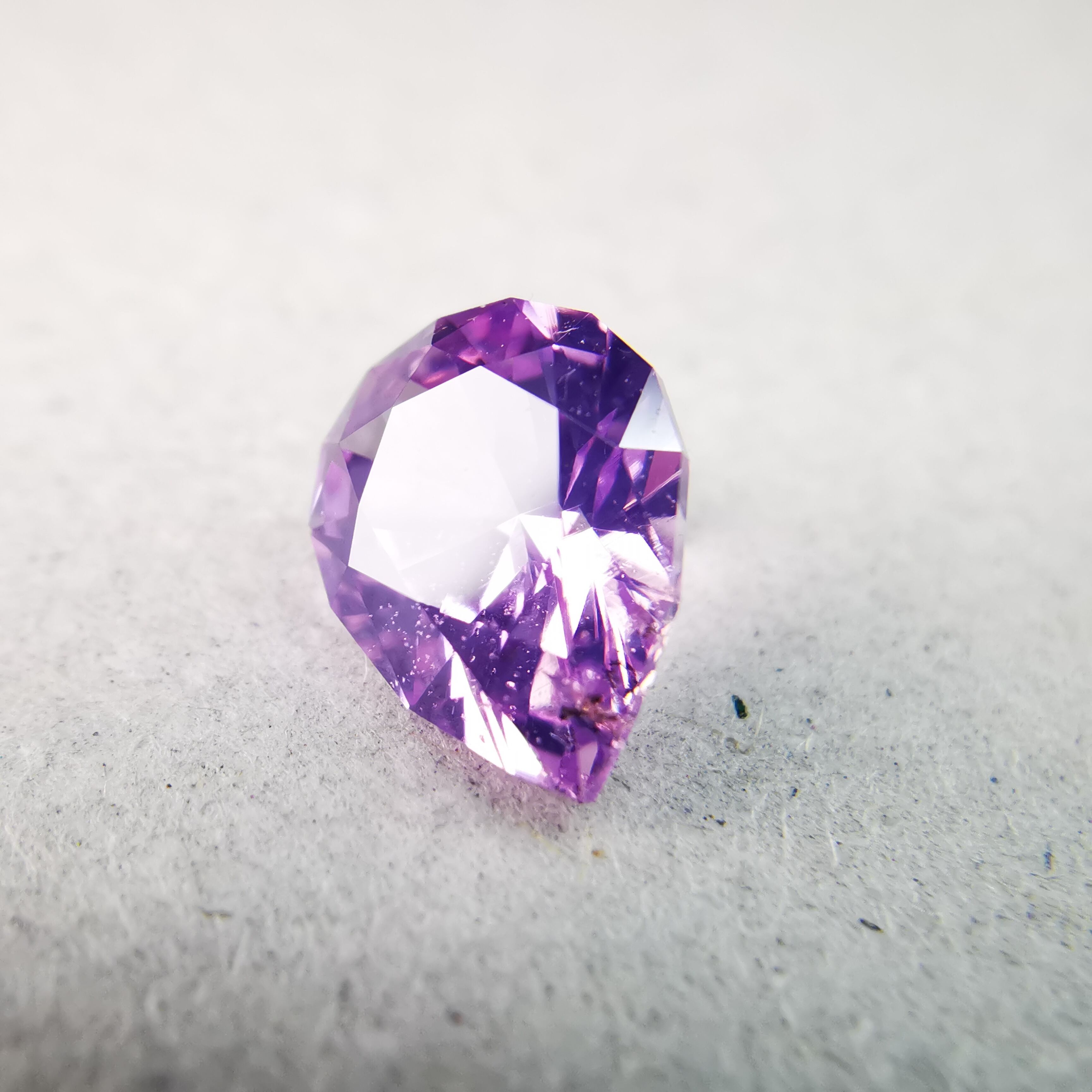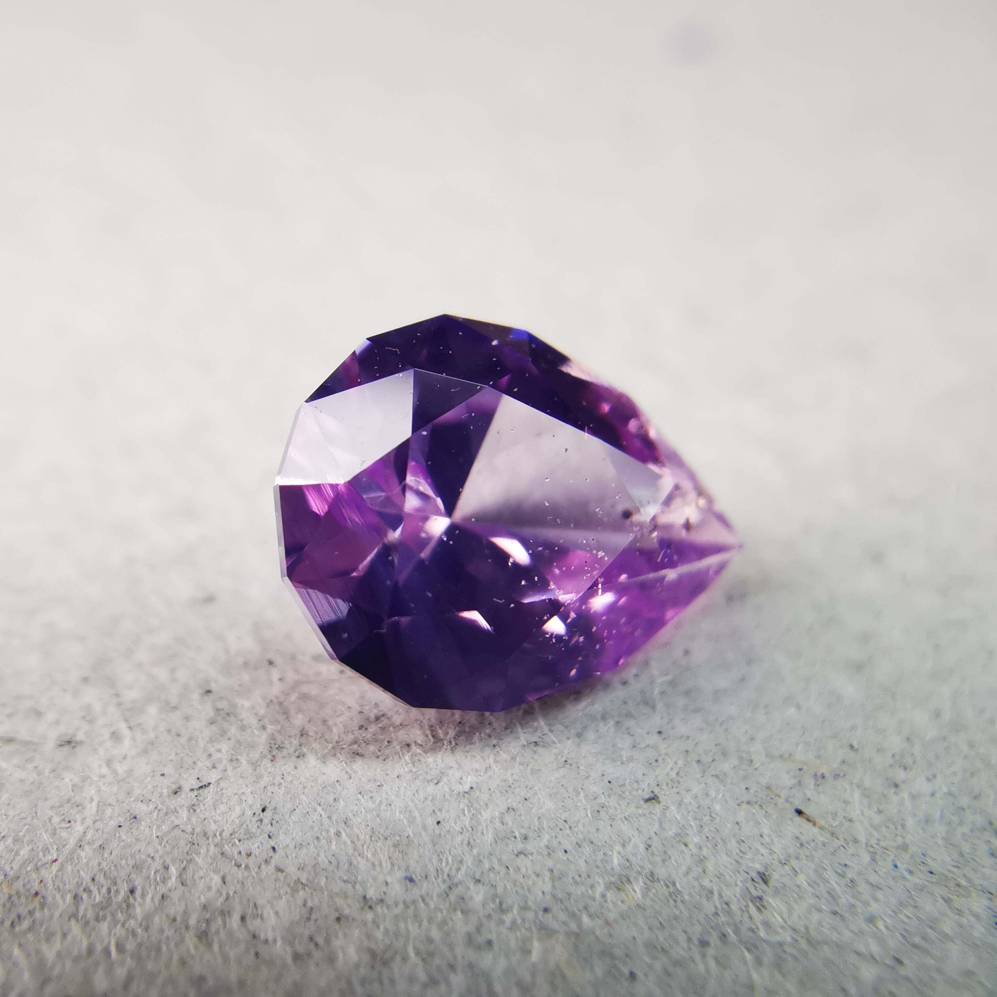 写真では暗く映る部分がありますが、暗さを感じない、明るいライラックカラーのサファイアです。