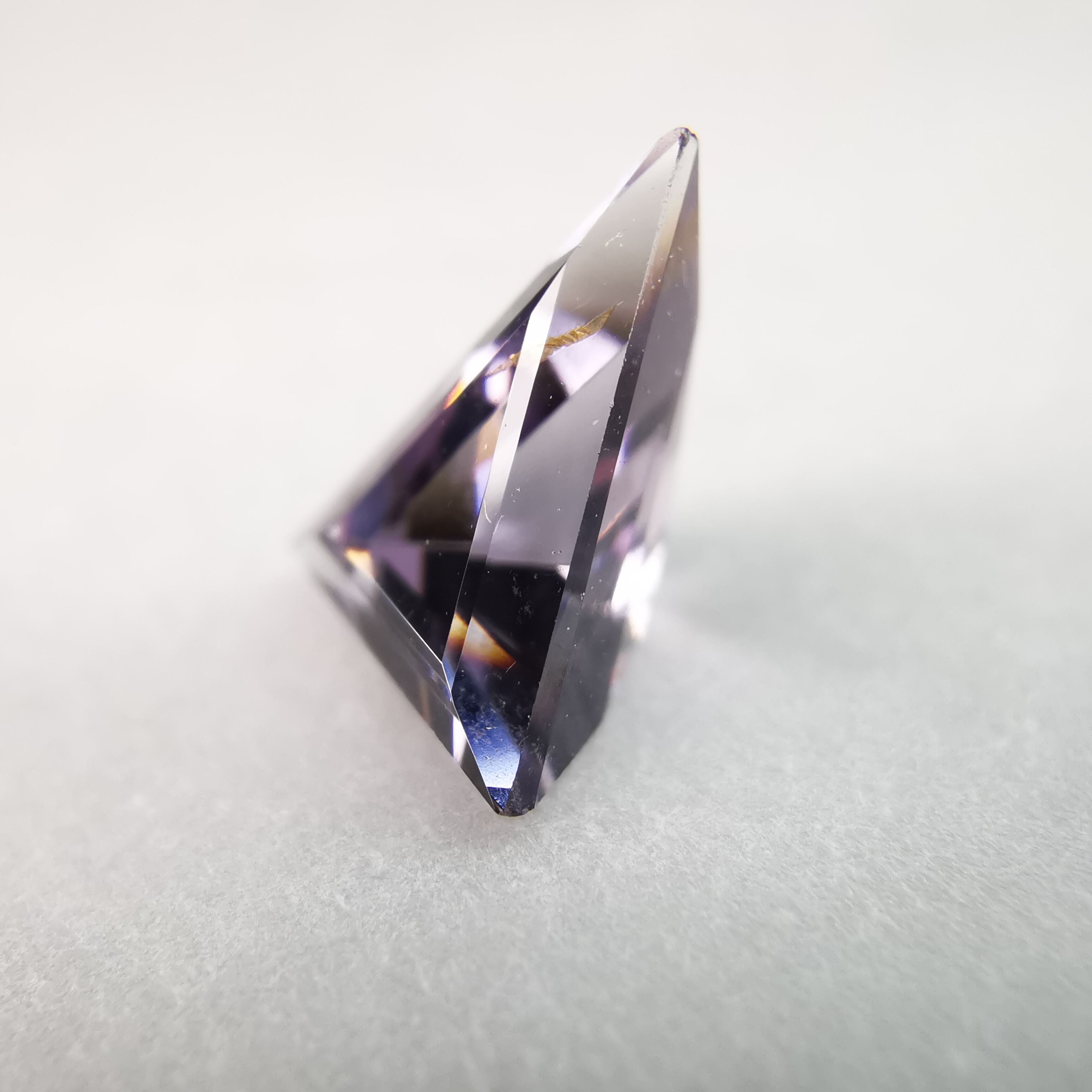 インクルージョンとカットの影響で、フェイスからは複雑な色と輝きを見ることができます。