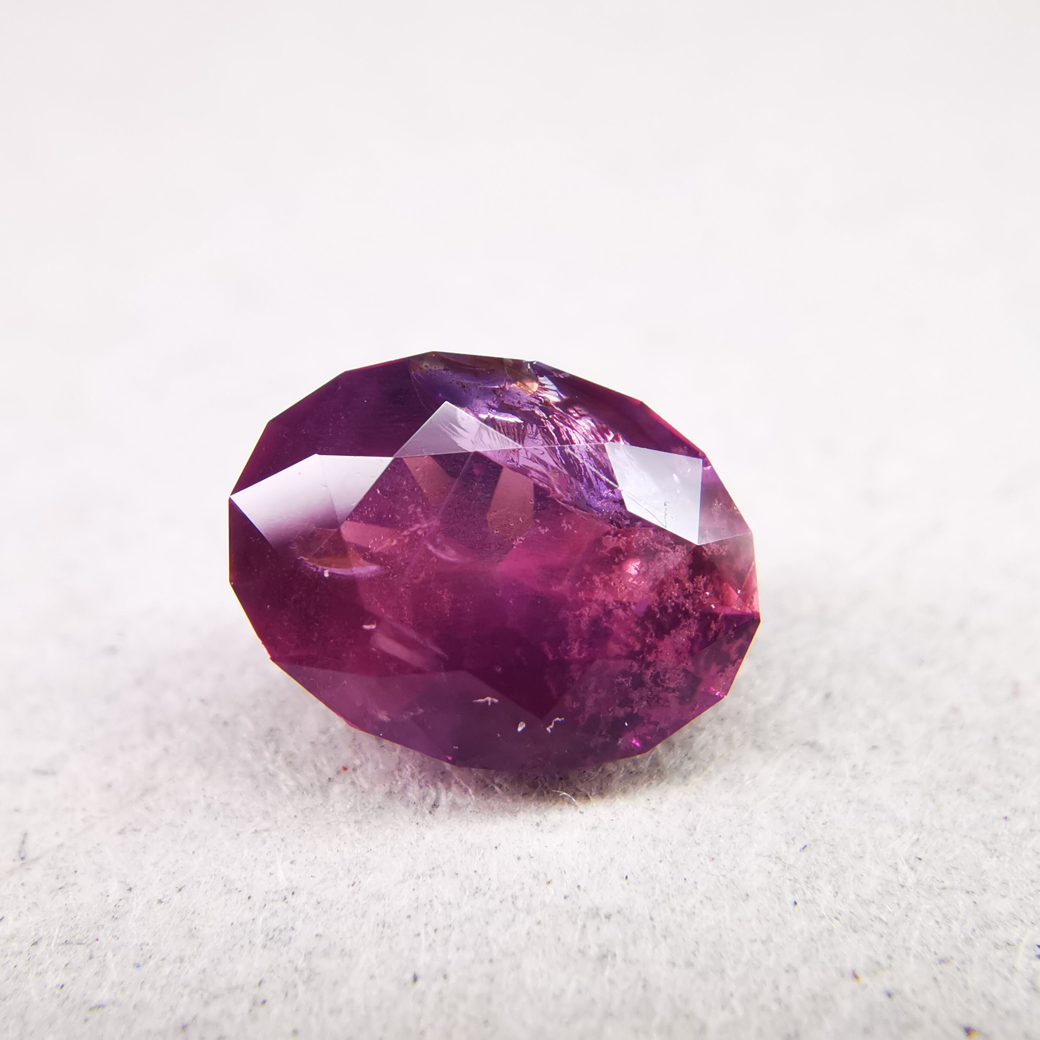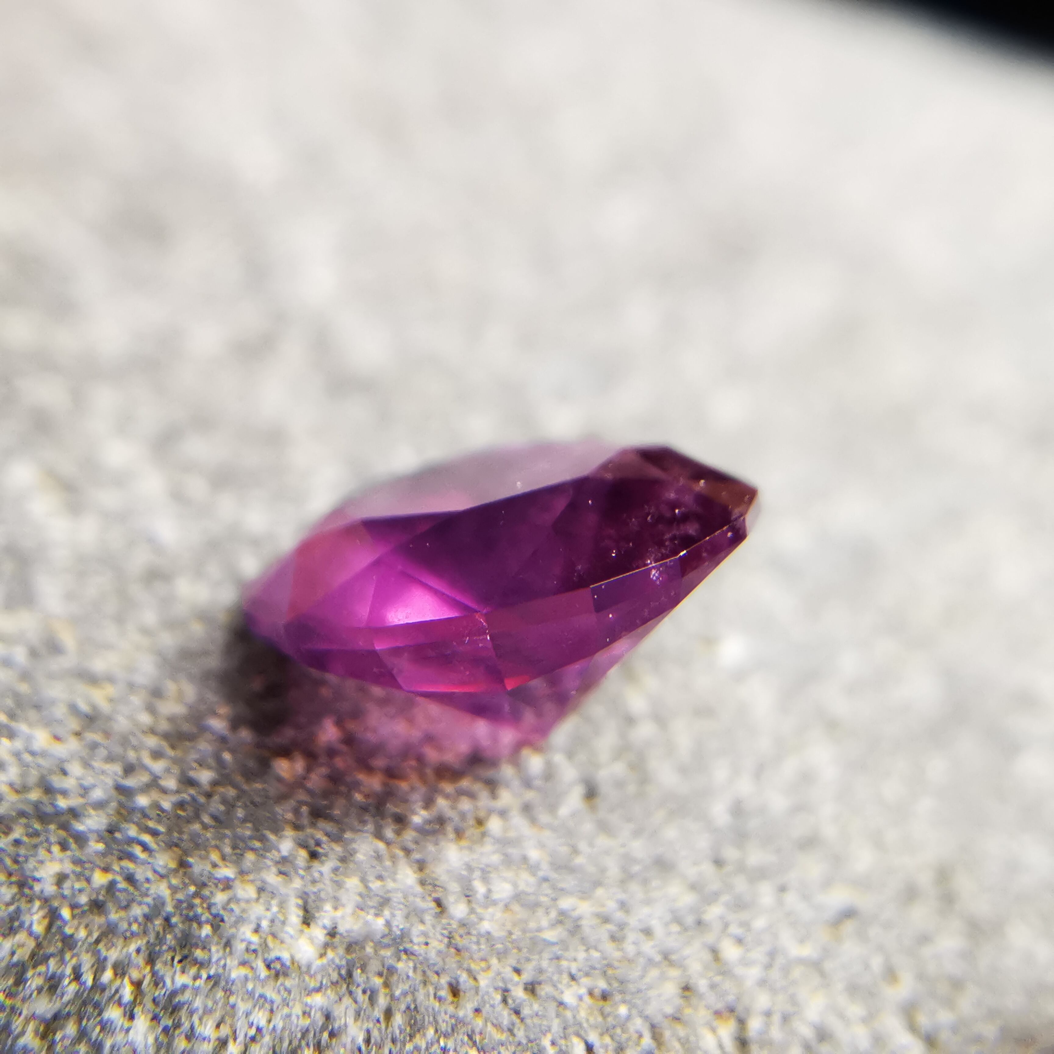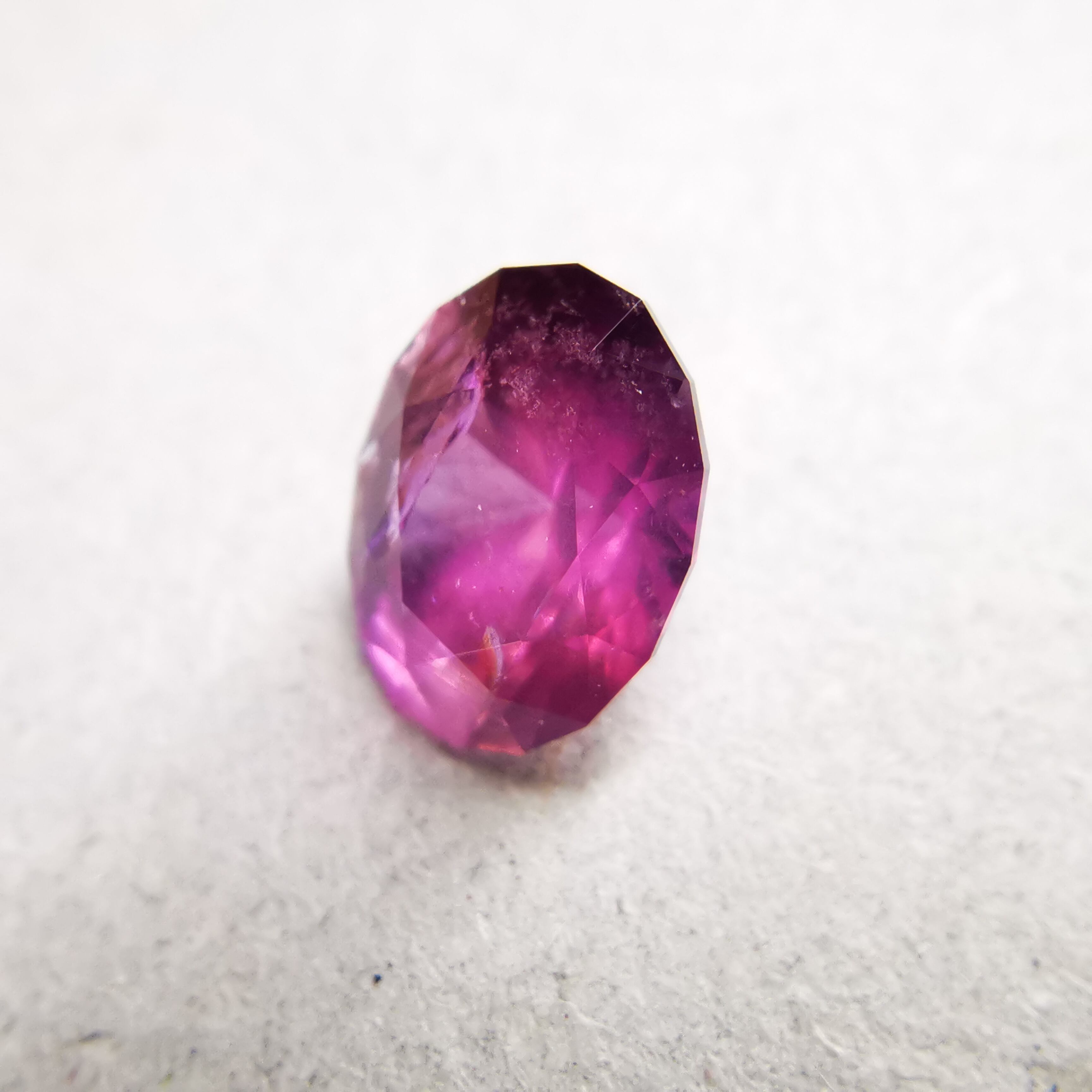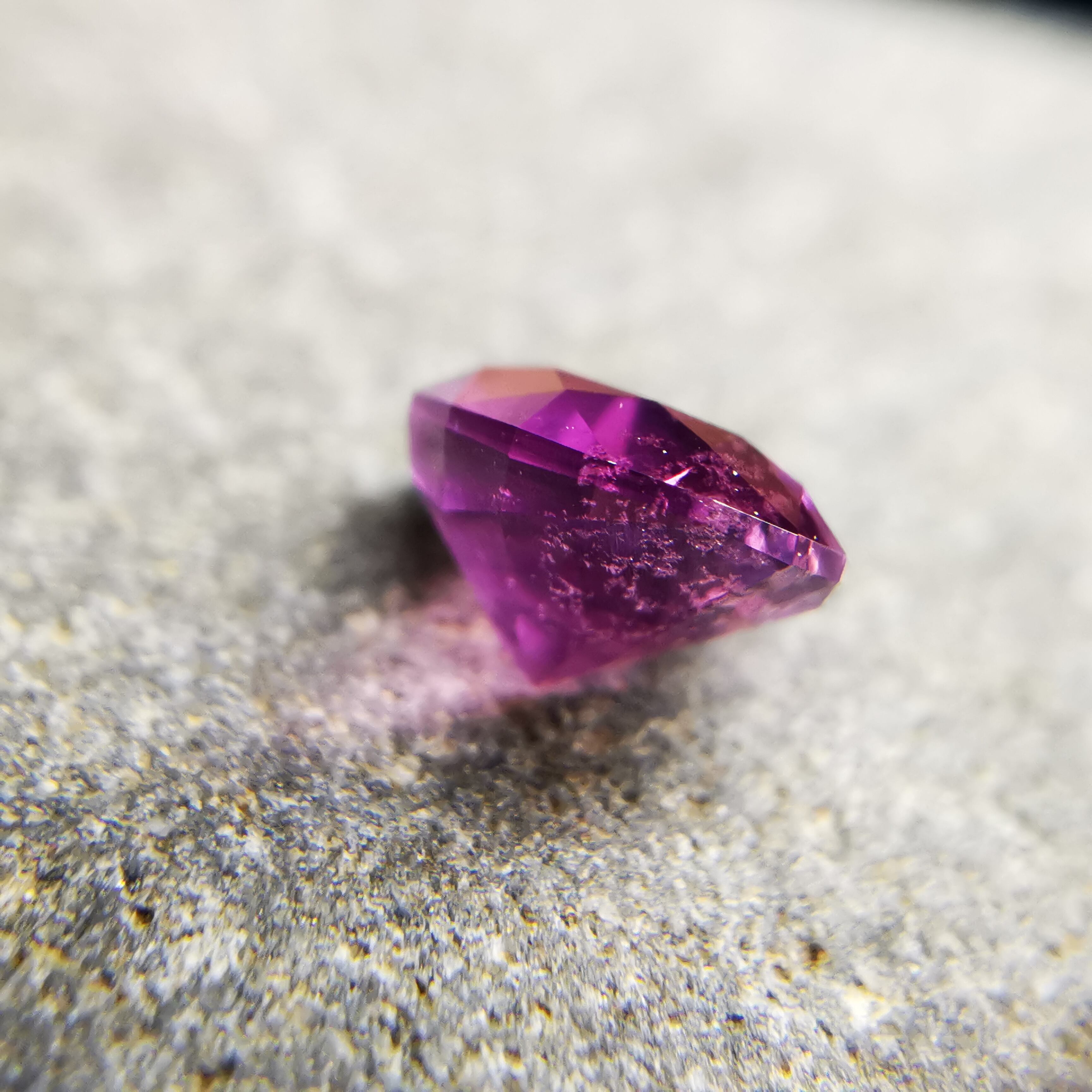 パープルピンクとオレンジピンクが混じり合い、全体に霧がかかったようなシルキーなインクルージョンで覆われています。