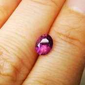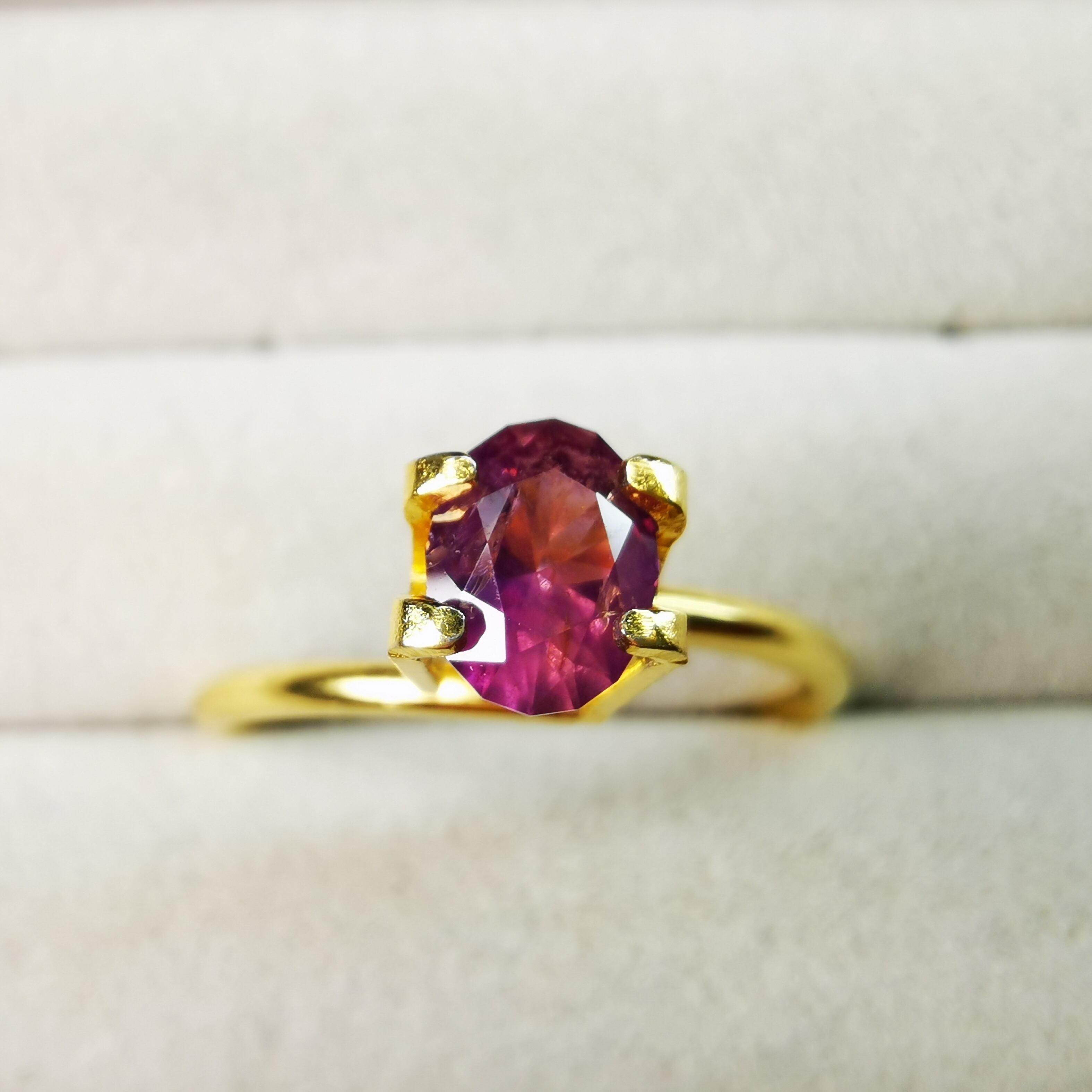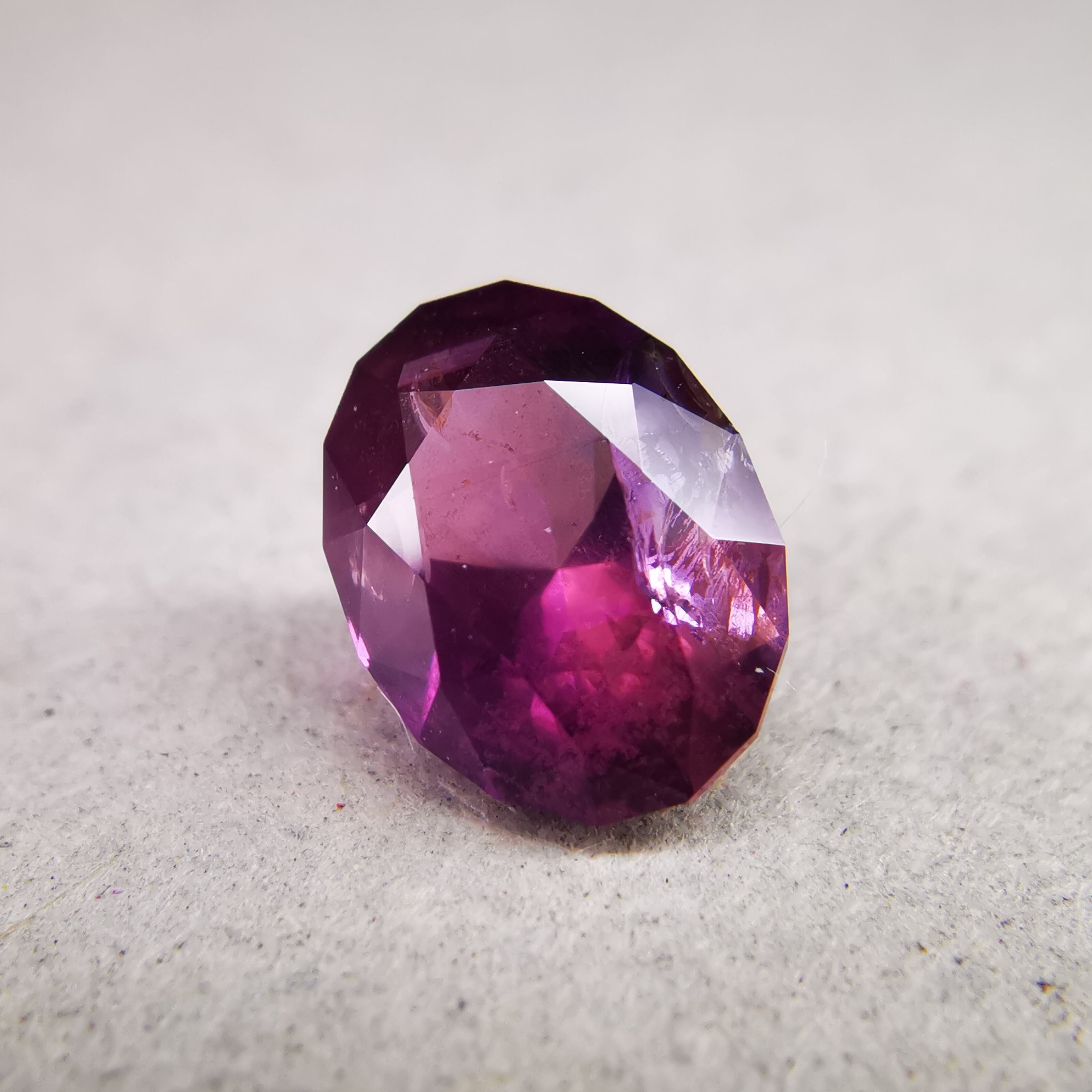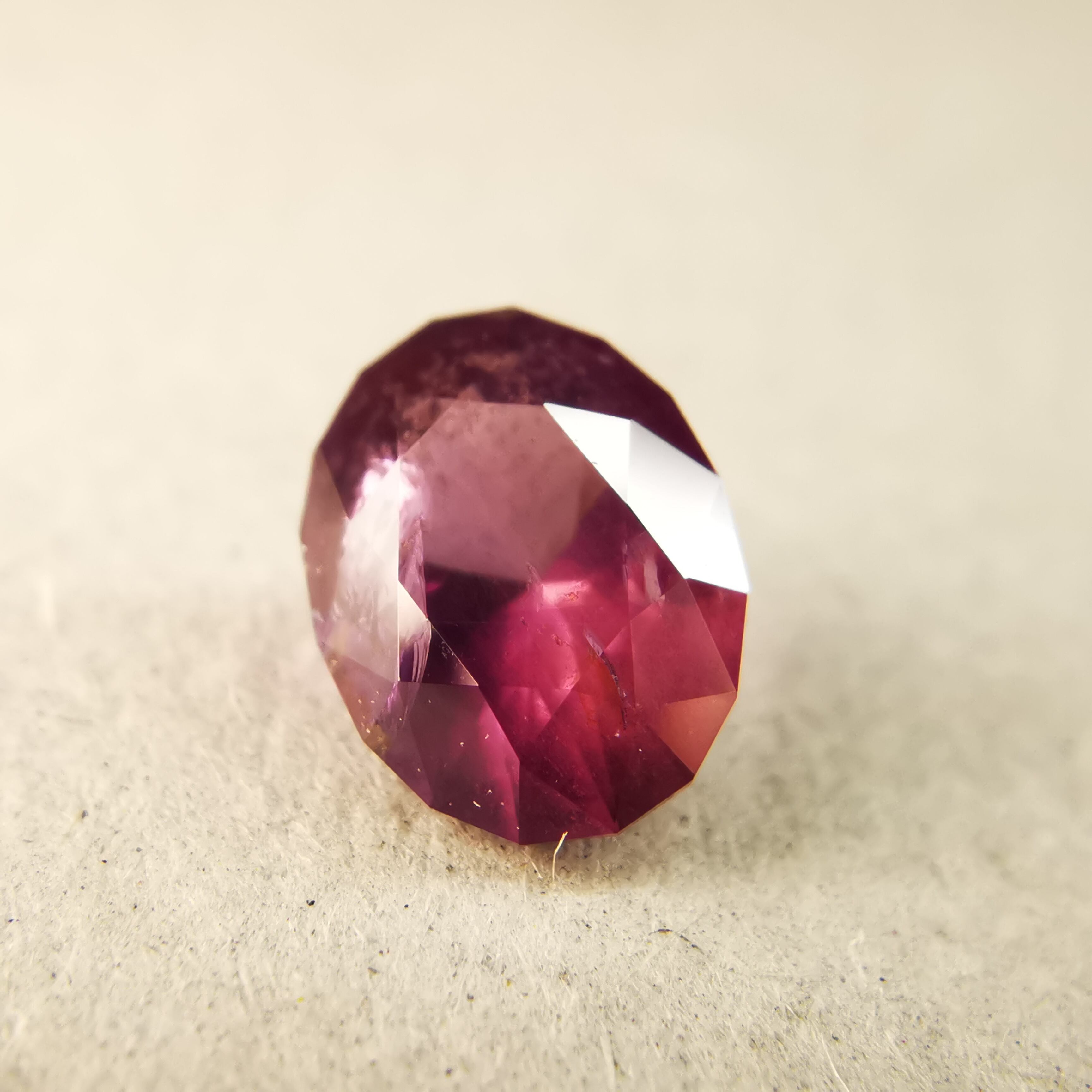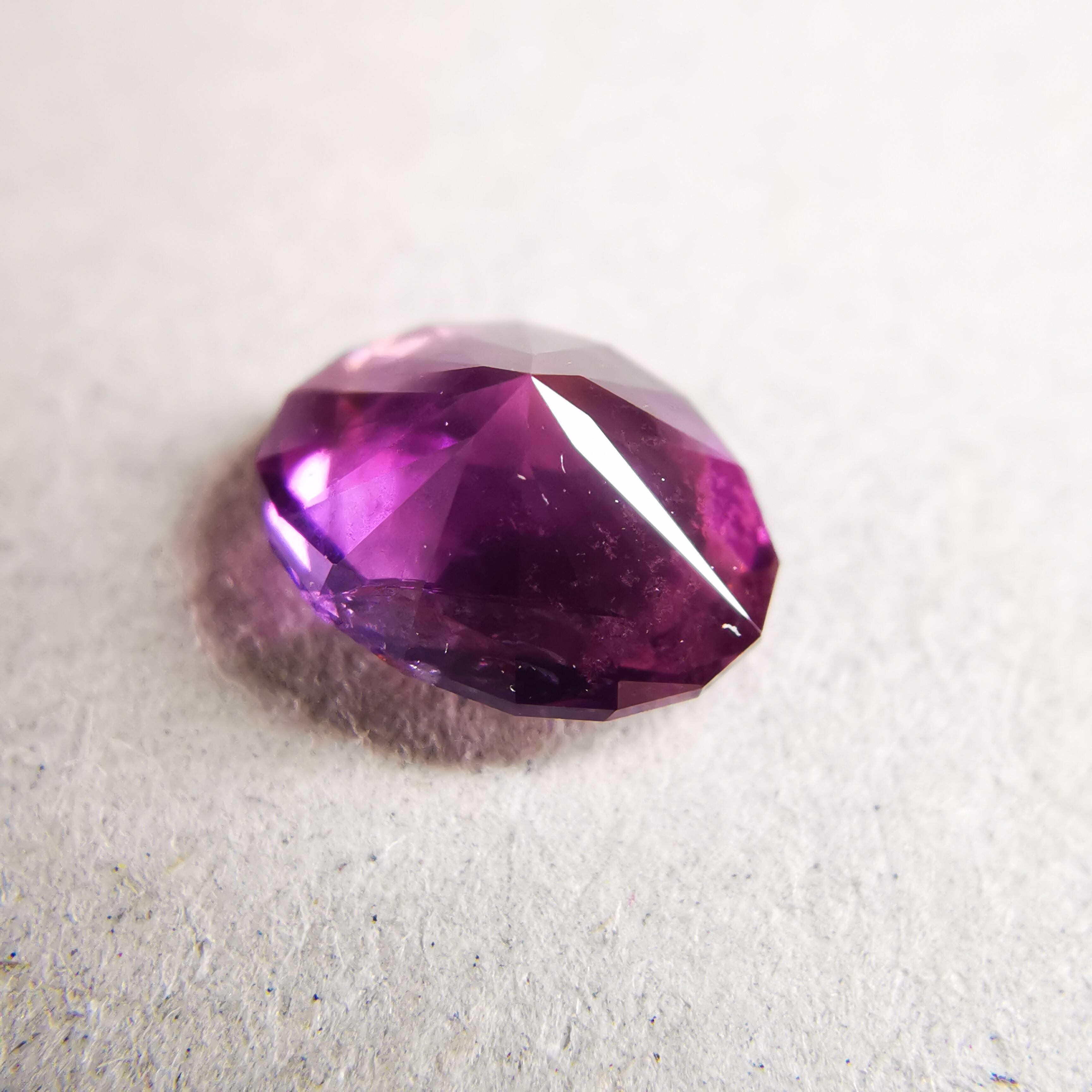 パープルピンクとオレンジピンクが混じり合い、全体に霧がかかったようなシルキーなインクルージョンで覆われています。