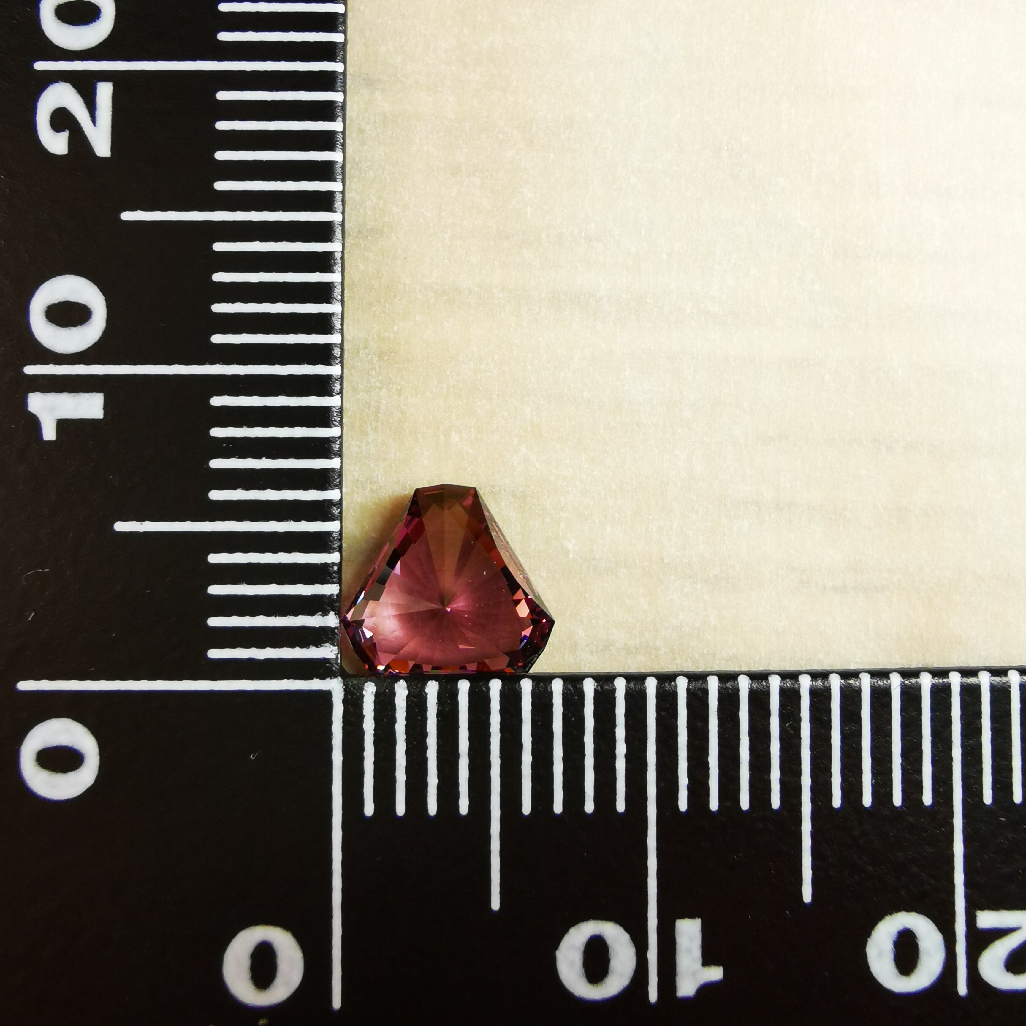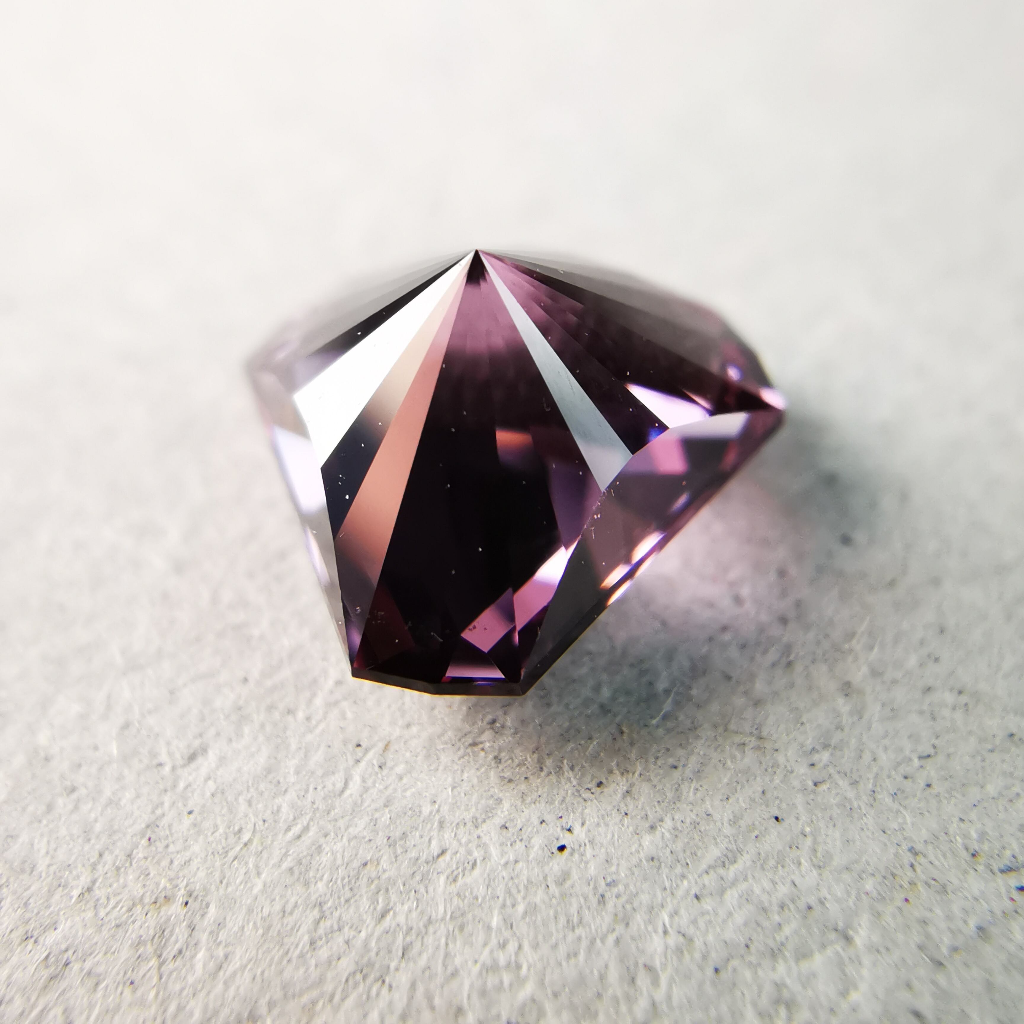 落ち着いたピンク色のベースカラーから、様々な色のファイアが、キュレットから放射状に広がります。
