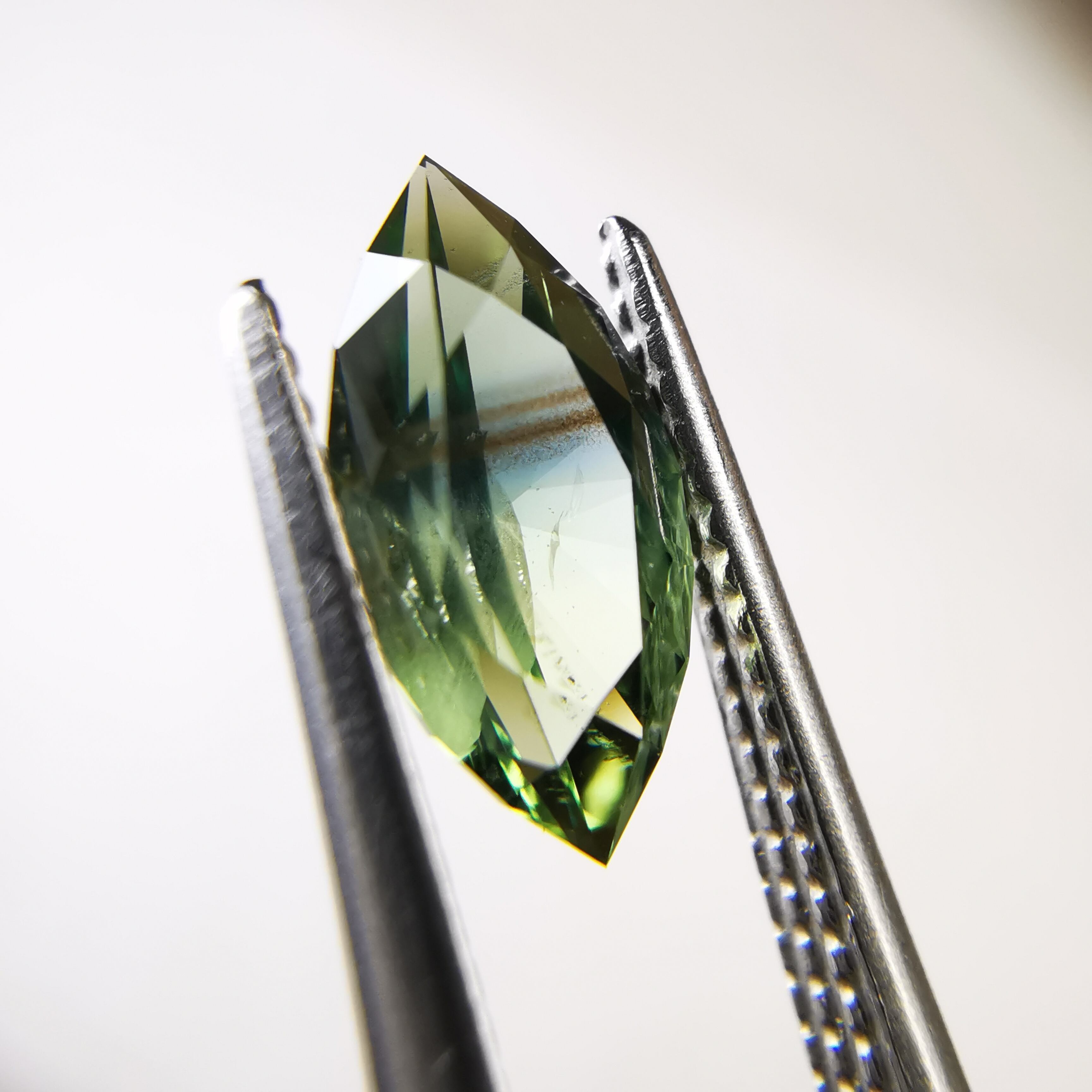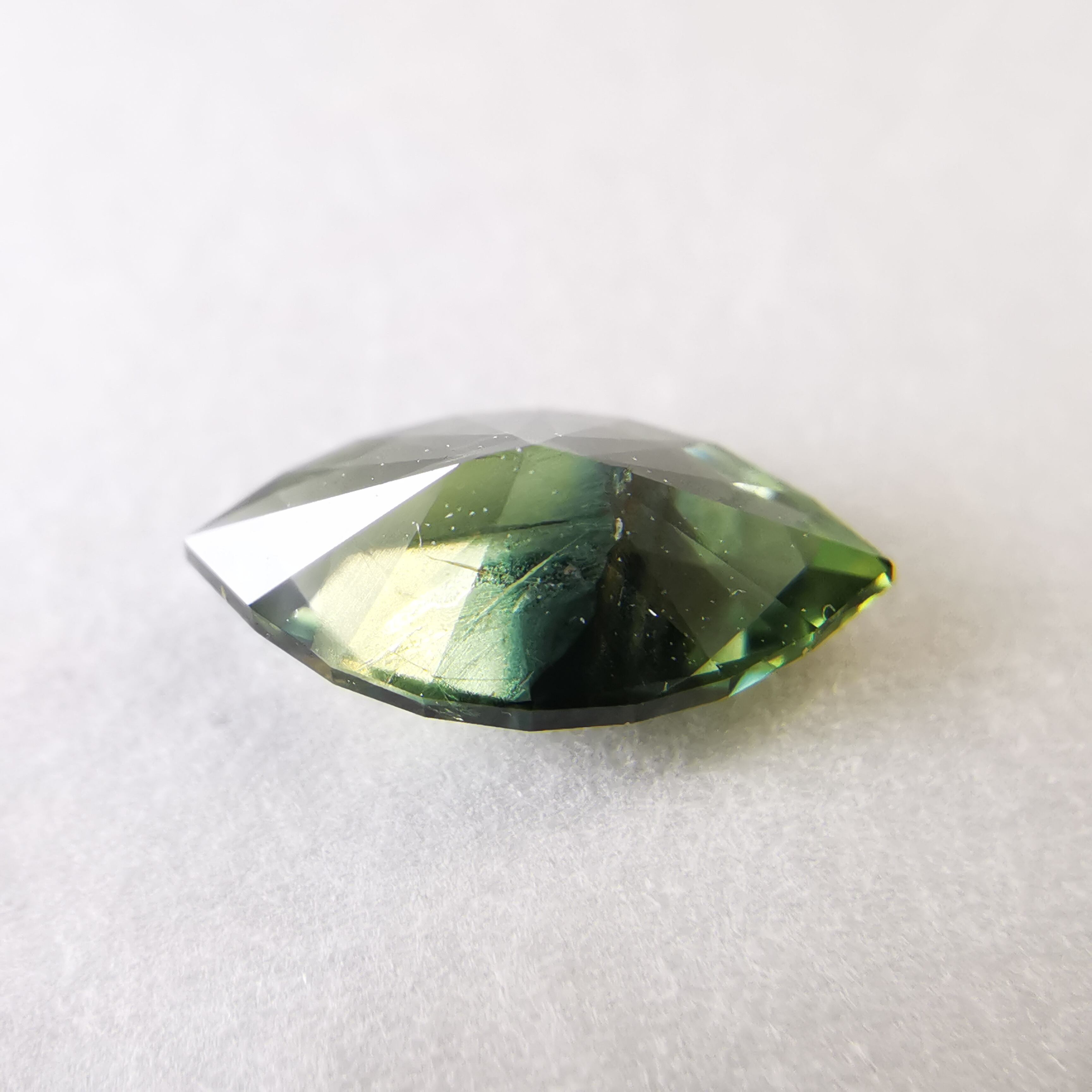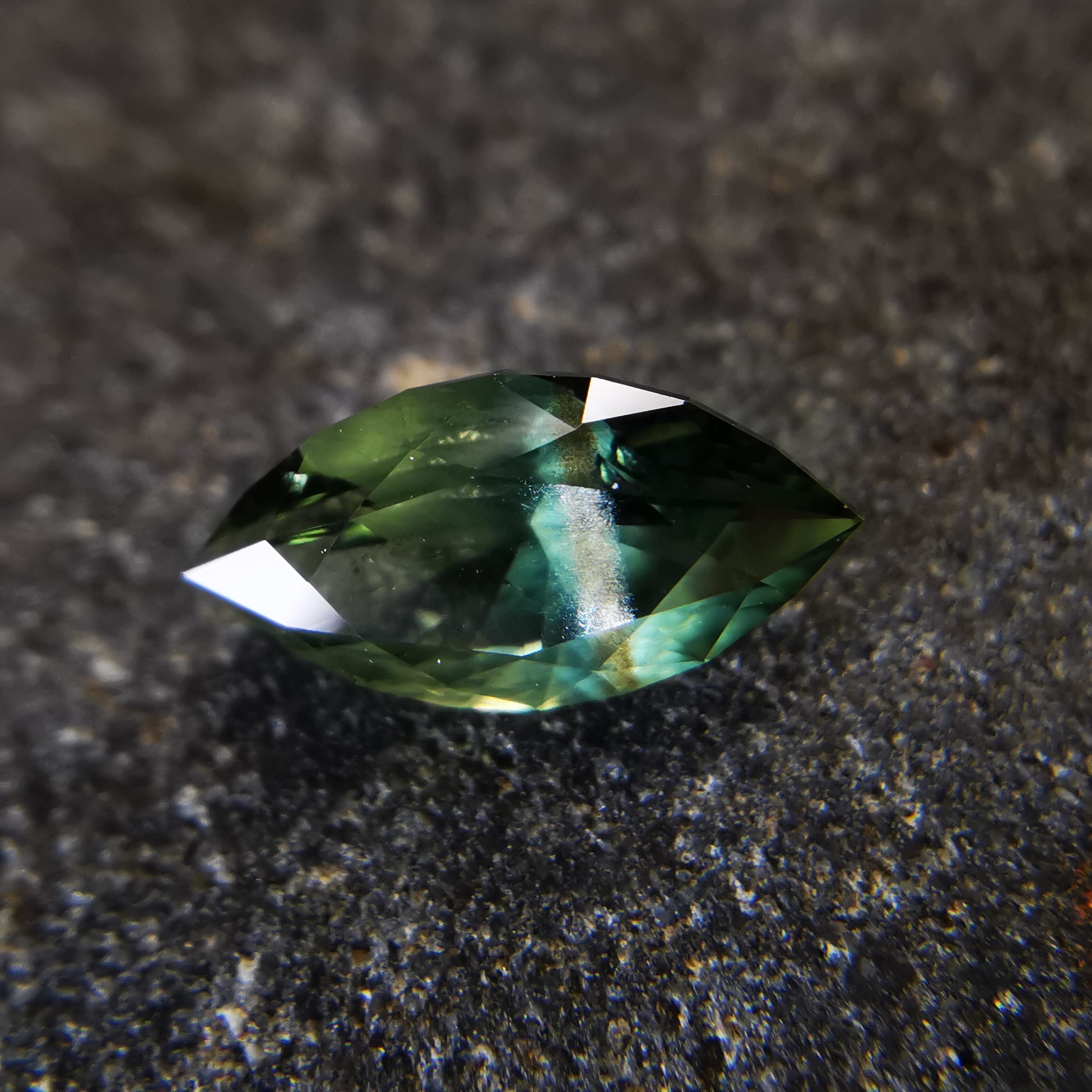 グリーン、ブルー、シルバーシラーが見えるサファイアです。