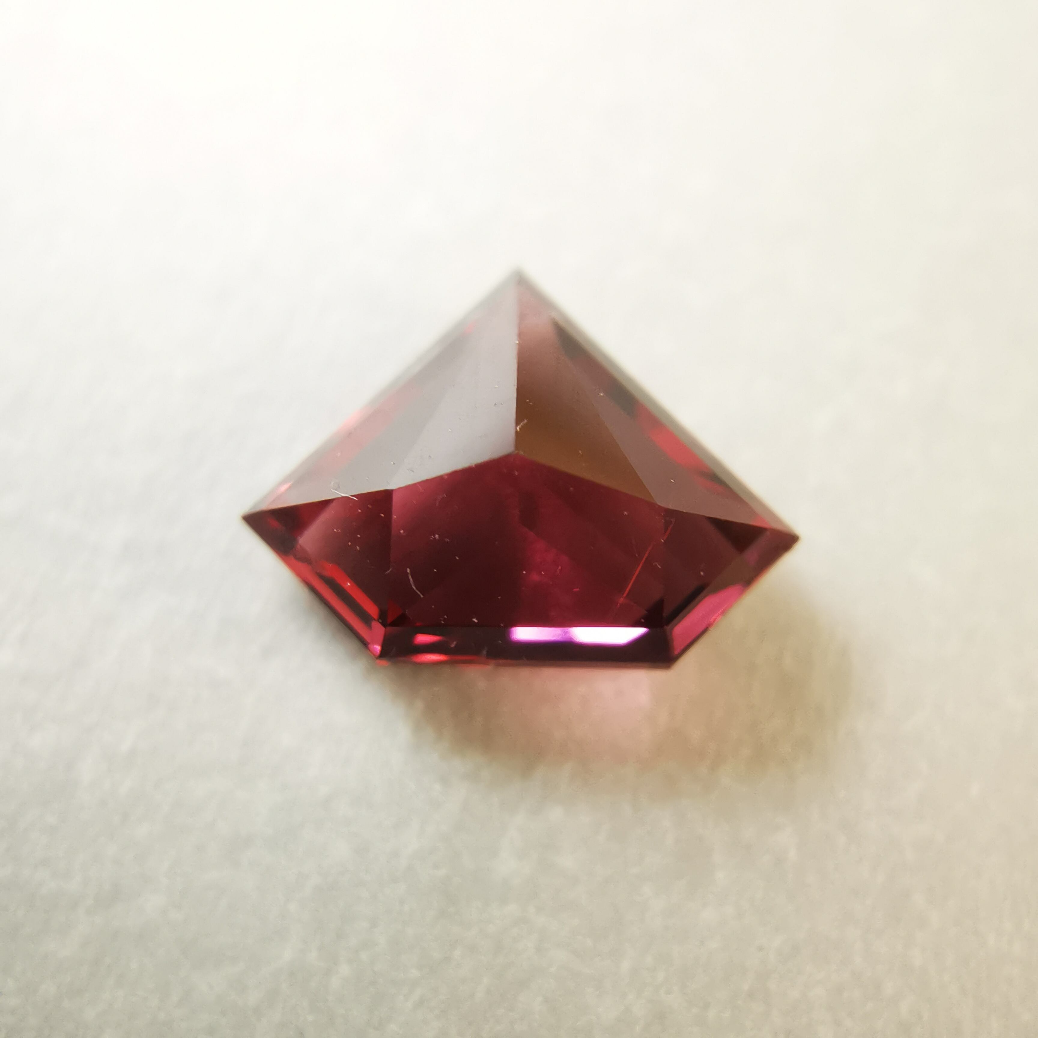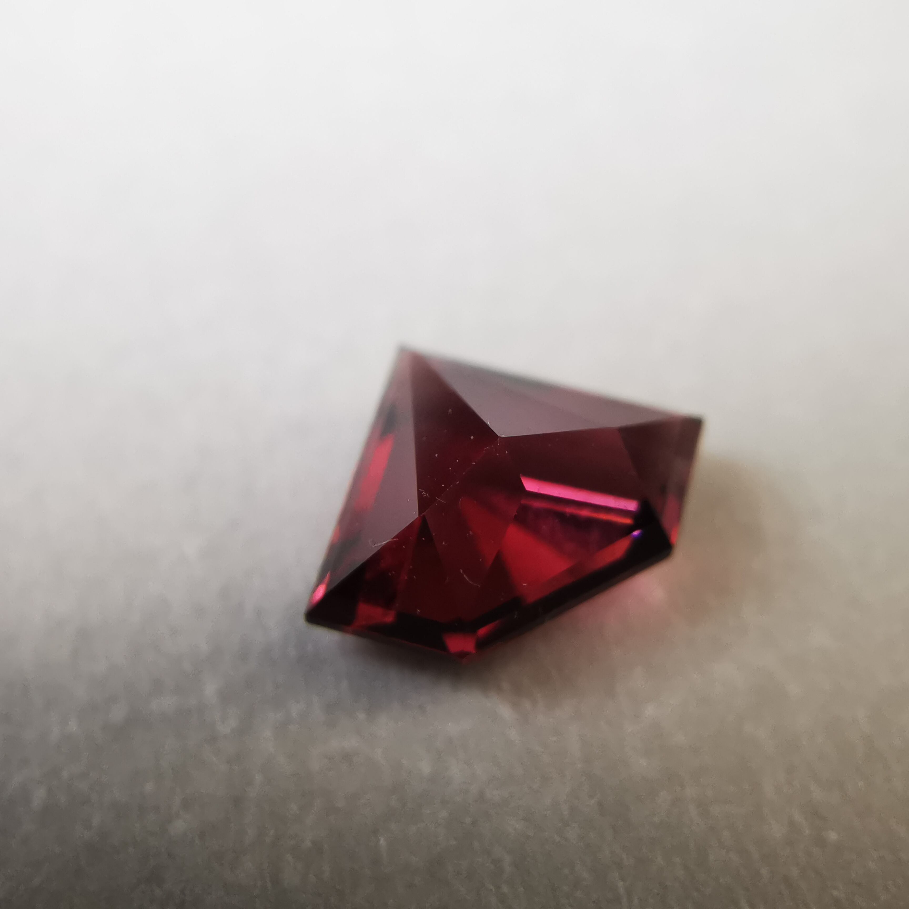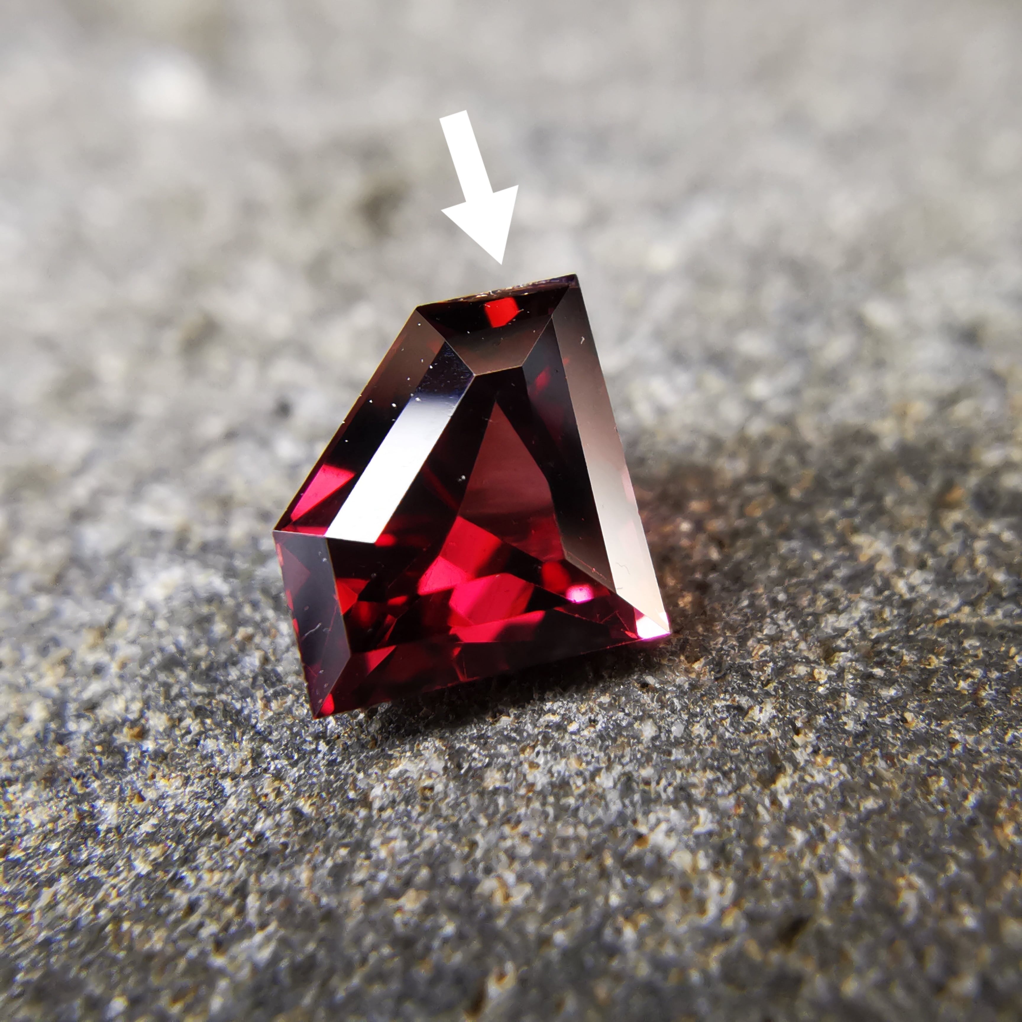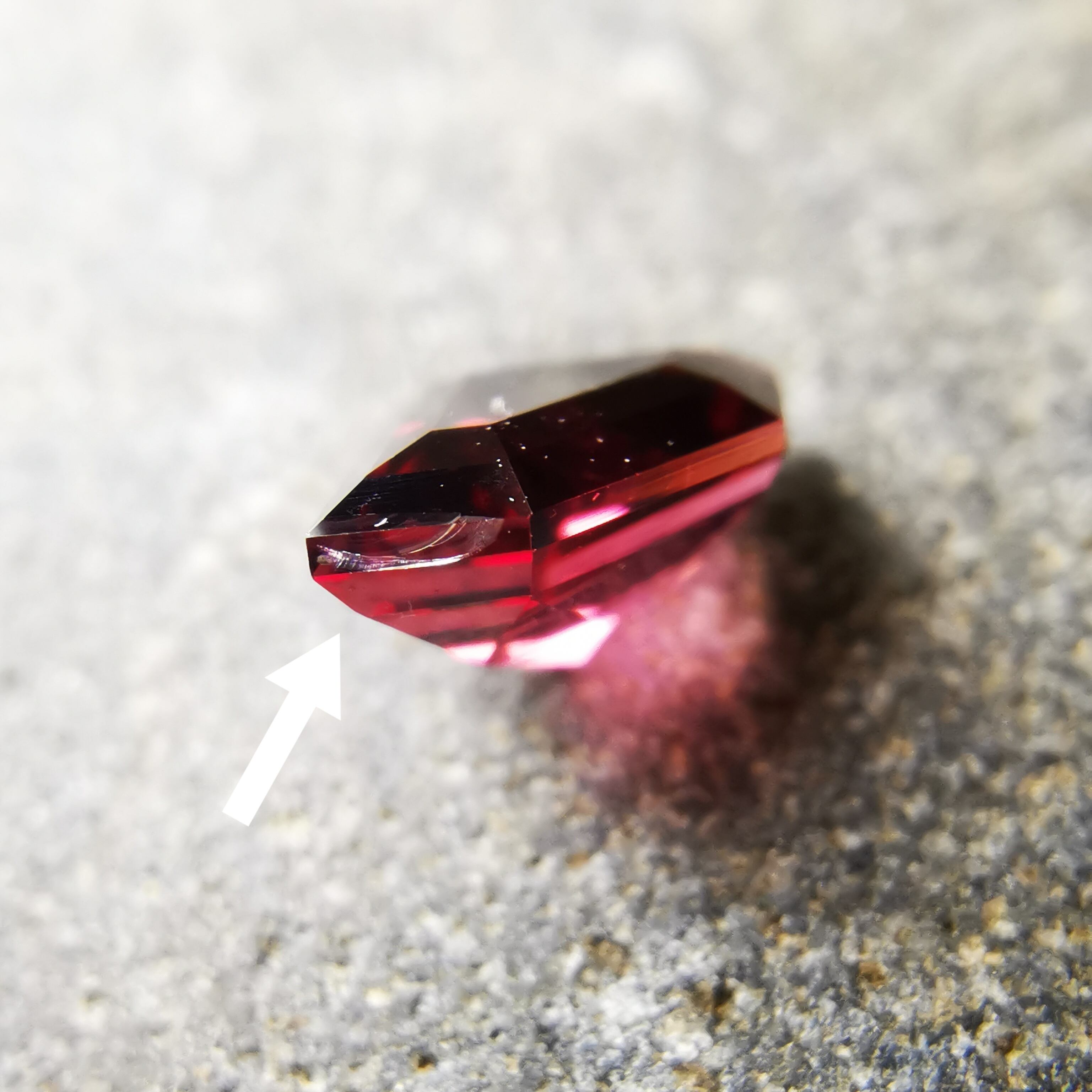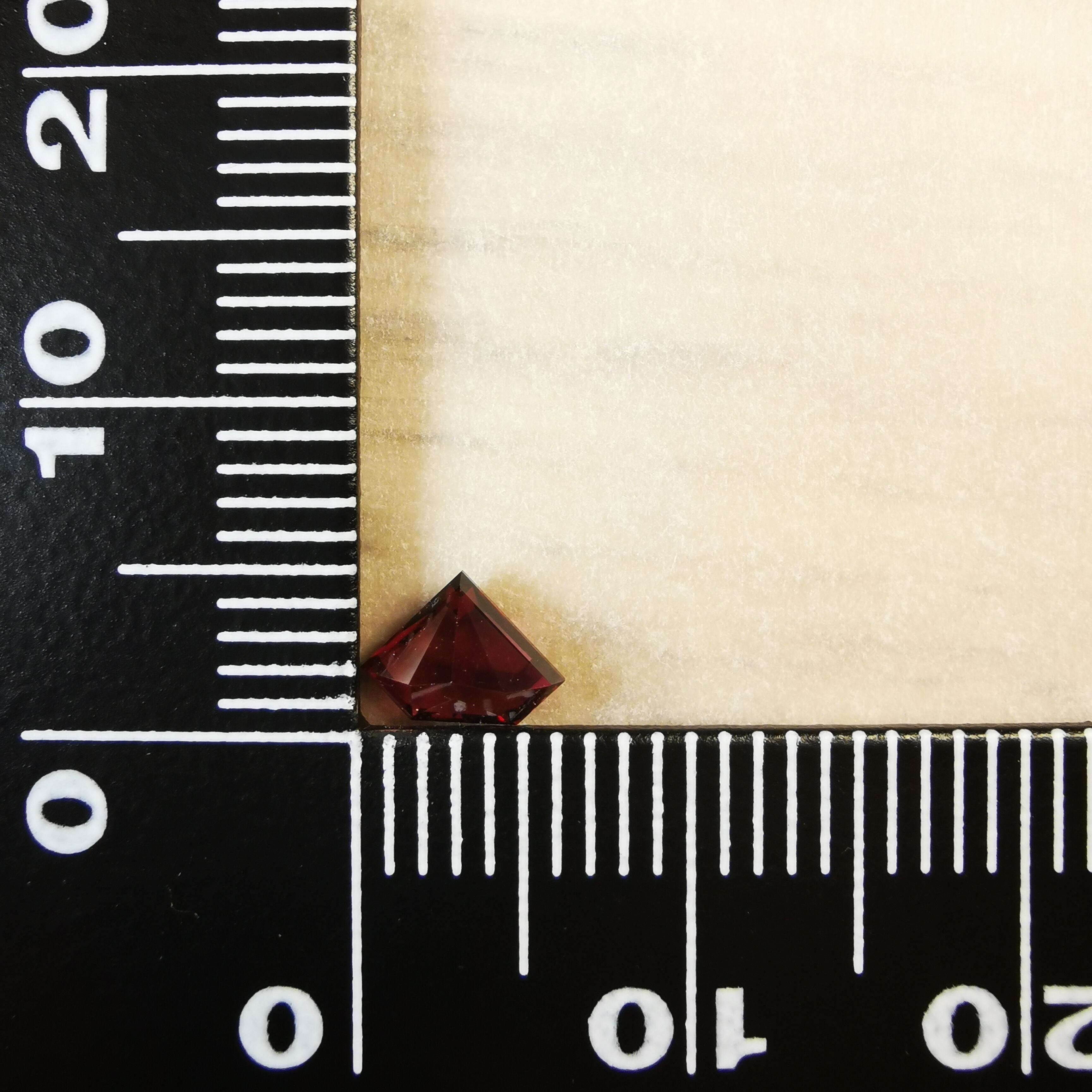 やや暗さを感じる石ですが、ダイヤモンド型にカットされた石の、内側からきらめく赤が魅力です。