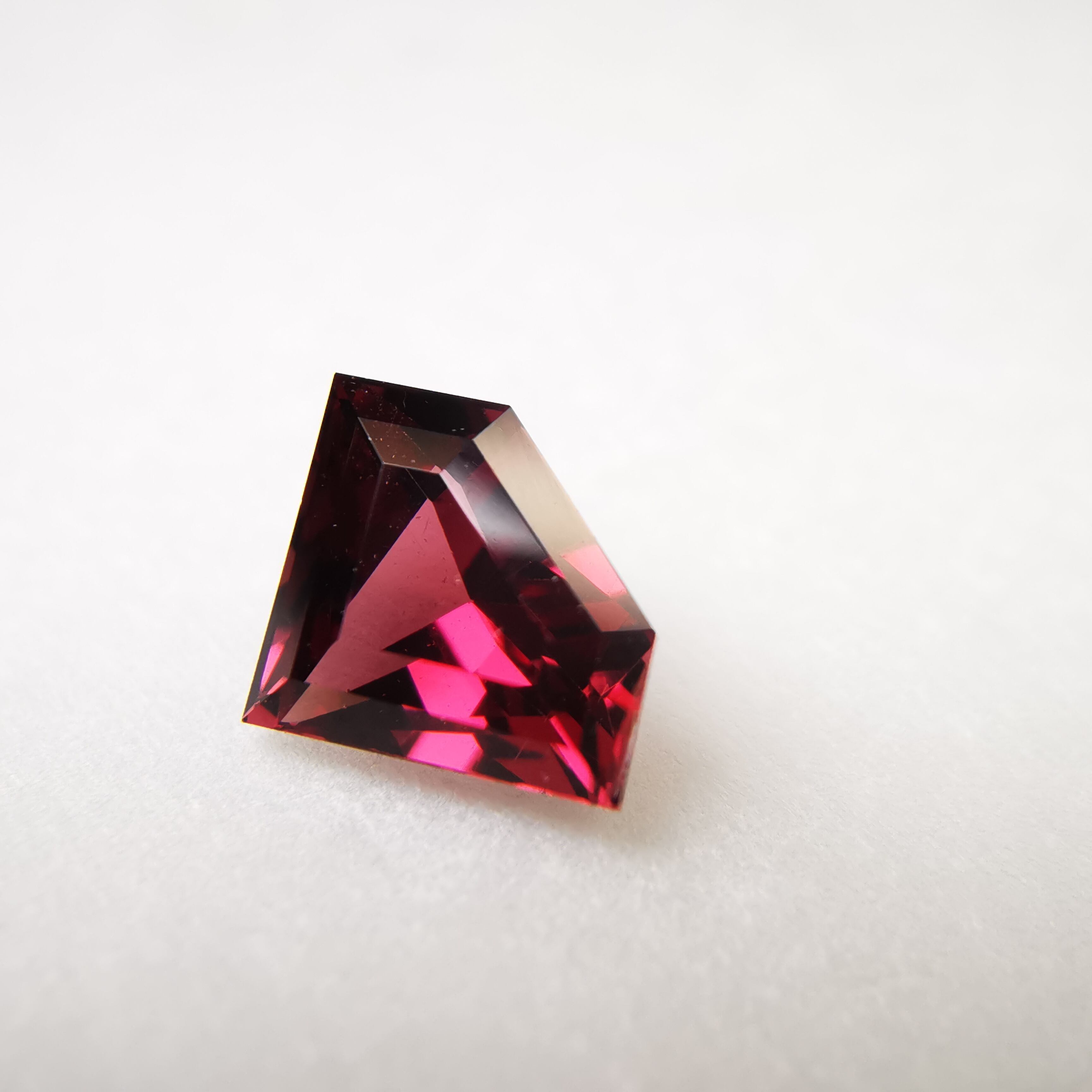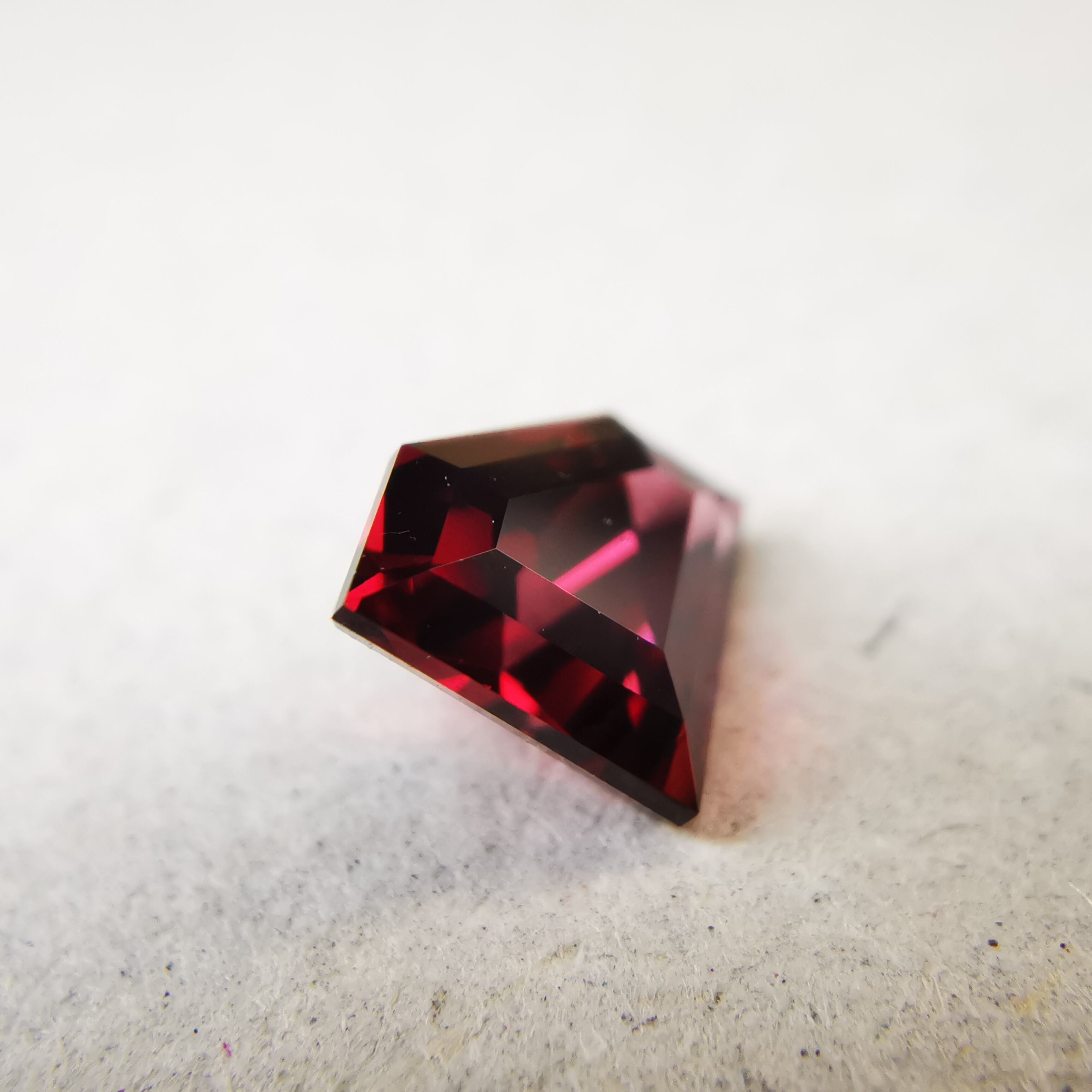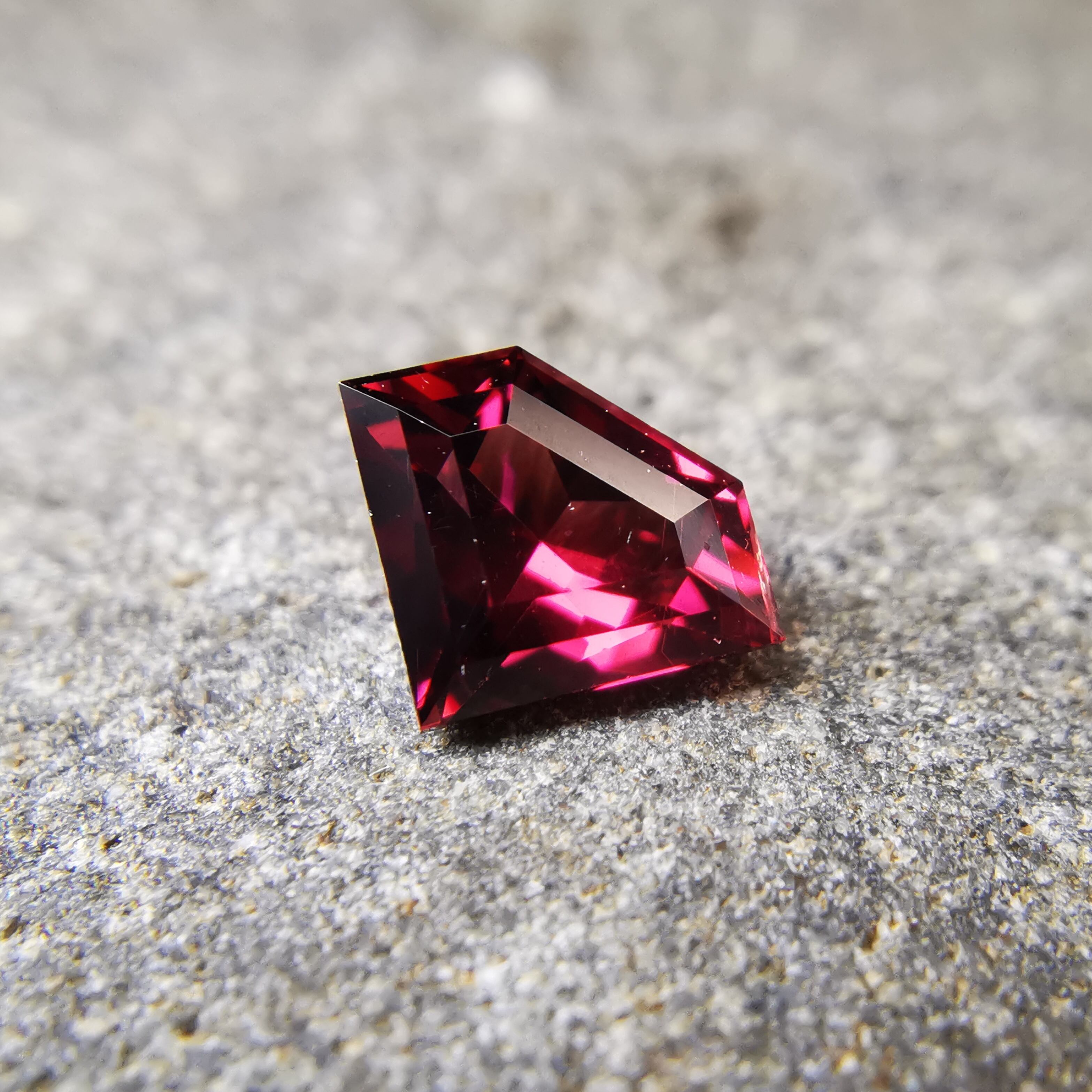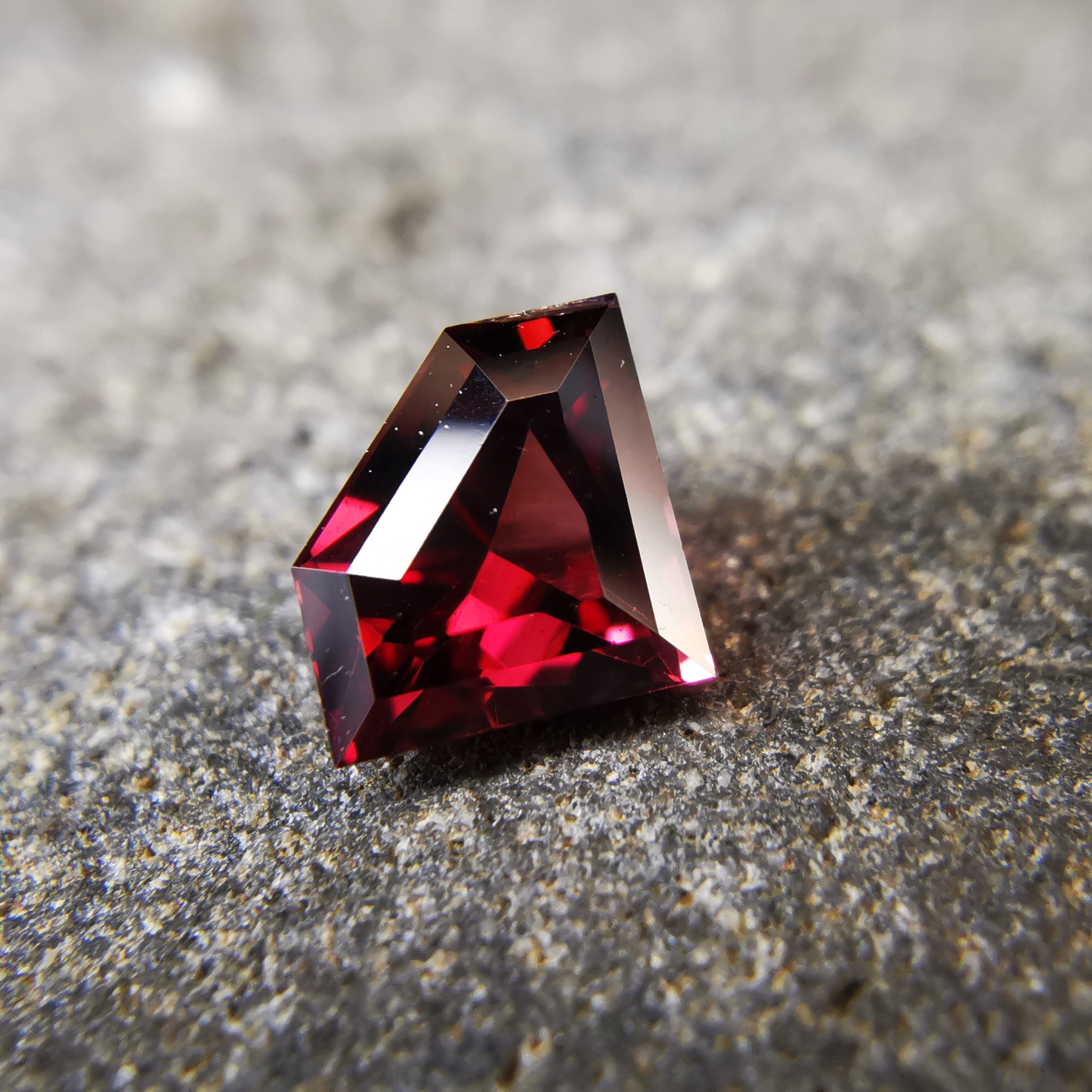 やや暗さを感じる石ですが、ダイヤモンド型にカットされた石の、内側からきらめく赤が魅力です。