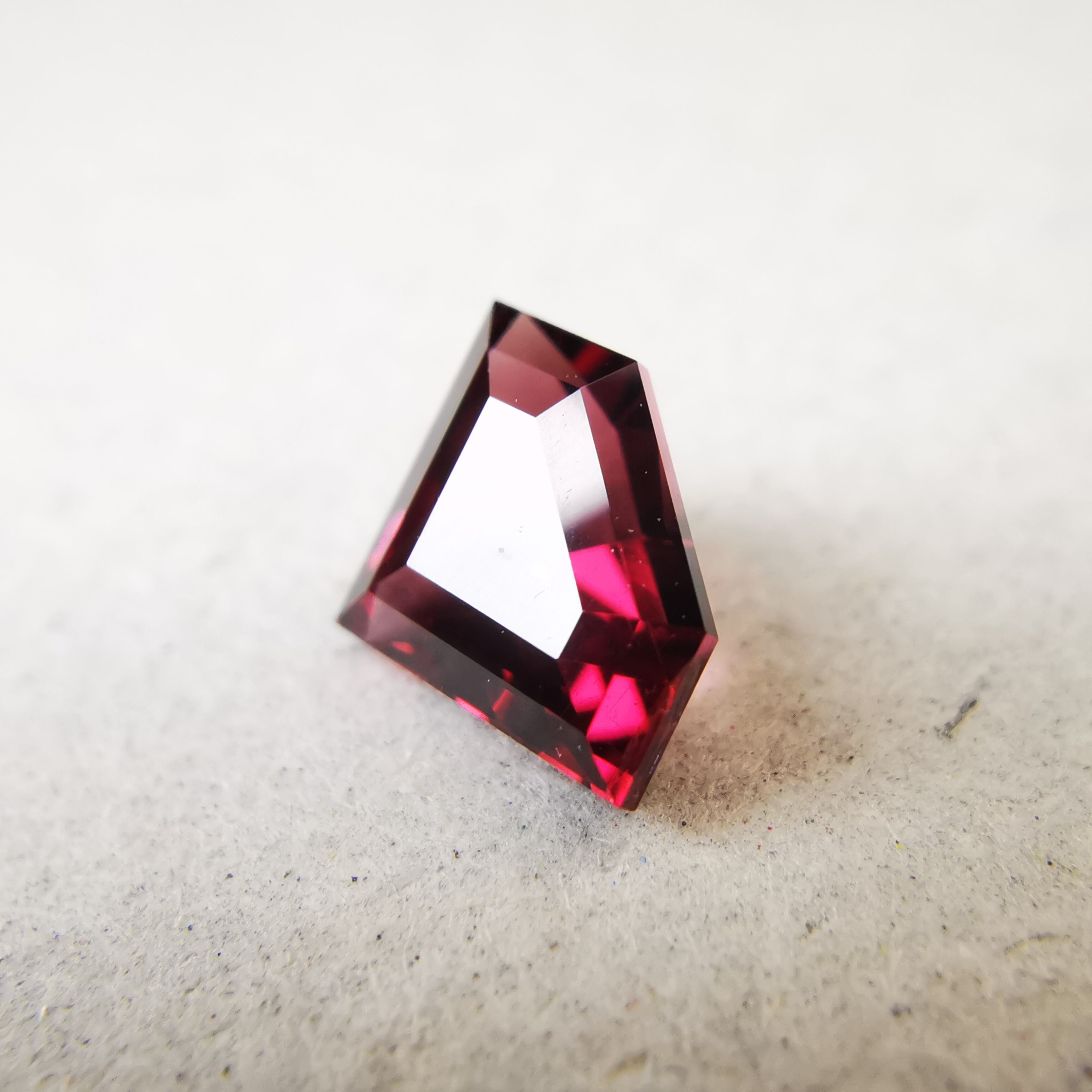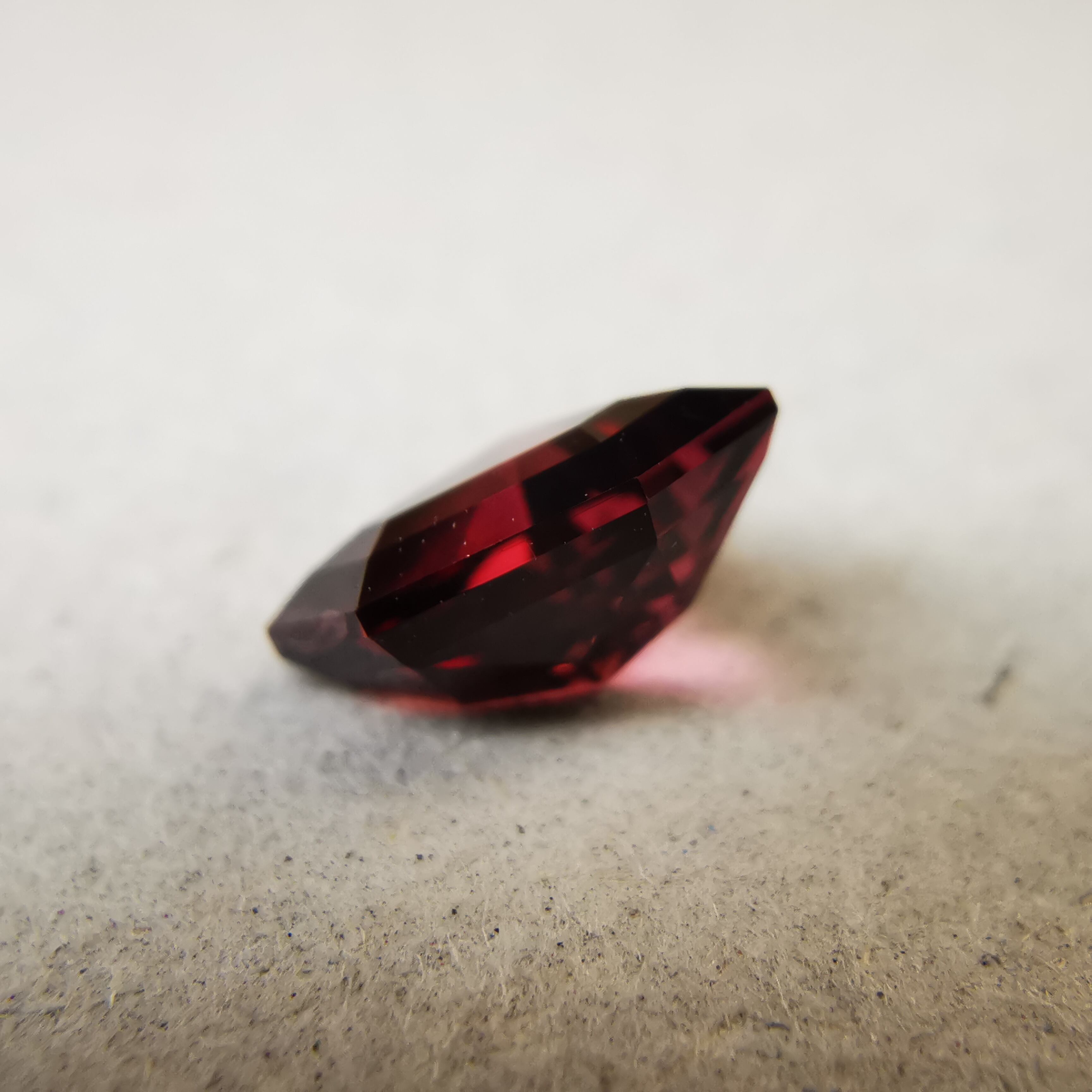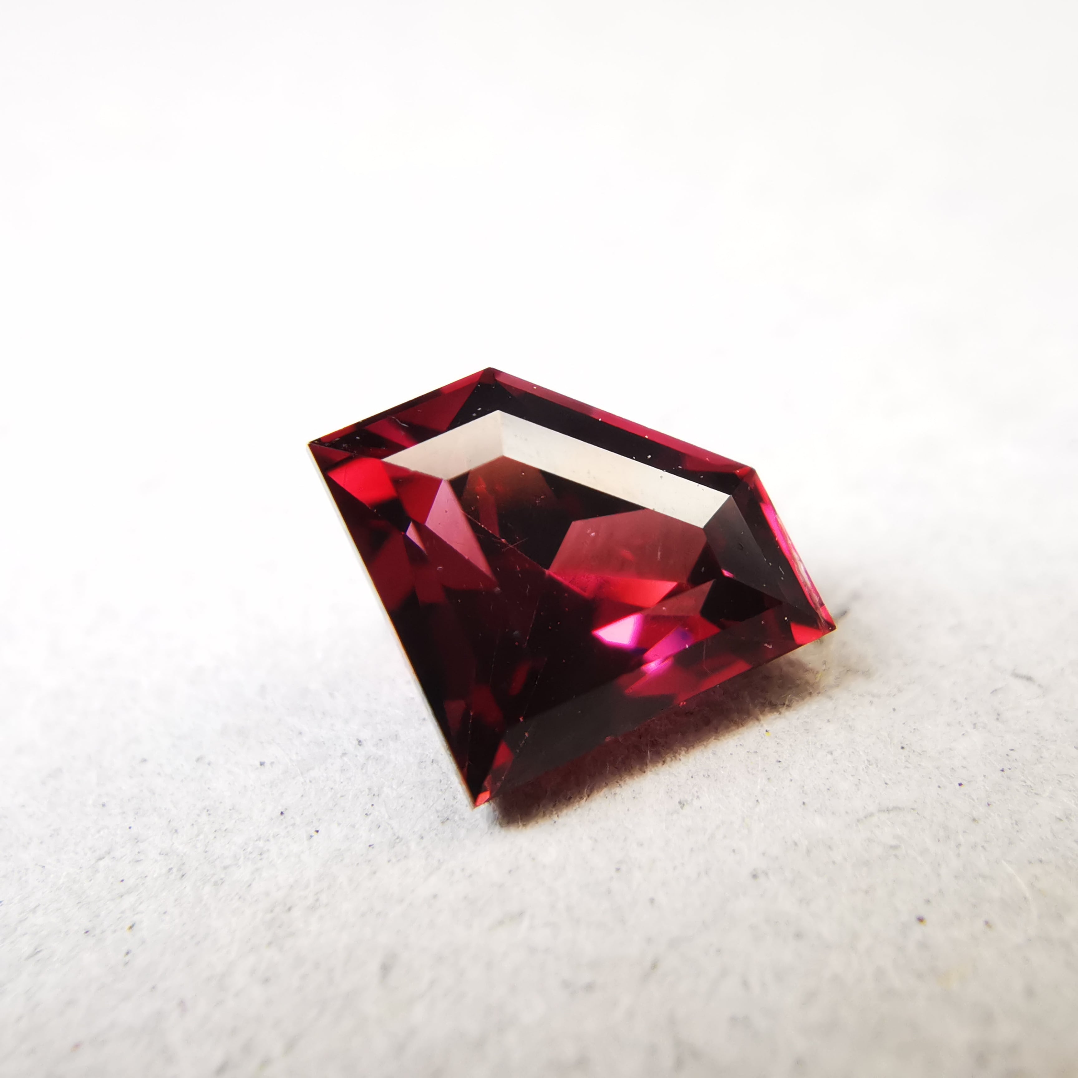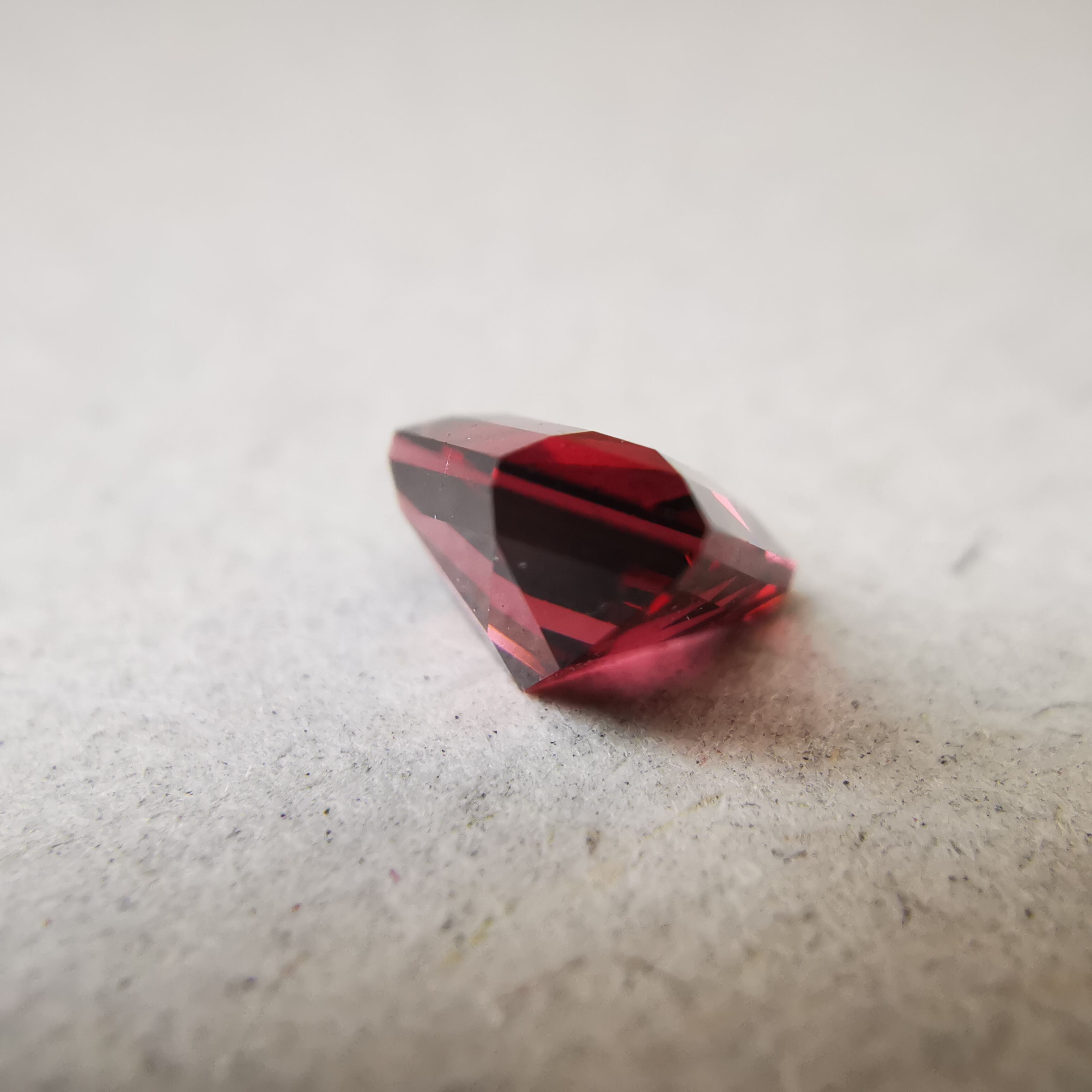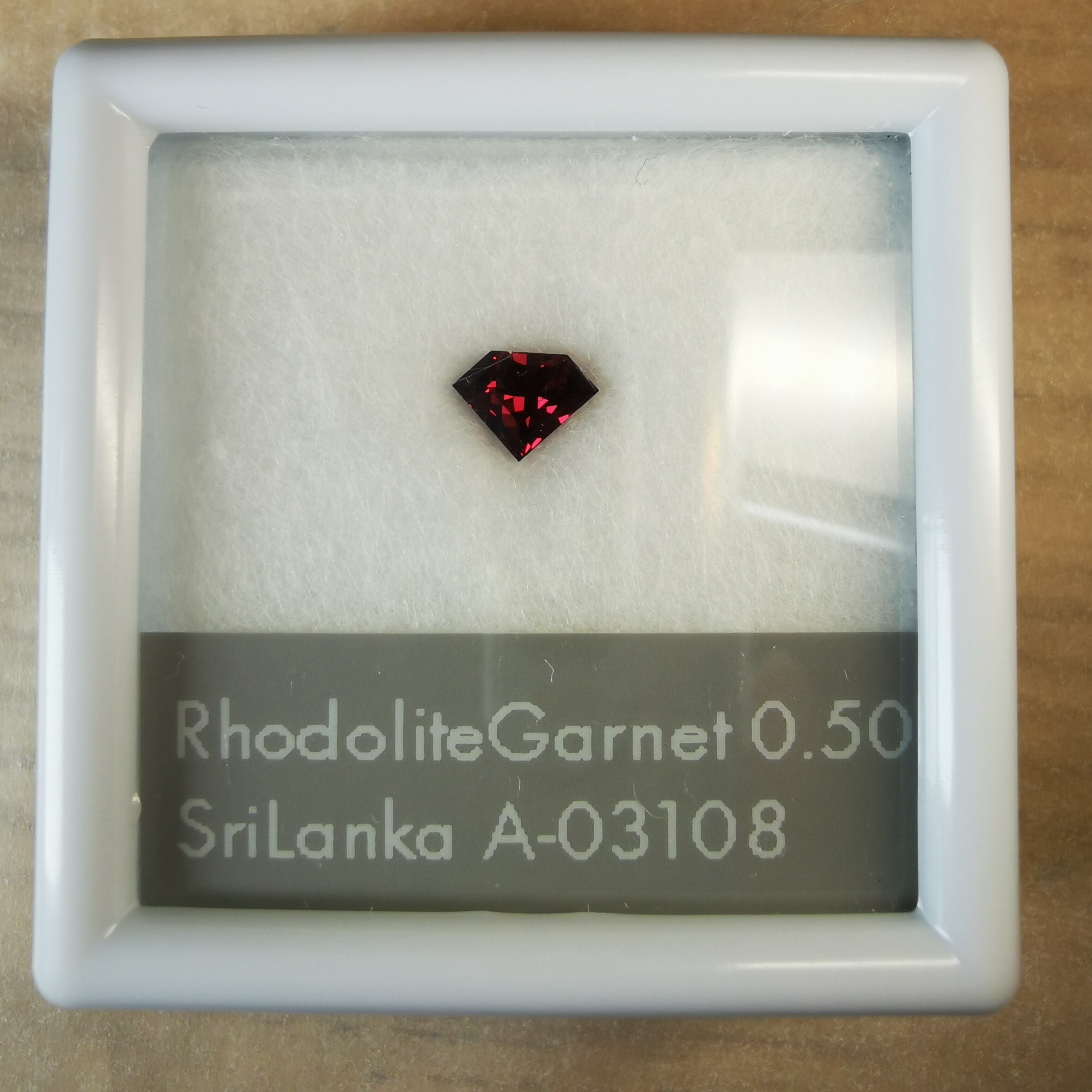 やや暗さを感じる石ですが、ダイヤモンド型にカットされた石の、内側からきらめく赤が魅力です。