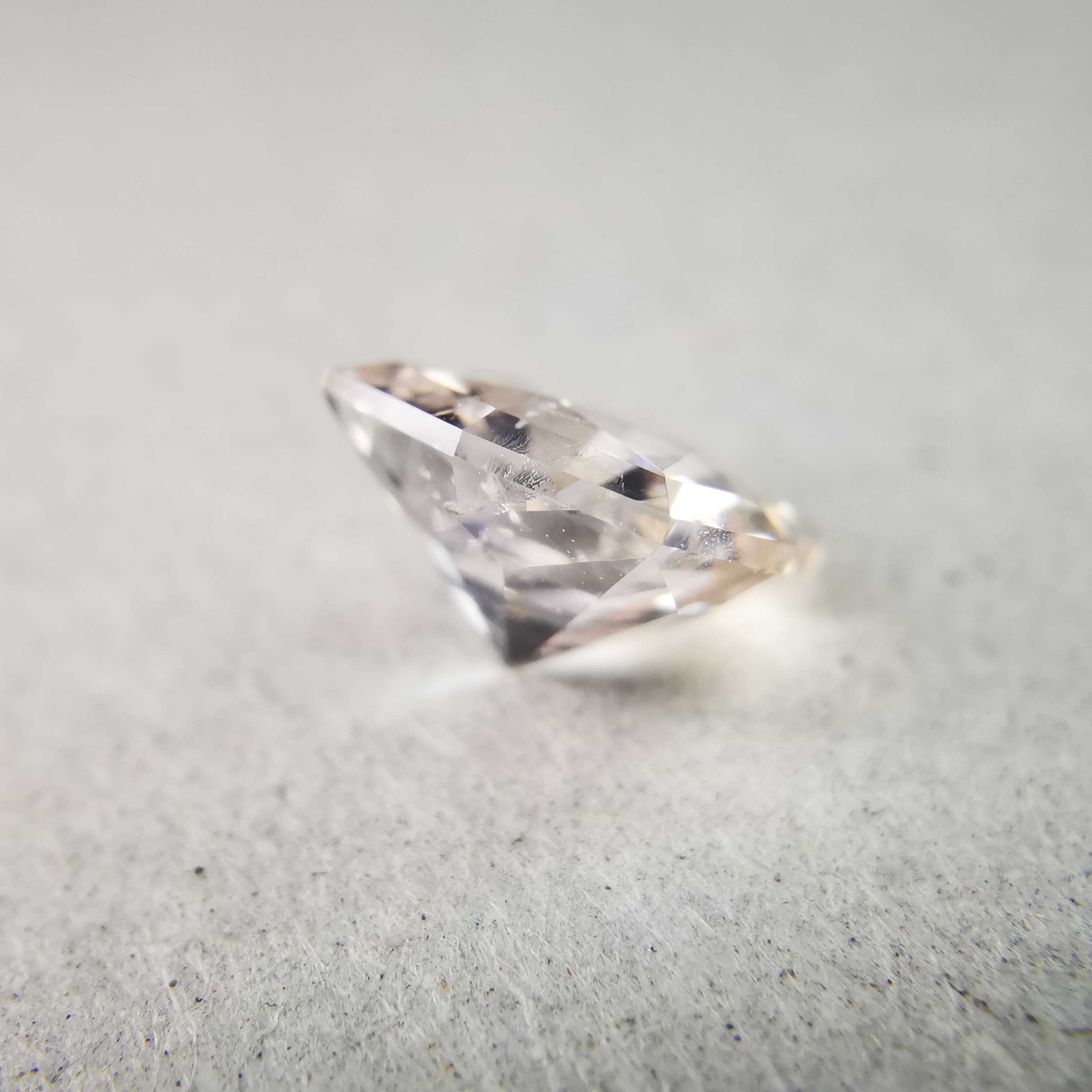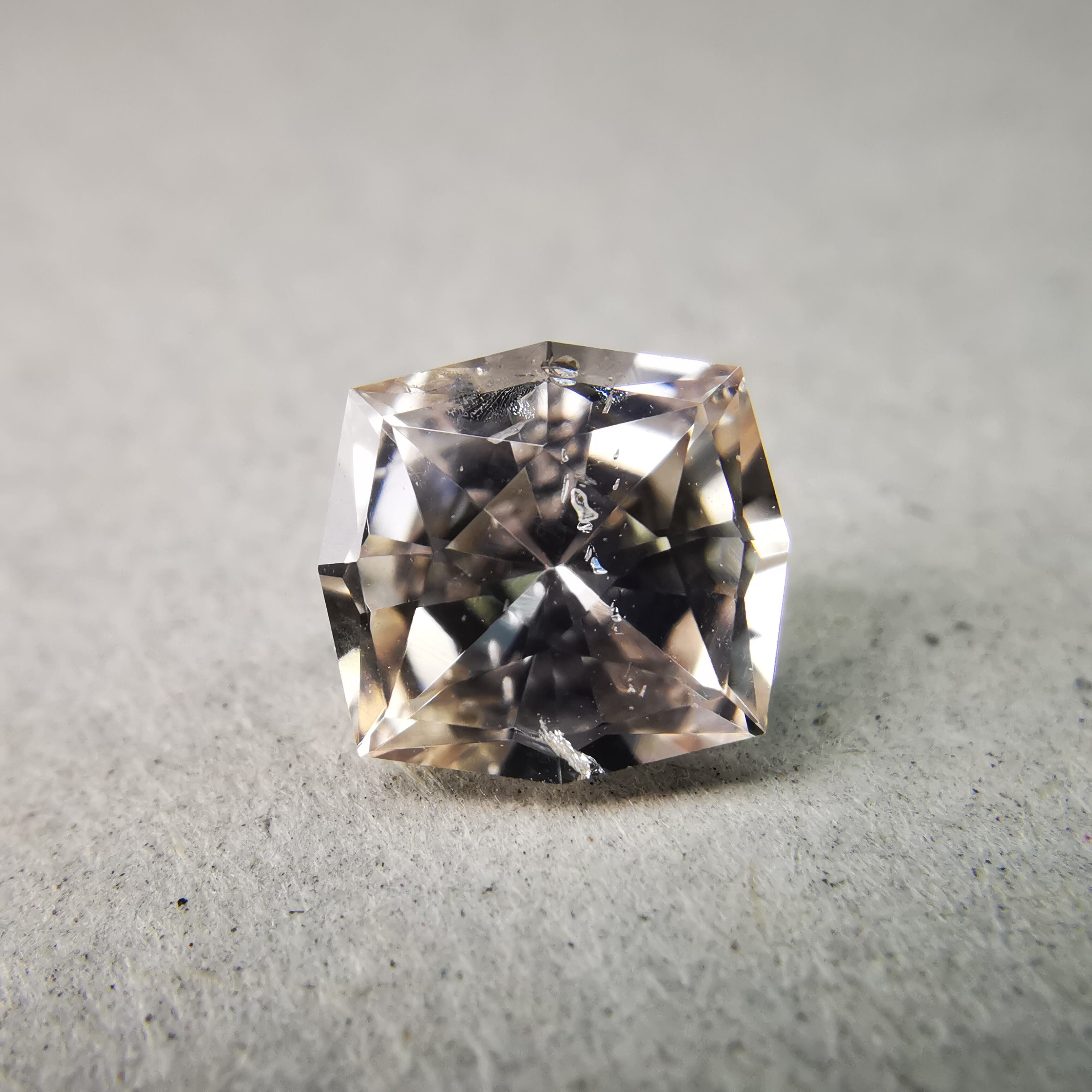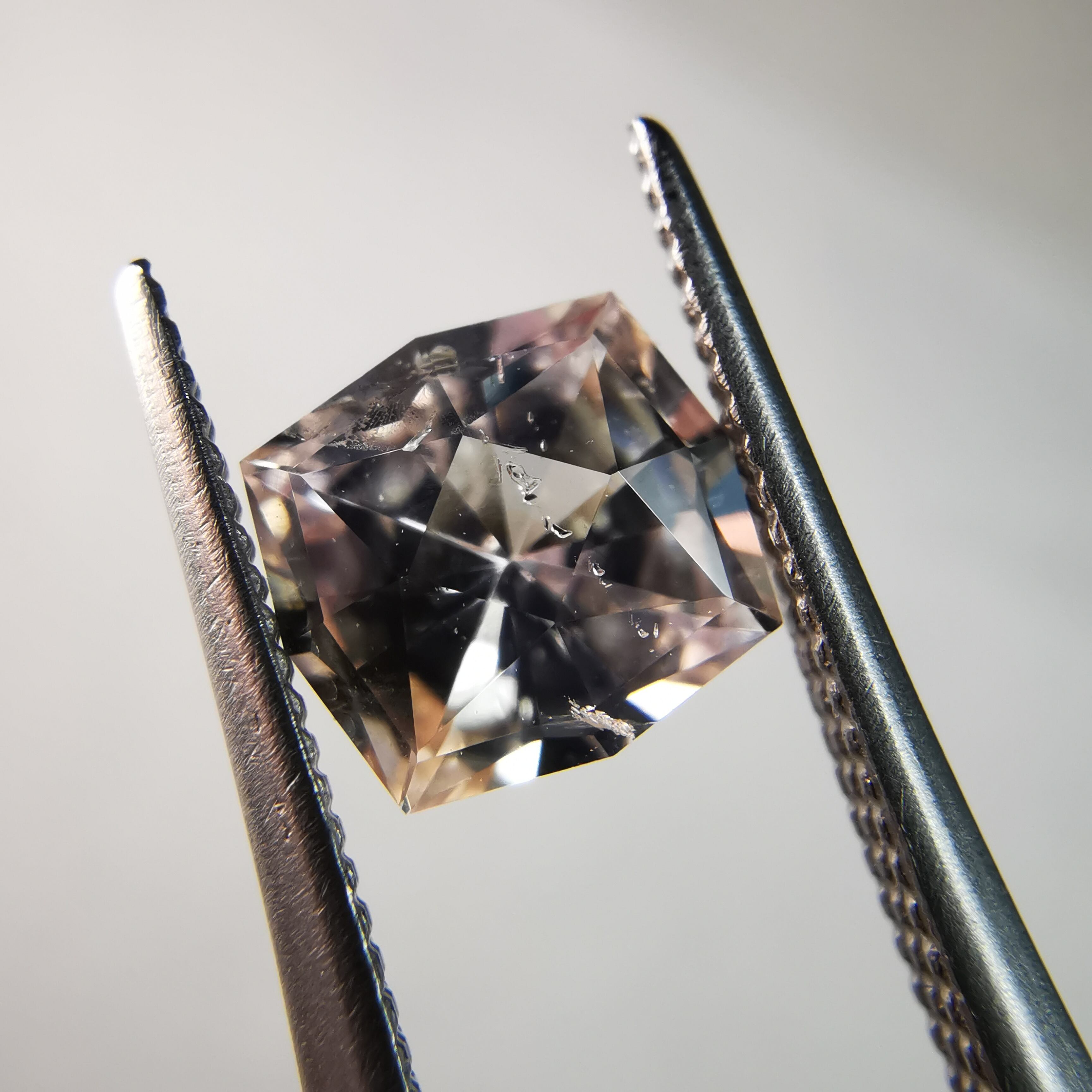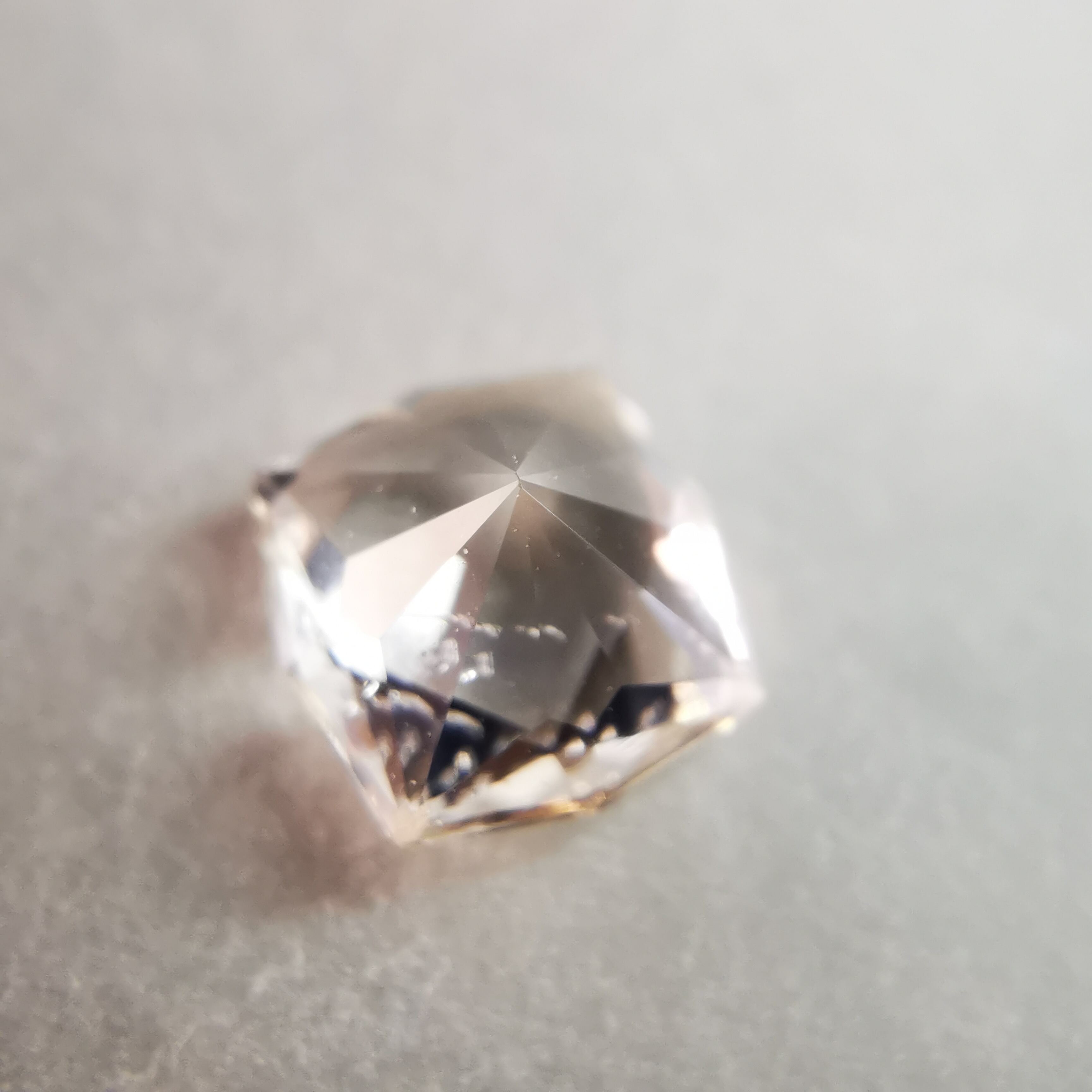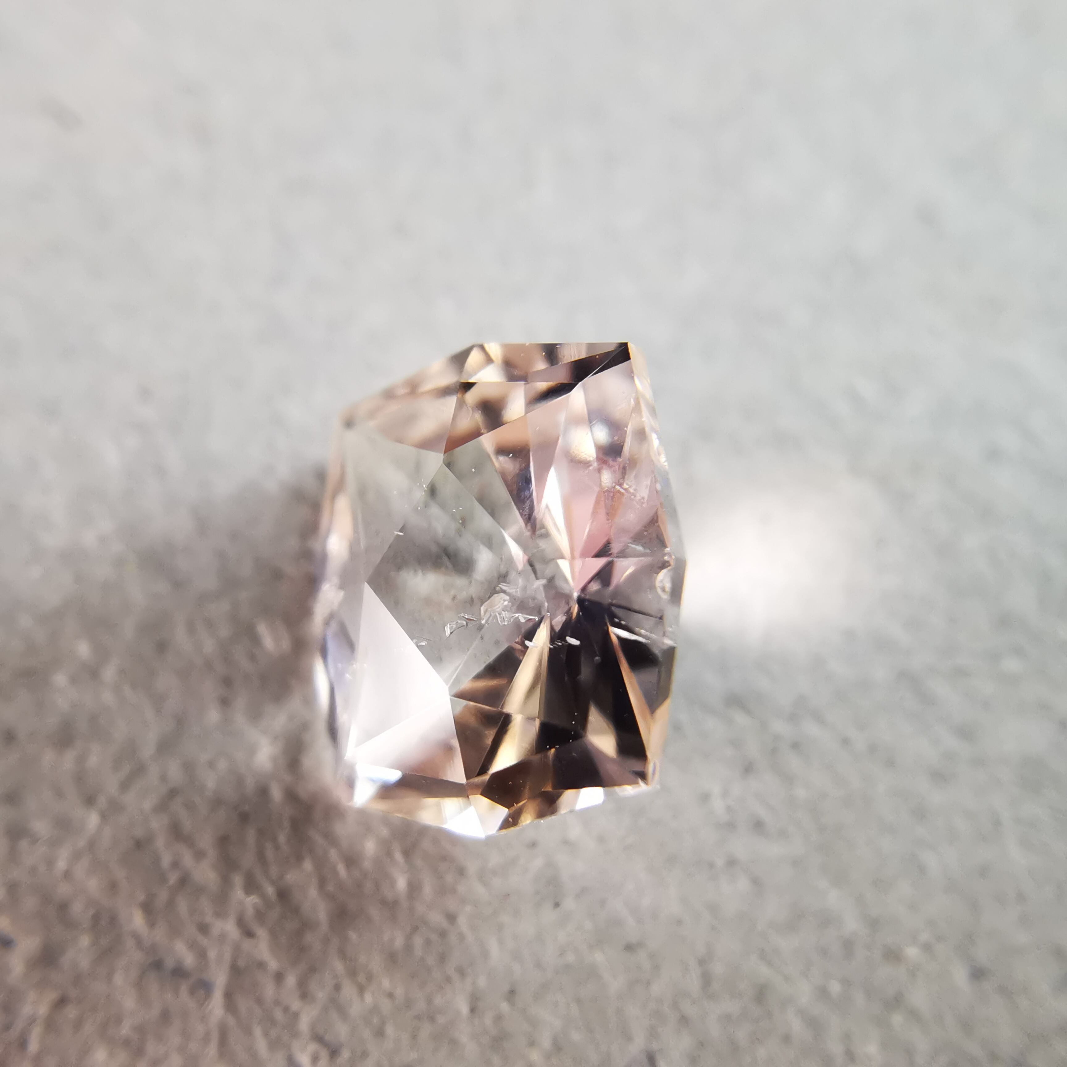 極々淡いピーチカラーのサファイアに、湧き上がる泡のようなインクルージョンが見えます。