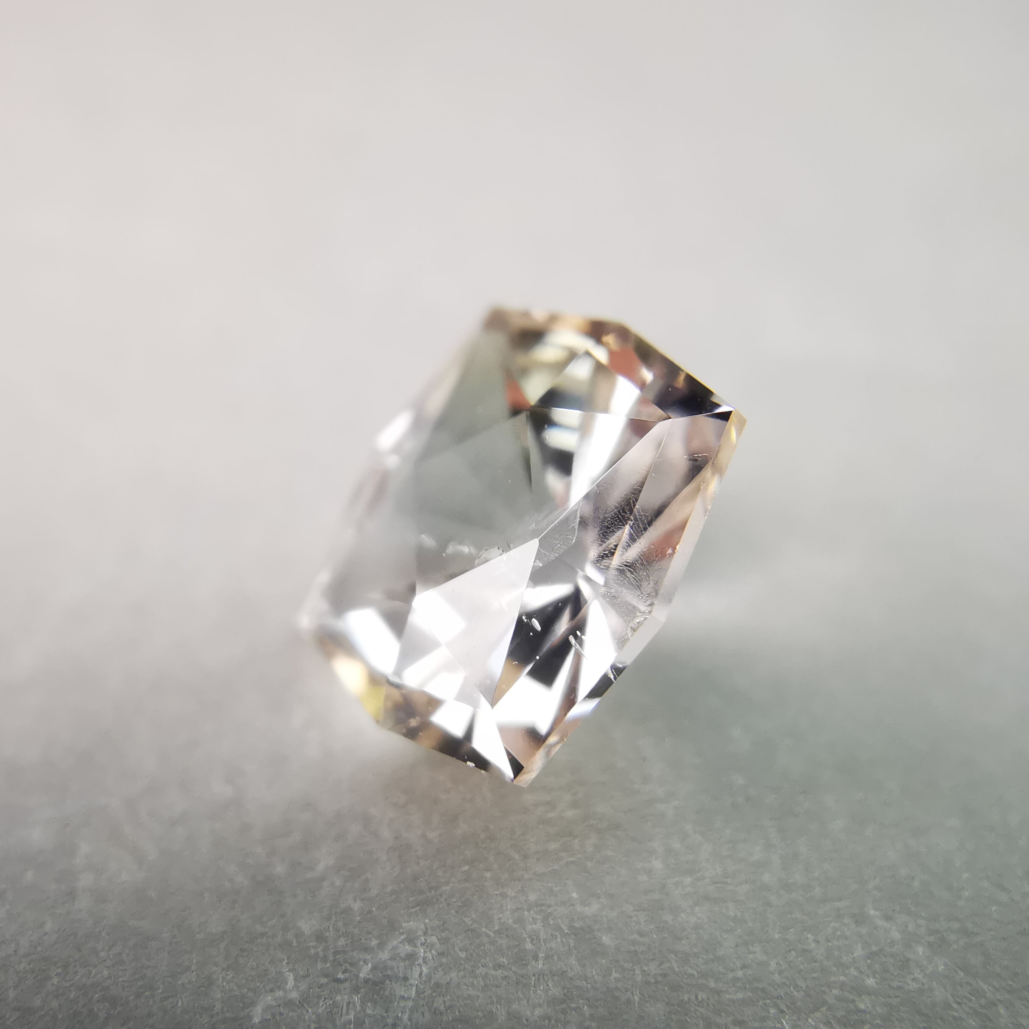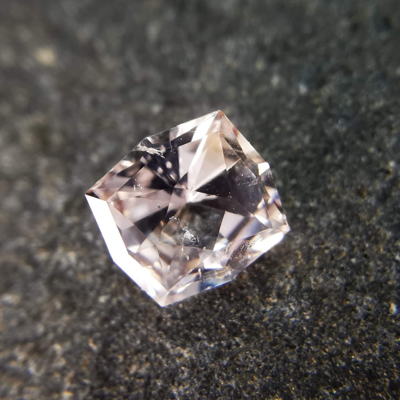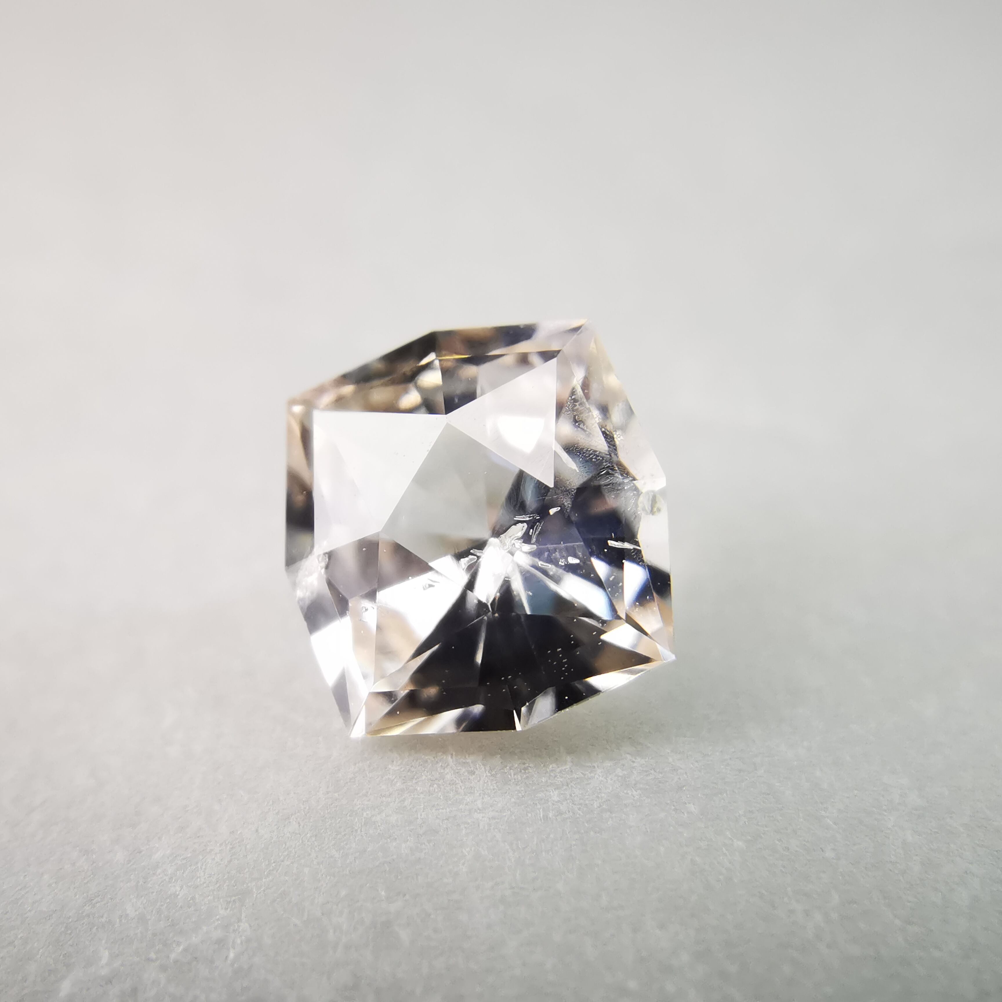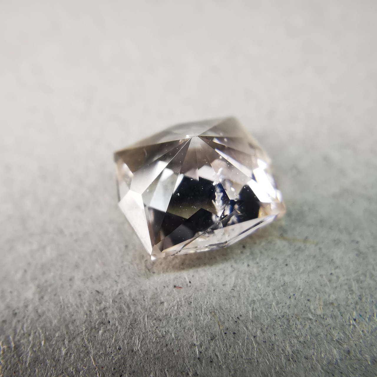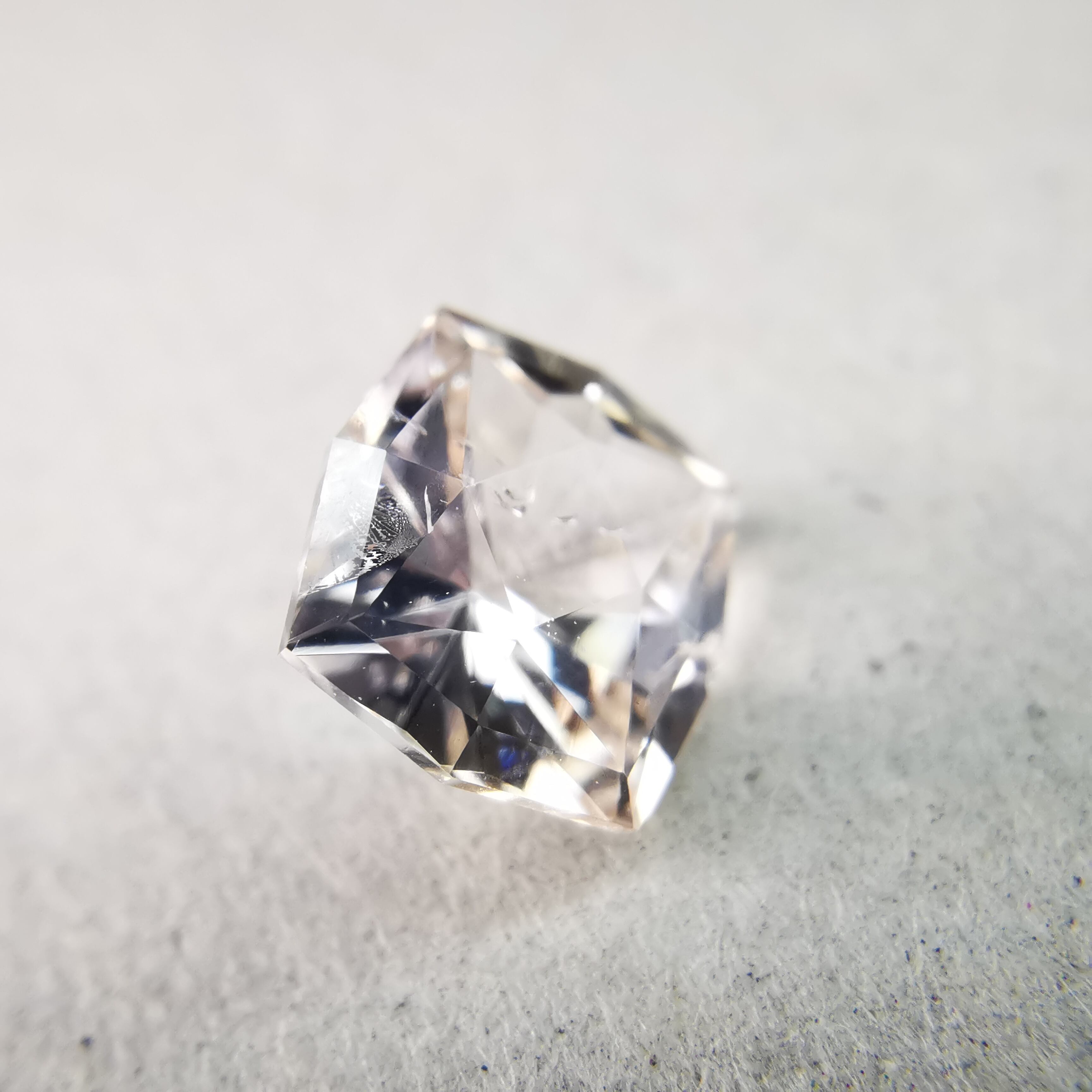 極々淡いピーチカラーのサファイアに、湧き上がる泡のようなインクルージョンが見えます。
