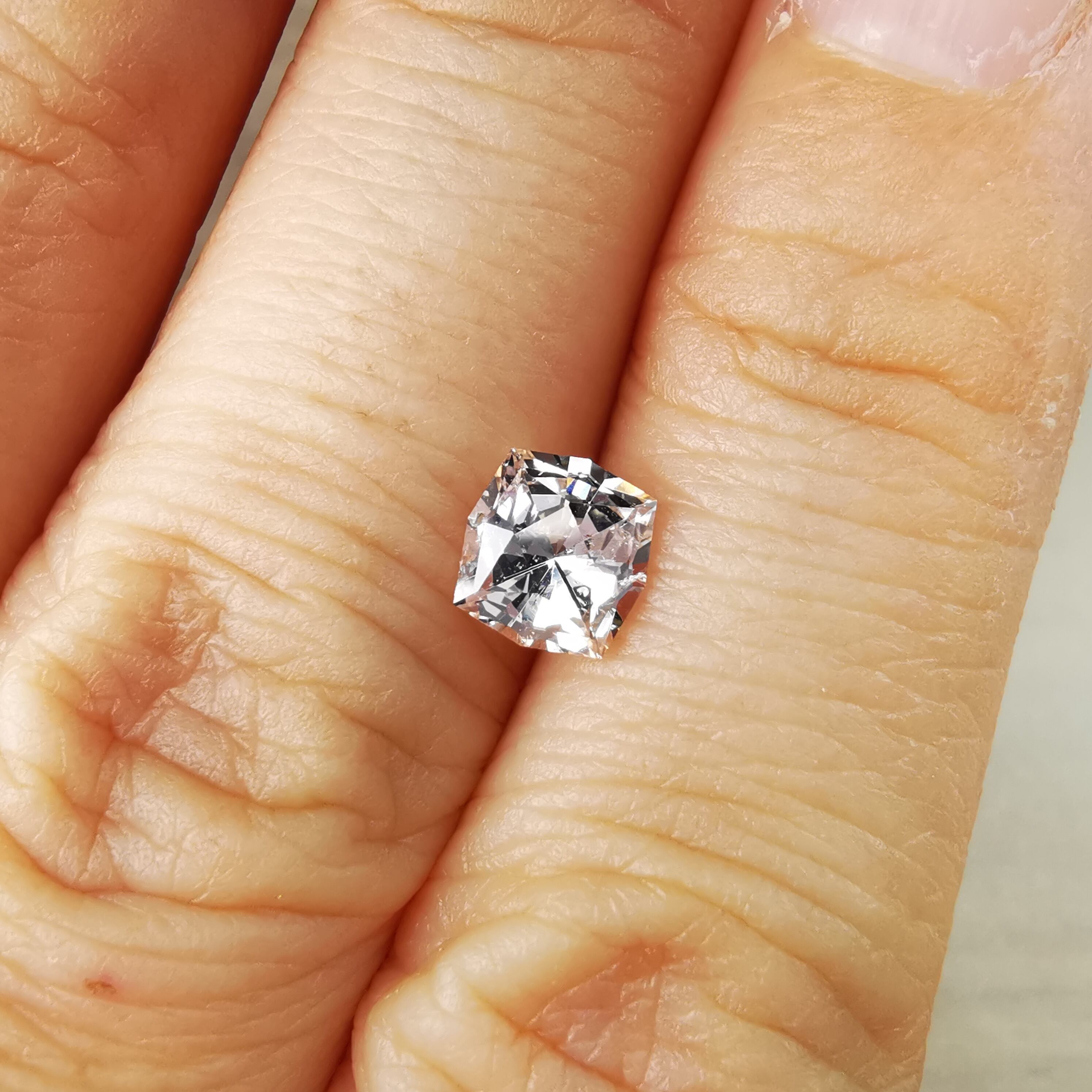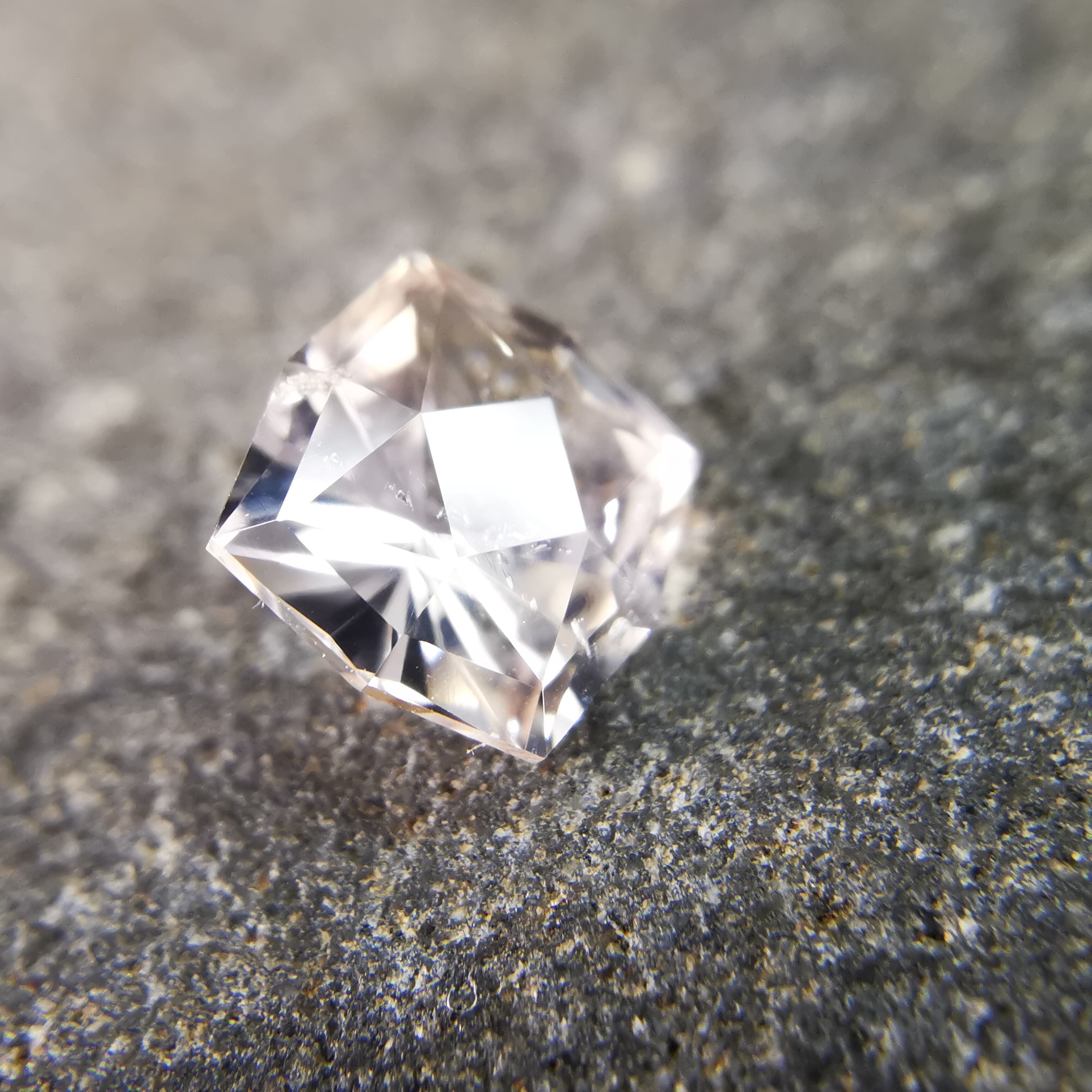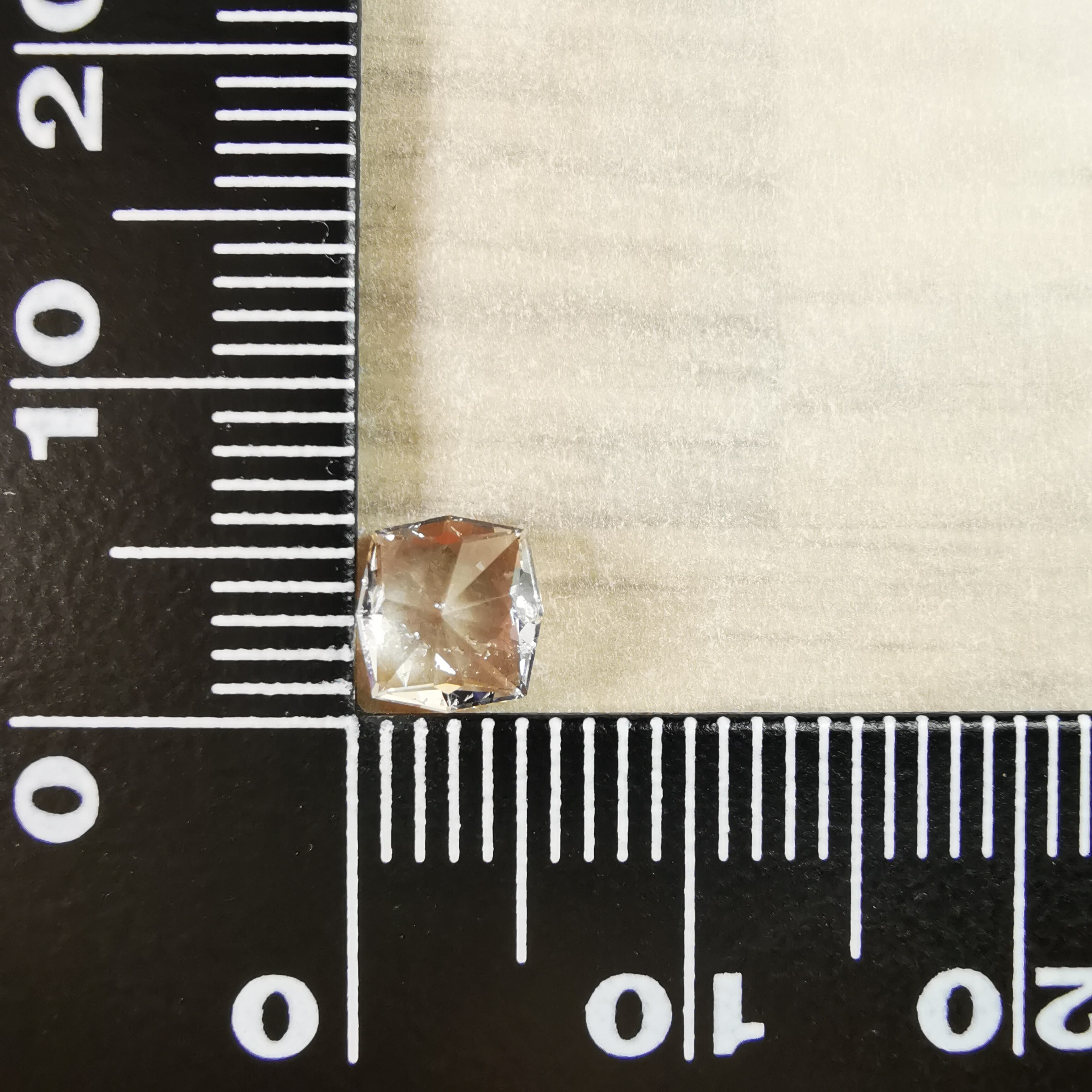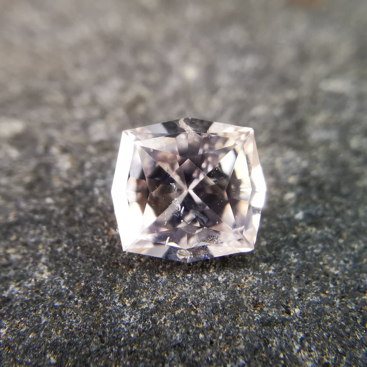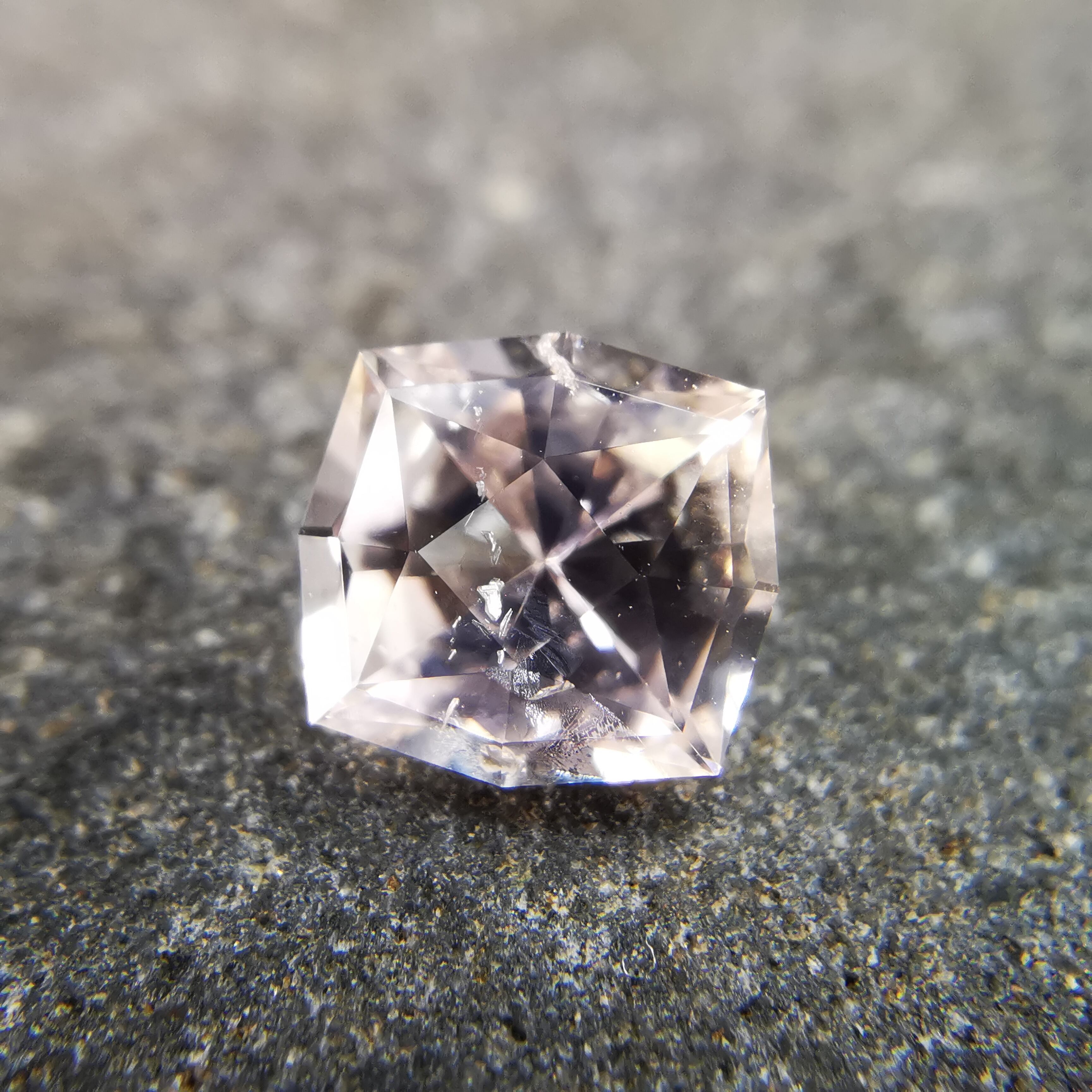 極々淡いピーチカラーのサファイアに、湧き上がる泡のようなインクルージョンが見えます。