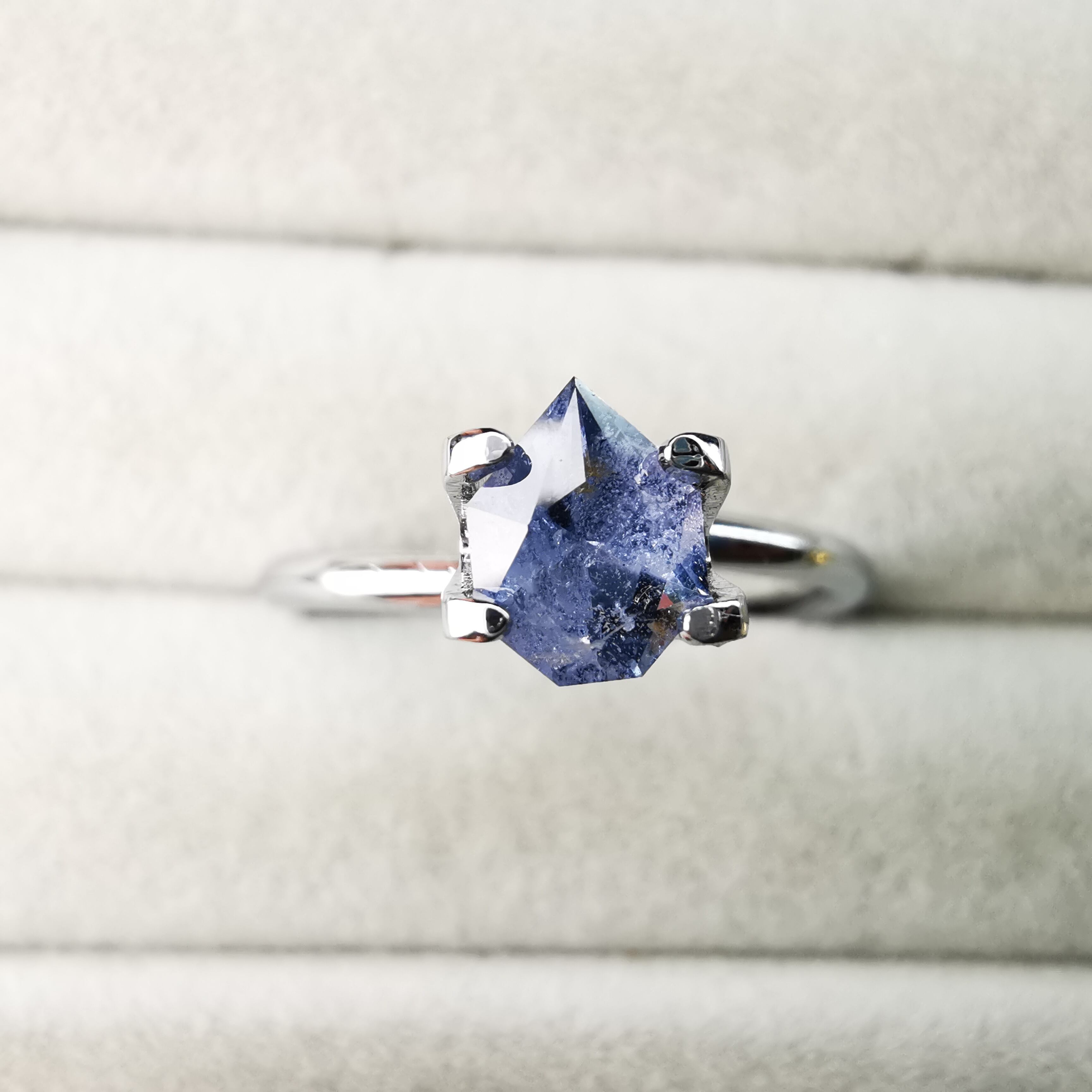 肉眼で見えるインクルージョン多数あり