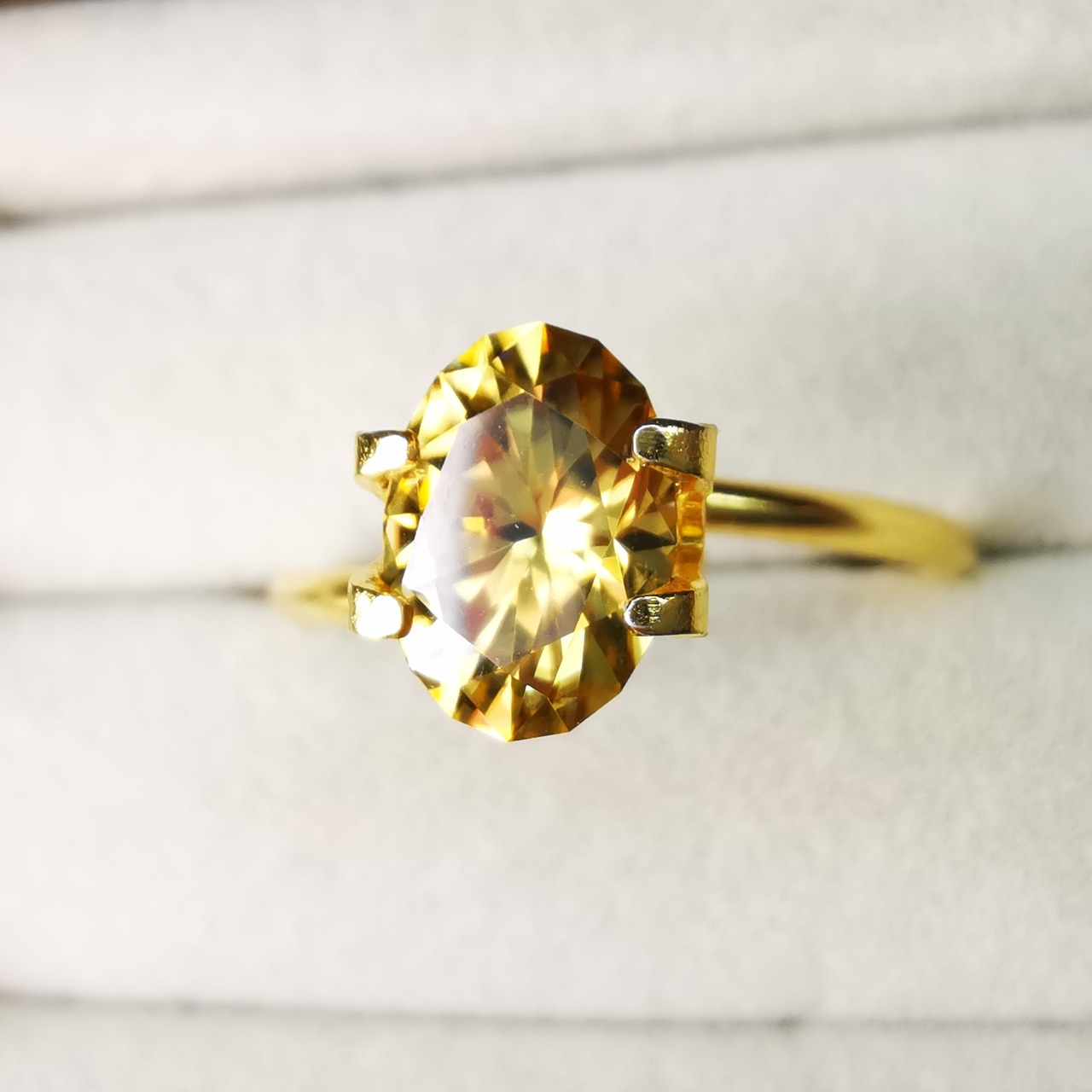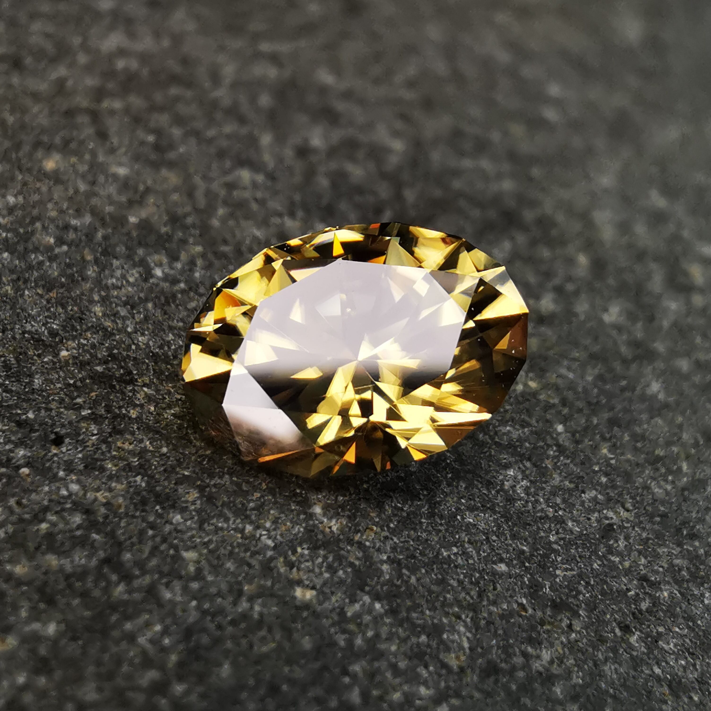 クリーンで大粒のとても美しいイエロージルコンに、カスタムリカットを施しました。